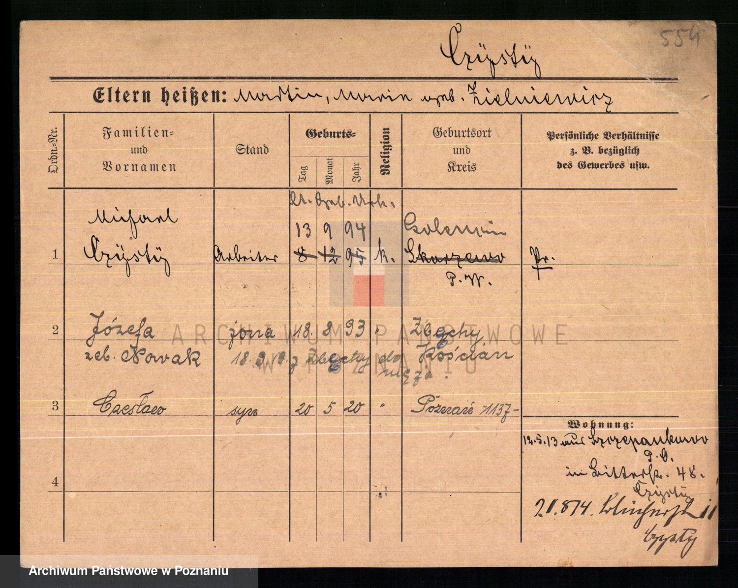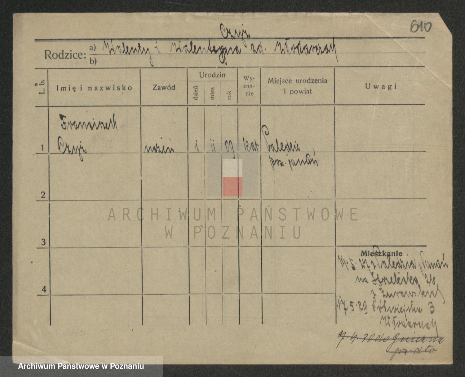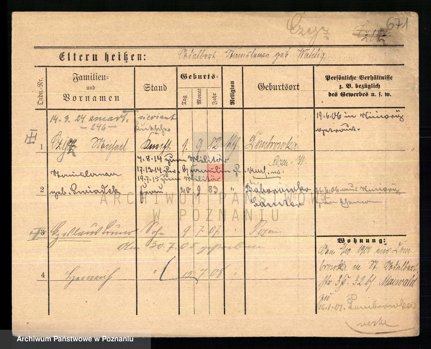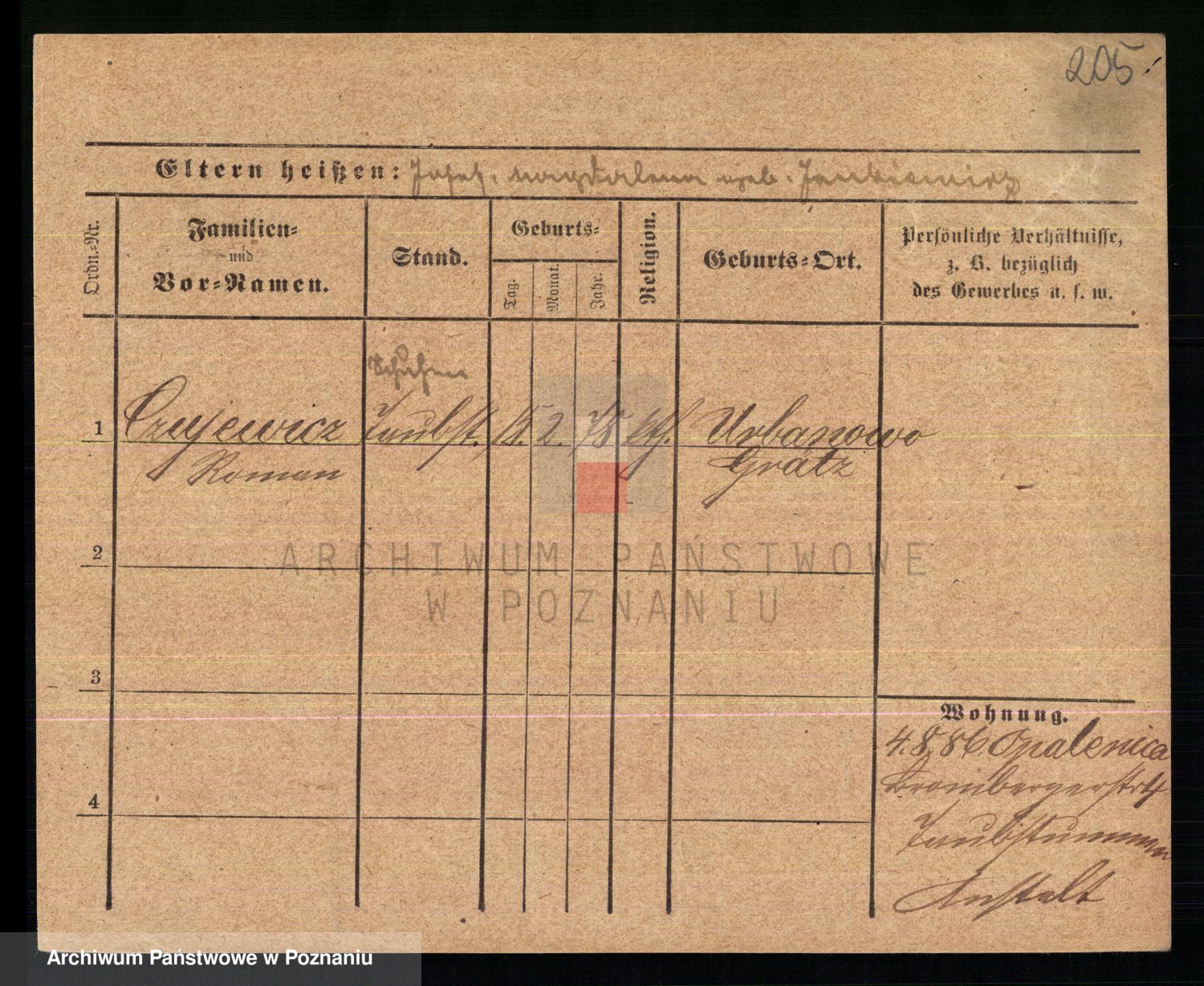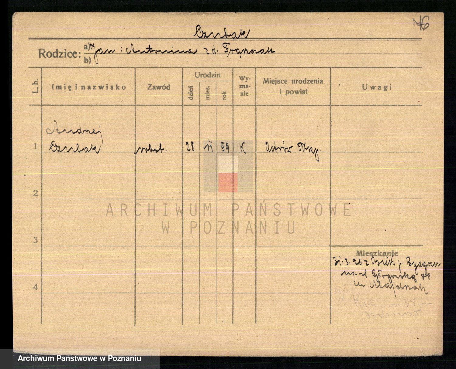 Podgląd karty osobowej dostępny jest po kliknięciu na nazwisko lub ikonkę karty. Można dokonywać powiększenia (ikony na górze) lub przechodzić między kolejnymi skanami (strzałki po bokach).
