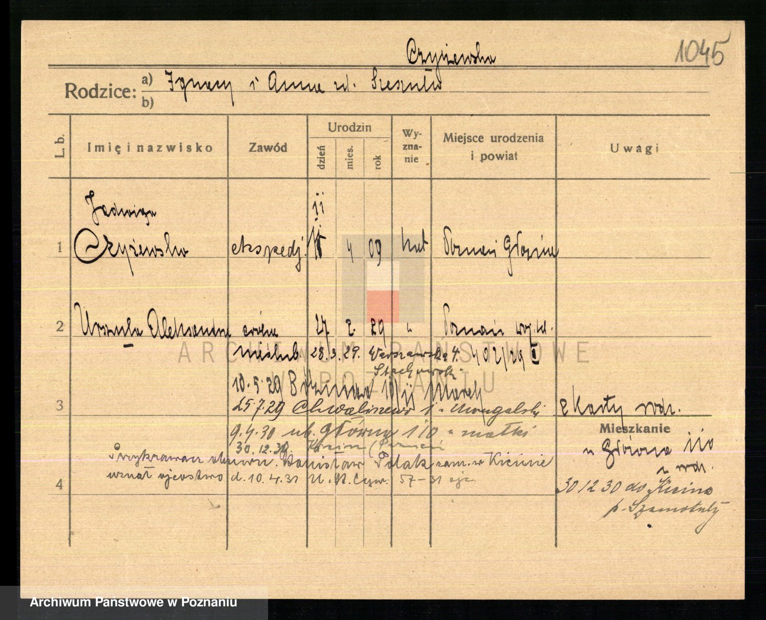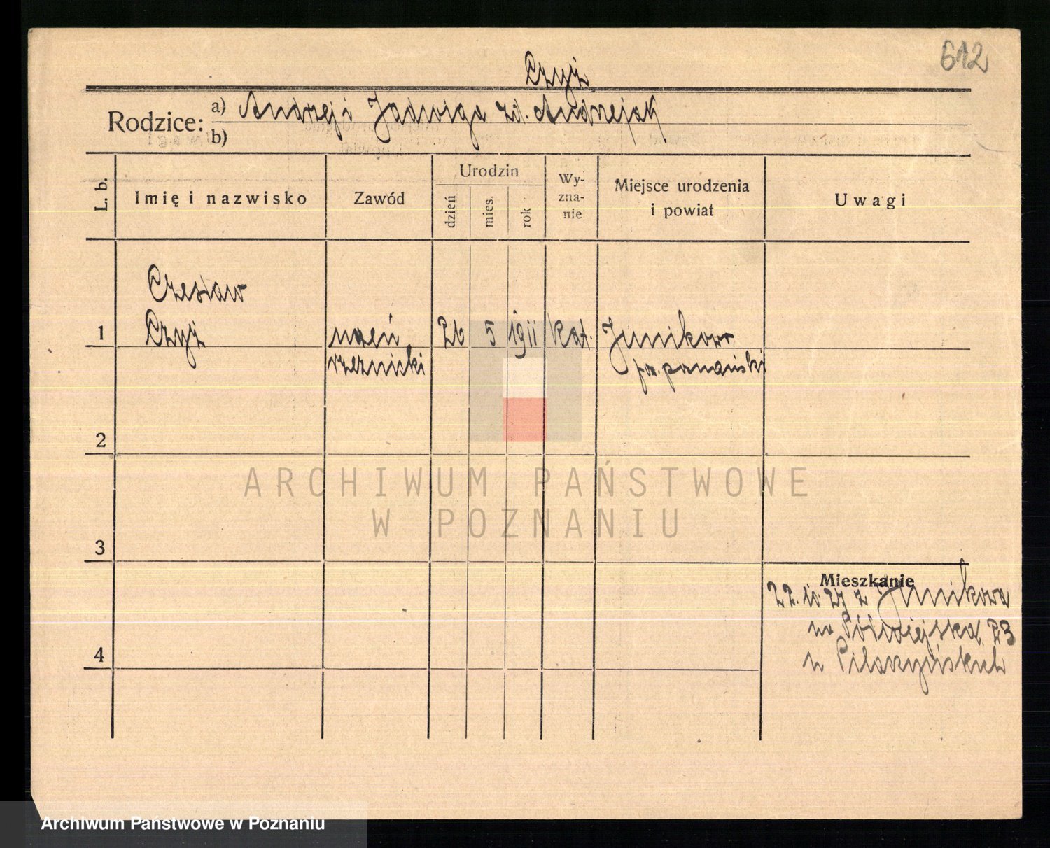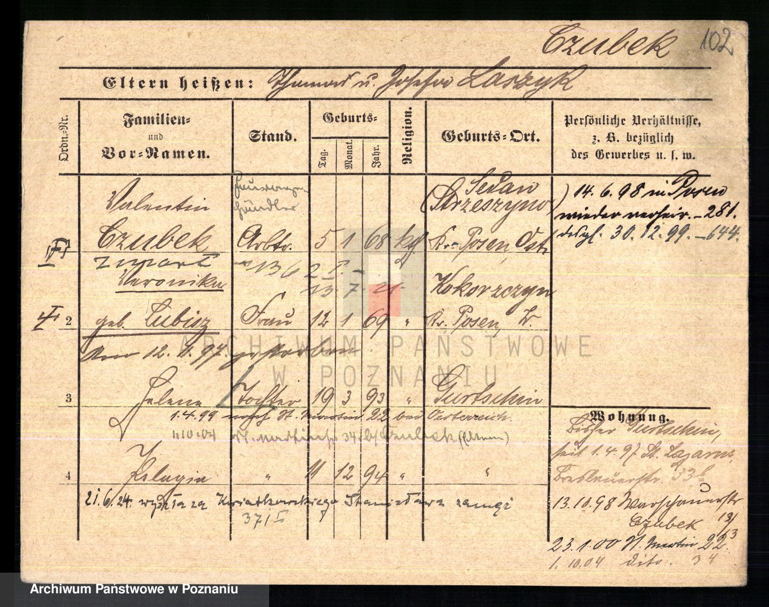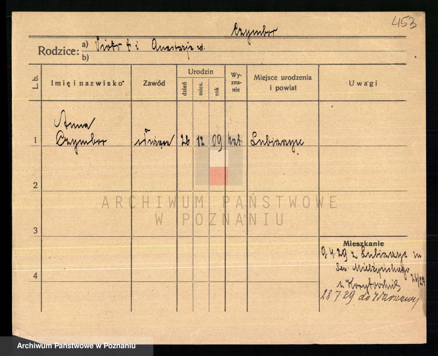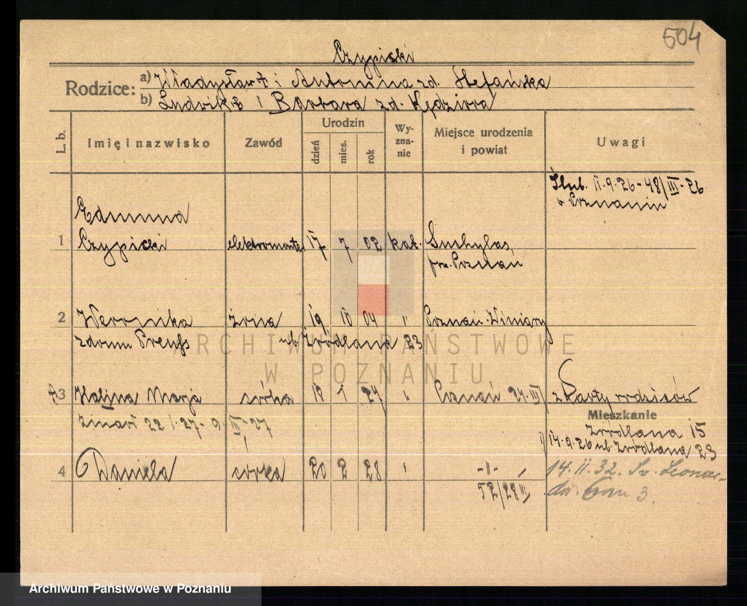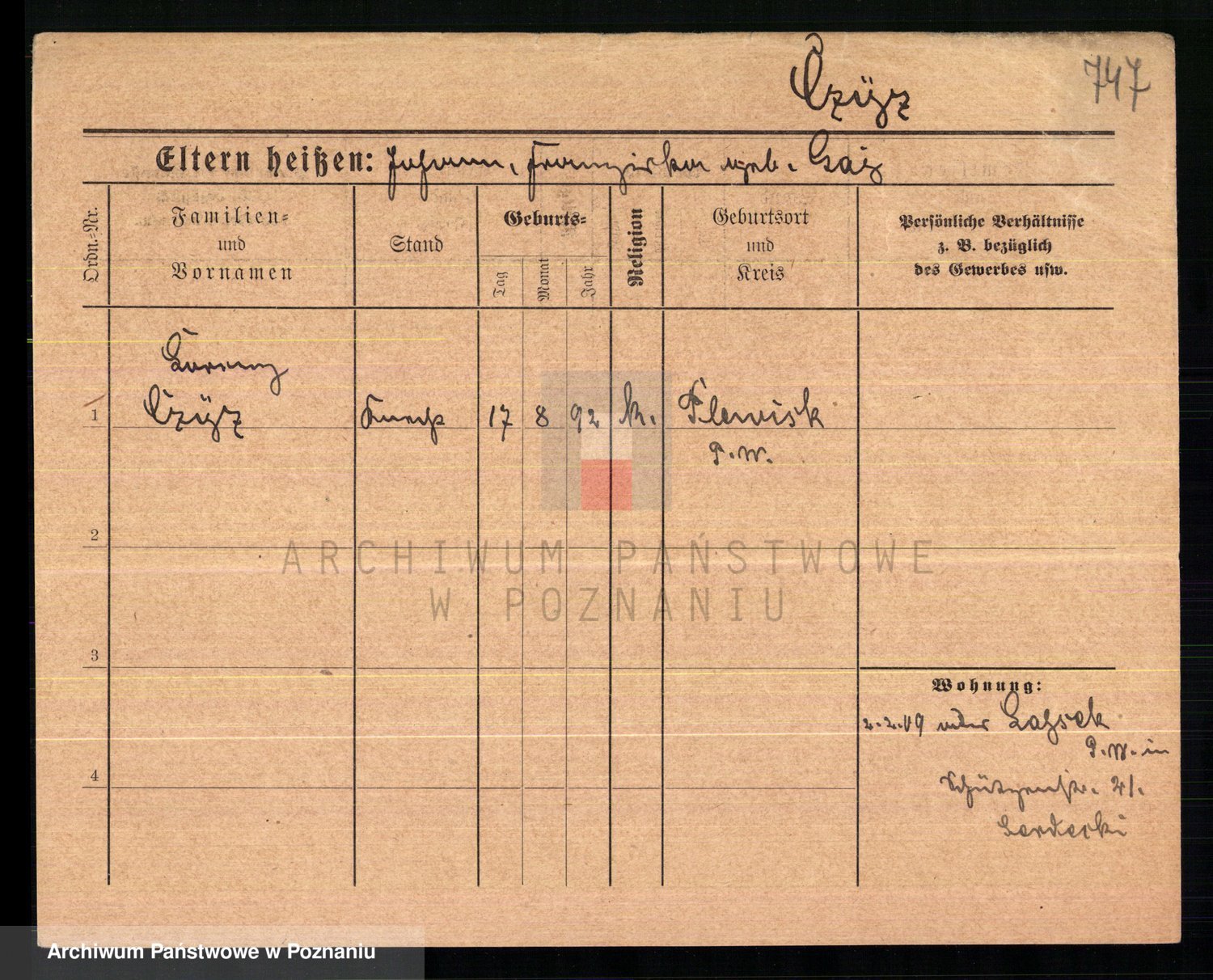 Podgląd karty osobowej dostępny jest po kliknięciu na nazwisko lub ikonkę karty. Można dokonywać powiększenia (ikony na górze) lub przechodzić między kolejnymi skanami (strzałki po bokach).