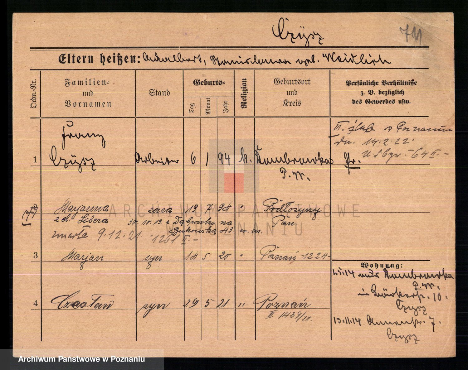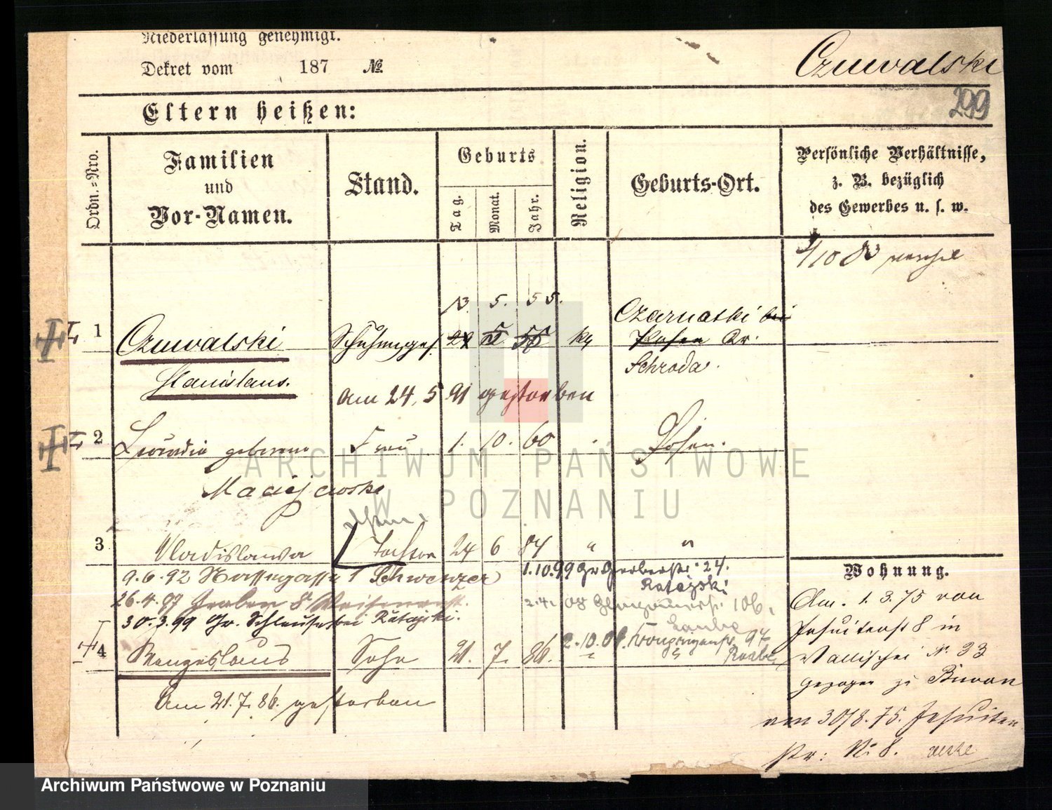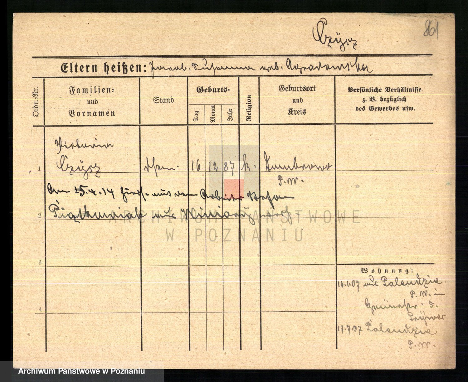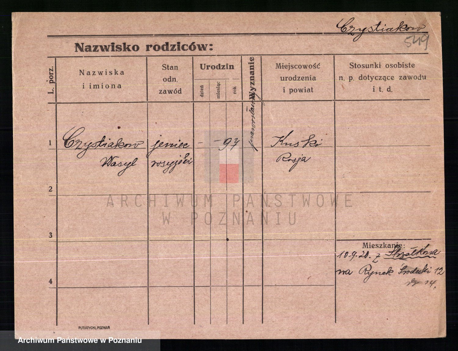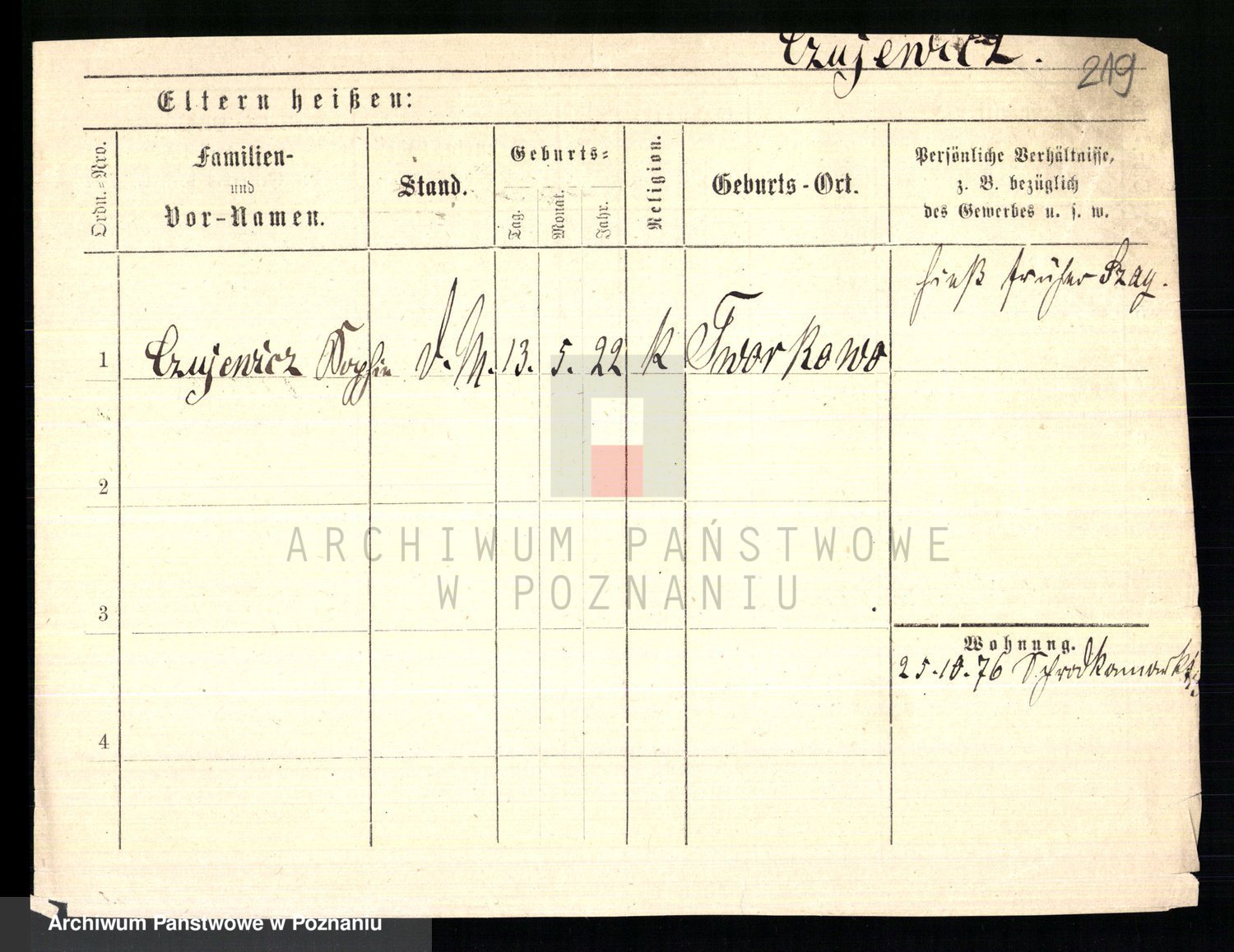 Podgląd karty osobowej dostępny jest po kliknięciu na nazwisko lub ikonkę karty. Można dokonywać powiększenia (ikony na górze) lub przechodzić między kolejnymi skanami (strzałki po bokach).