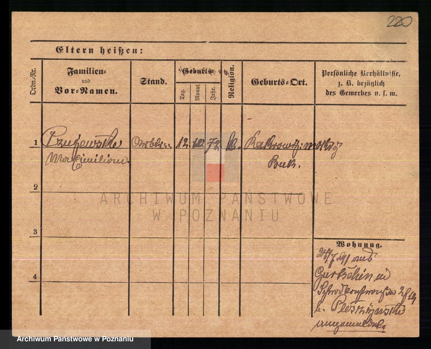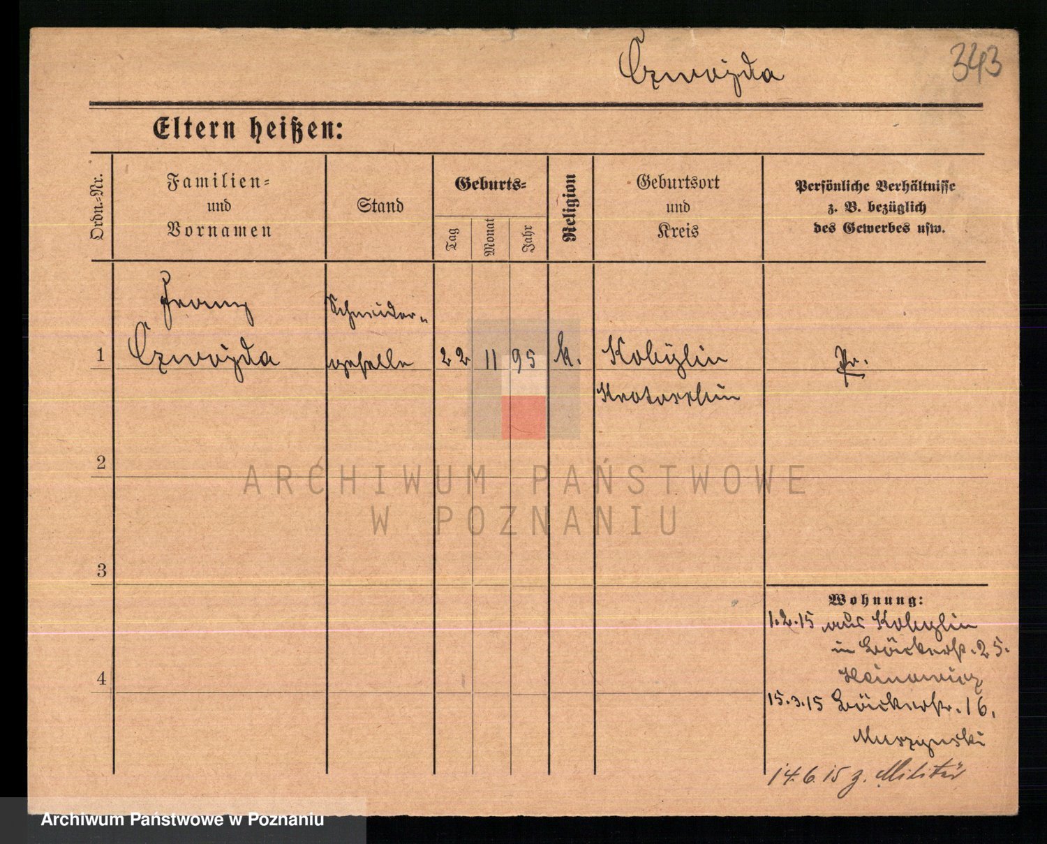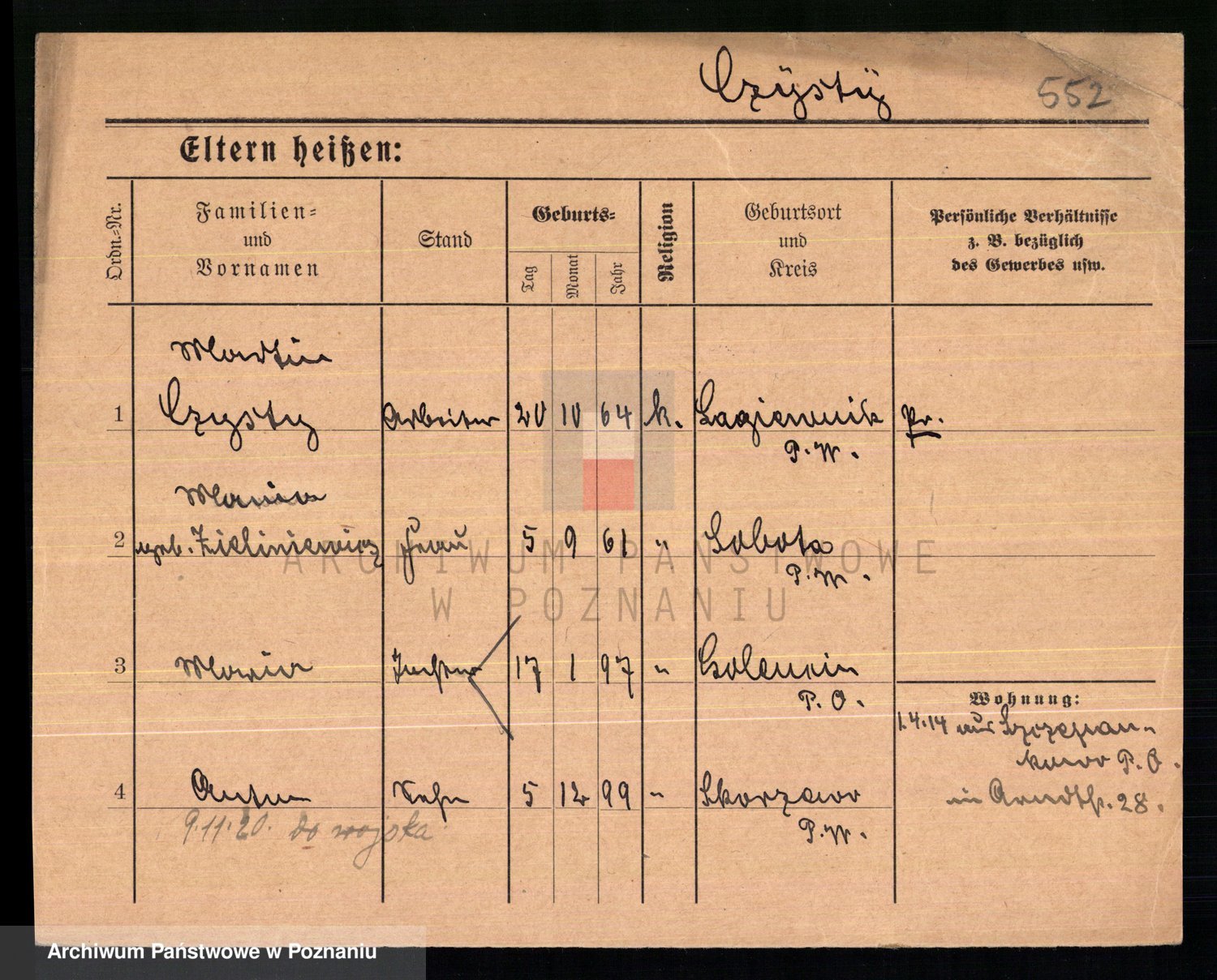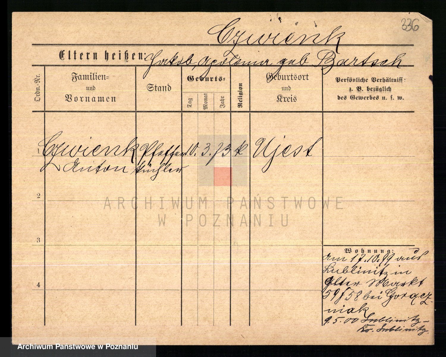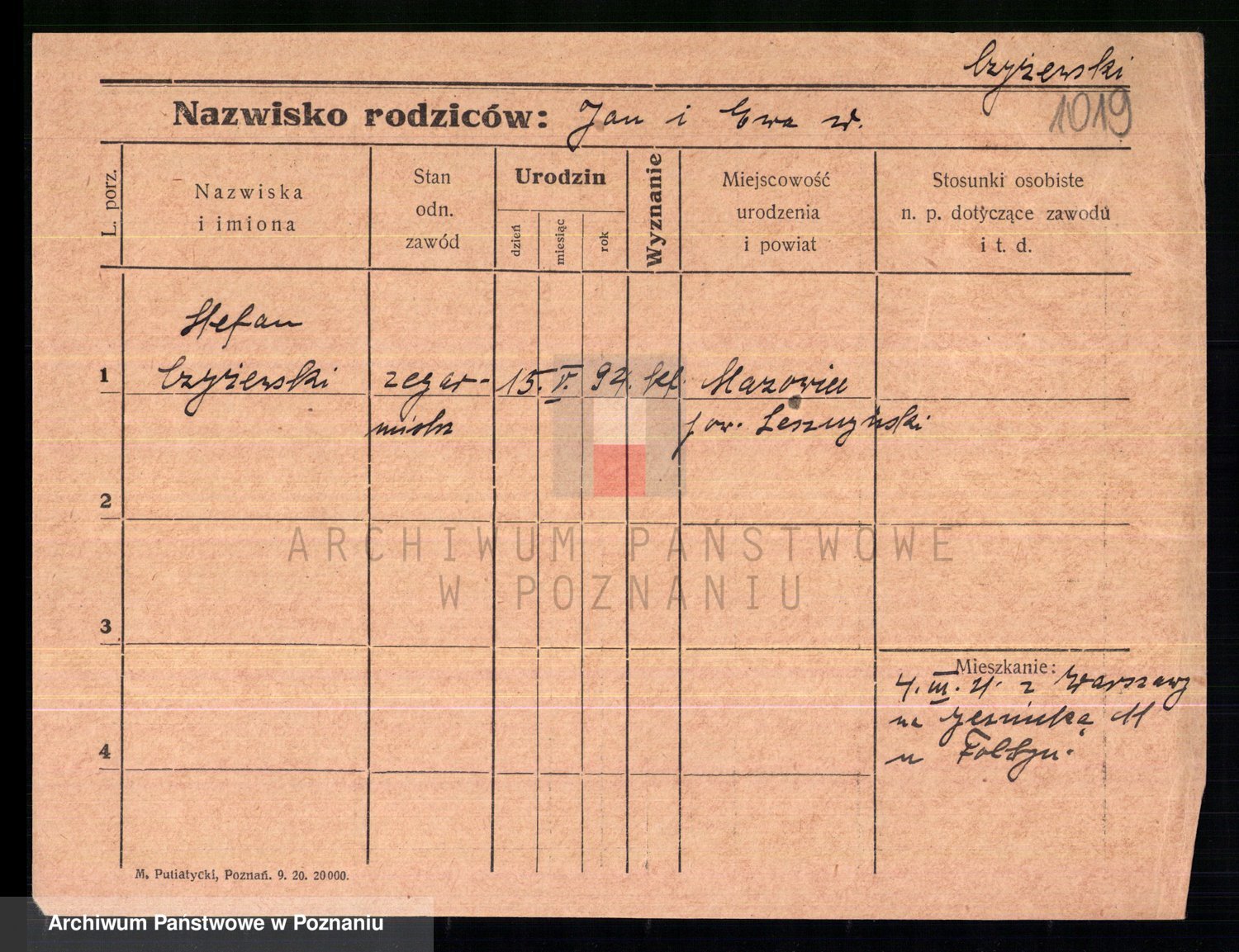 Podgląd karty osobowej dostępny jest po kliknięciu na nazwisko lub ikonkę karty. Można dokonywać powiększenia (ikony na górze) lub przechodzić między kolejnymi skanami (strzałki po bokach).