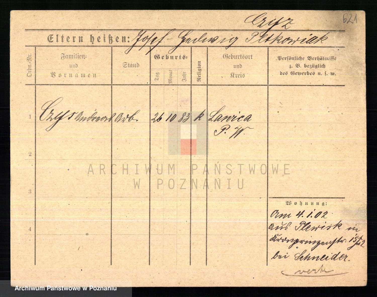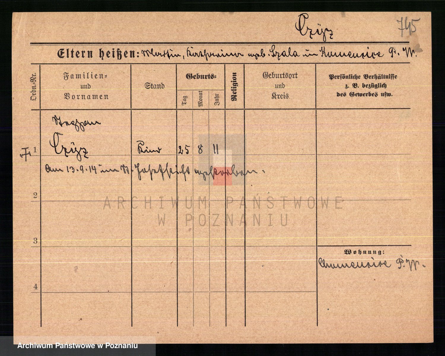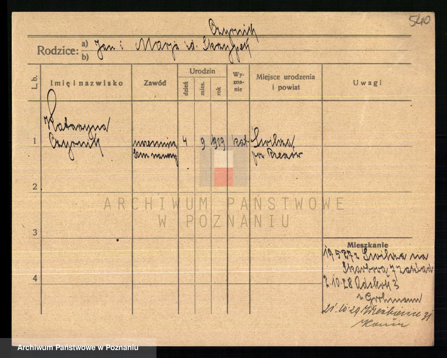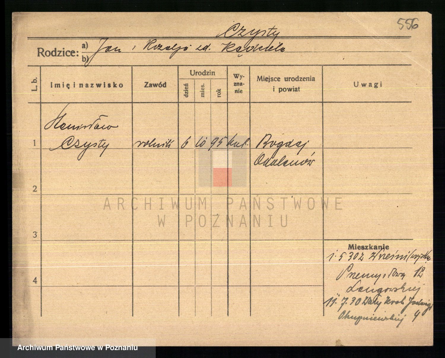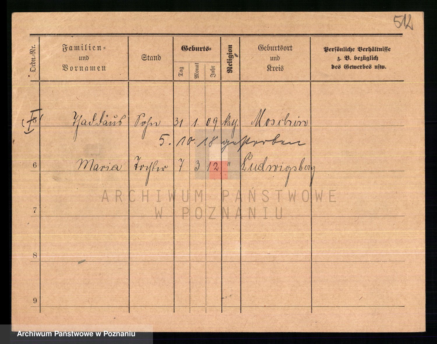 Podgląd karty osobowej dostępny jest po kliknięciu na nazwisko lub ikonkę karty. Można dokonywać powiększenia (ikony na górze) lub przechodzić między kolejnymi skanami (strzałki po bokach).