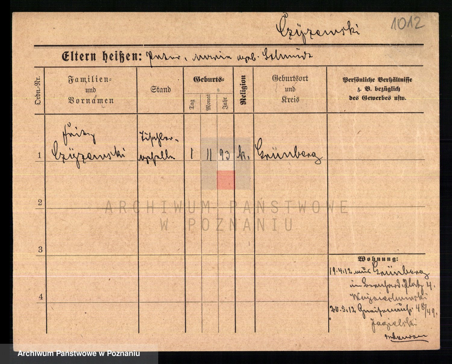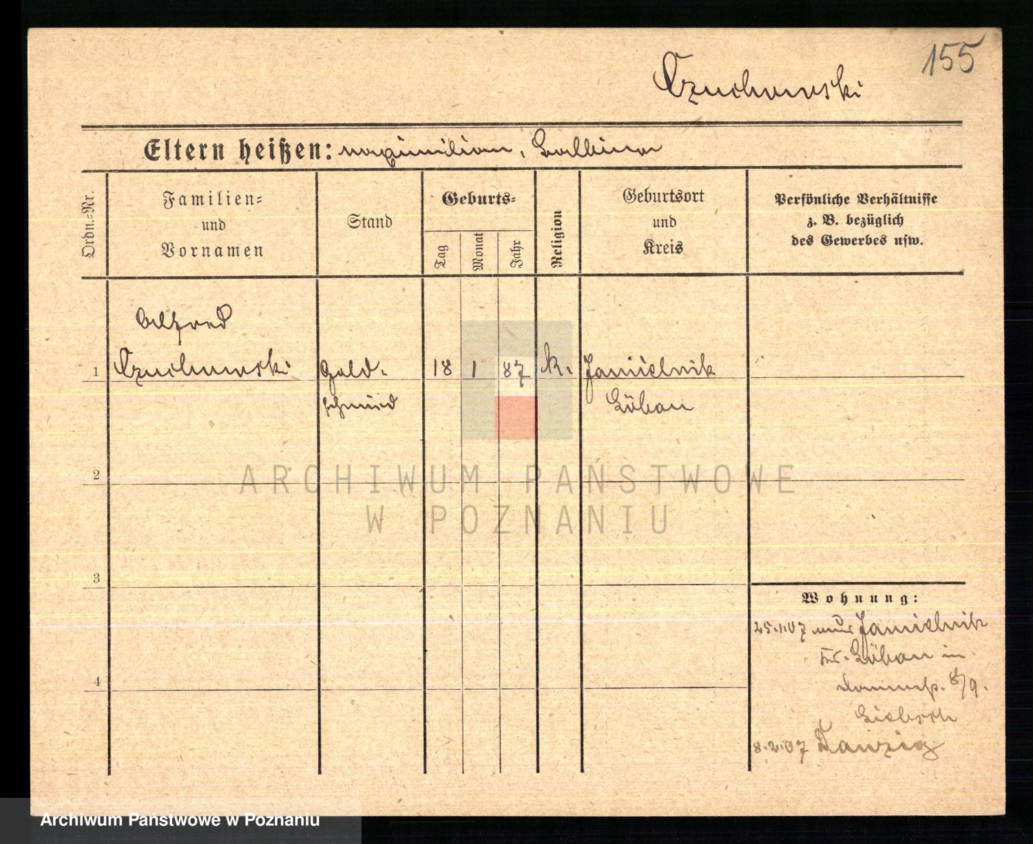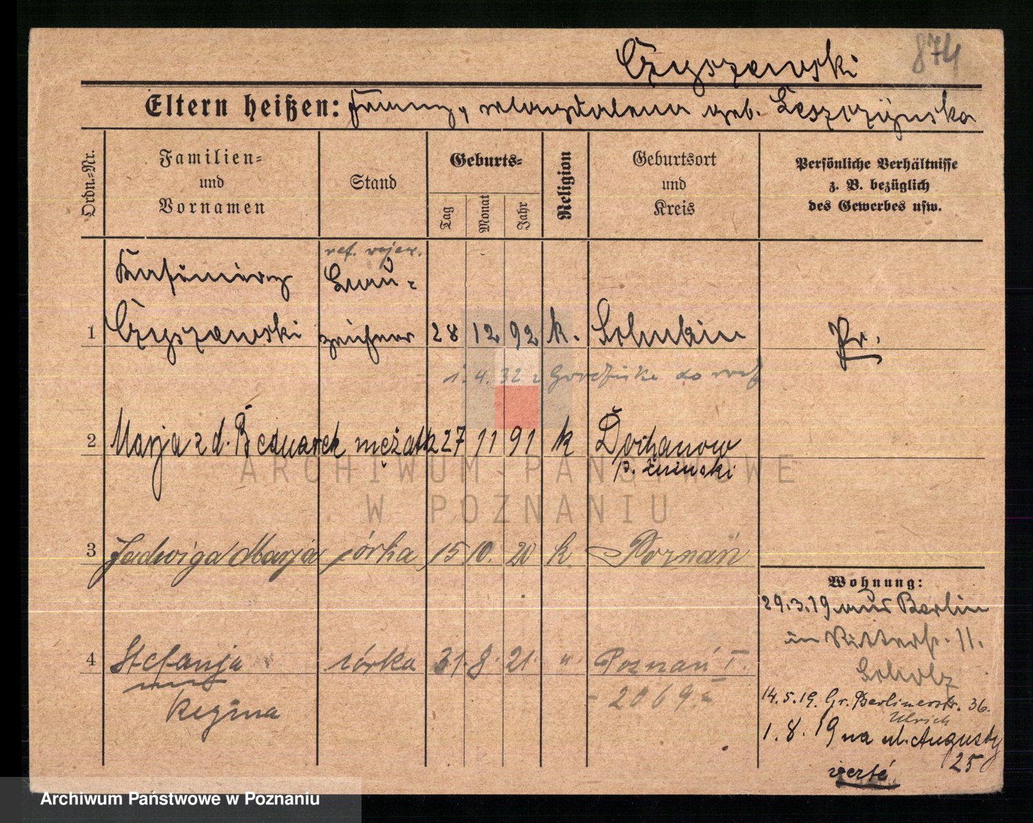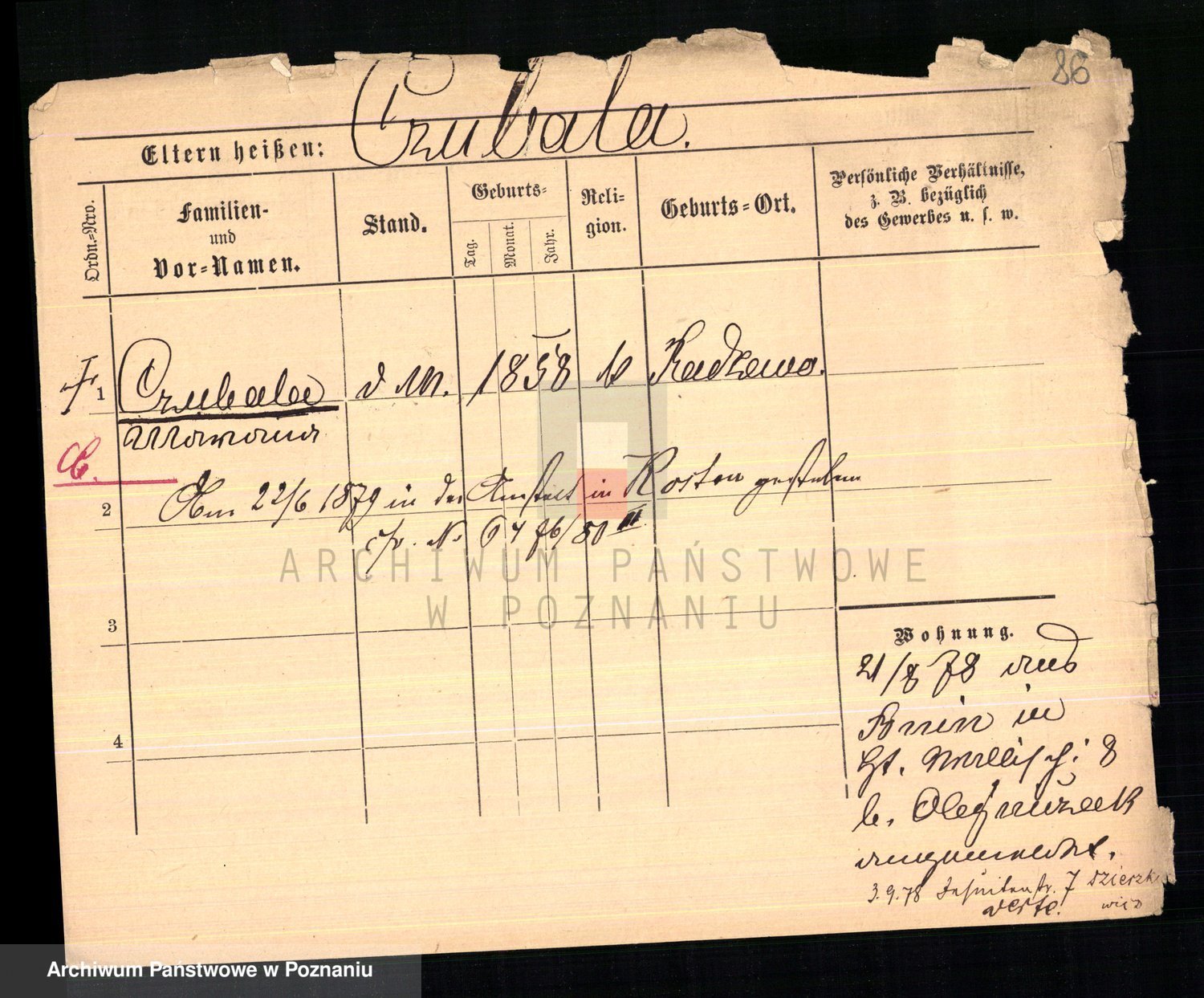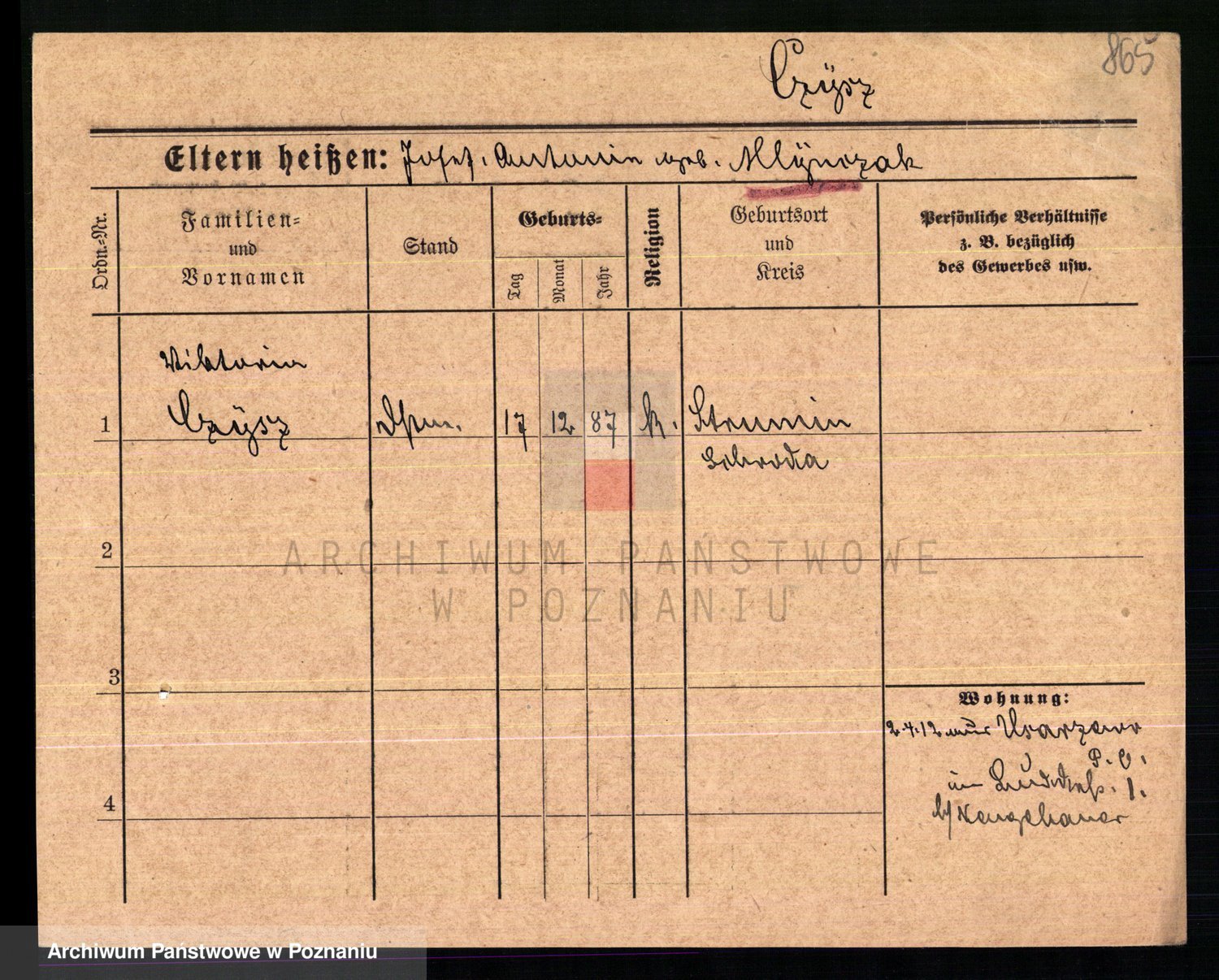 Podgląd karty osobowej dostępny jest po kliknięciu na nazwisko lub ikonkę karty. Można dokonywać powiększenia (ikony na górze) lub przechodzić między kolejnymi skanami (strzałki po bokach).