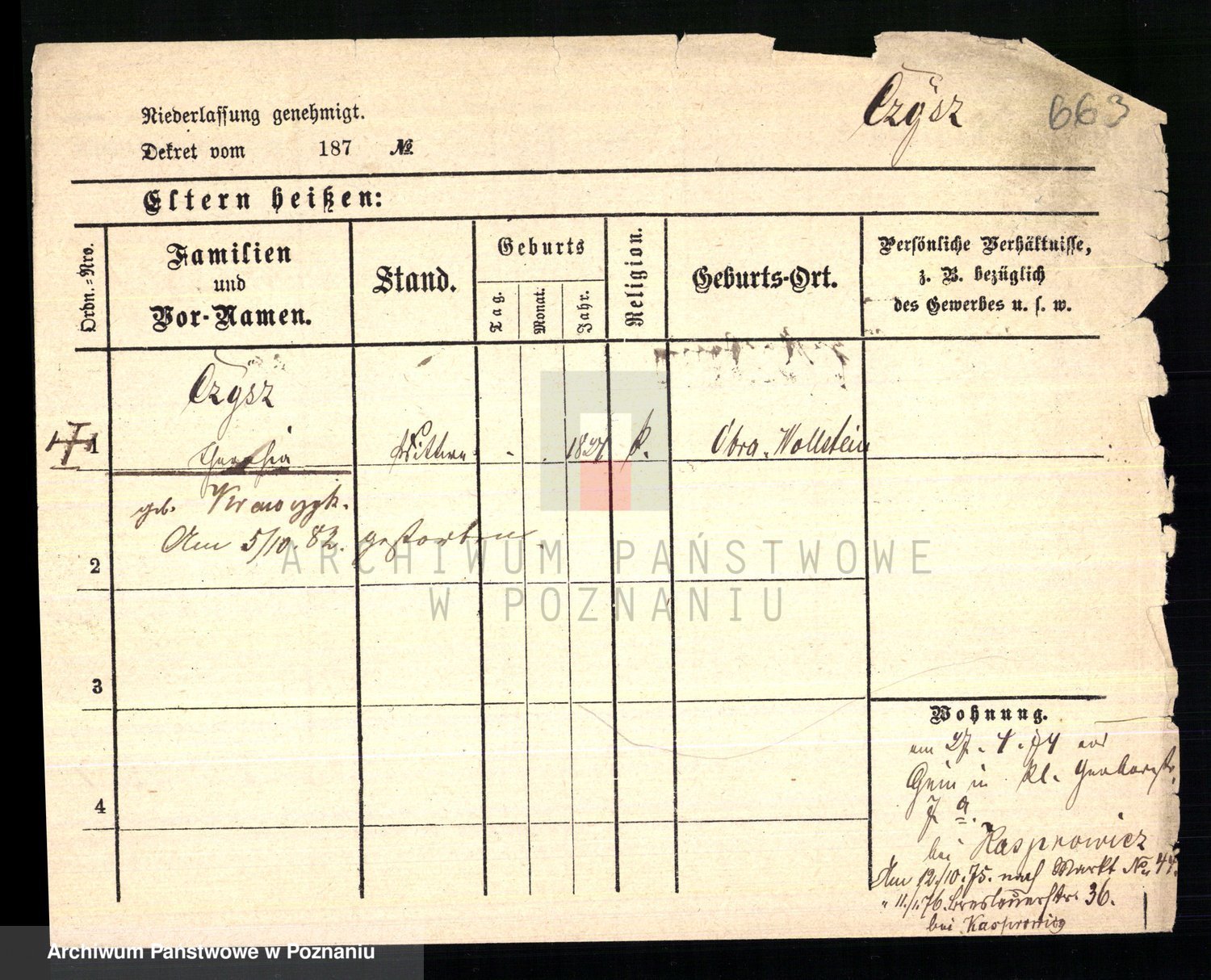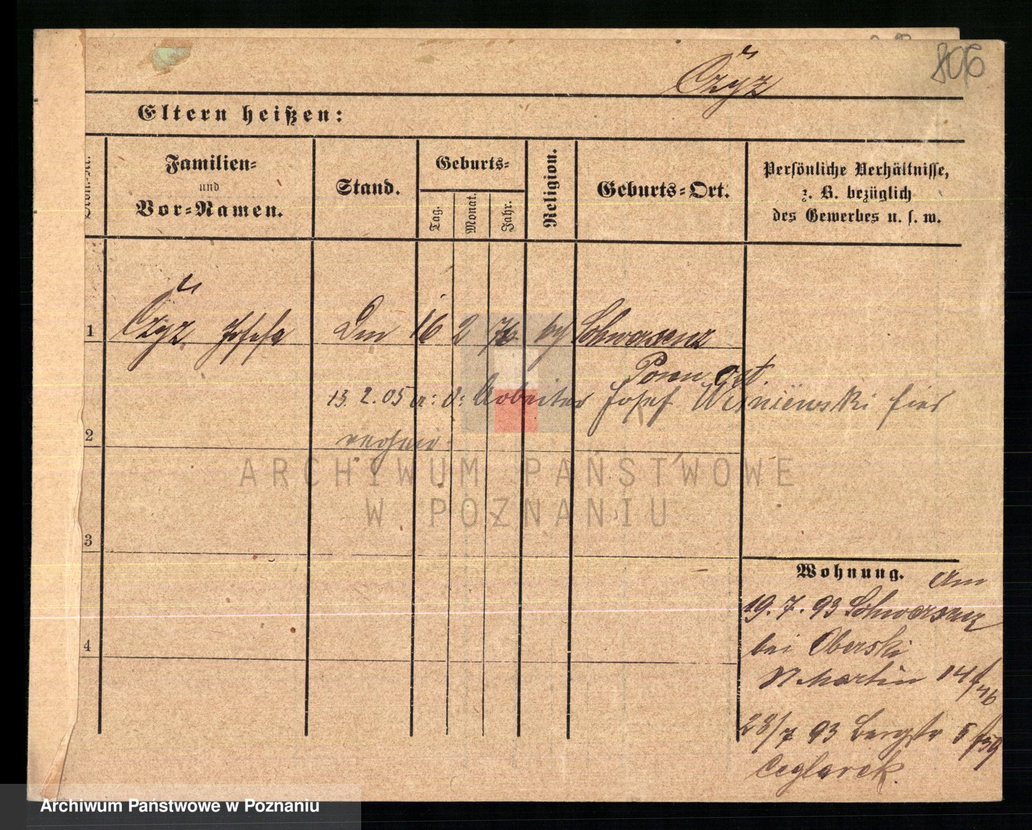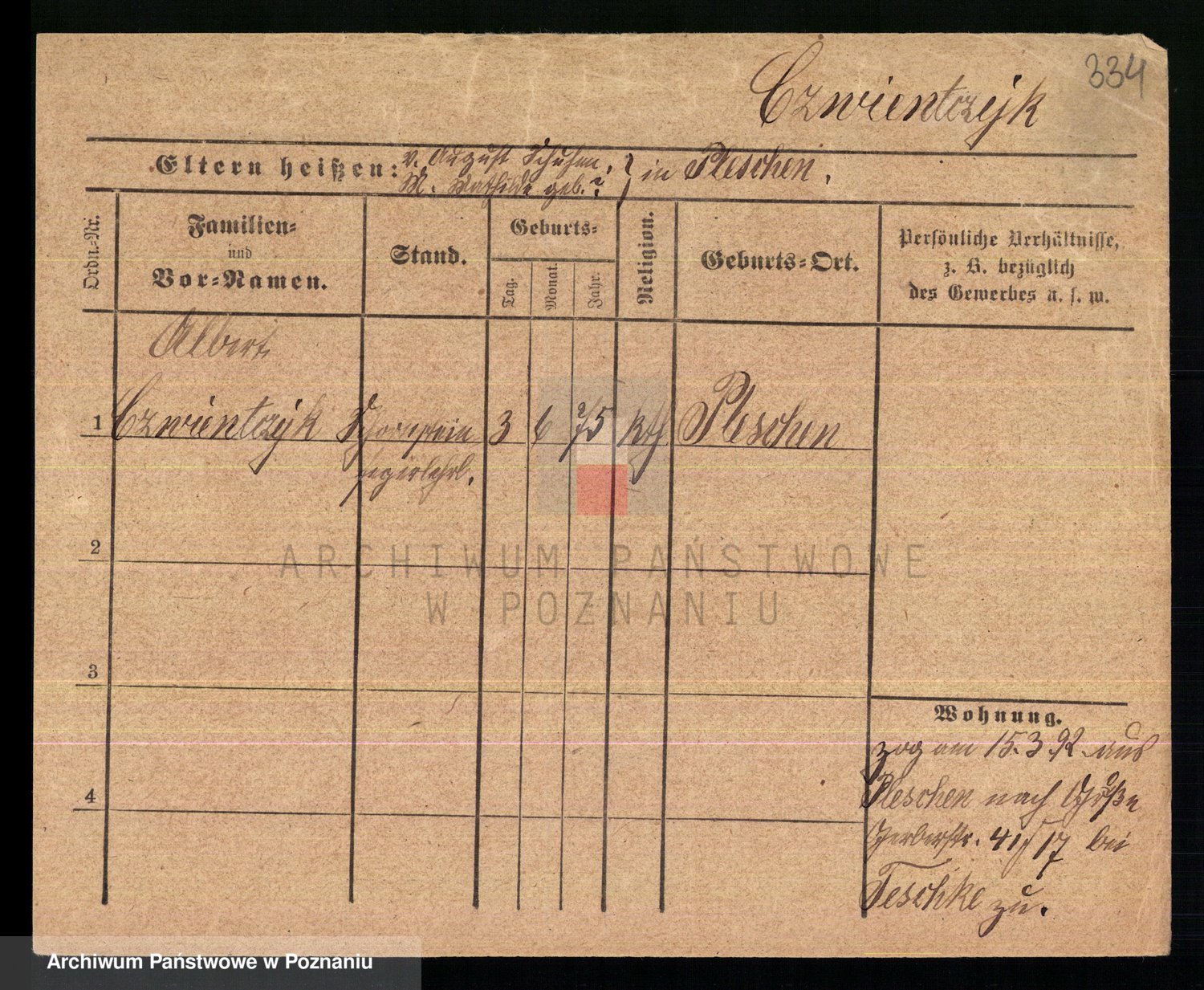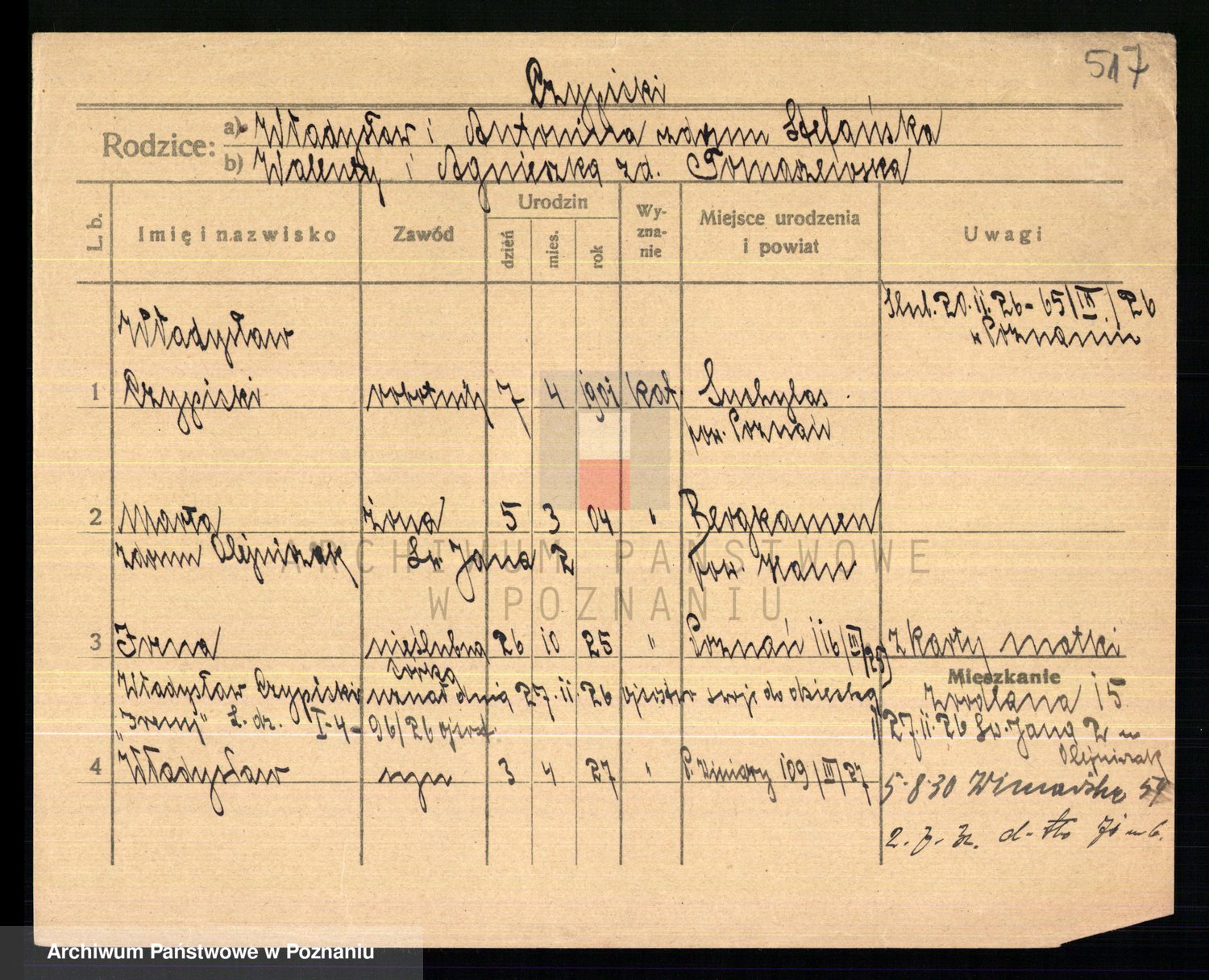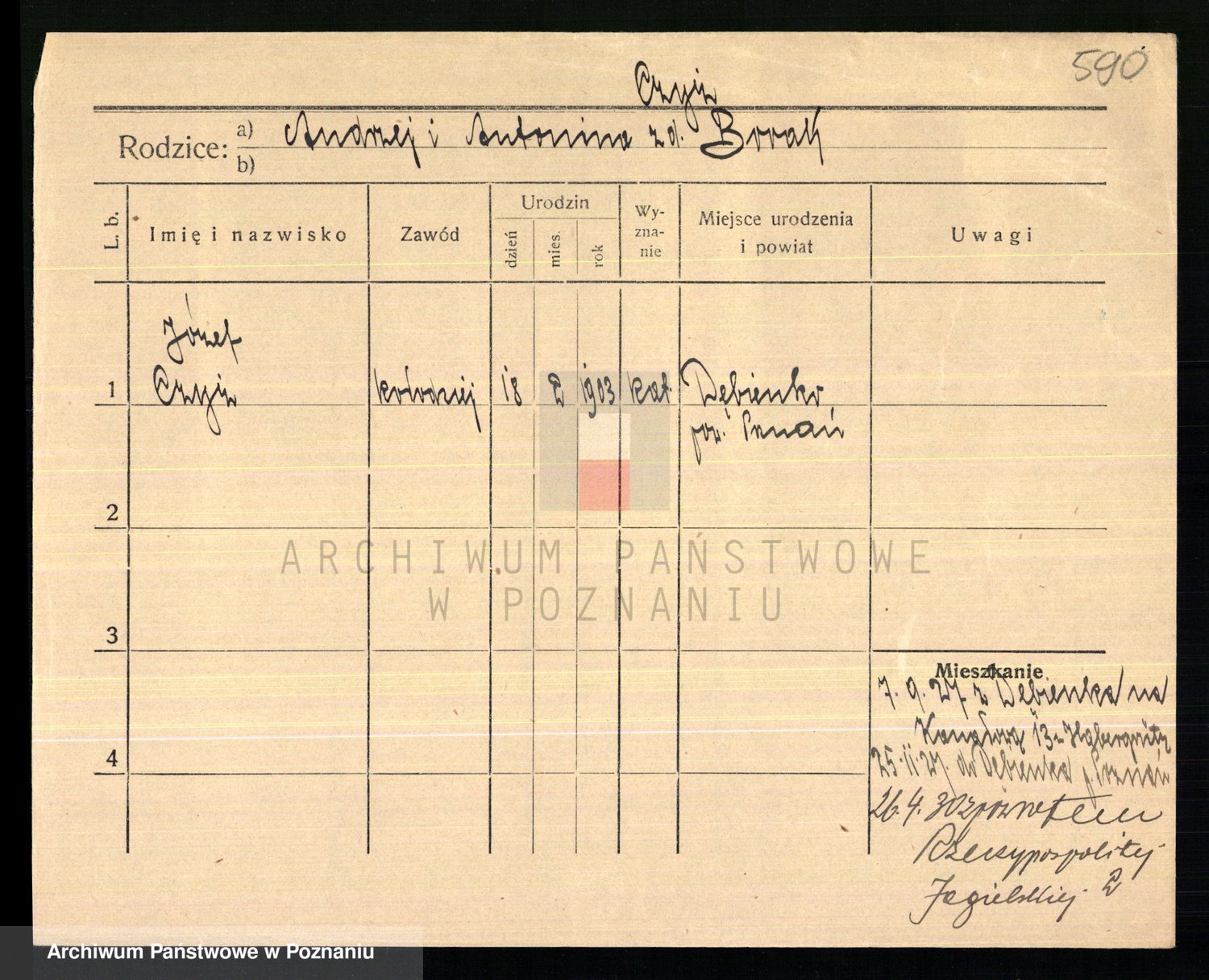 Podgląd karty osobowej dostępny jest po kliknięciu na nazwisko lub ikonkę karty. Można dokonywać powiększenia (ikony na górze) lub przechodzić między kolejnymi skanami (strzałki po bokach).