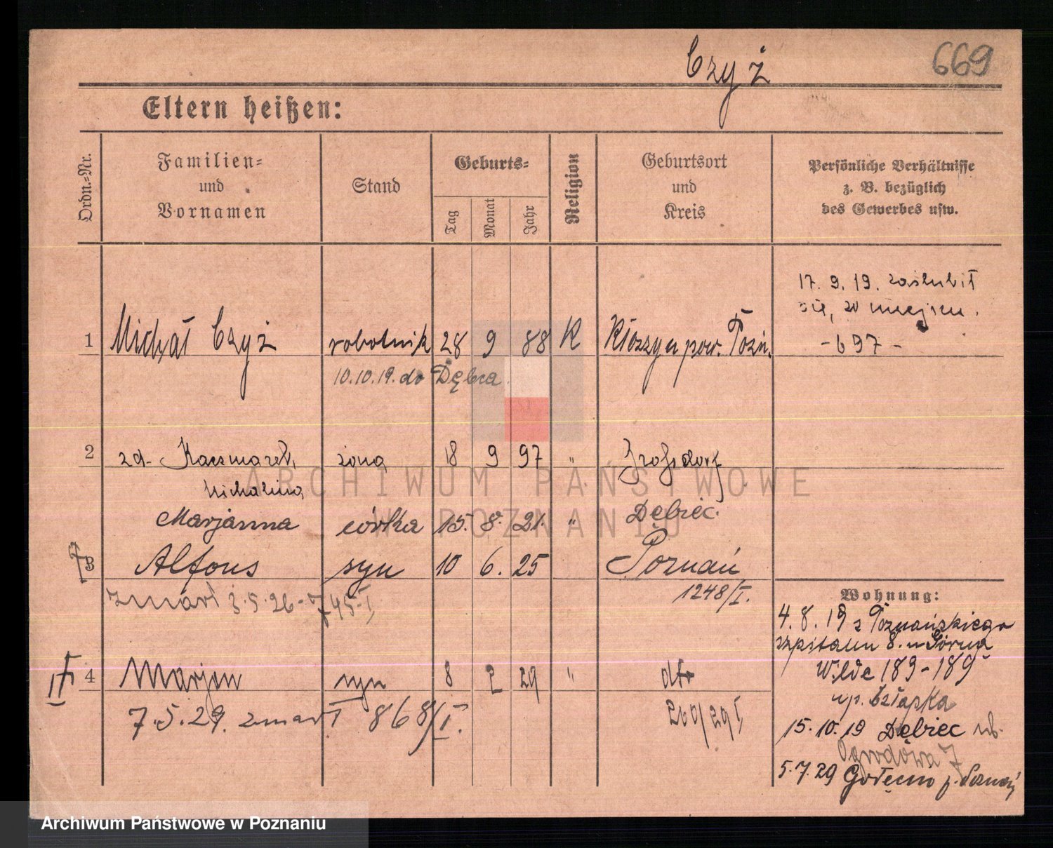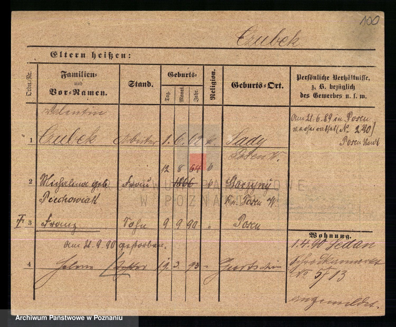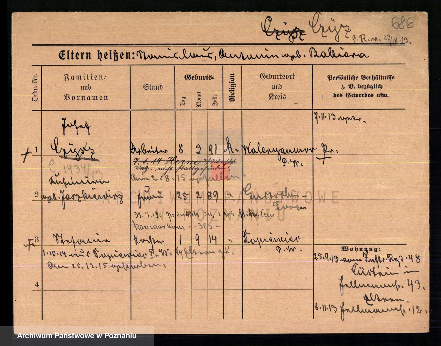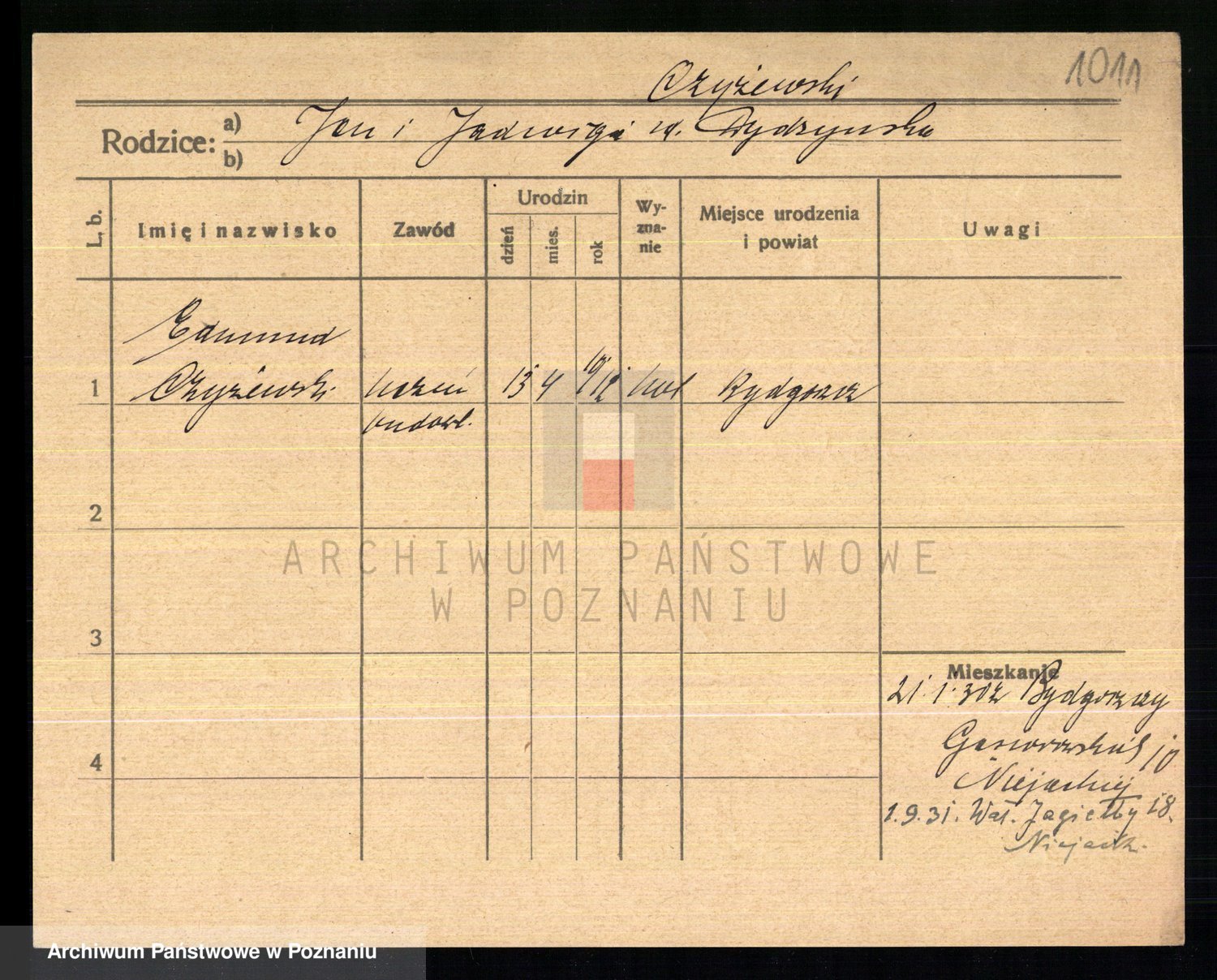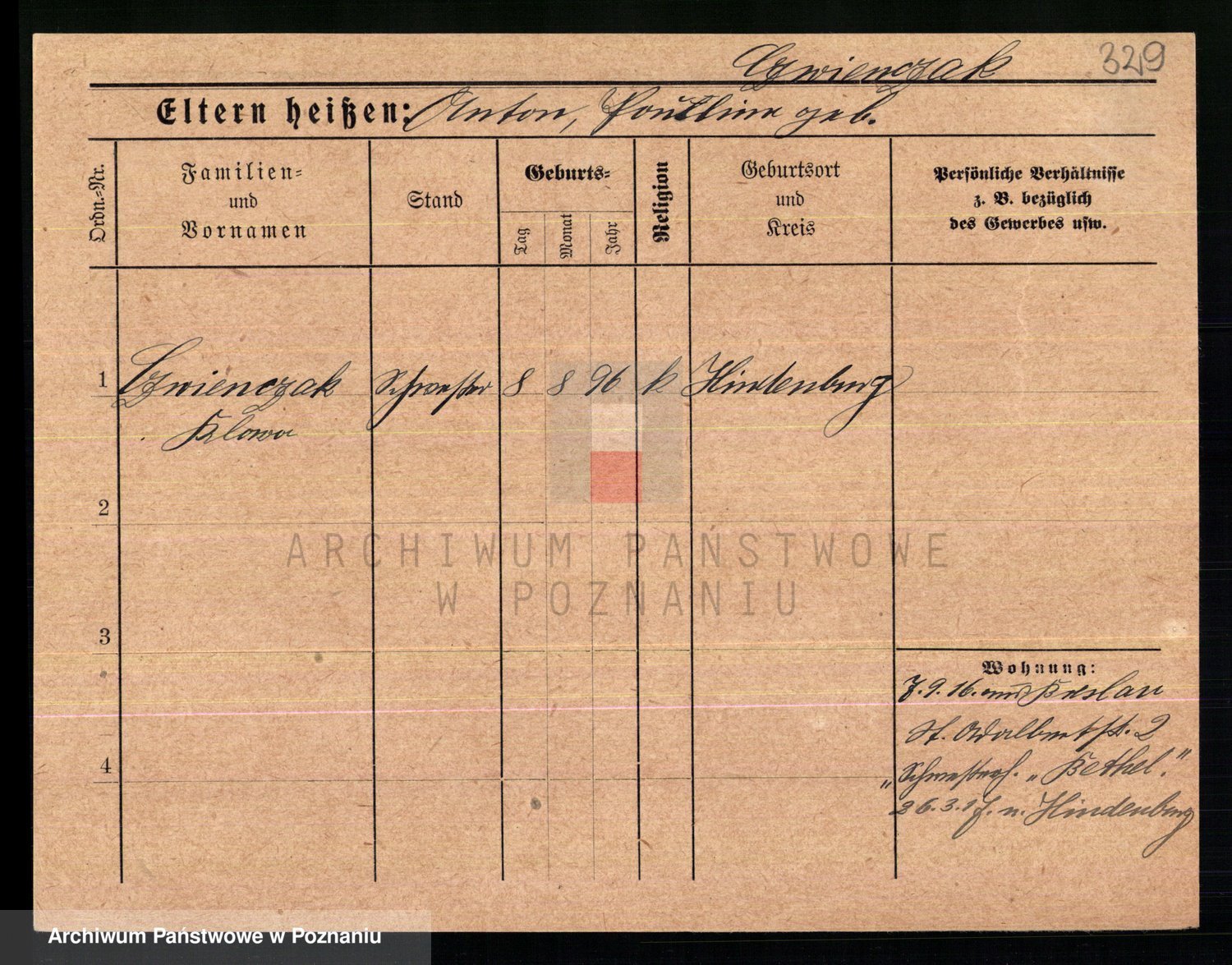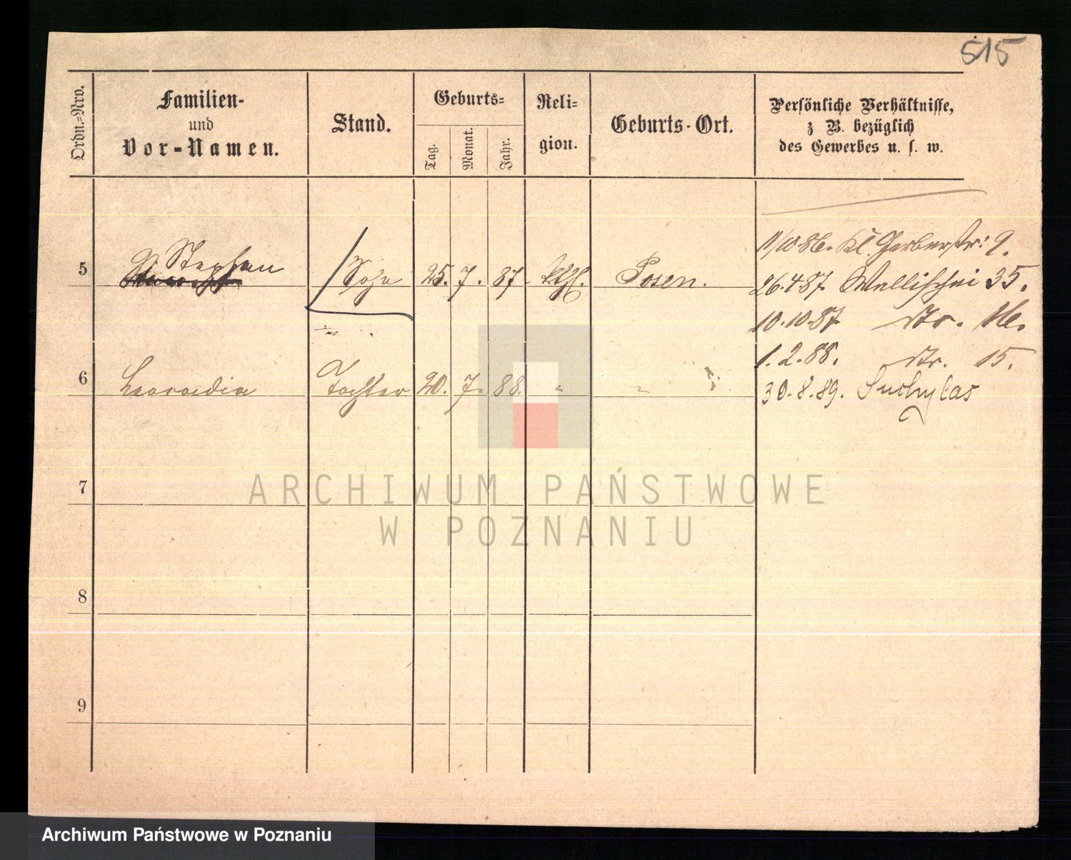 Podgląd karty osobowej dostępny jest po kliknięciu na nazwisko lub ikonkę karty. Można dokonywać powiększenia (ikony na górze) lub przechodzić między kolejnymi skanami (strzałki po bokach).