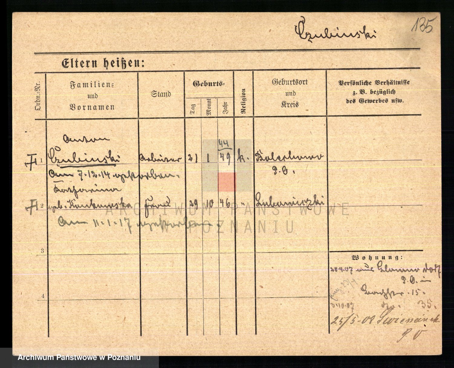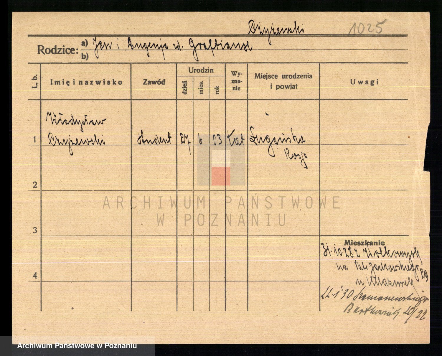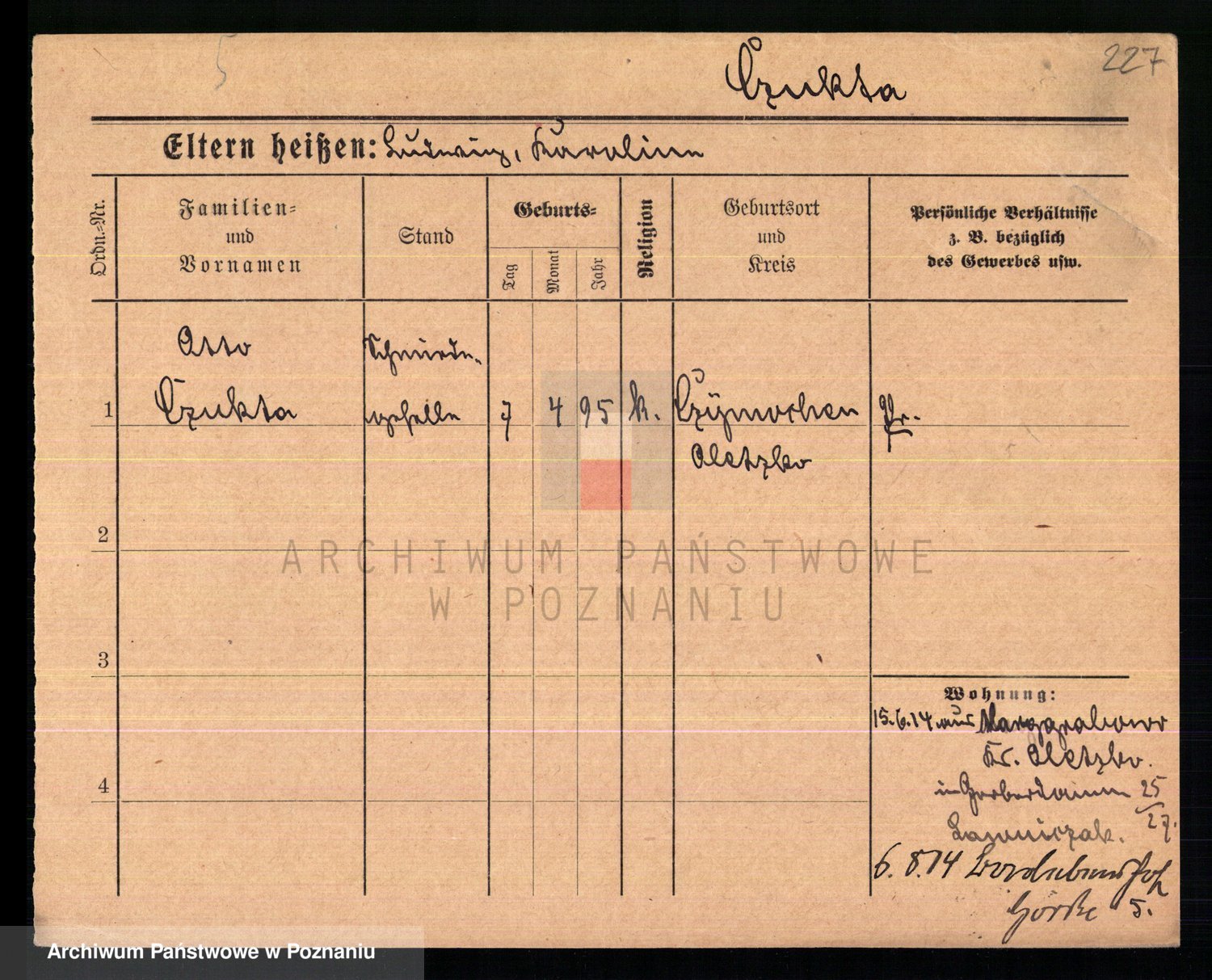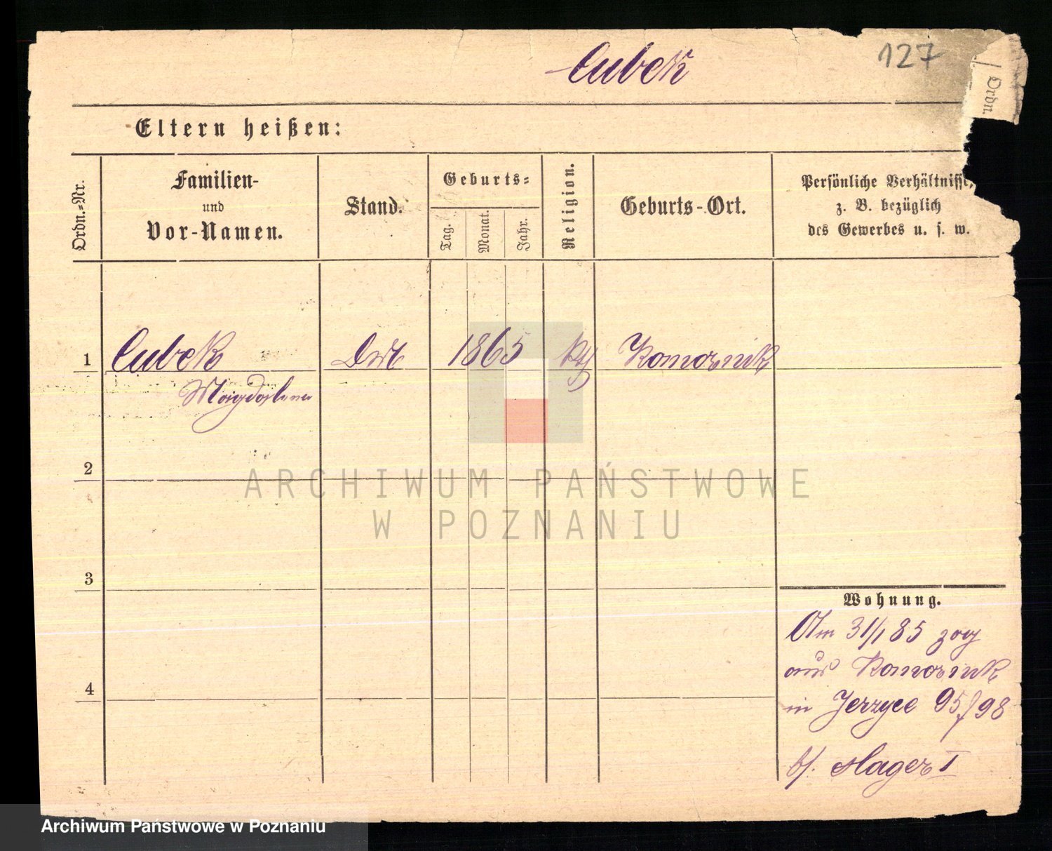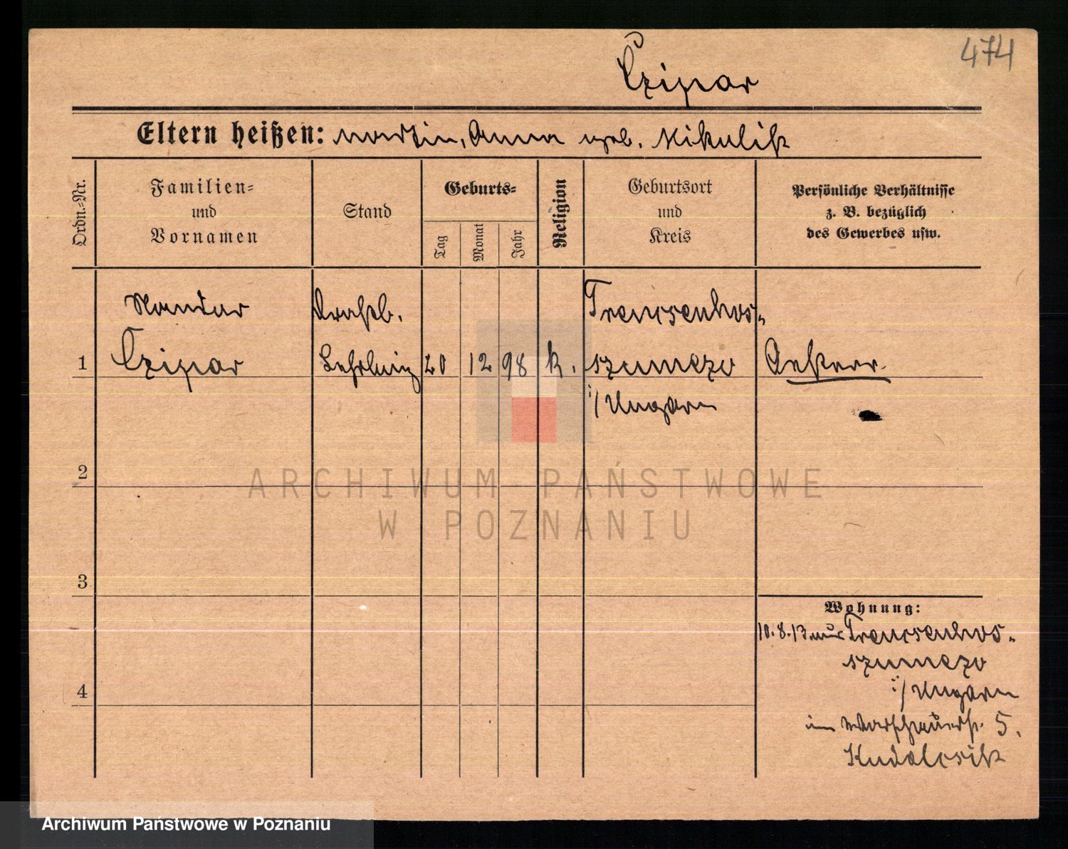 Podgląd karty osobowej dostępny jest po kliknięciu na nazwisko lub ikonkę karty. Można dokonywać powiększenia (ikony na górze) lub przechodzić między kolejnymi skanami (strzałki po bokach).