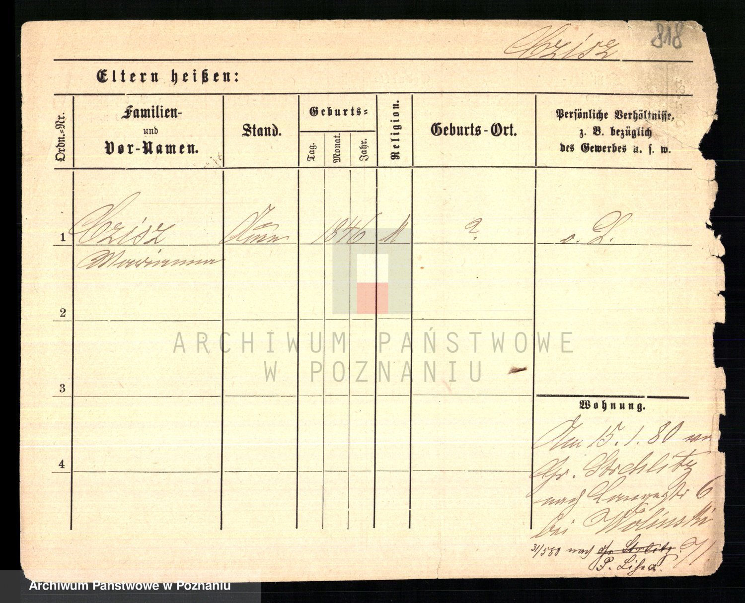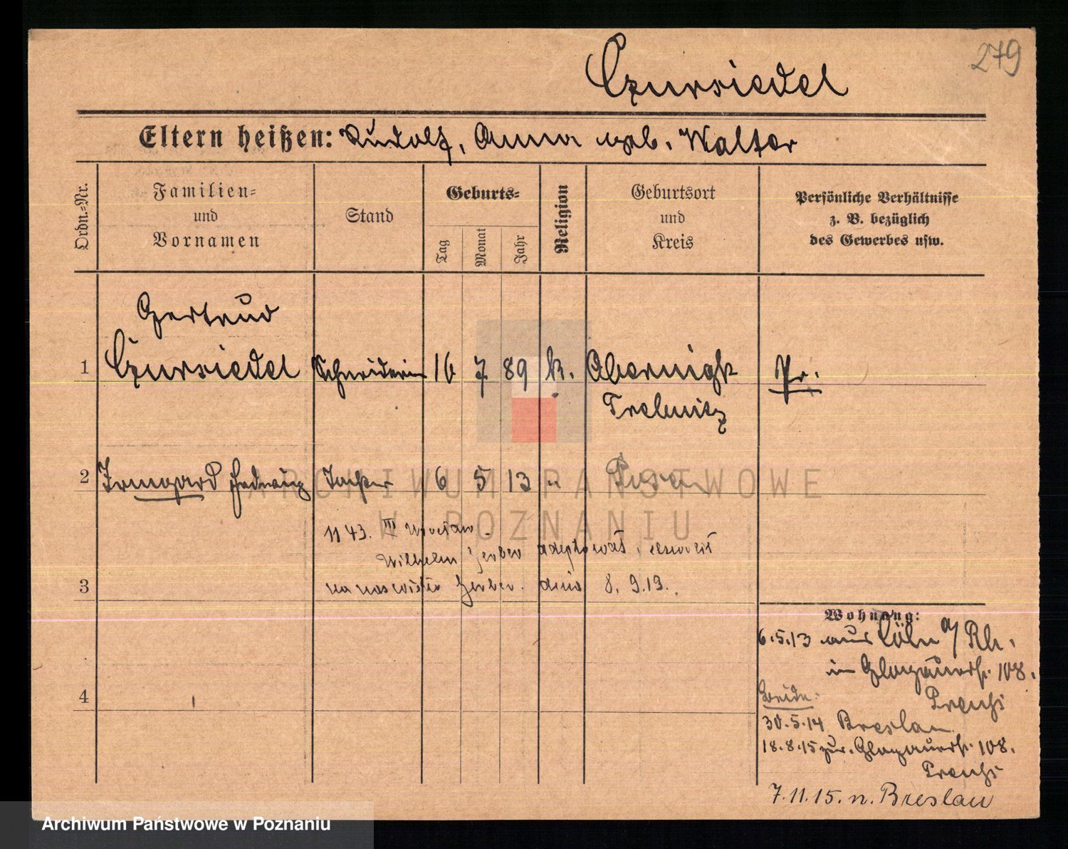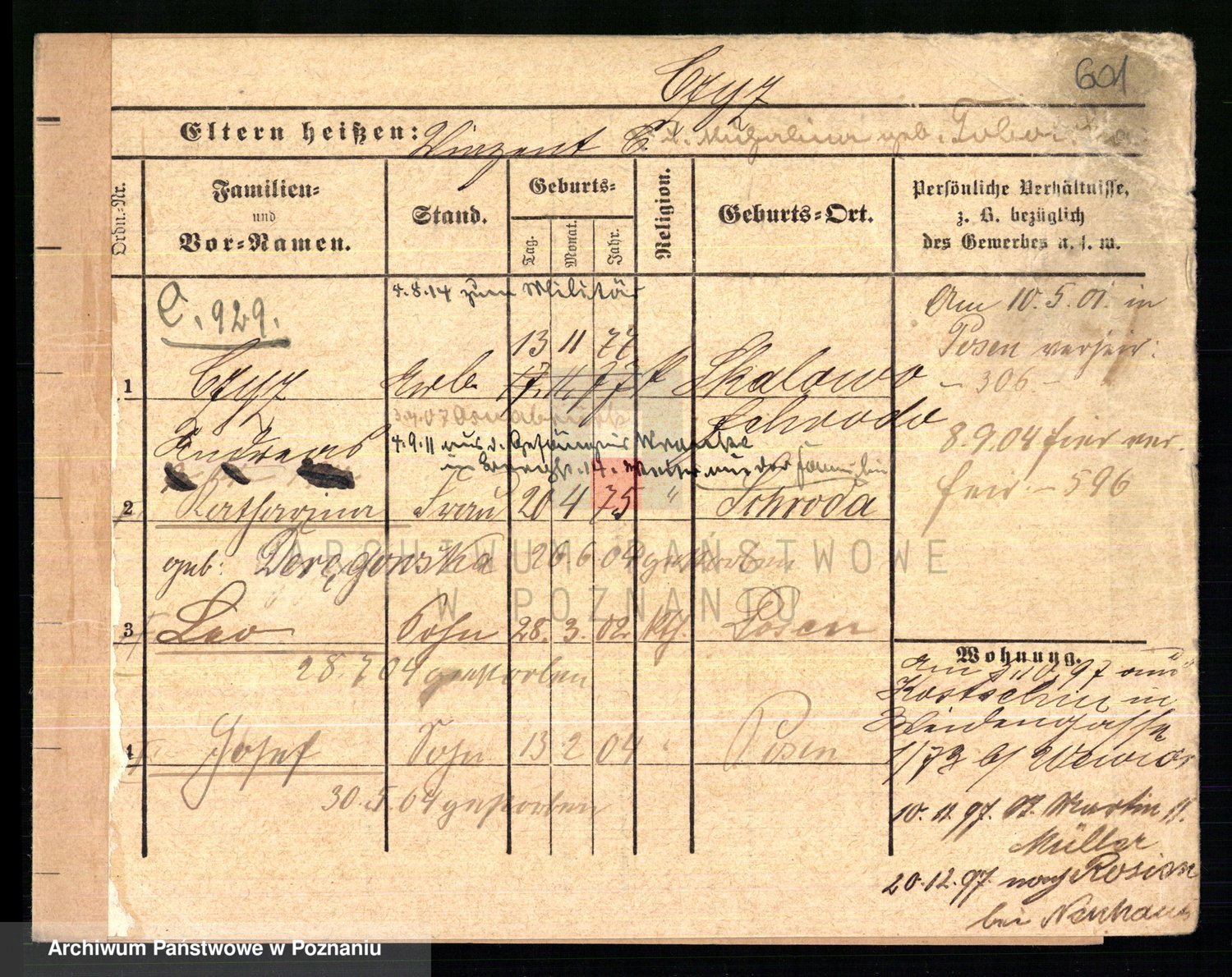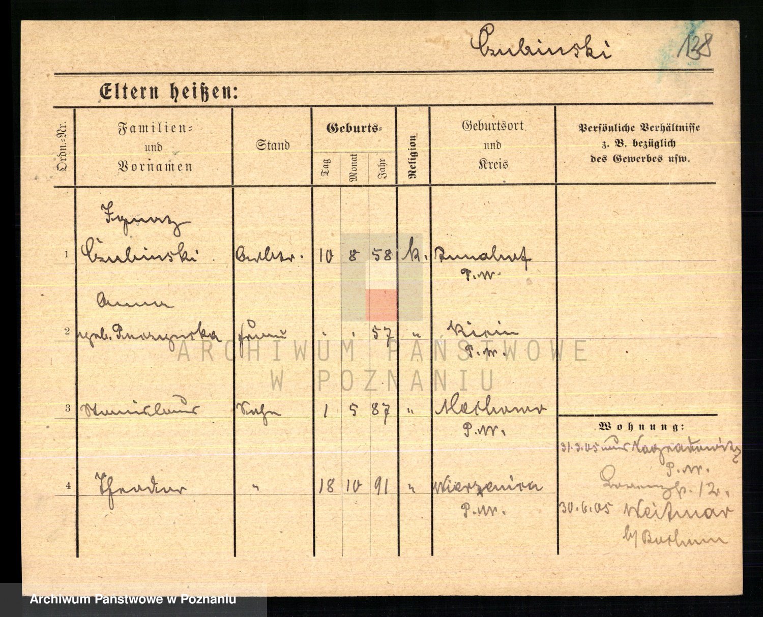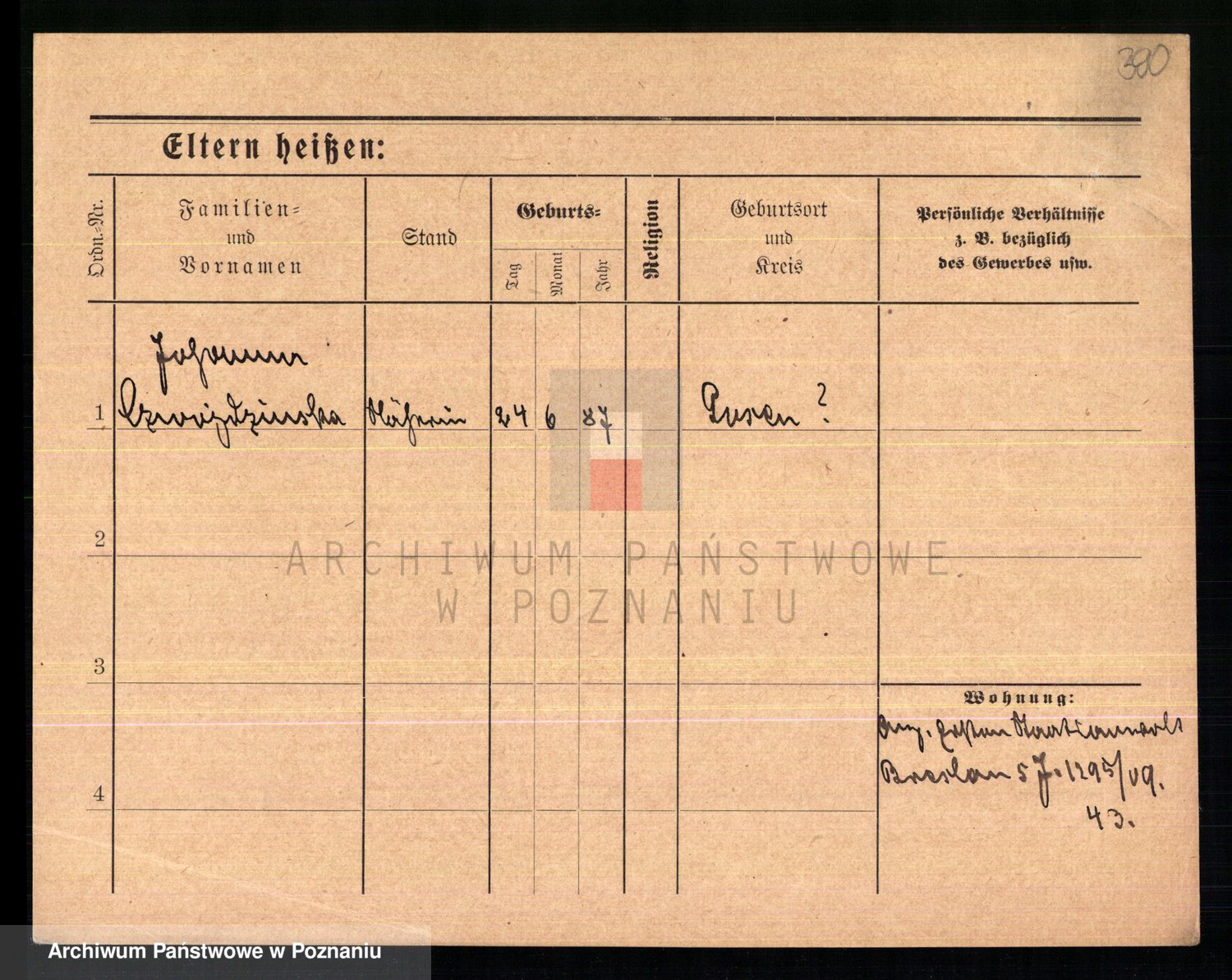 Podgląd karty osobowej dostępny jest po kliknięciu na nazwisko lub ikonkę karty. Można dokonywać powiększenia (ikony na górze) lub przechodzić między kolejnymi skanami (strzałki po bokach).