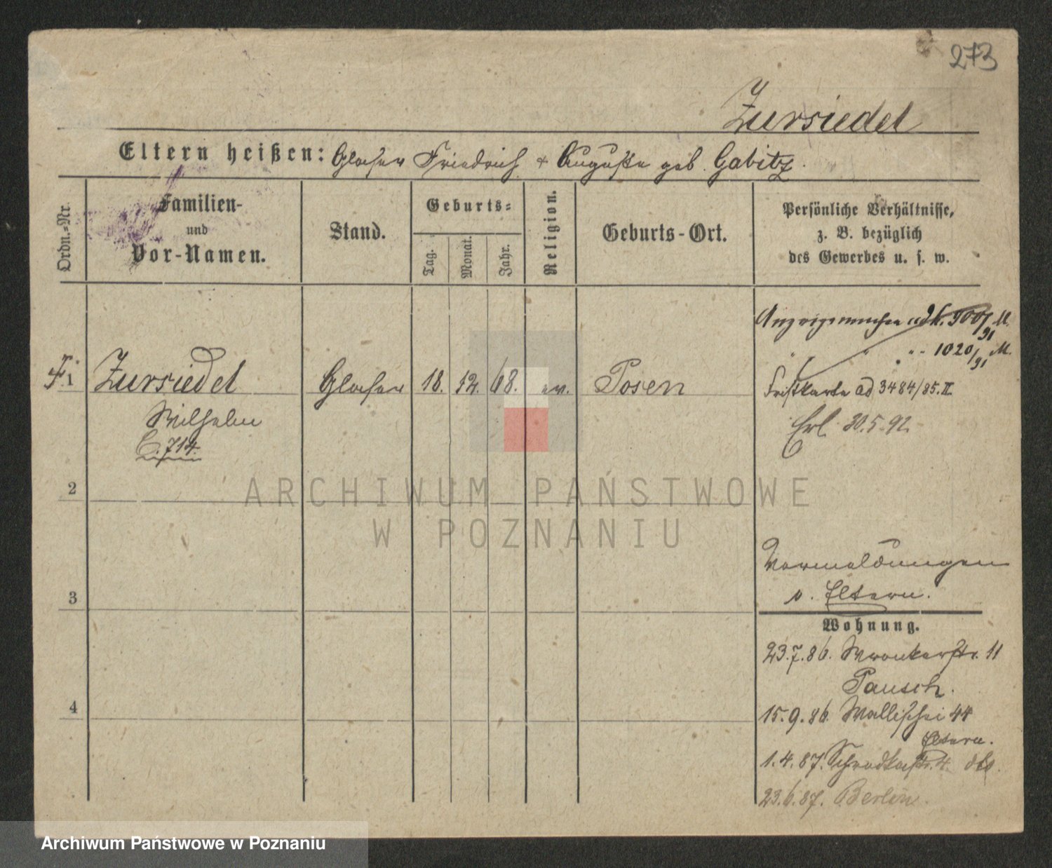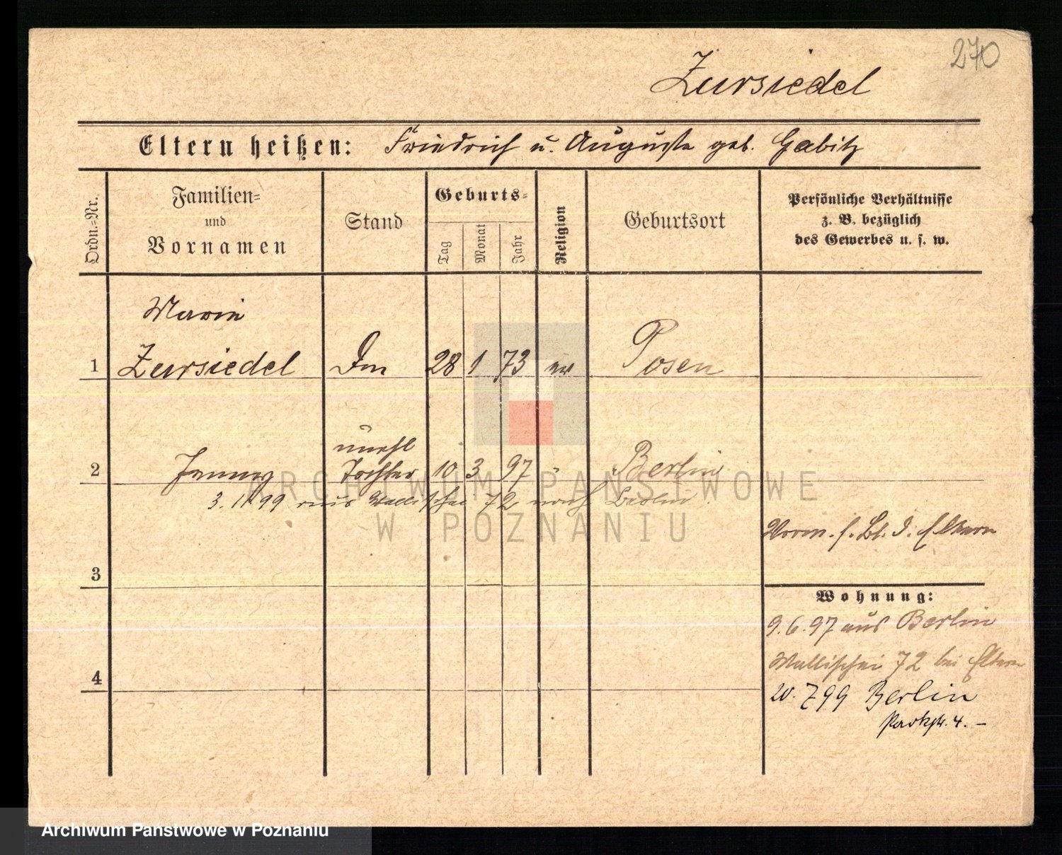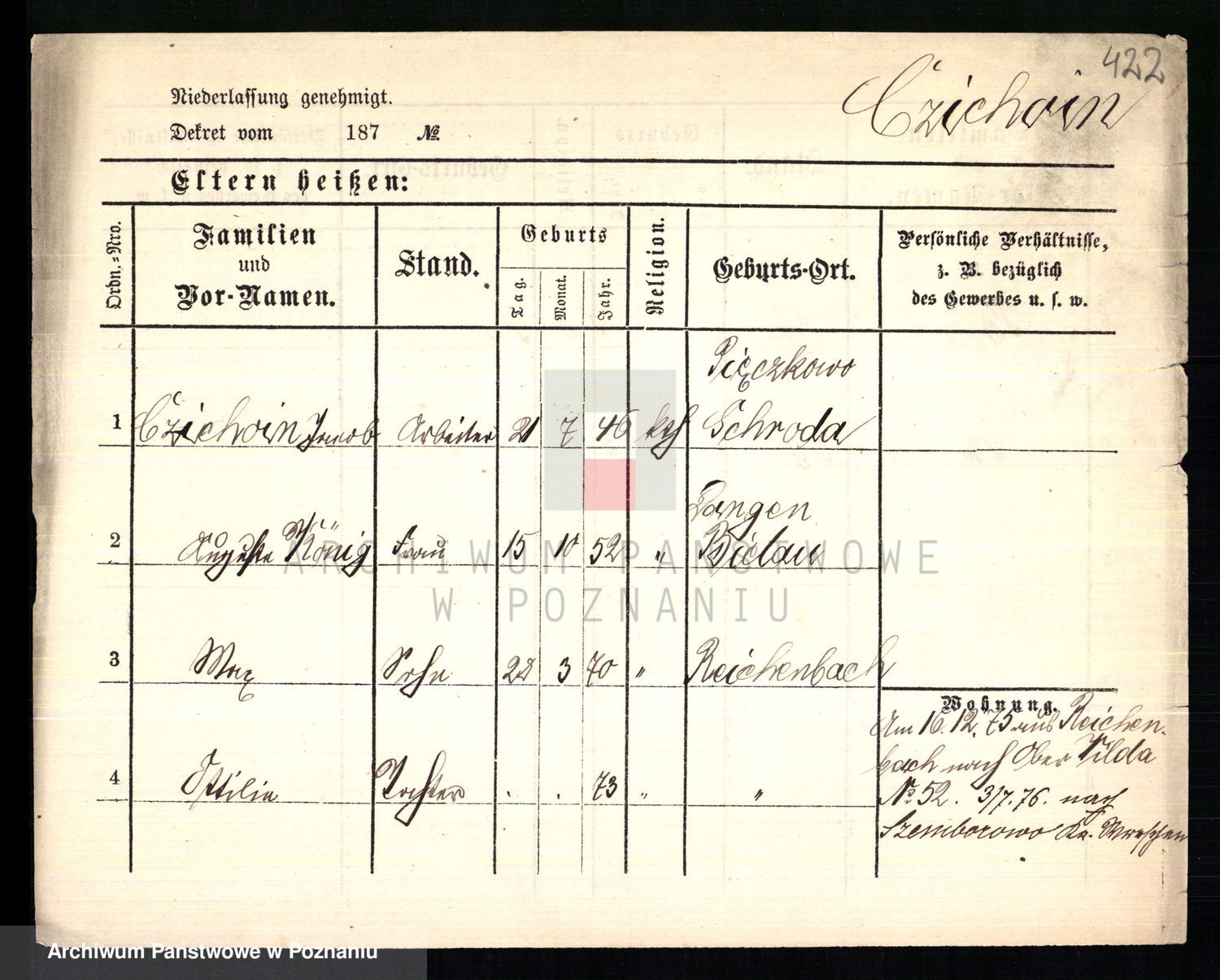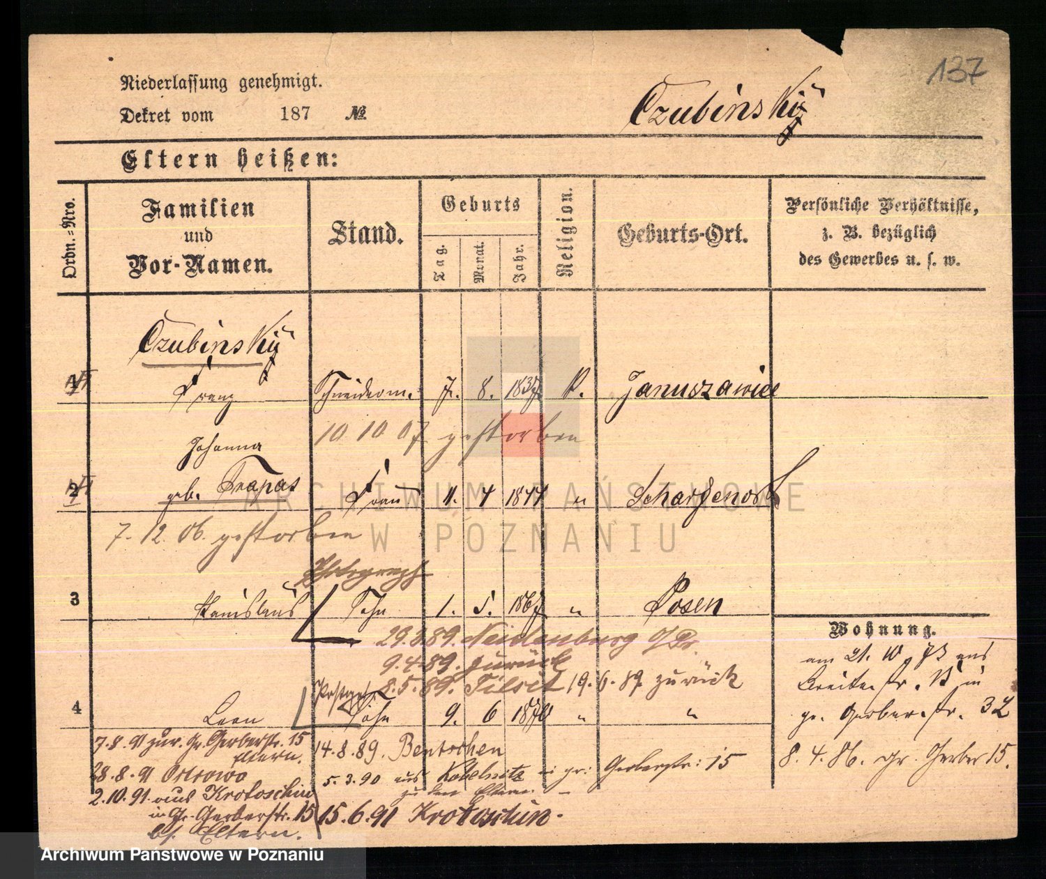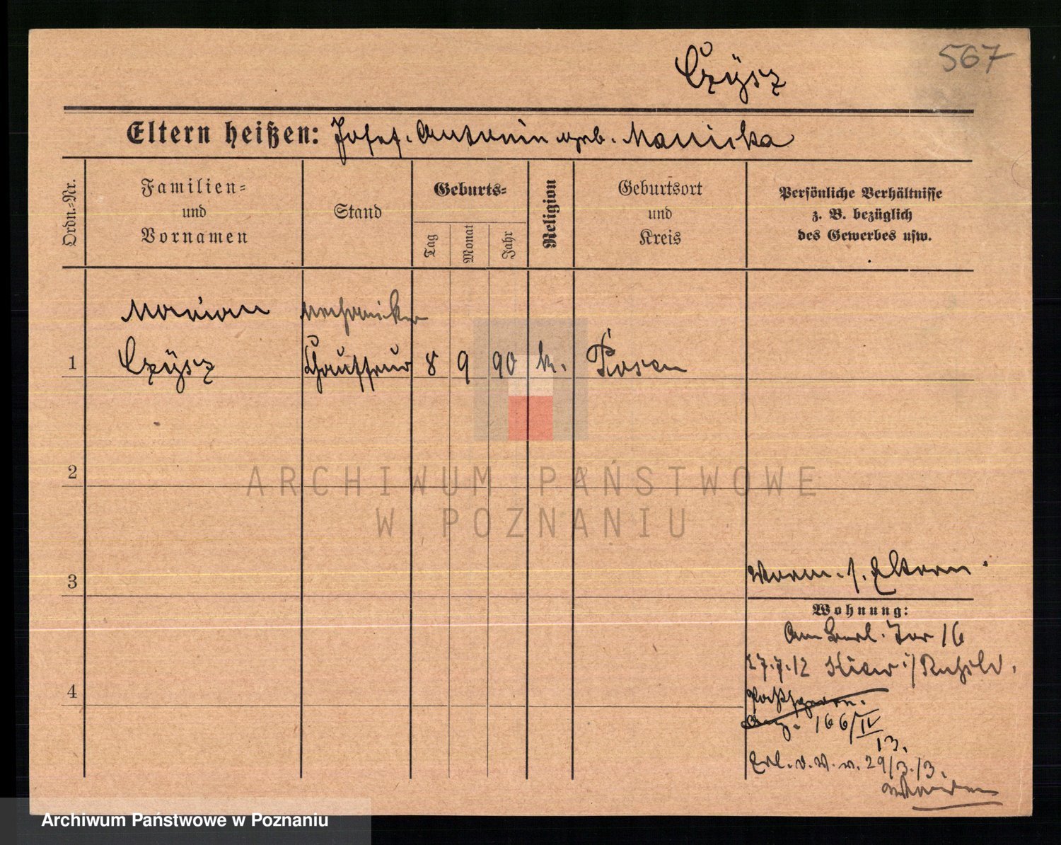 Podgląd karty osobowej dostępny jest po kliknięciu na nazwisko lub ikonkę karty. Można dokonywać powiększenia (ikony na górze) lub przechodzić między kolejnymi skanami (strzałki po bokach).
