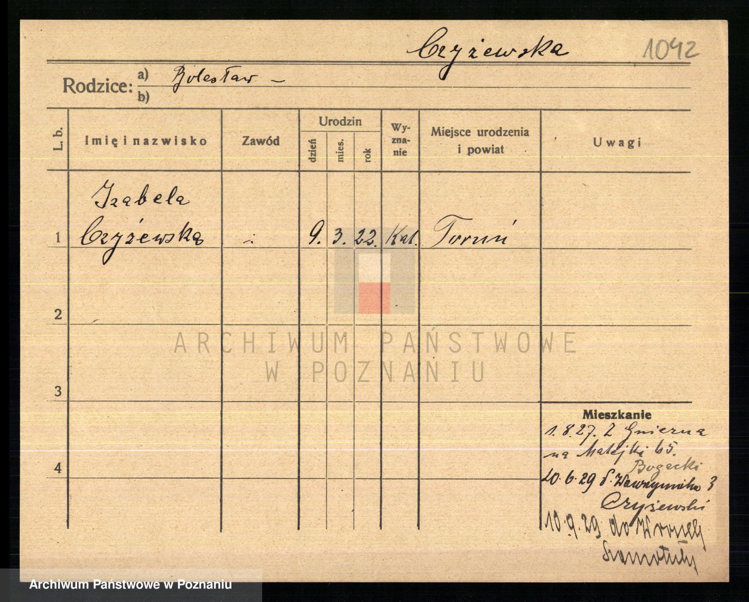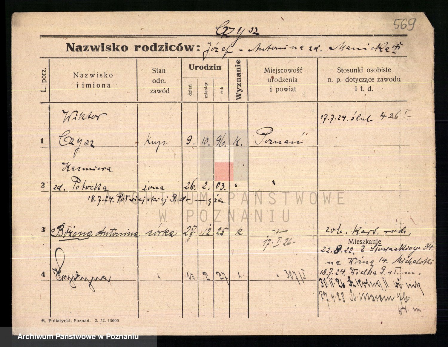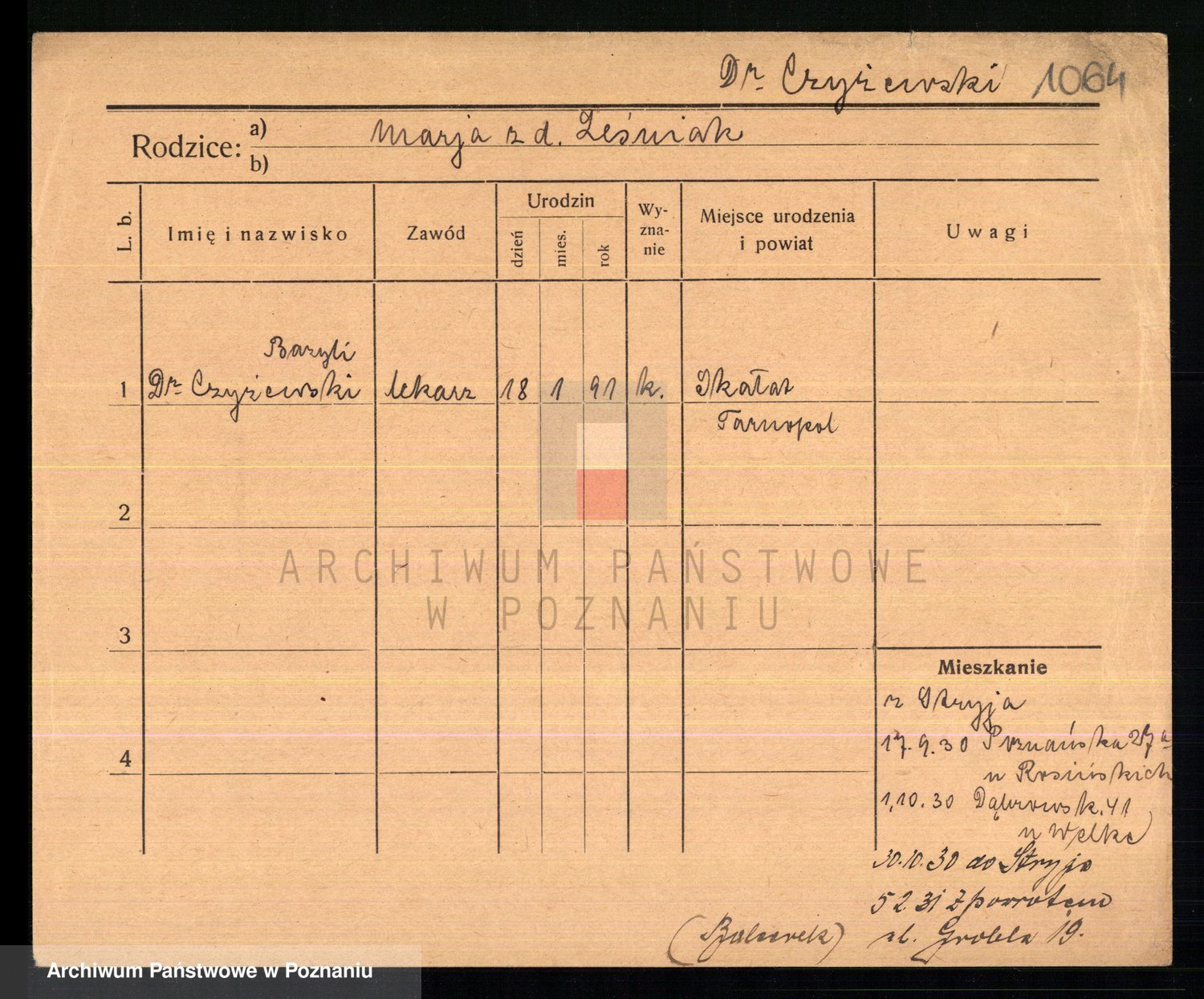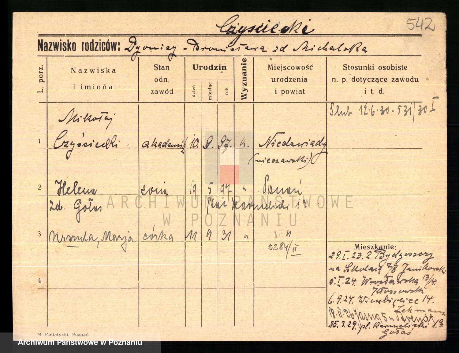 Czyzowski z d. Mos, Marja