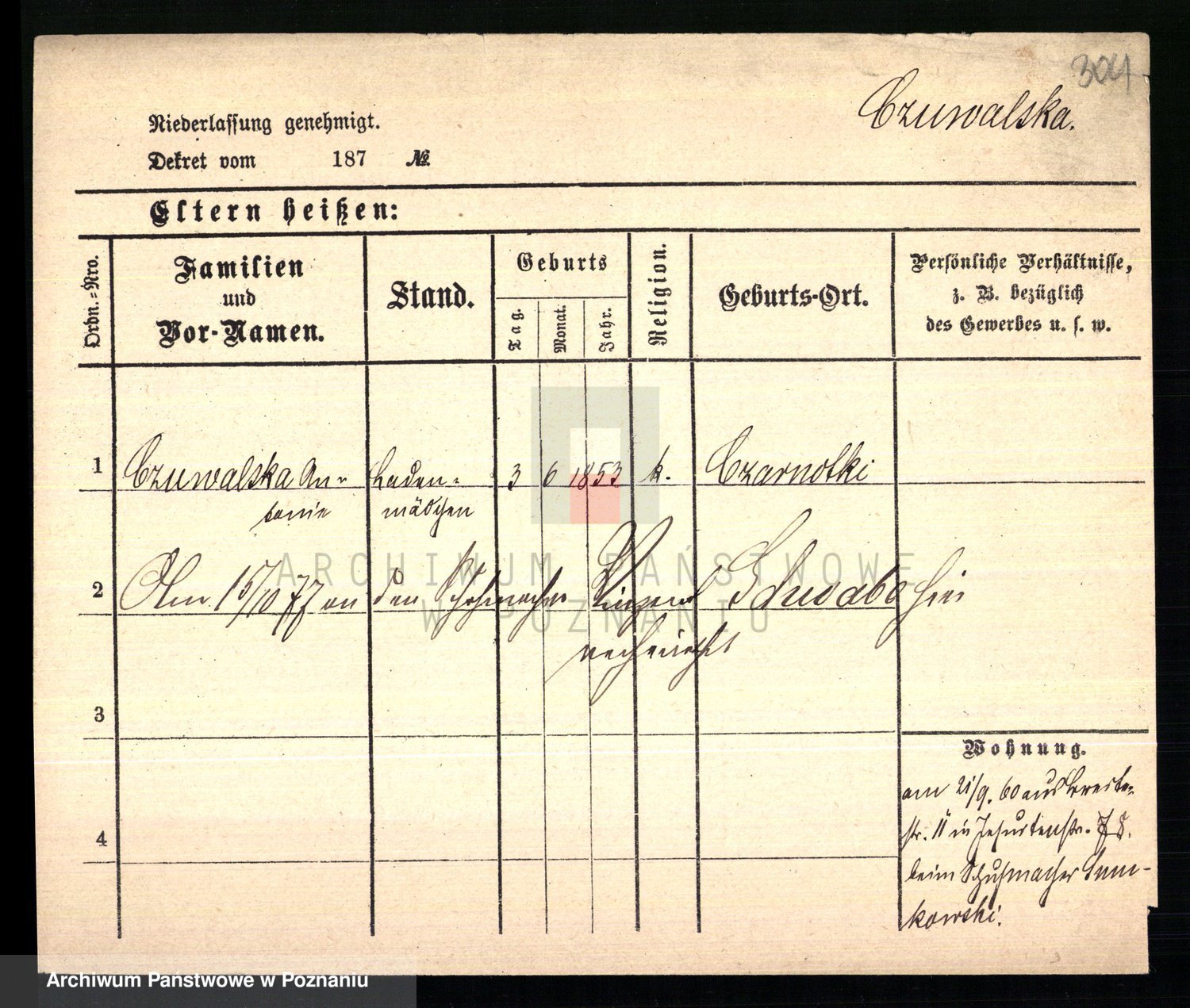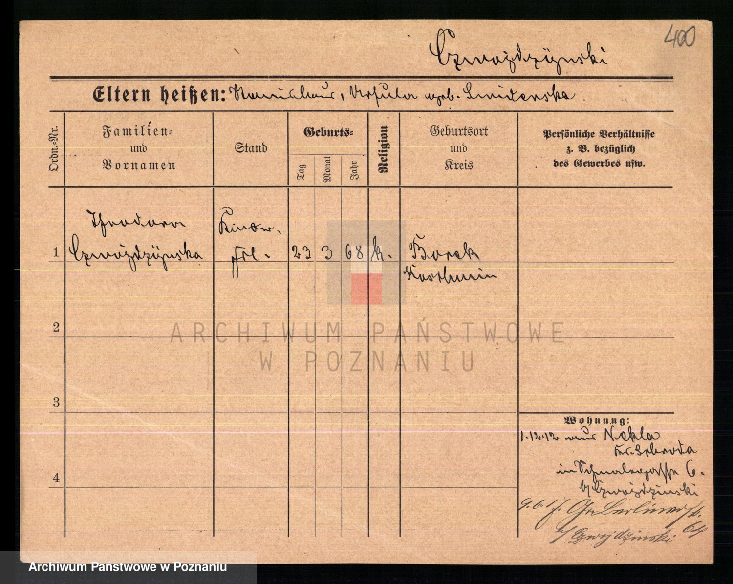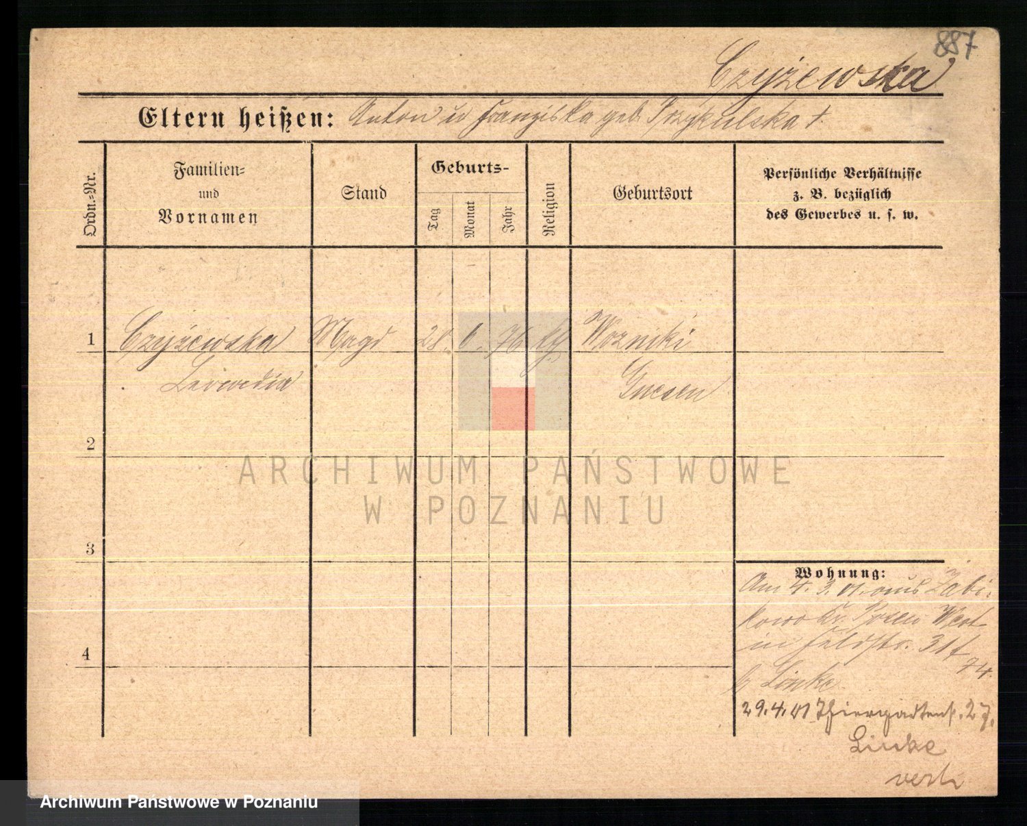 Czyżykowski z d. Bialecka I voto Swoboda Kaisertreu von, Wenzeslawa