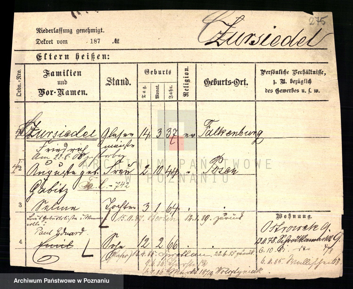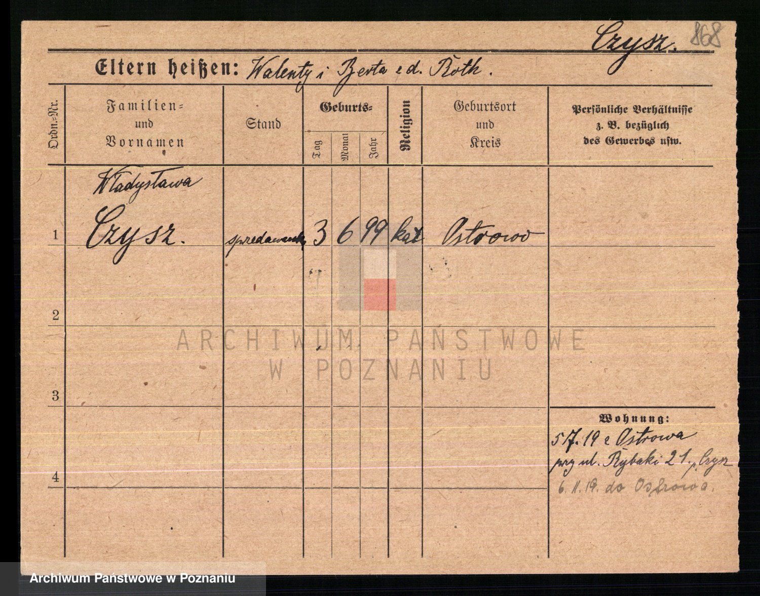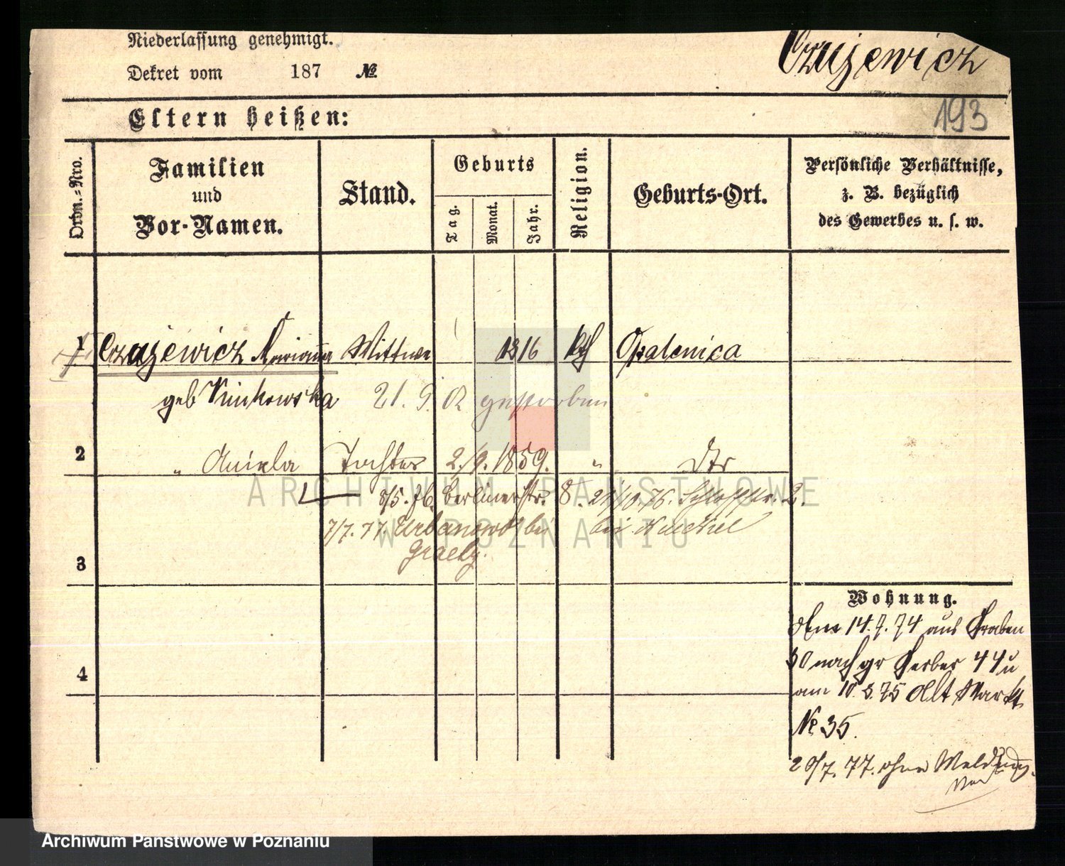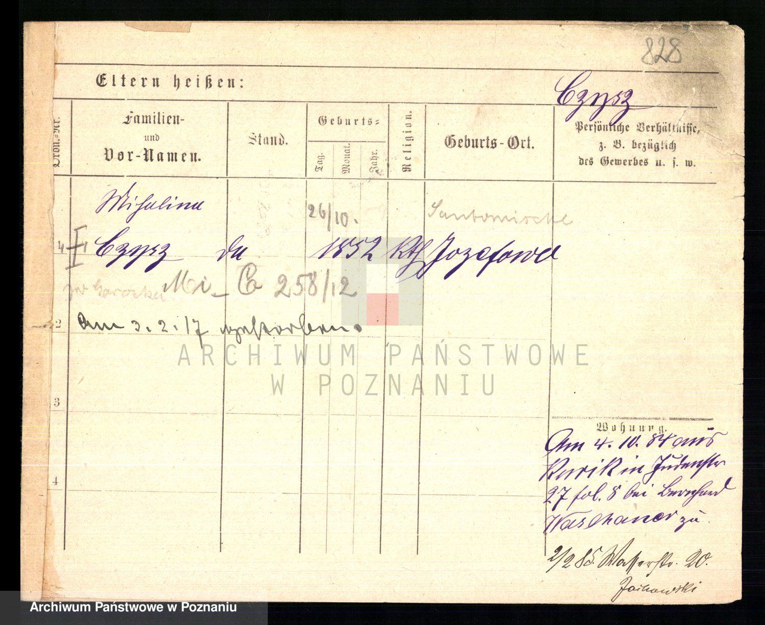 Czyżykowski z d. Bialecka I voto Swoboda Kaisertreu von, Wenzeslawa