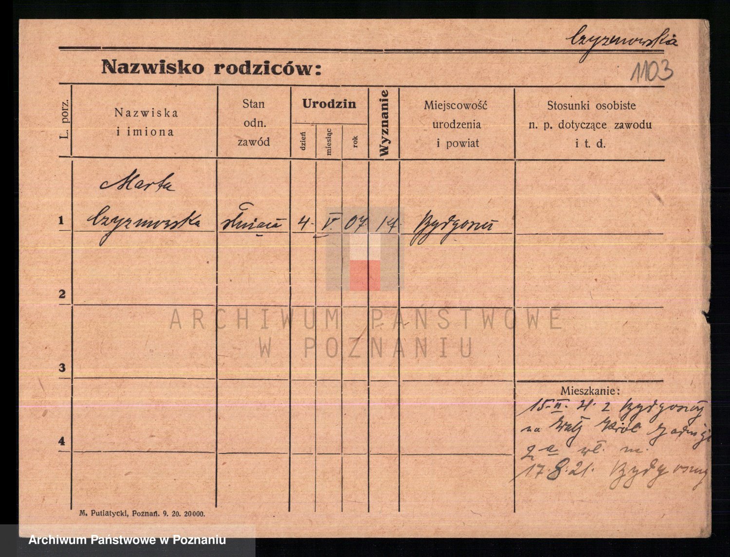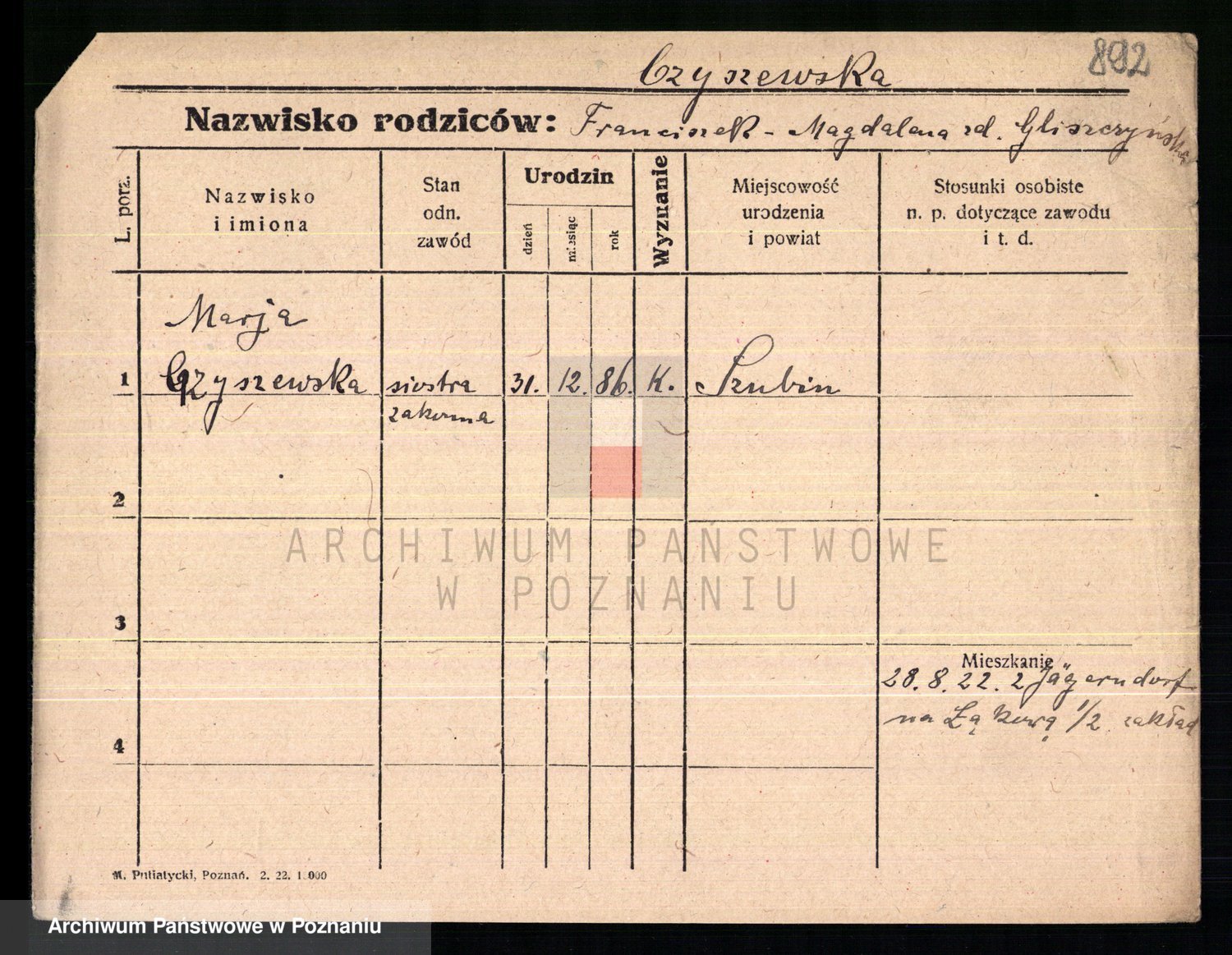 Czyżykowski z d. Moszynska, Marianna