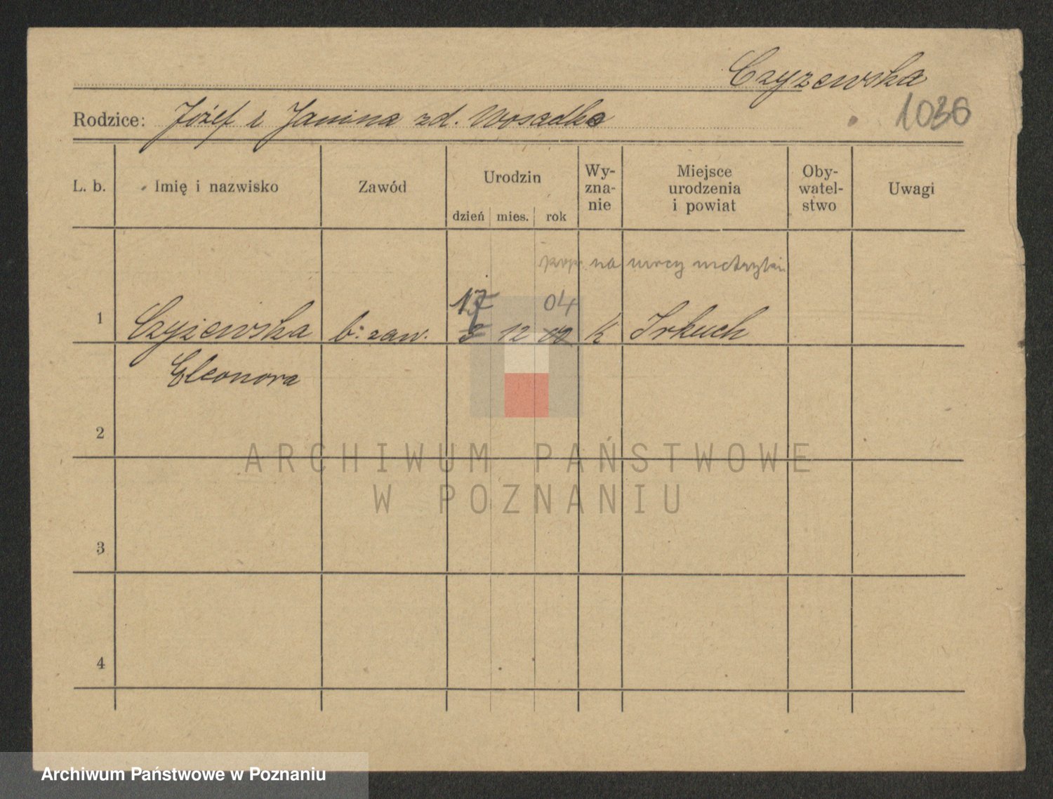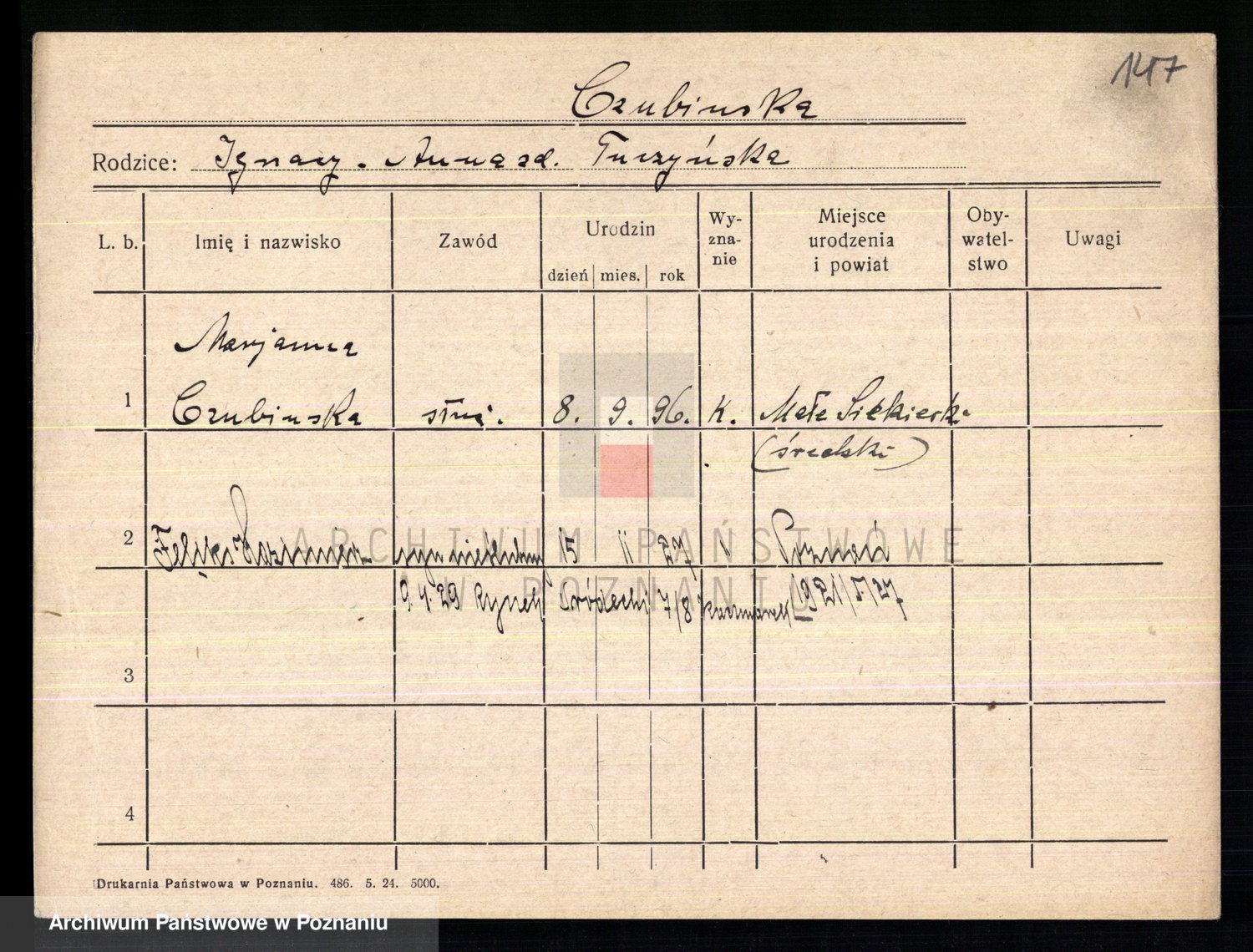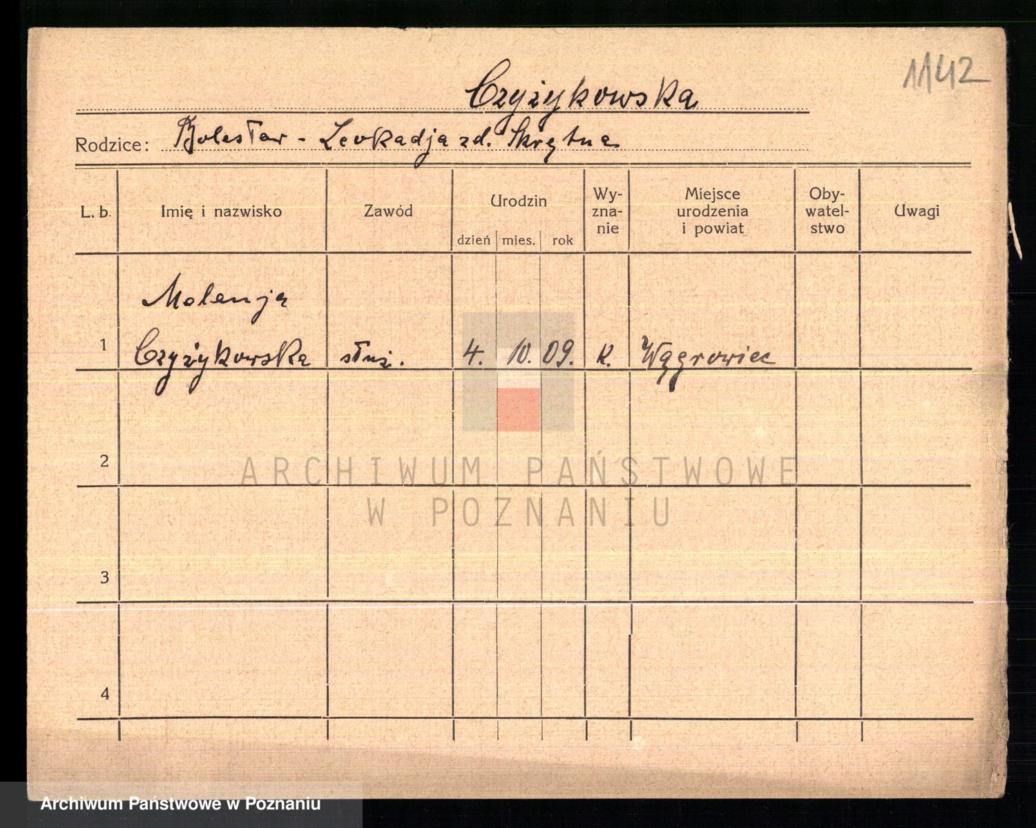 Czubala z d. Strachanowska I voto Niezielska, Marja