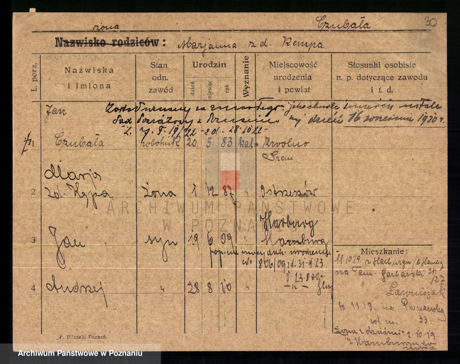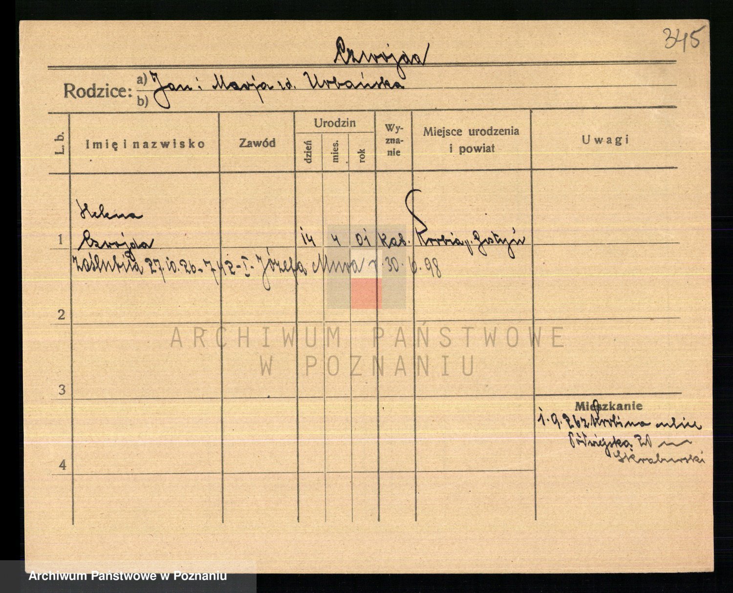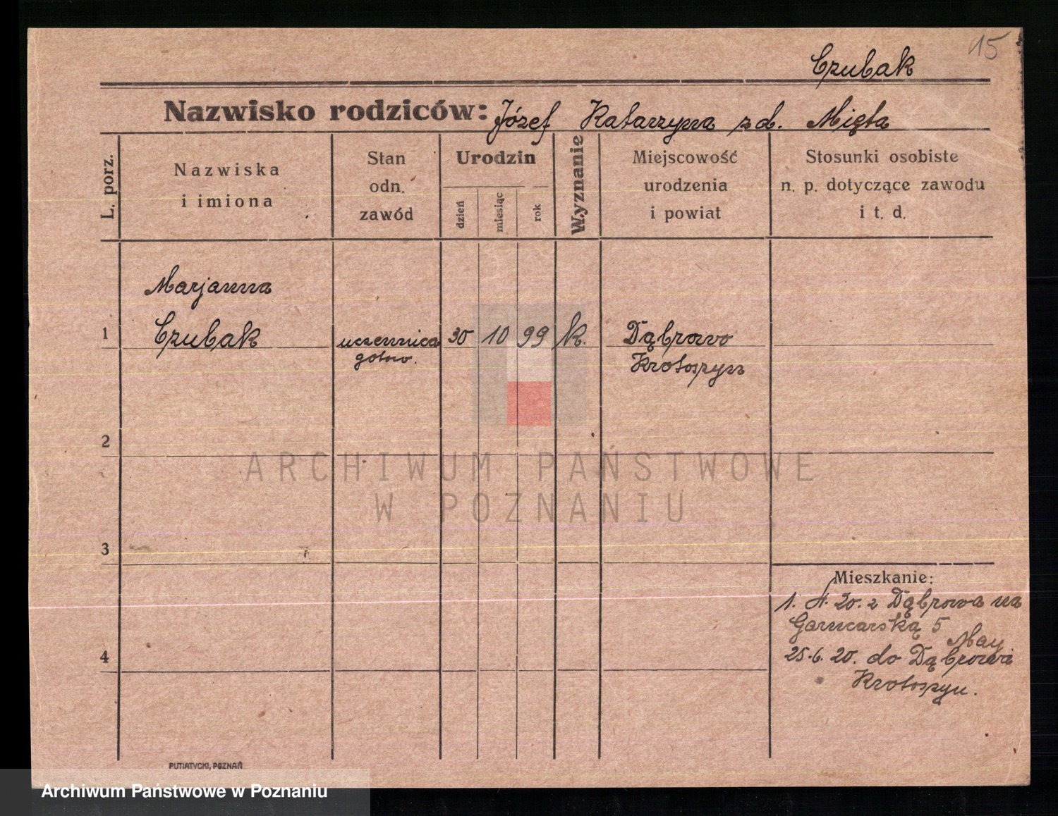 Czubala z d. Strachanowska I voto Niezielska, Marja