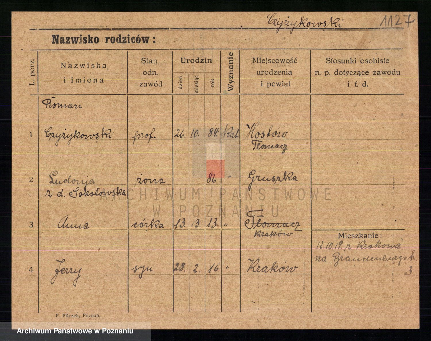 Czyżykowski z d. Sokołowska, Ludonja