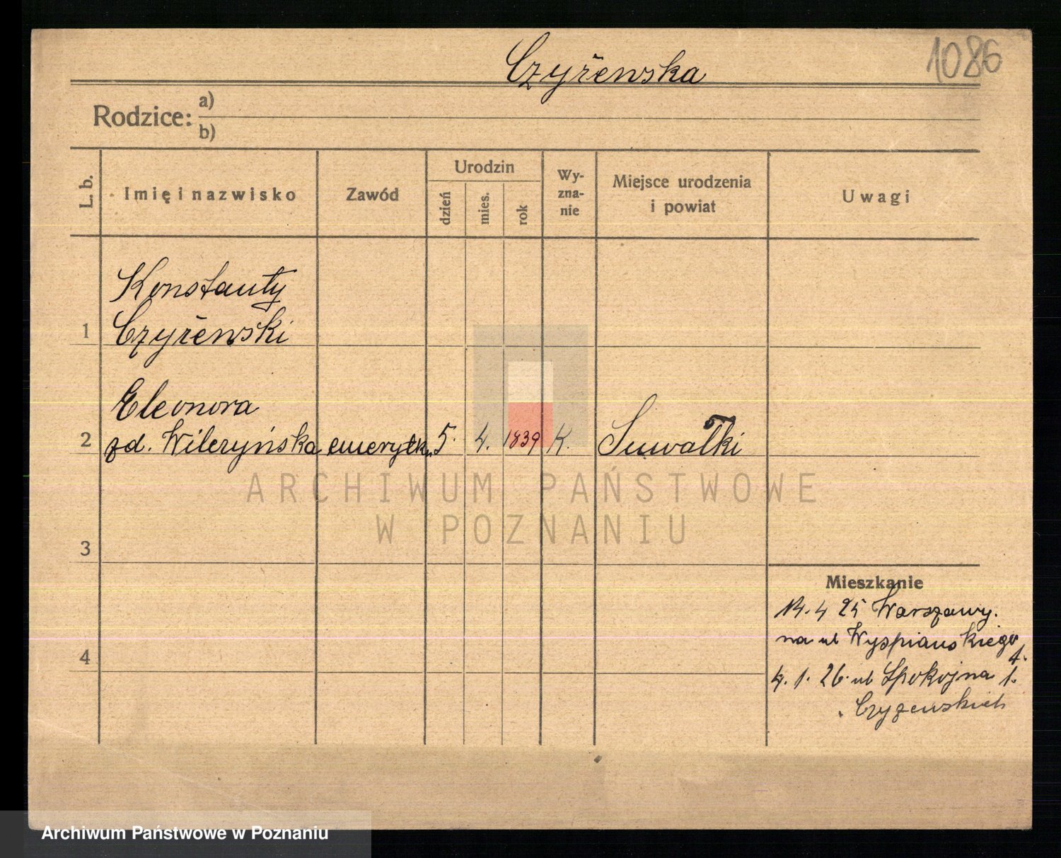 Czyzykowski z d. Skrentua, Leokadia