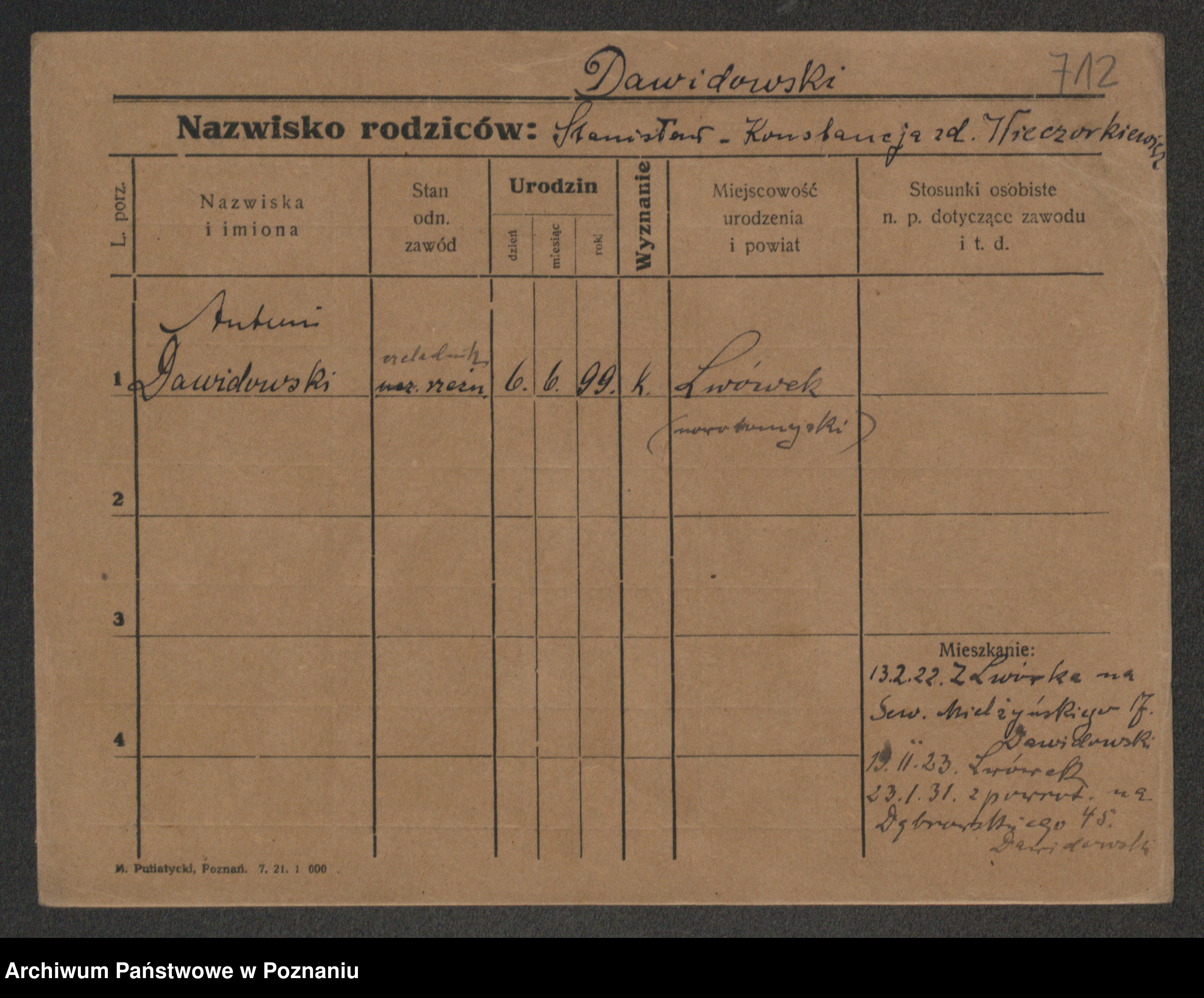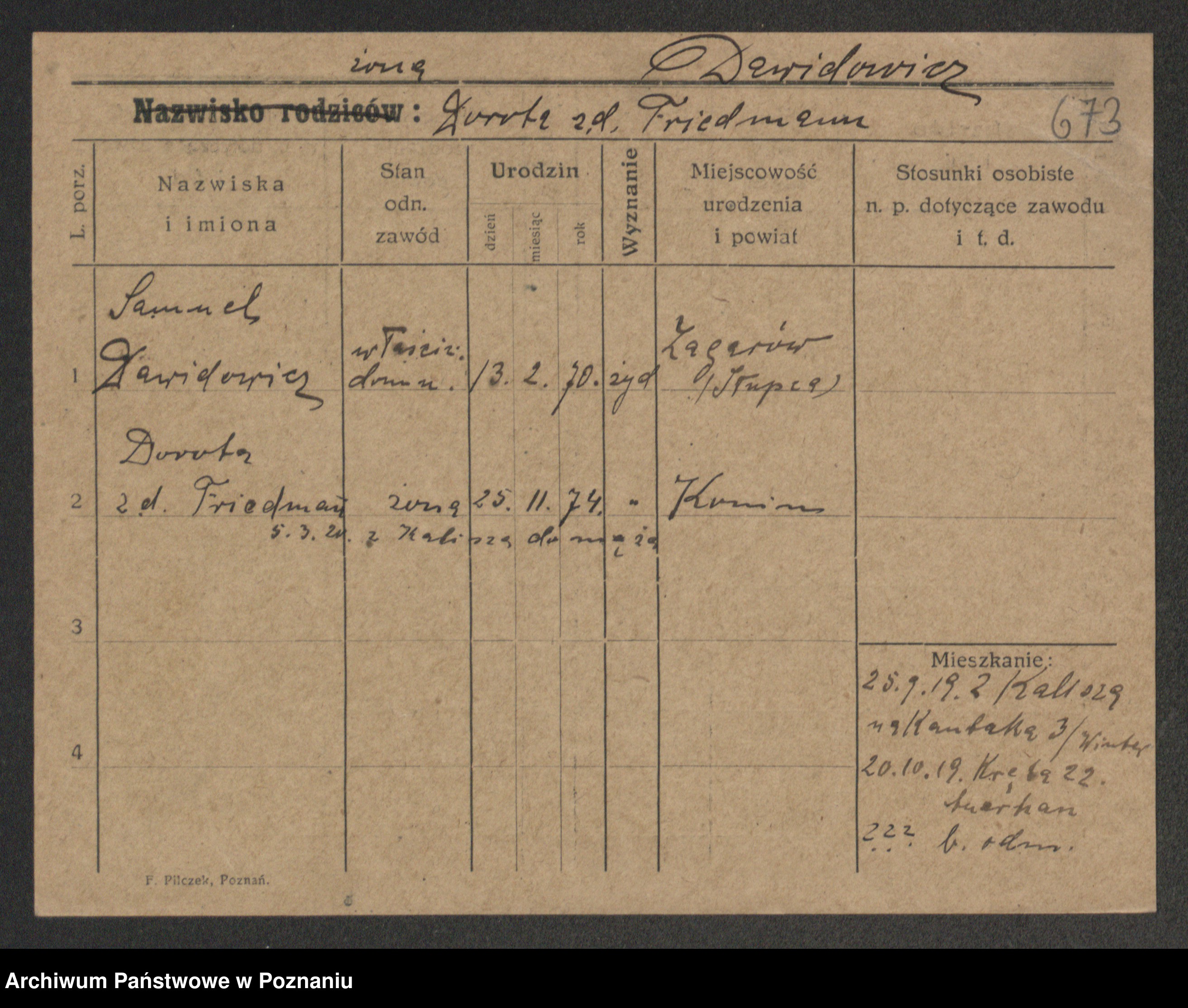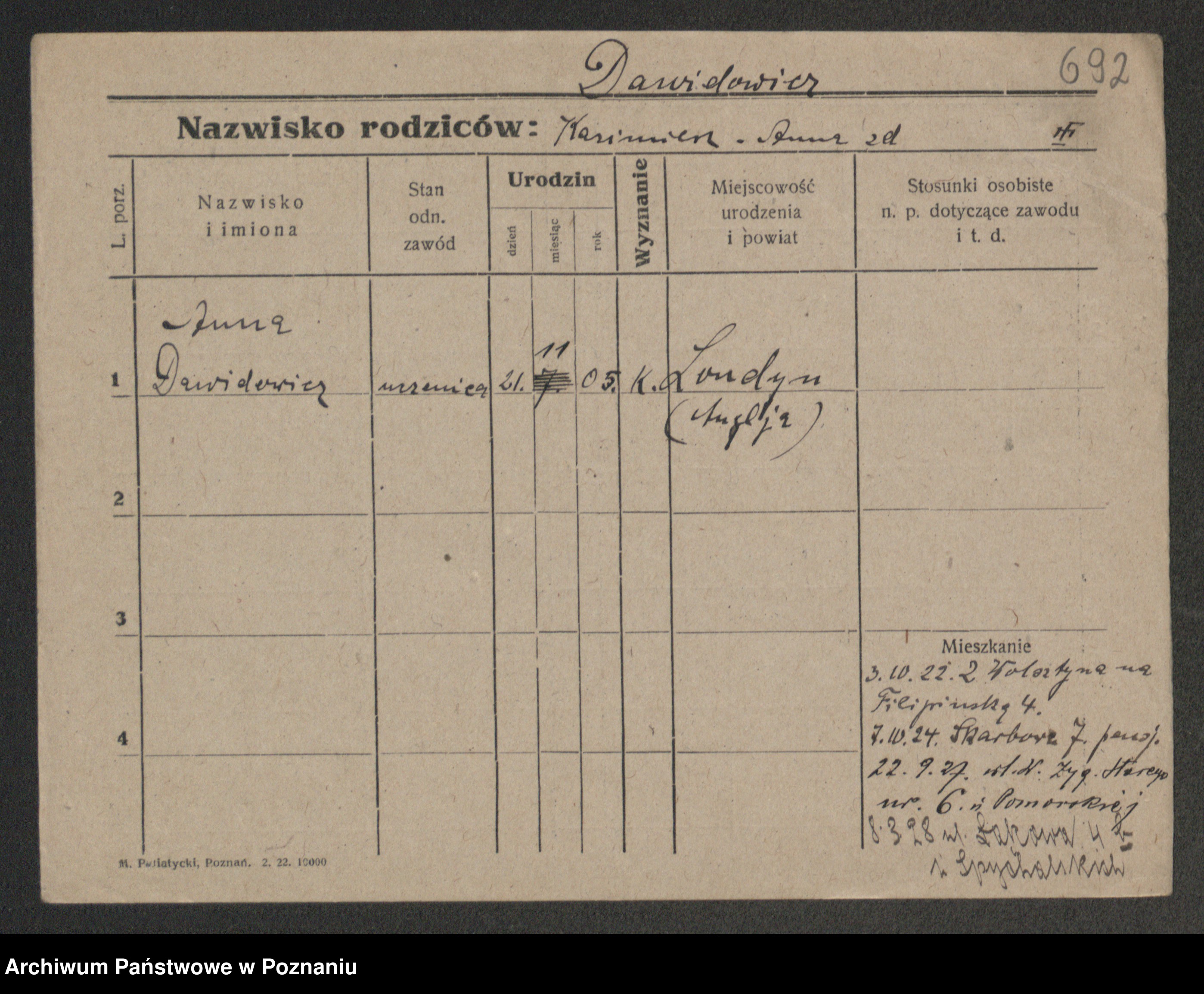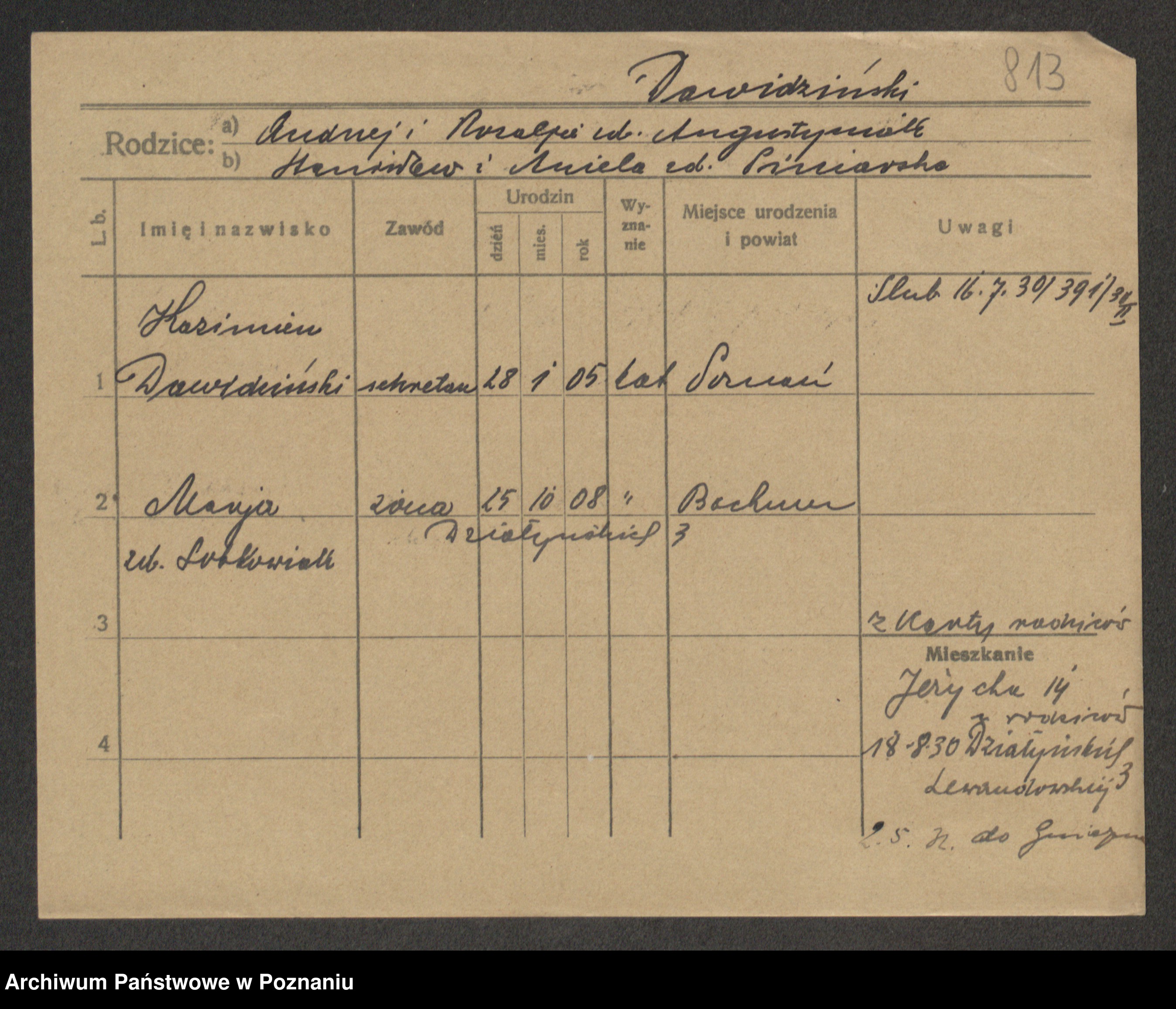 Dawidowicz z.d. Szlamkiewicz, Liewce