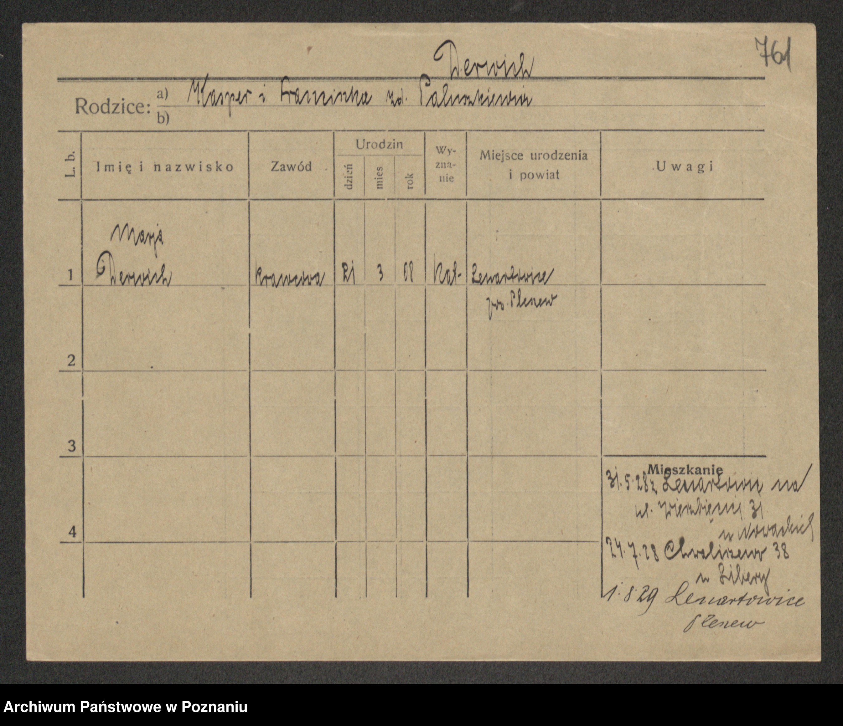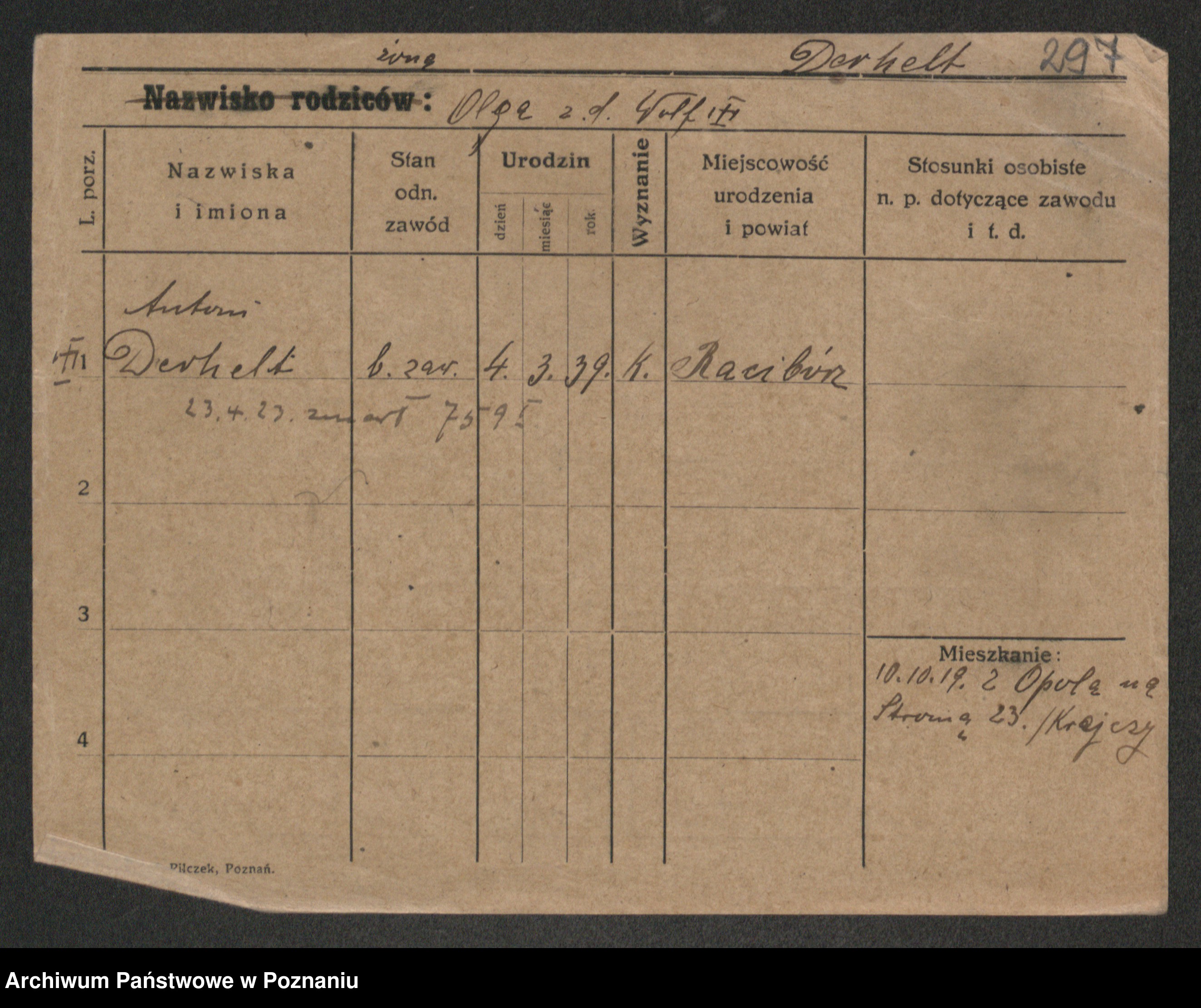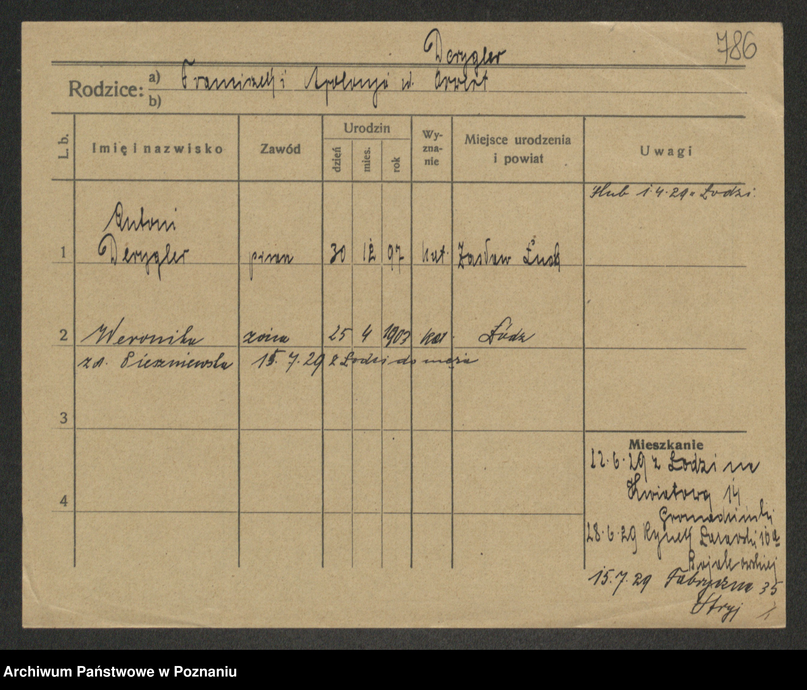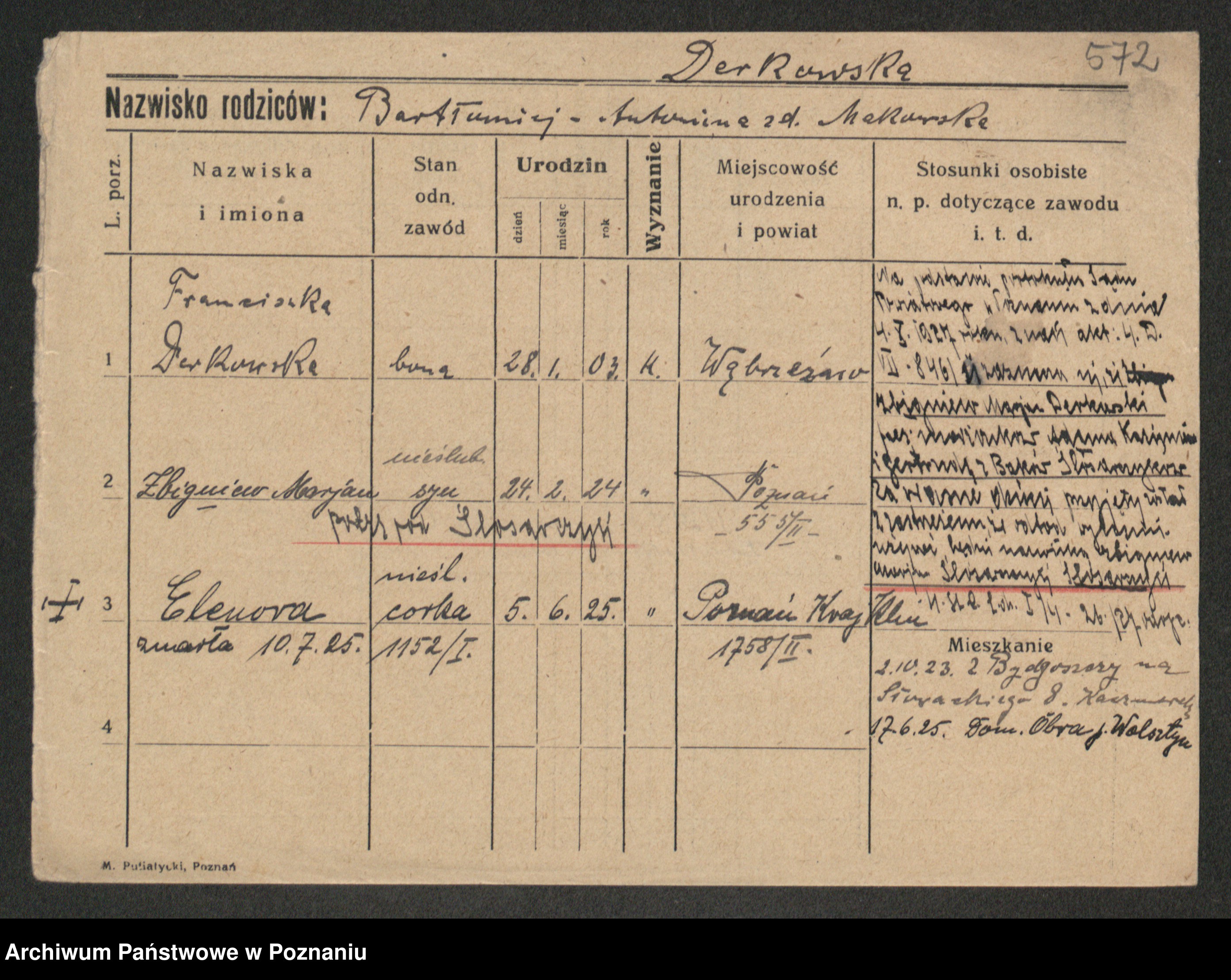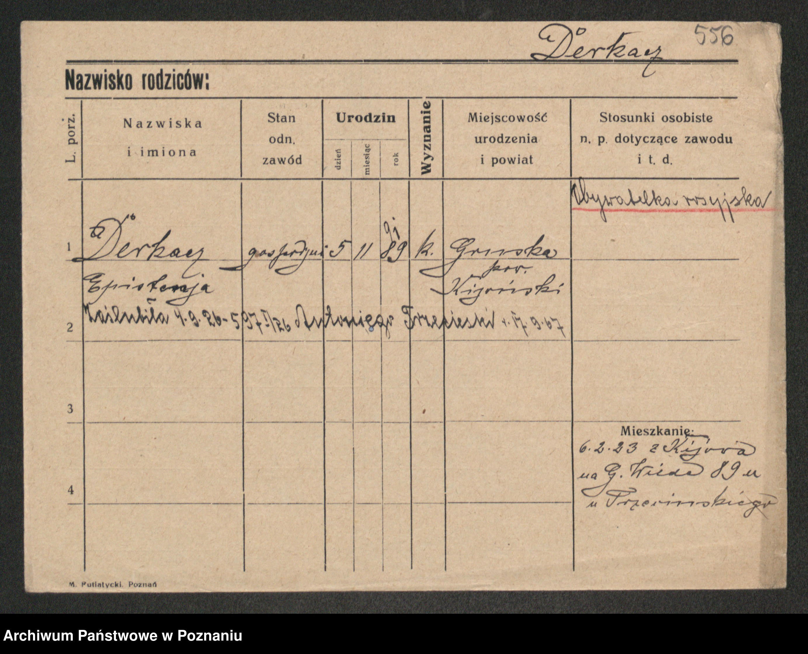 Podgląd karty osobowej dostępny jest po kliknięciu na nazwisko lub ikonkę karty. Można dokonywać powiększenia (ikony na górze) lub przechodzić między kolejnymi skanami (strzałki po bokach).