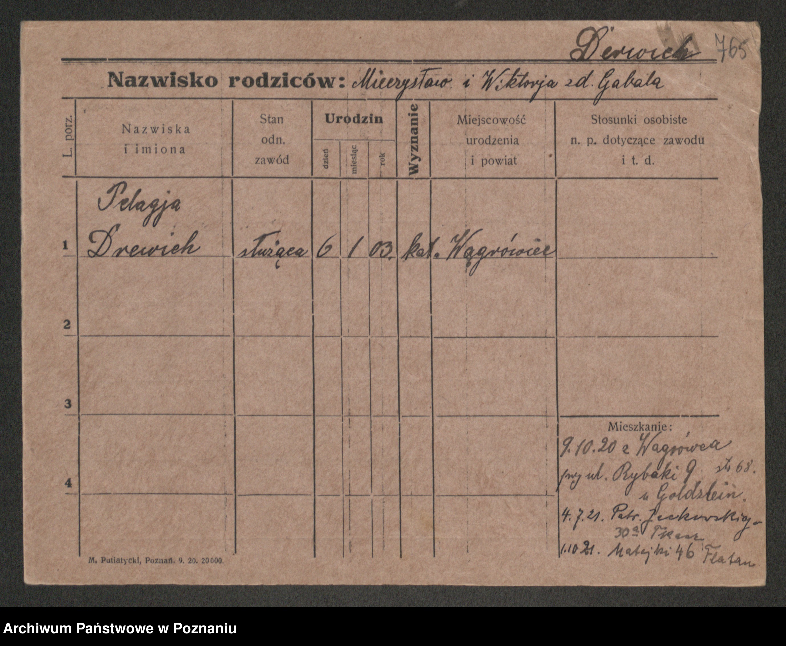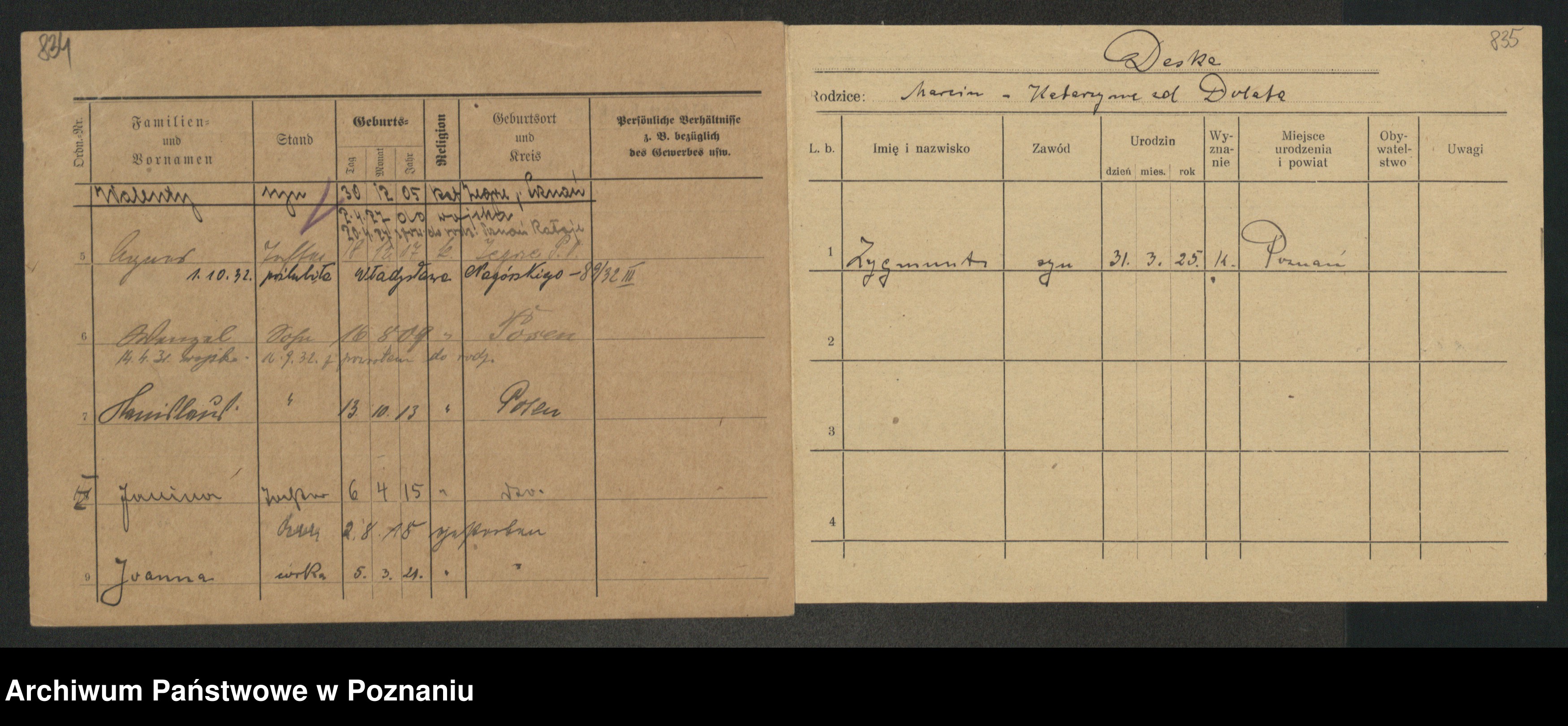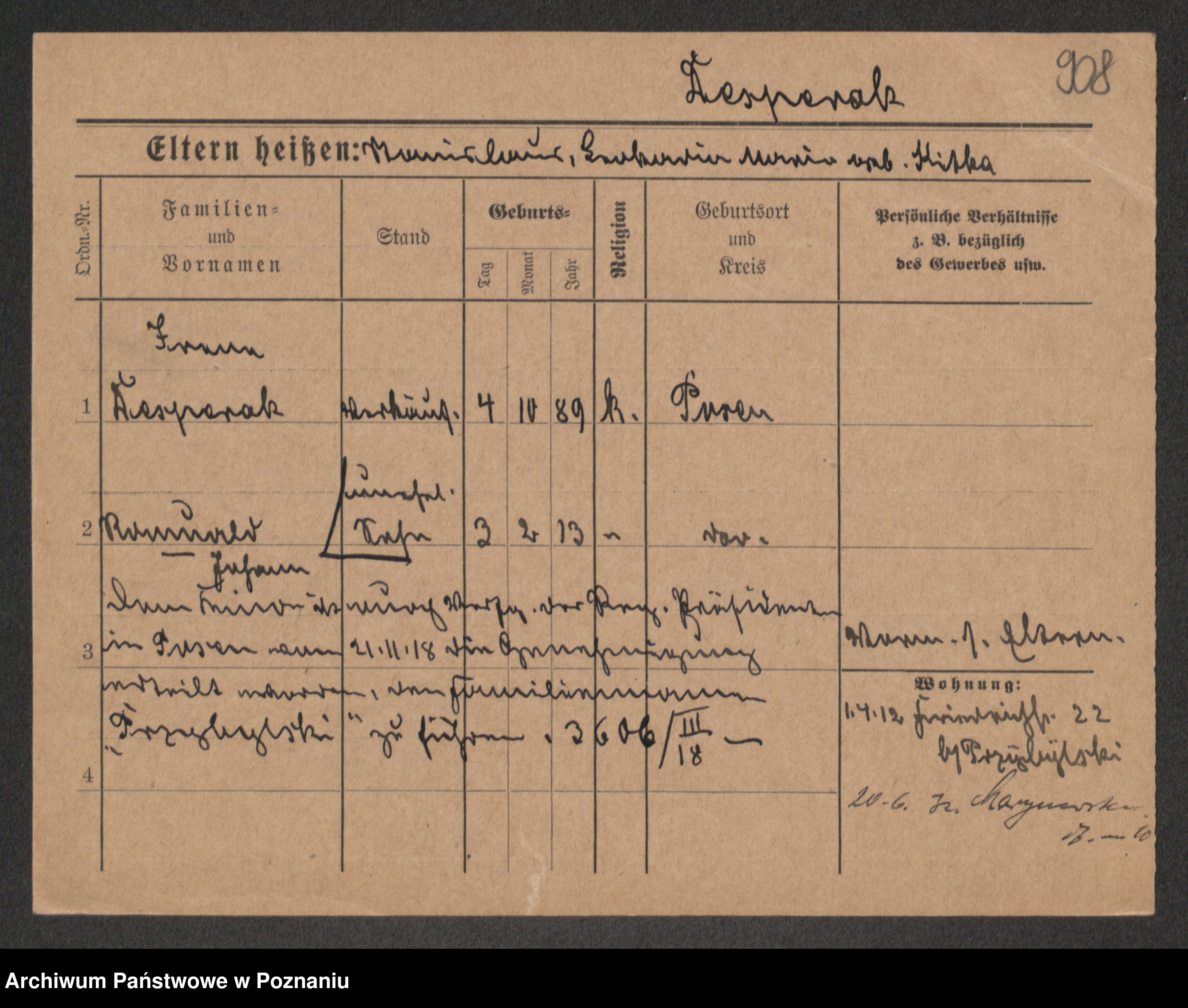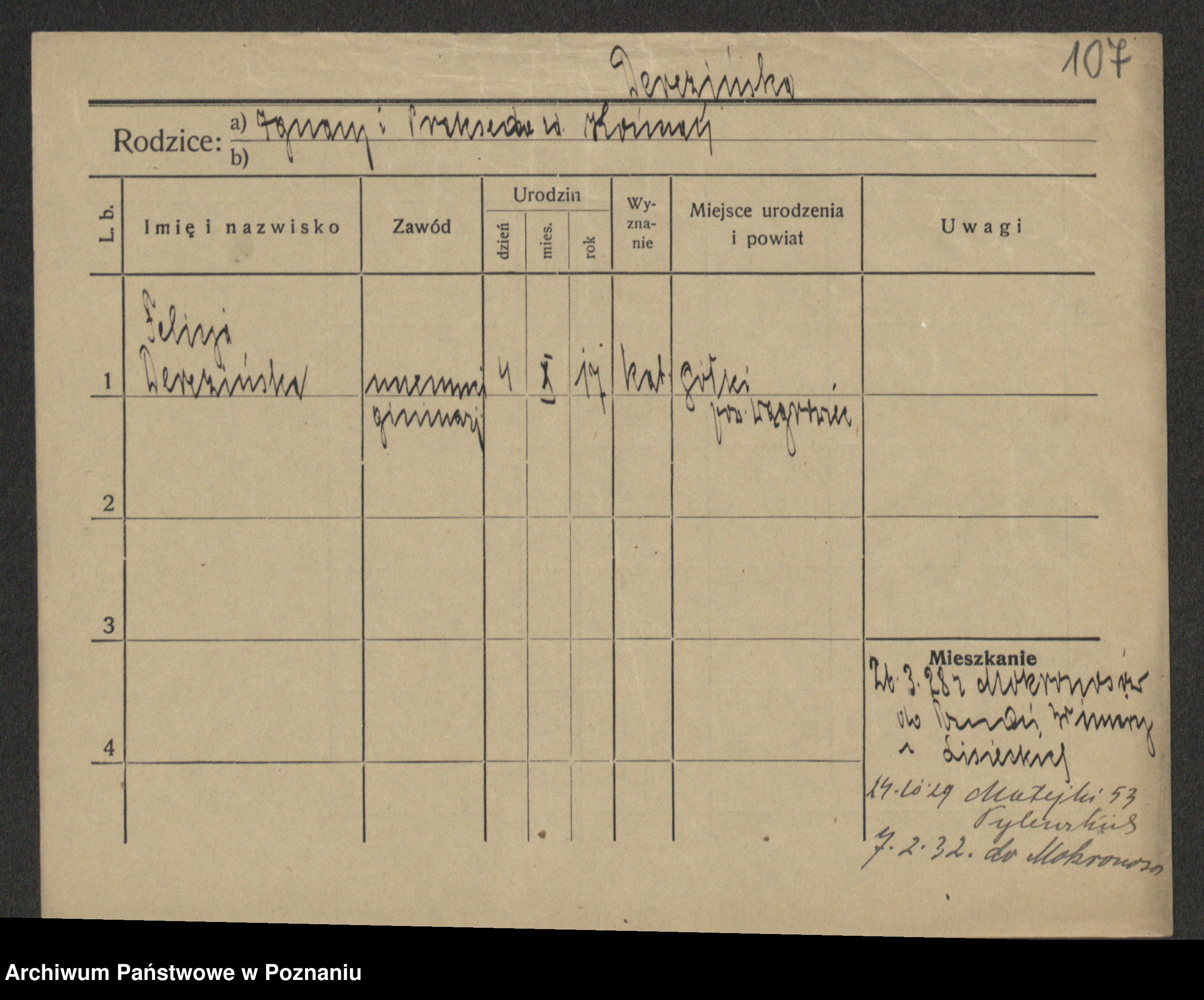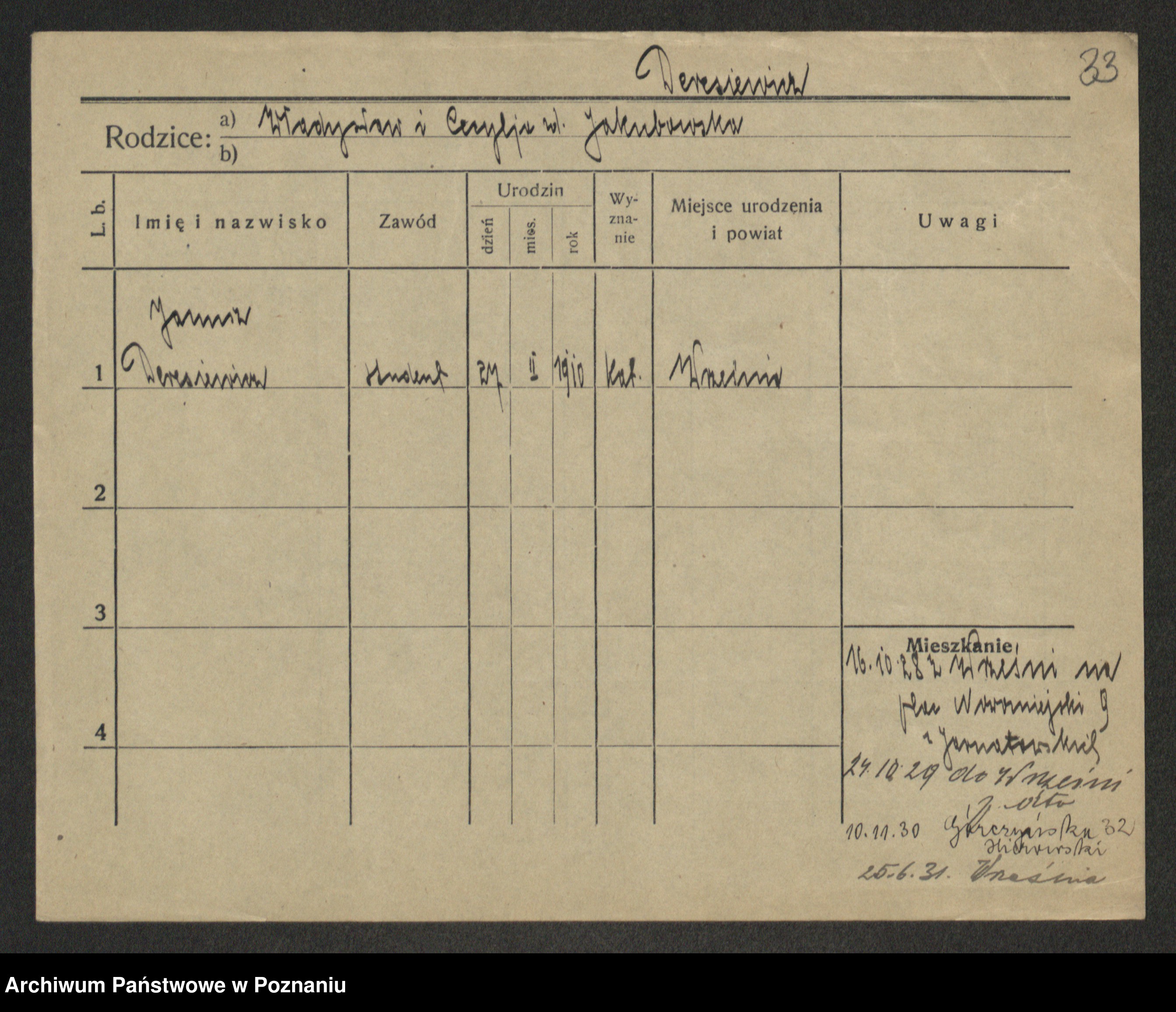 Podgląd karty osobowej dostępny jest po kliknięciu na nazwisko lub ikonkę karty. Można dokonywać powiększenia (ikony na górze) lub przechodzić między kolejnymi skanami (strzałki po bokach).