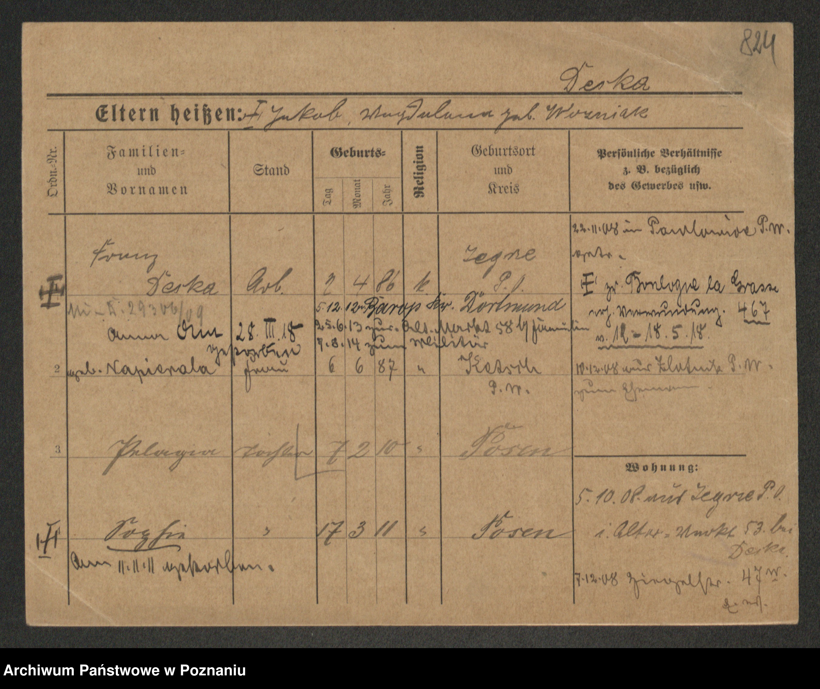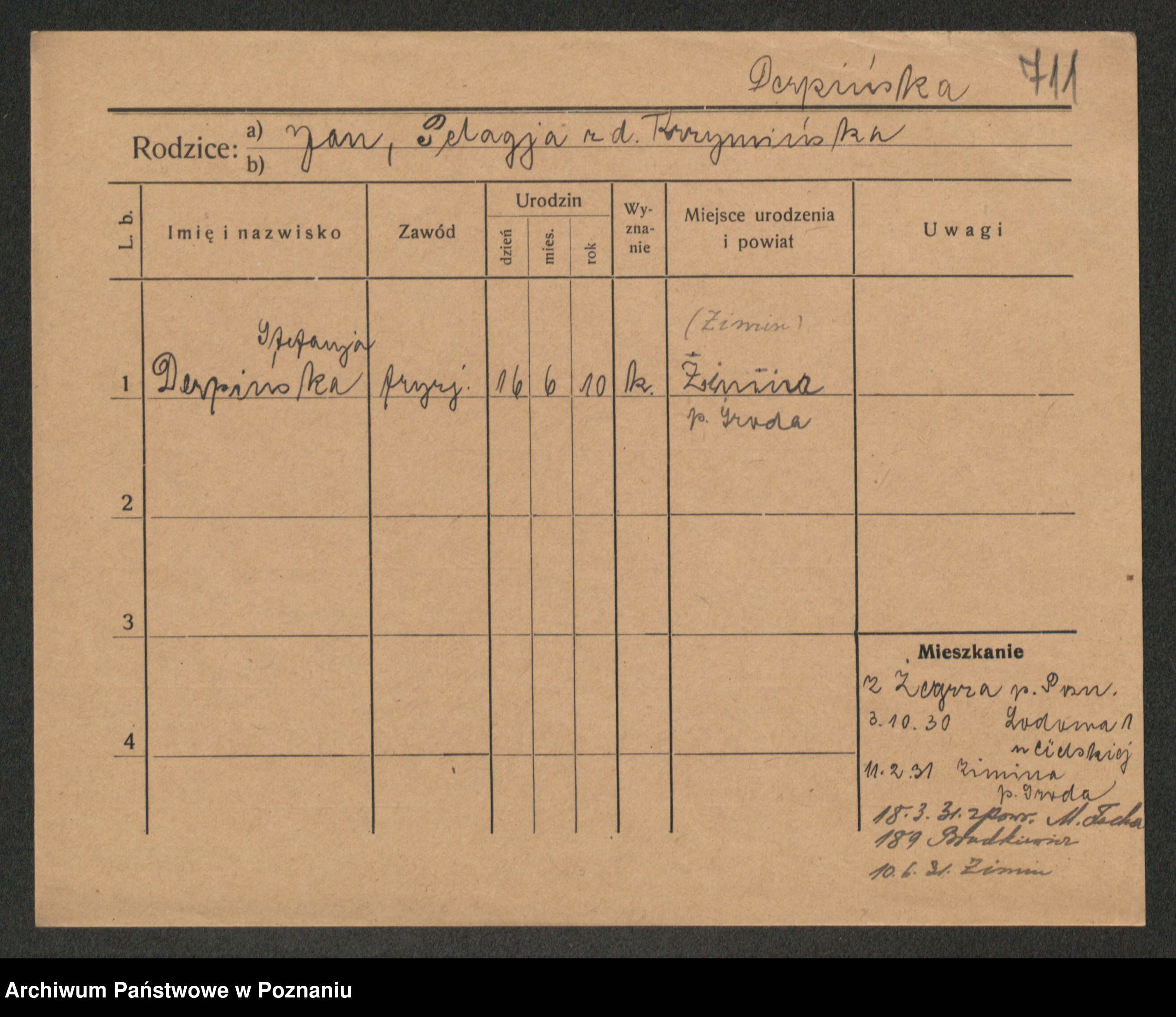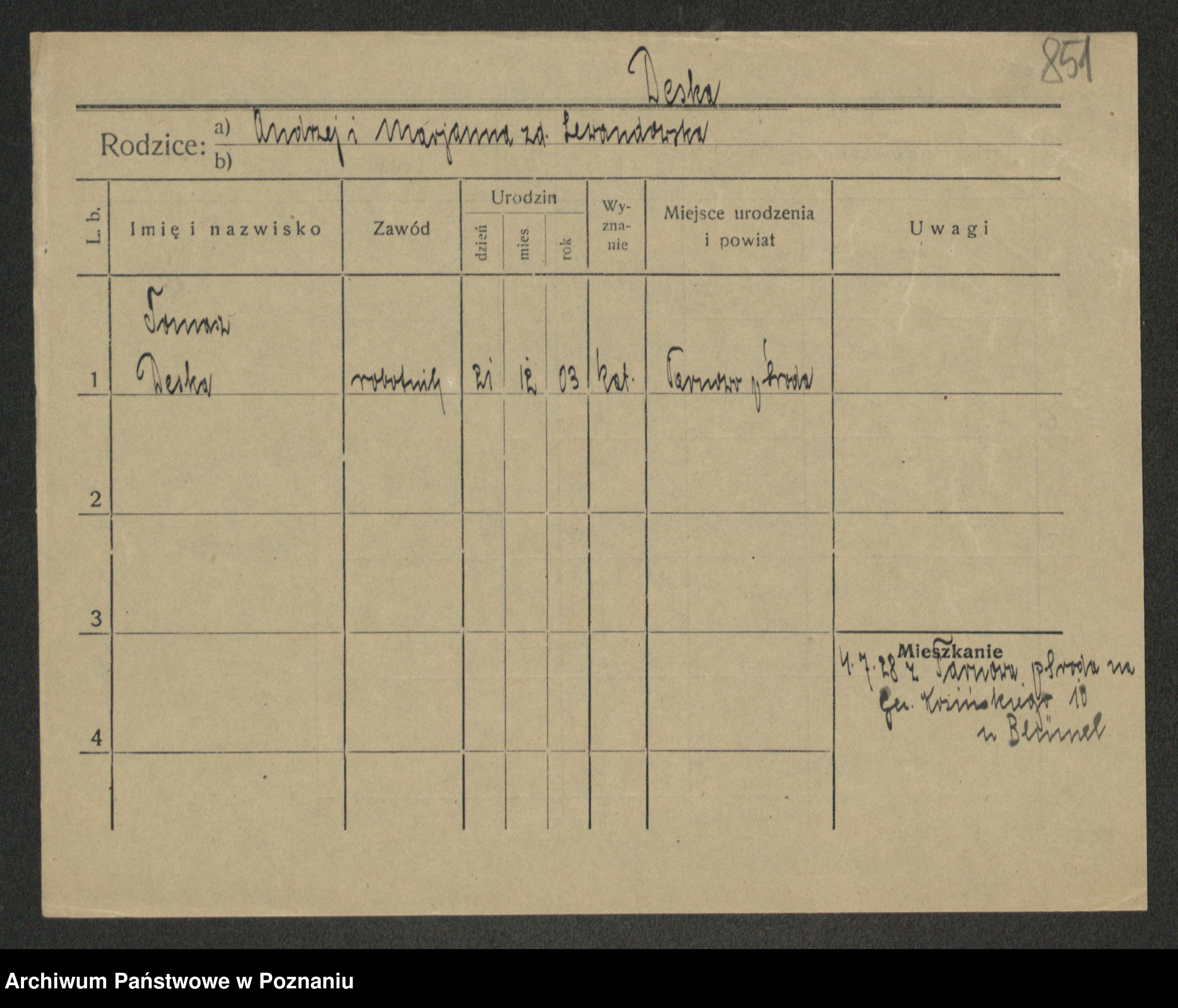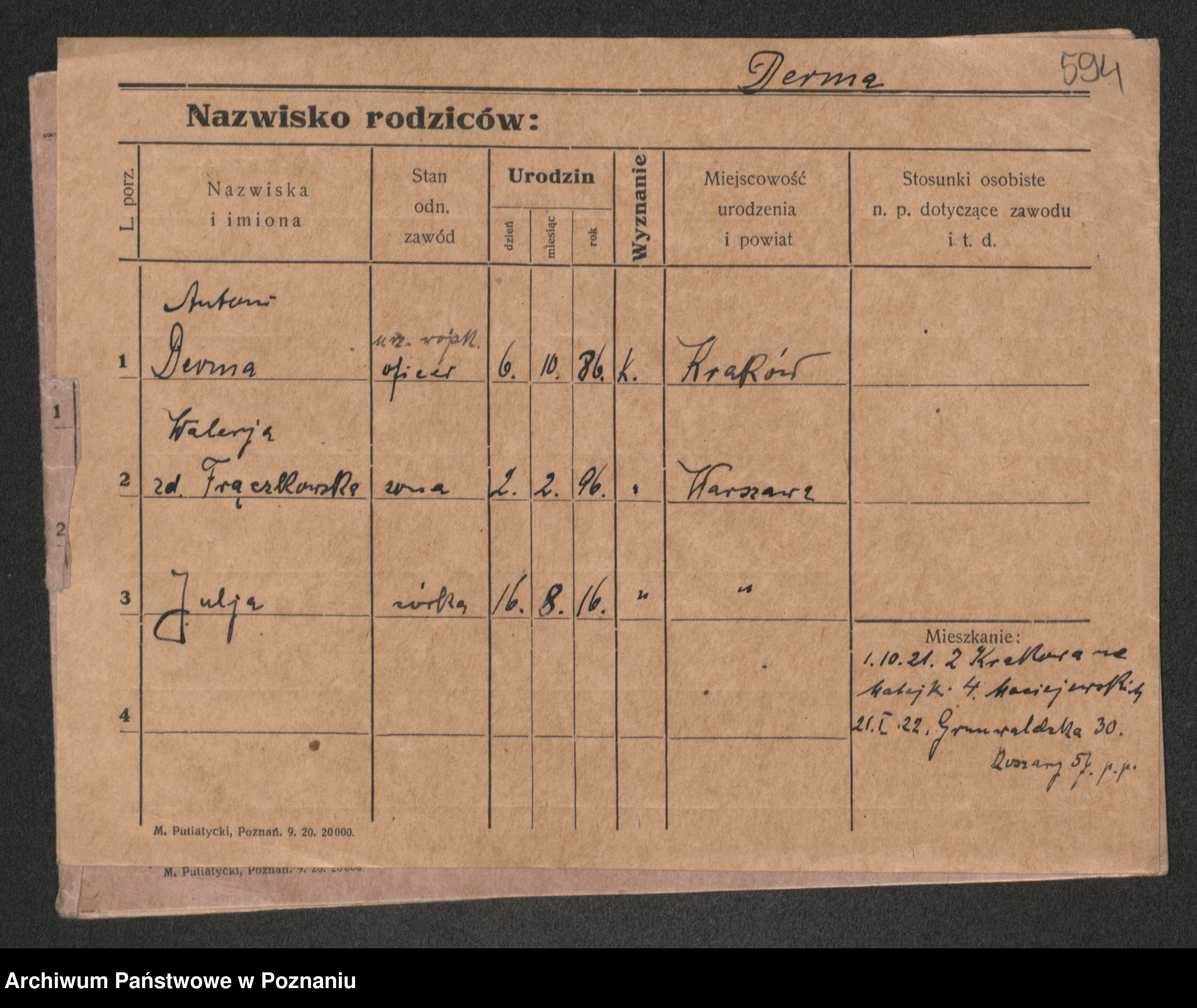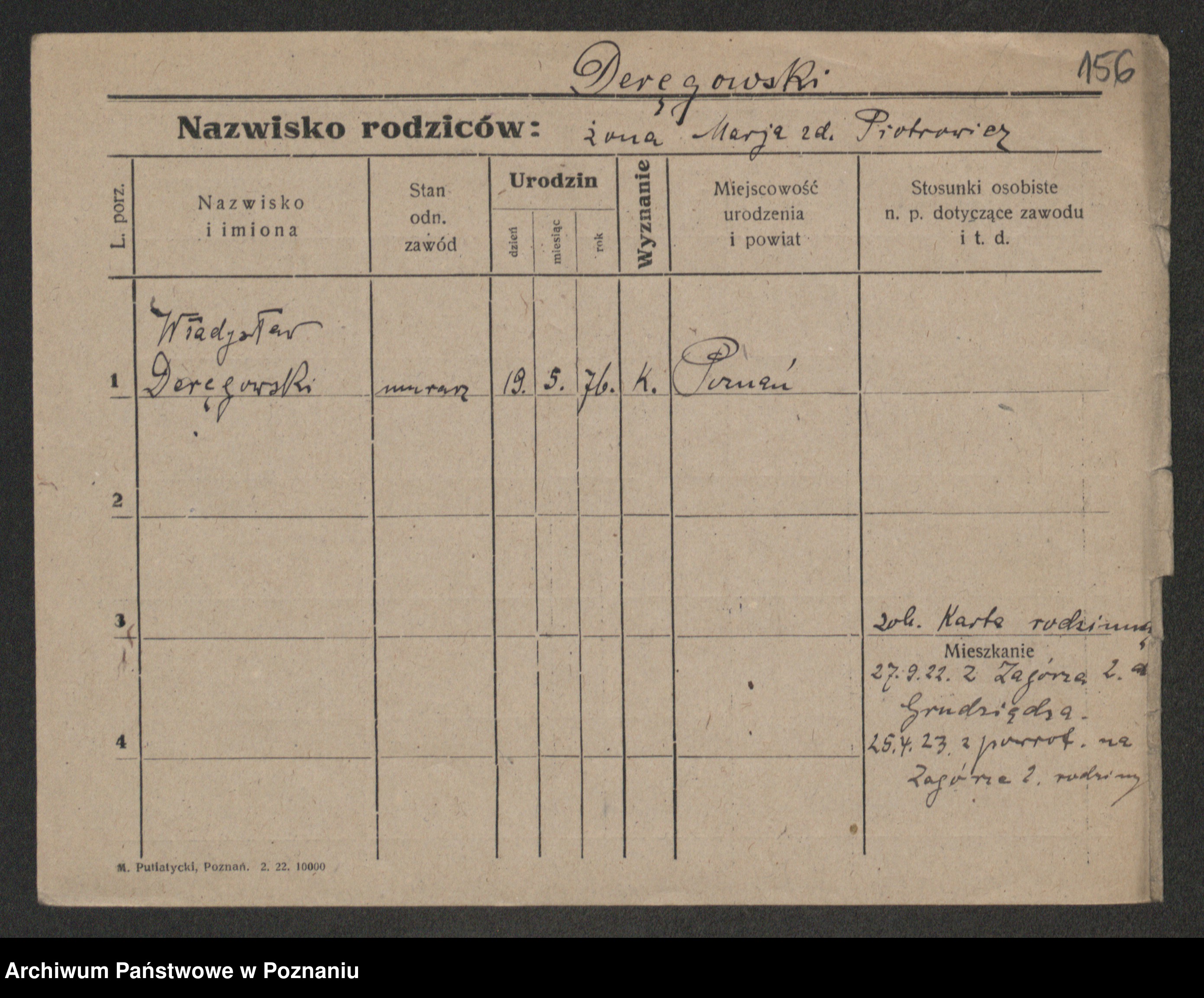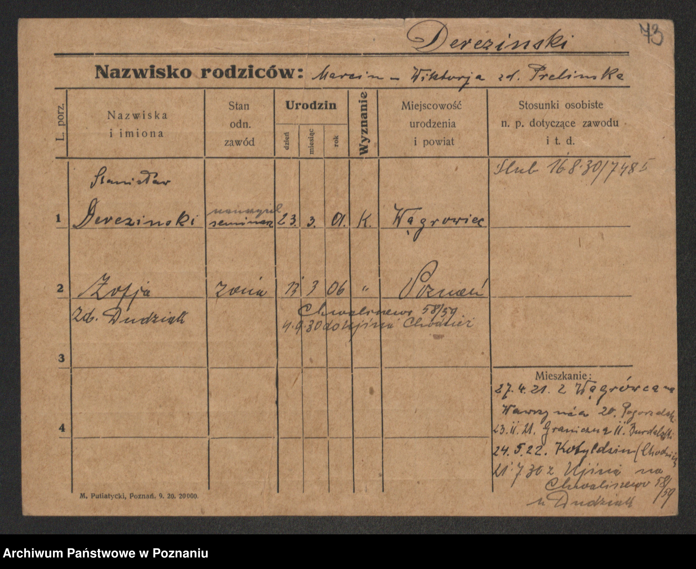 Podgląd karty osobowej dostępny jest po kliknięciu na nazwisko lub ikonkę karty. Można dokonywać powiększenia (ikony na górze) lub przechodzić między kolejnymi skanami (strzałki po bokach).