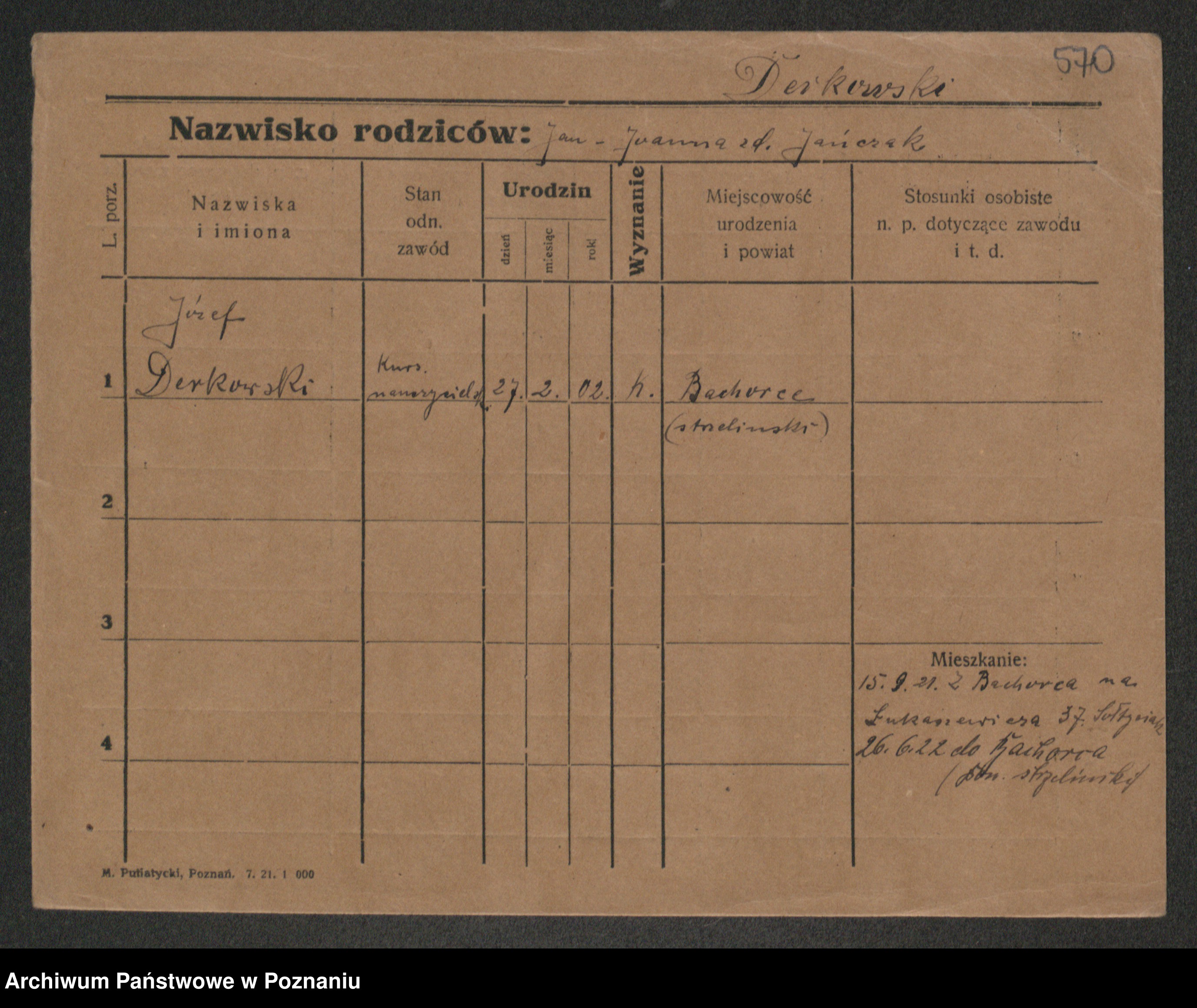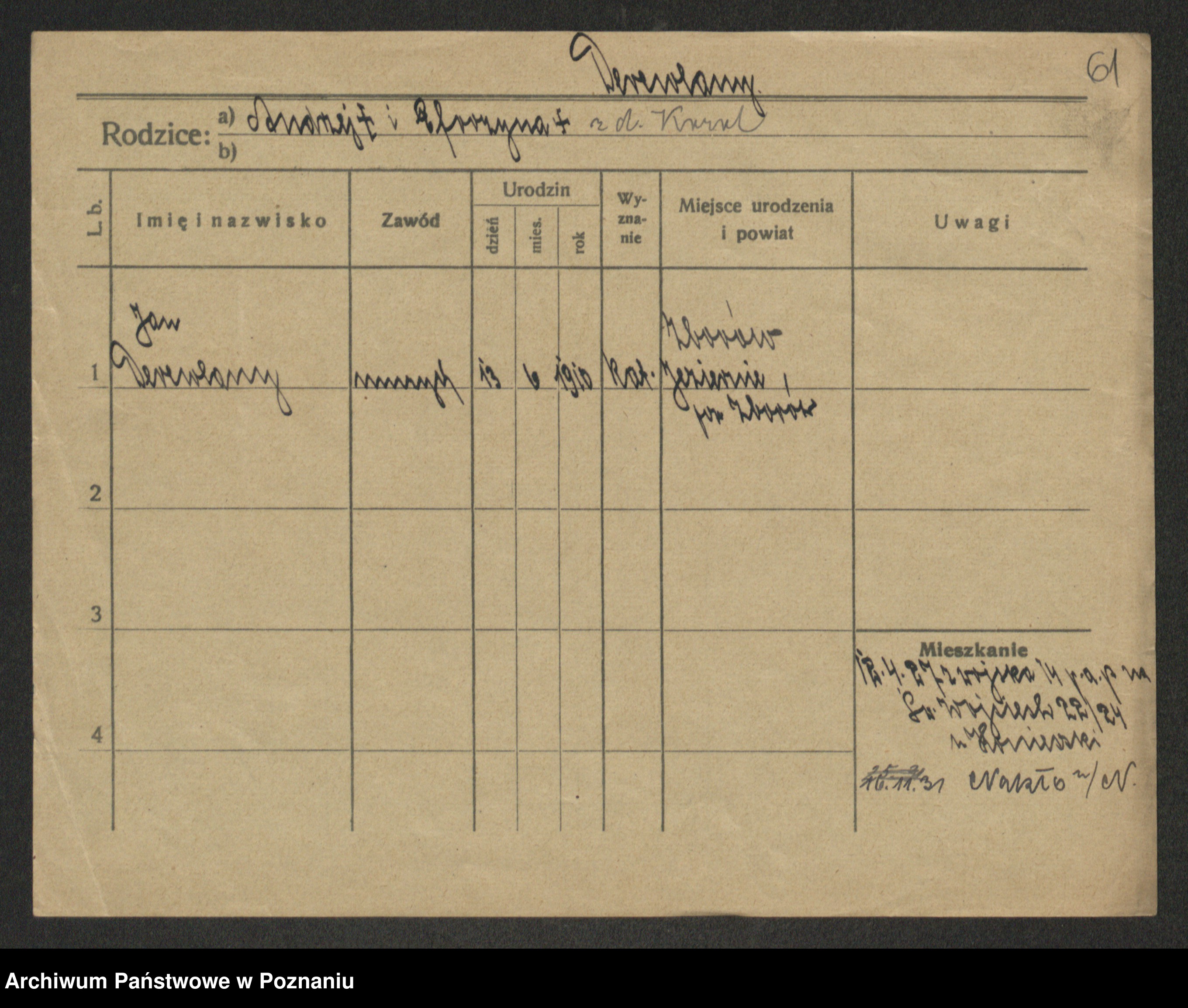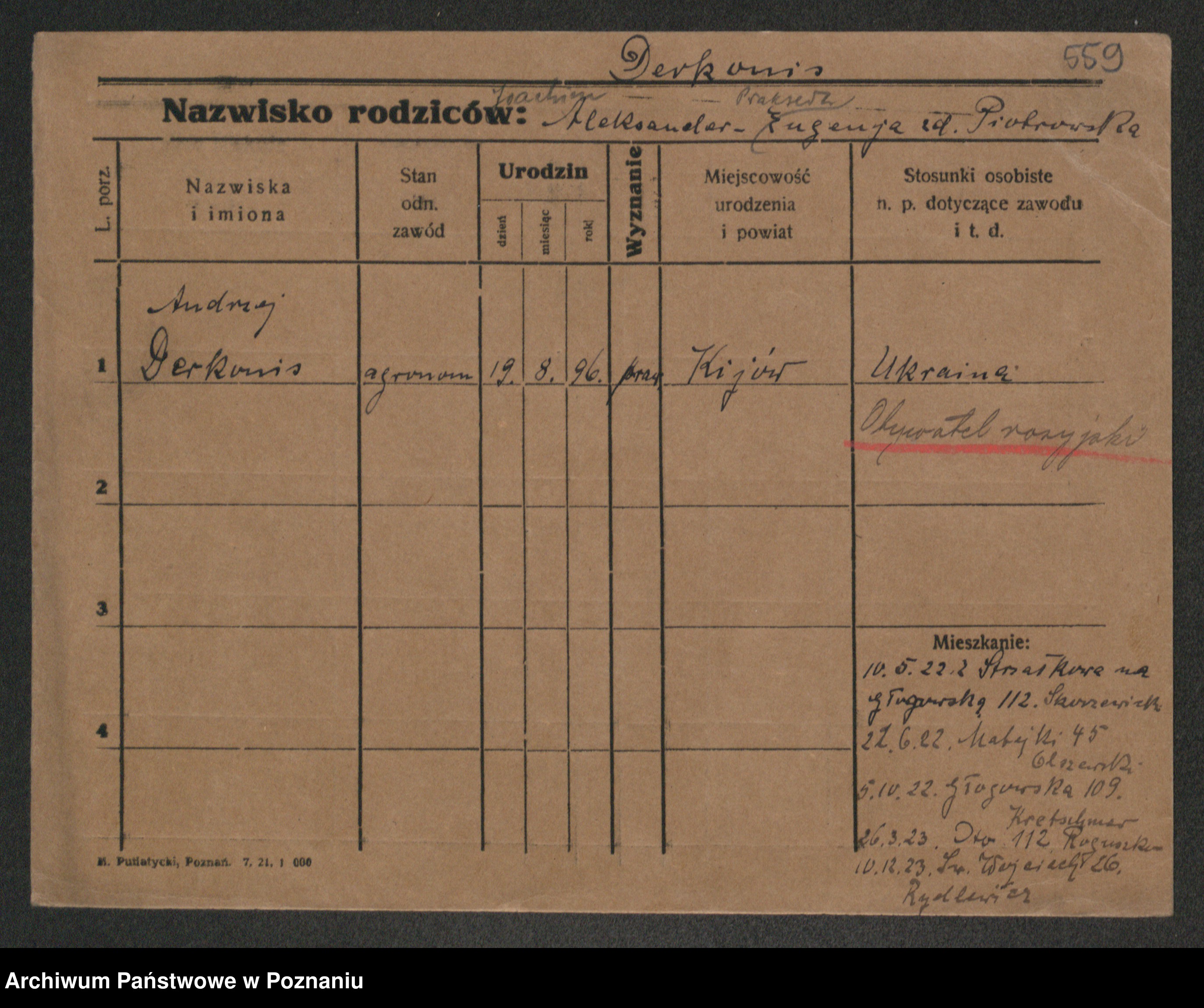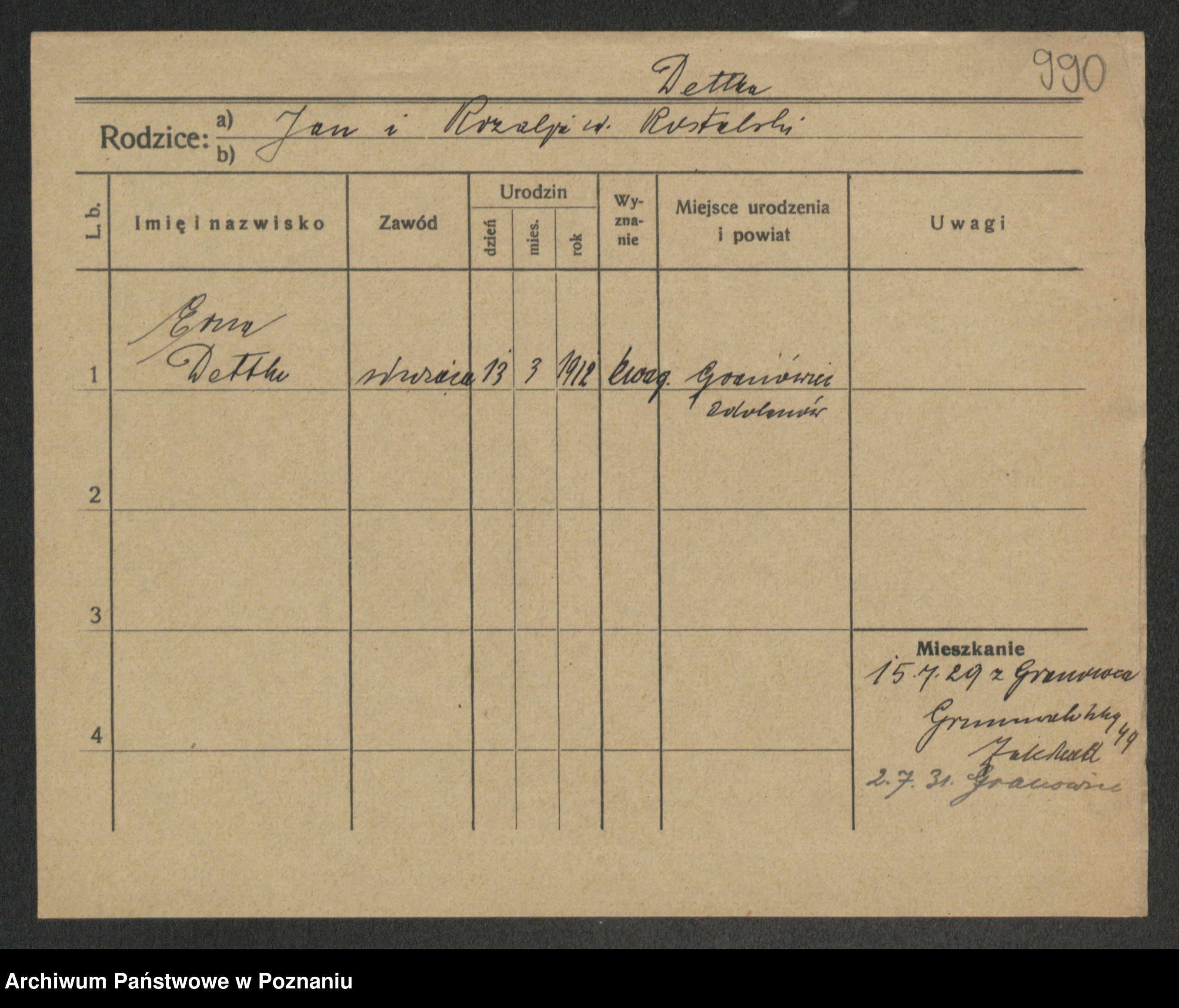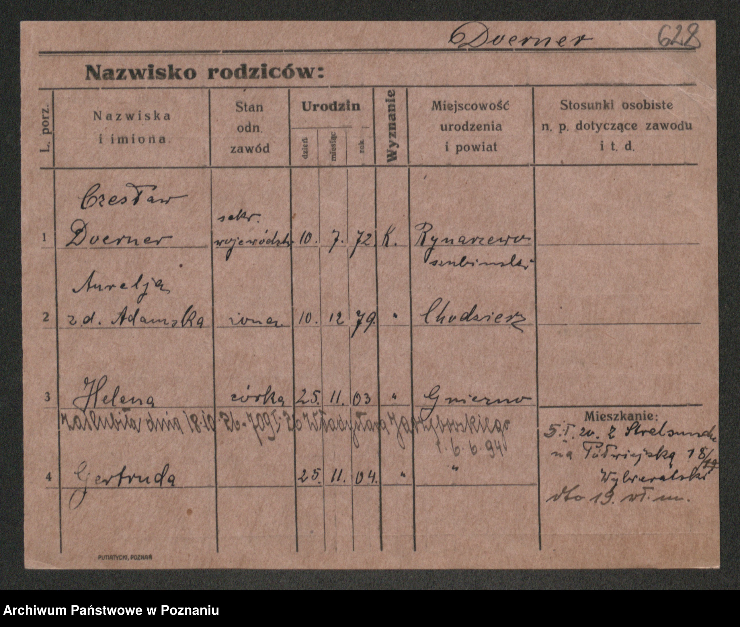 Podgląd karty osobowej dostępny jest po kliknięciu na nazwisko lub ikonkę karty. Można dokonywać powiększenia (ikony na górze) lub przechodzić między kolejnymi skanami (strzałki po bokach).