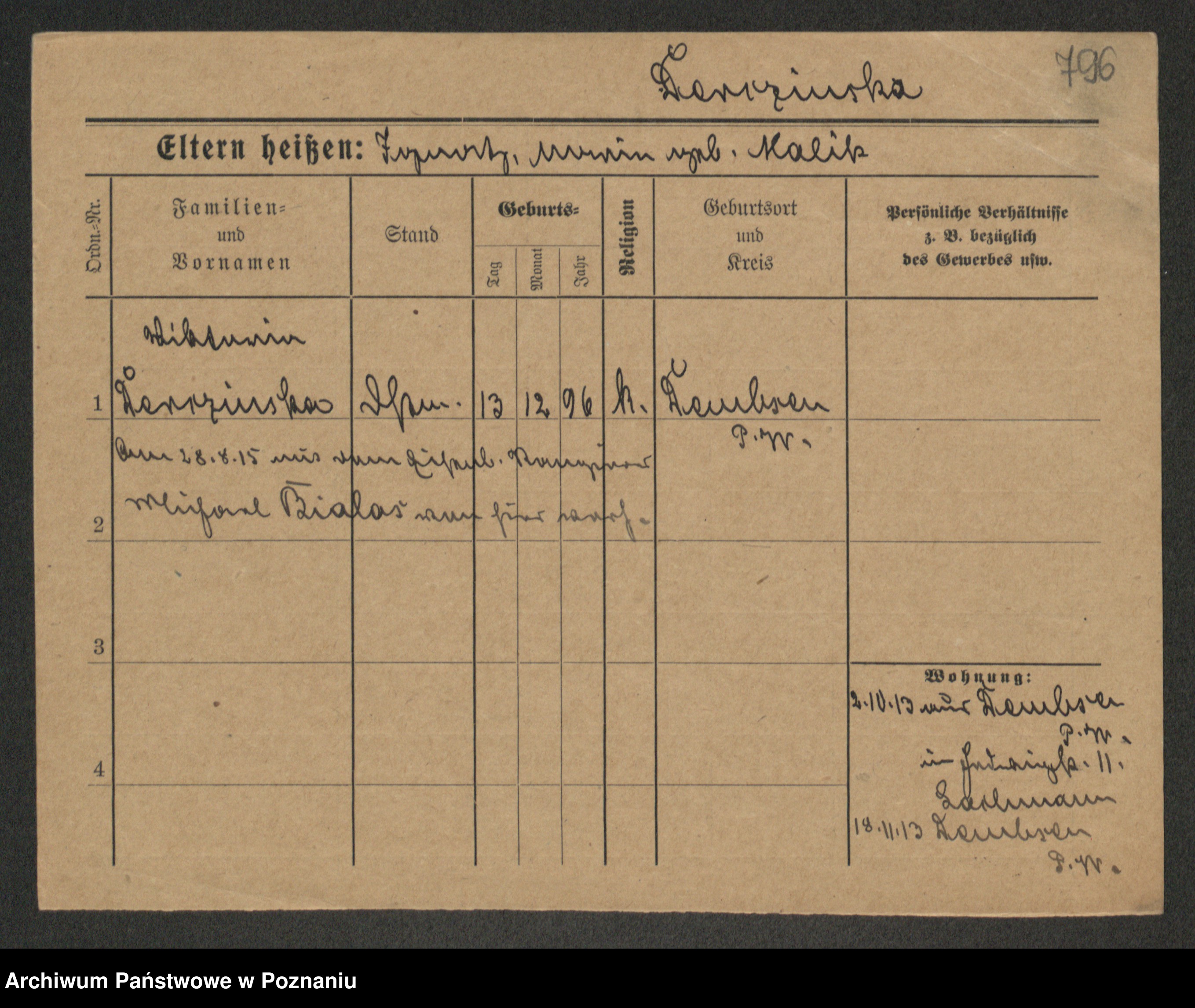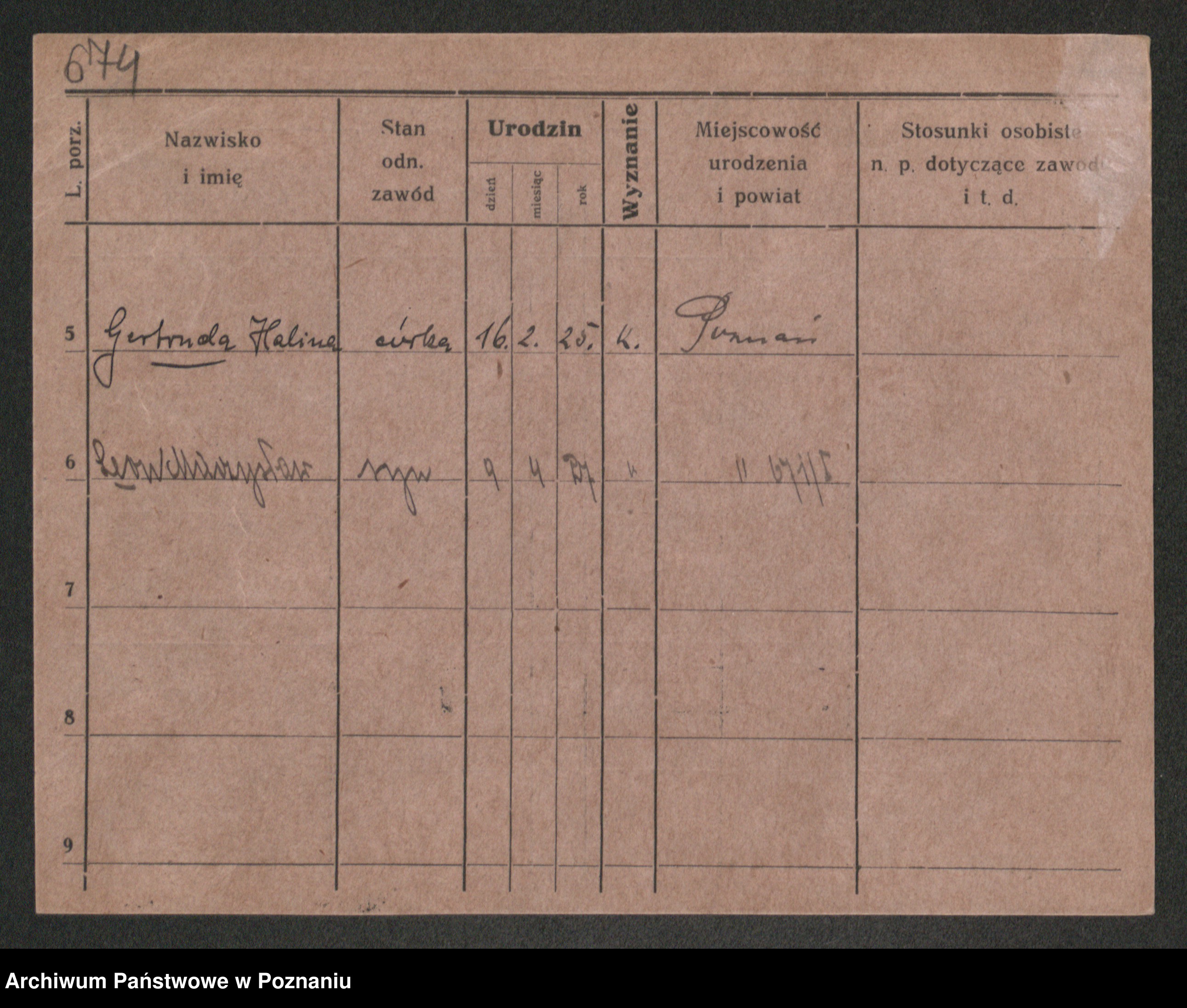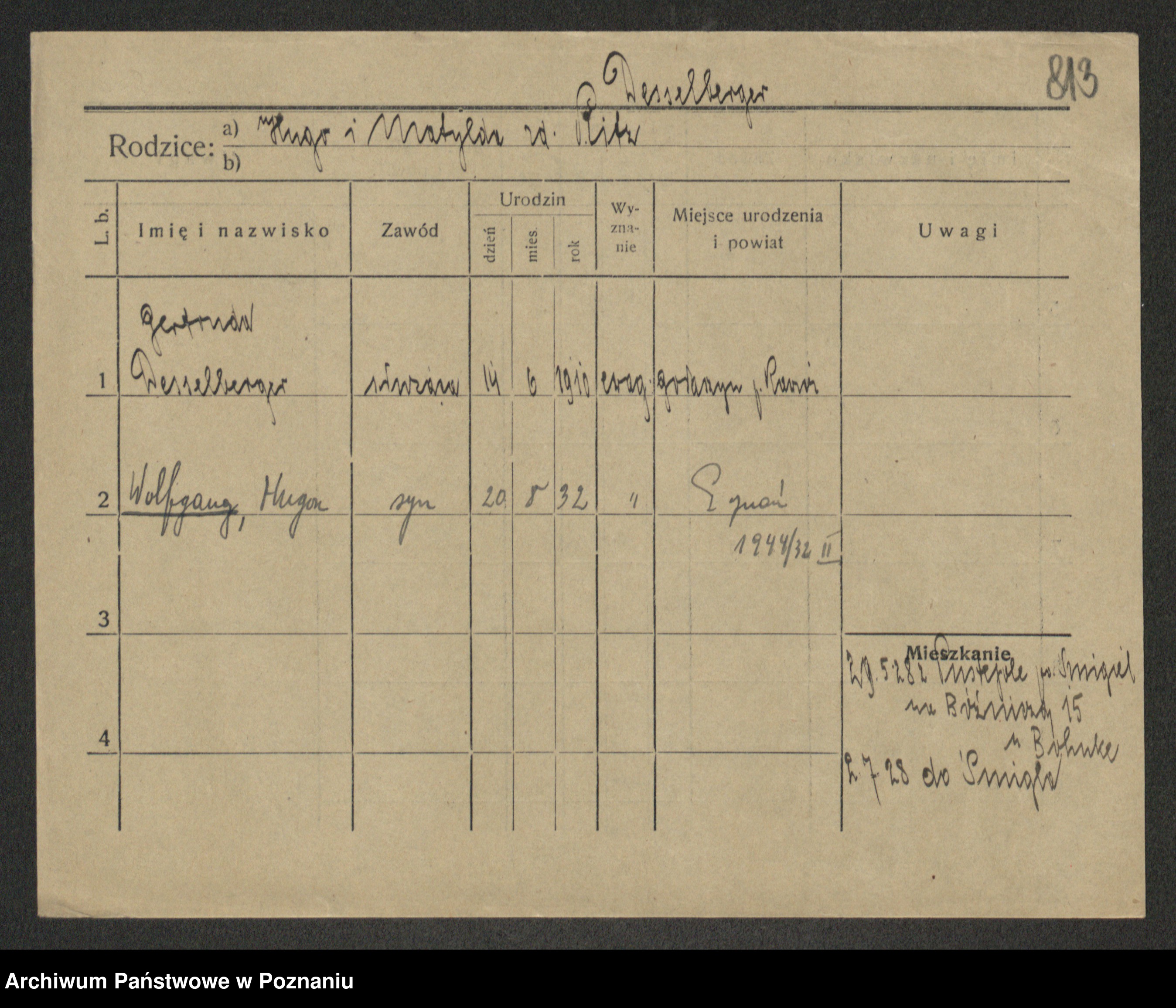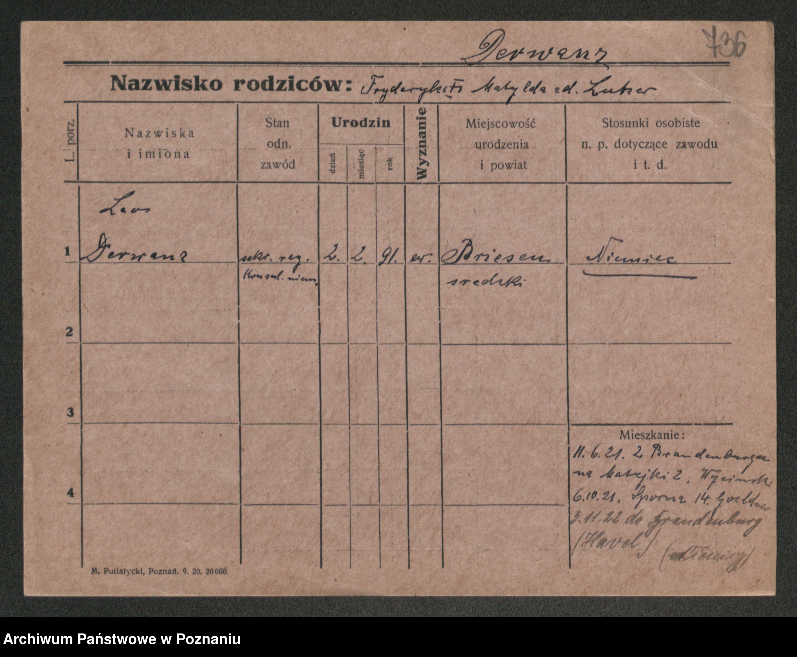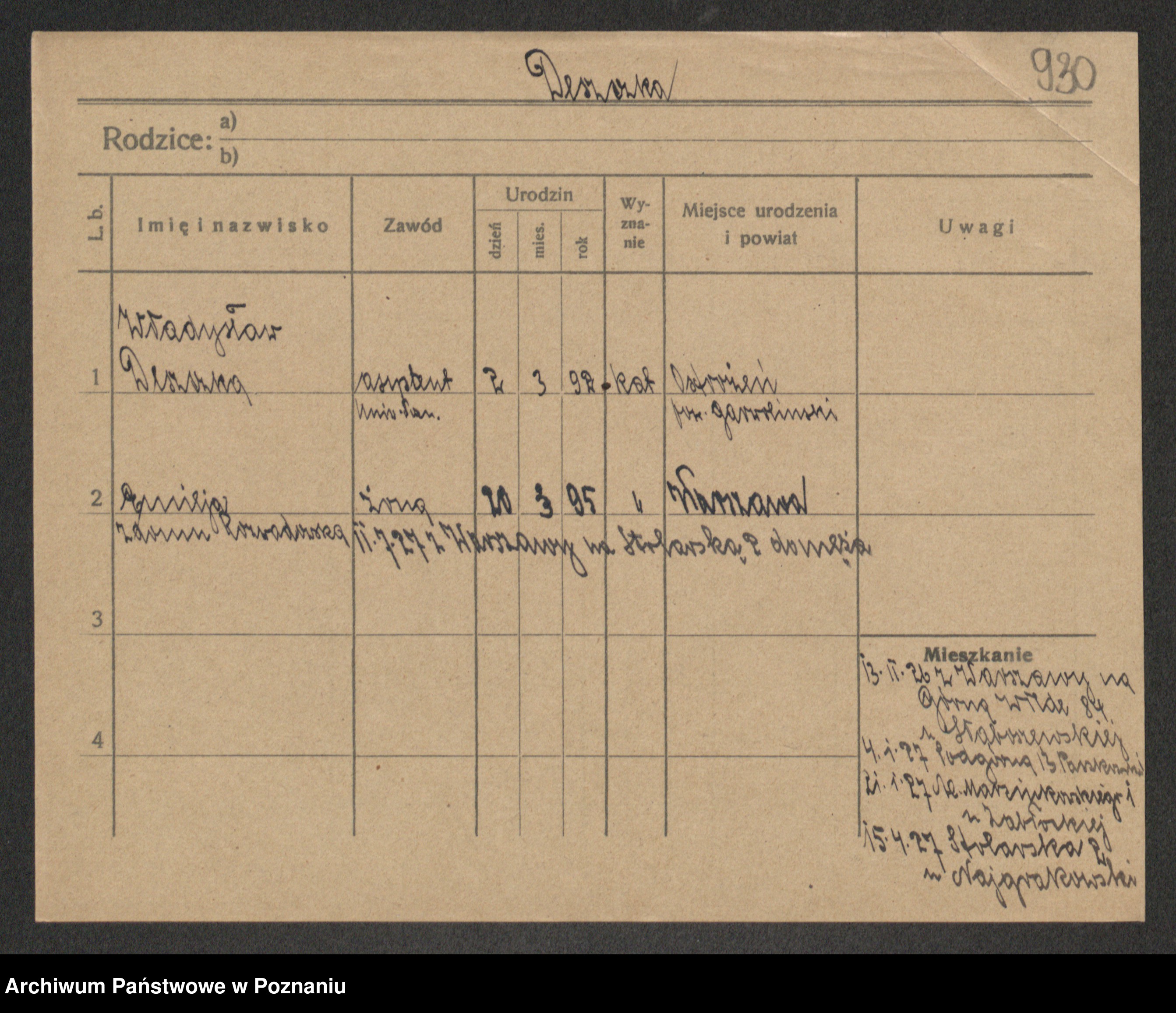 Podgląd karty osobowej dostępny jest po kliknięciu na nazwisko lub ikonkę karty. Można dokonywać powiększenia (ikony na górze) lub przechodzić między kolejnymi skanami (strzałki po bokach).