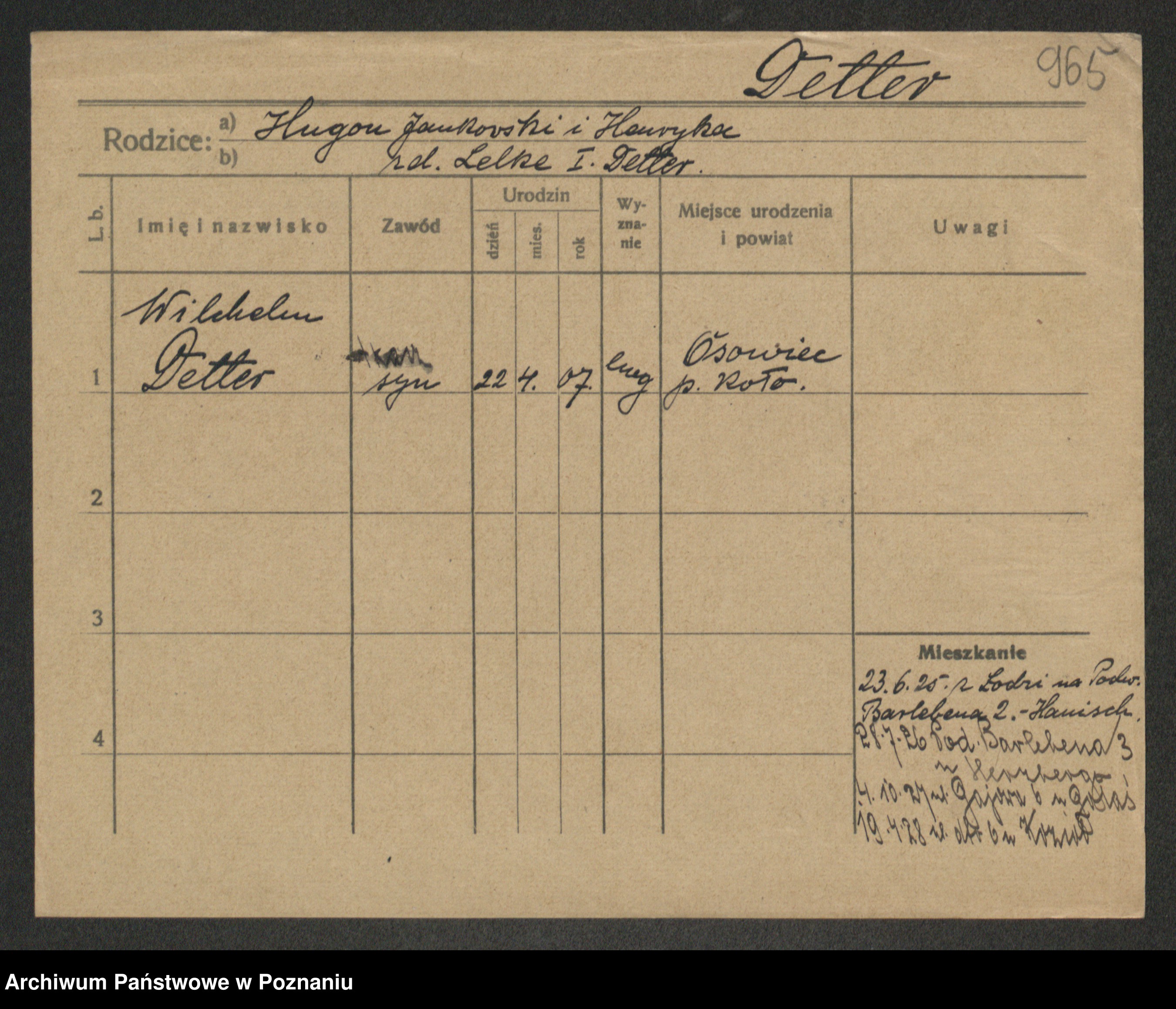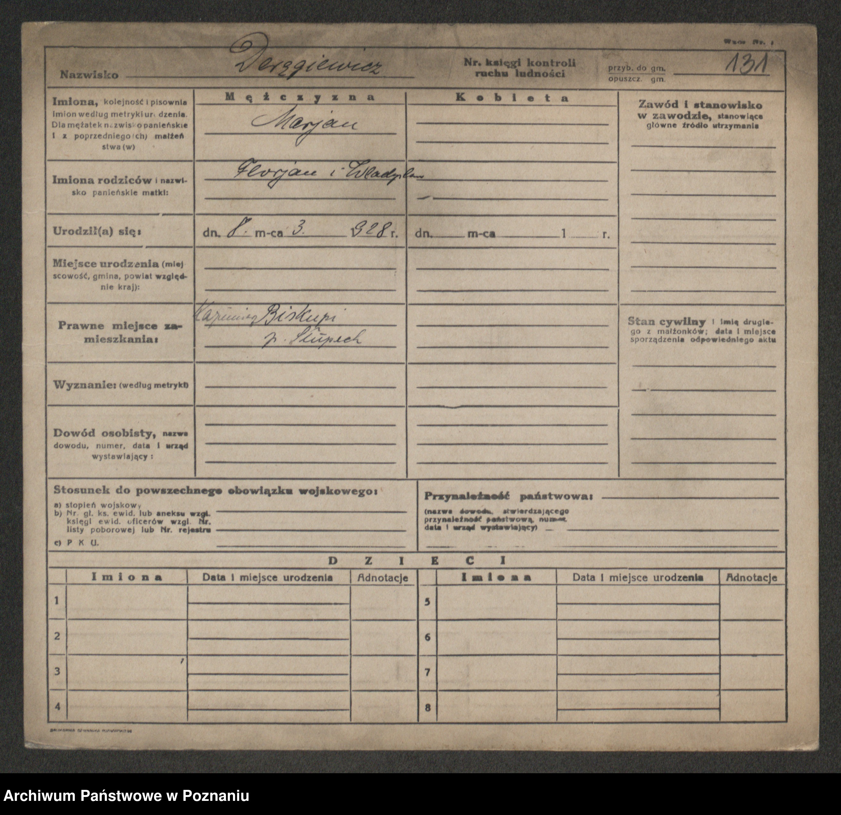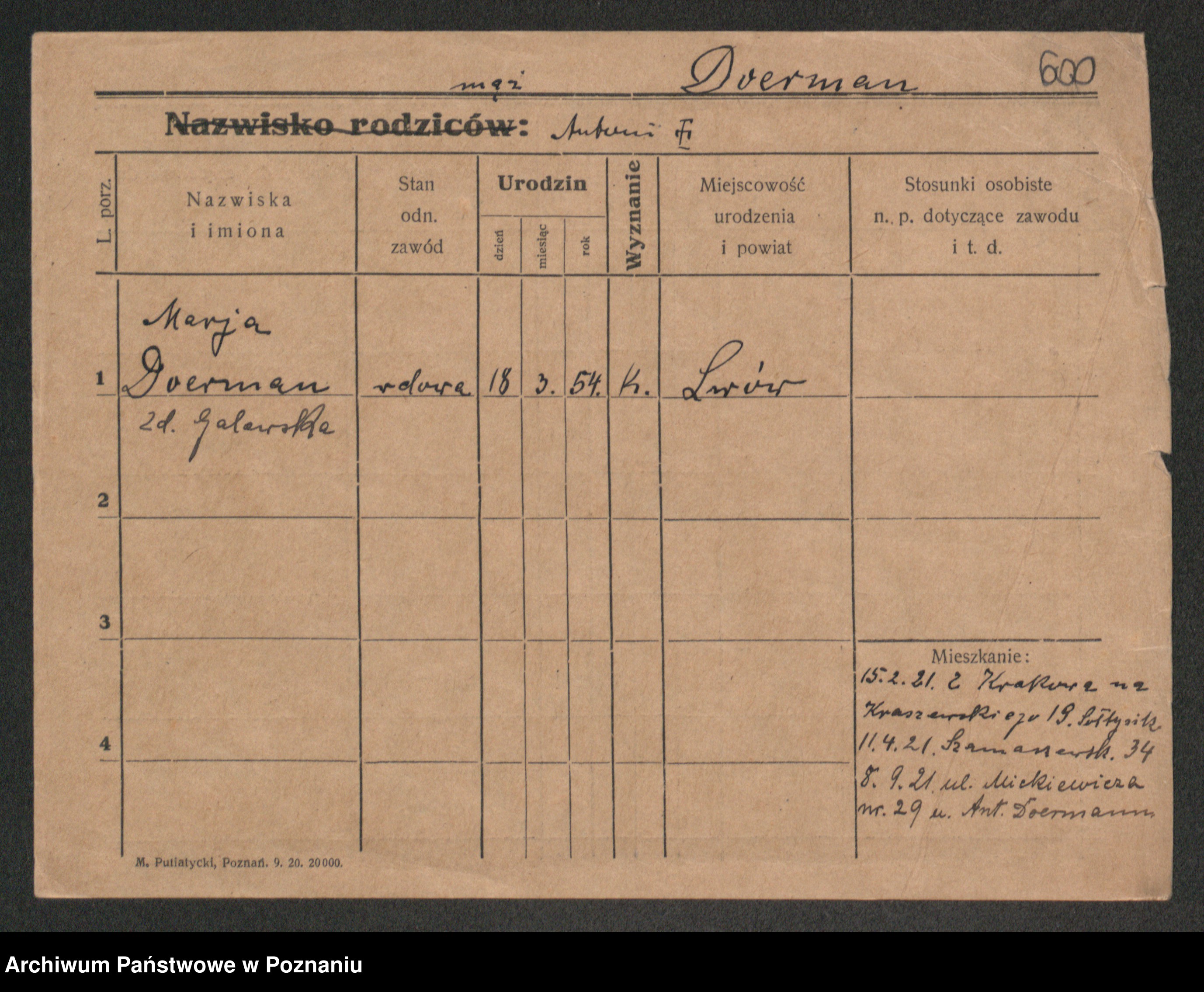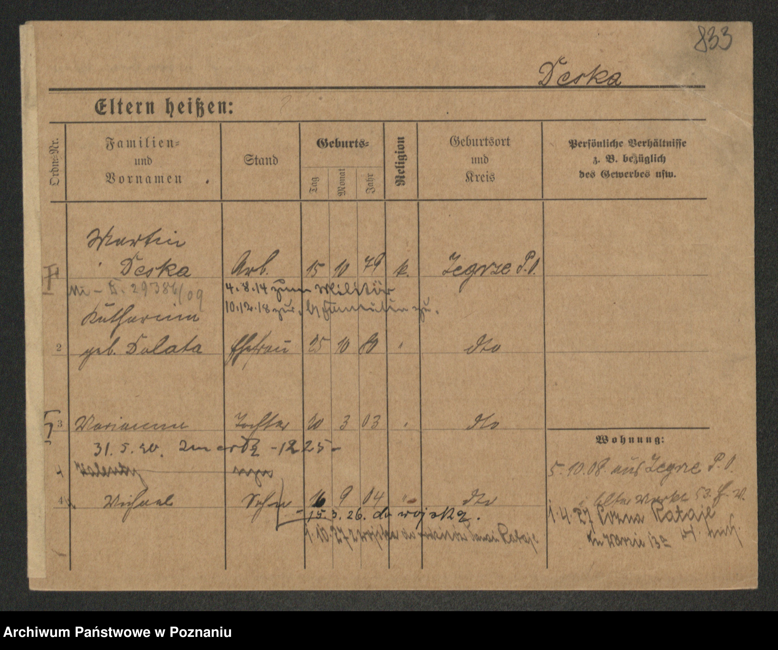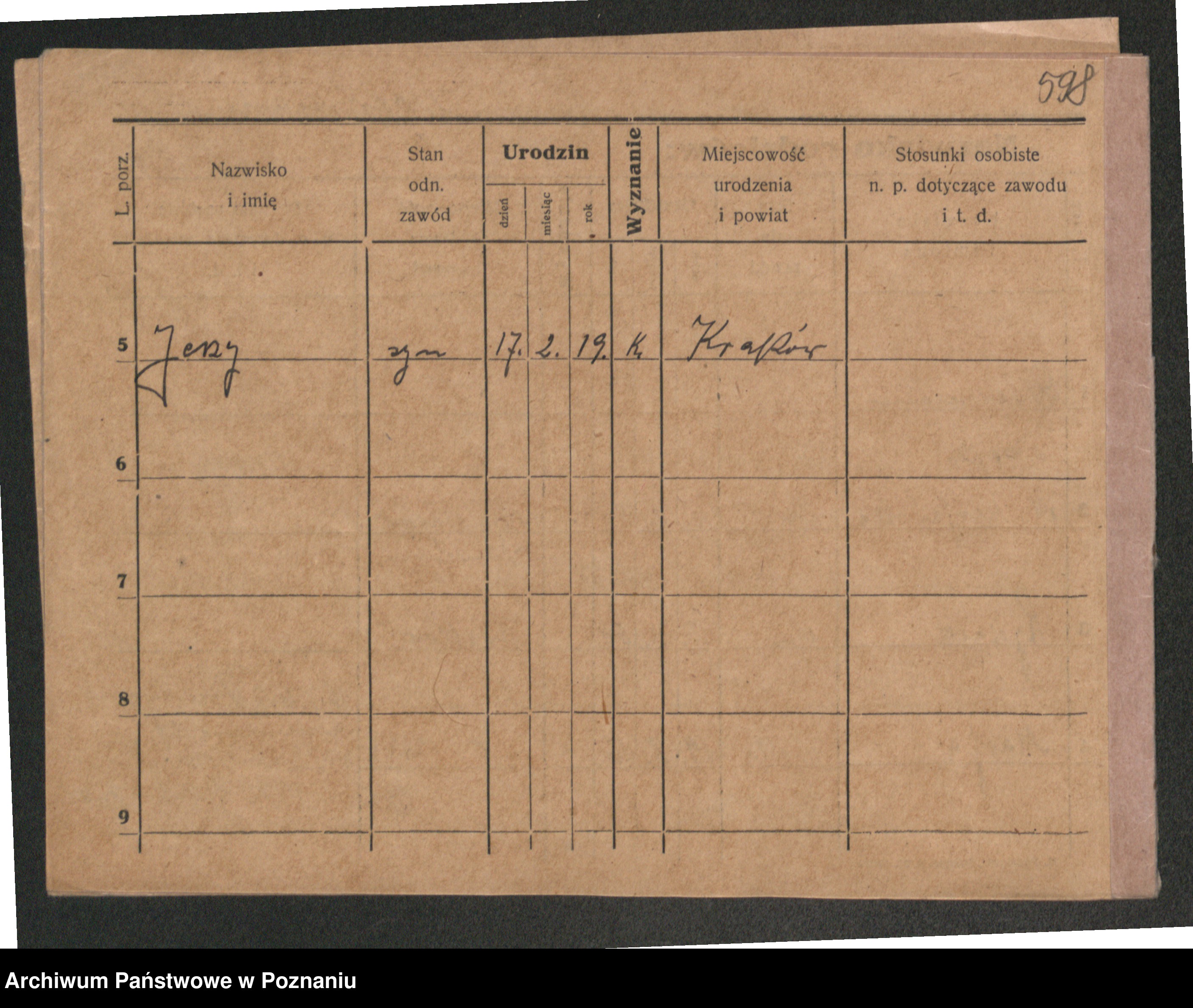 Podgląd karty osobowej dostępny jest po kliknięciu na nazwisko lub ikonkę karty. Można dokonywać powiększenia (ikony na górze) lub przechodzić między kolejnymi skanami (strzałki po bokach).