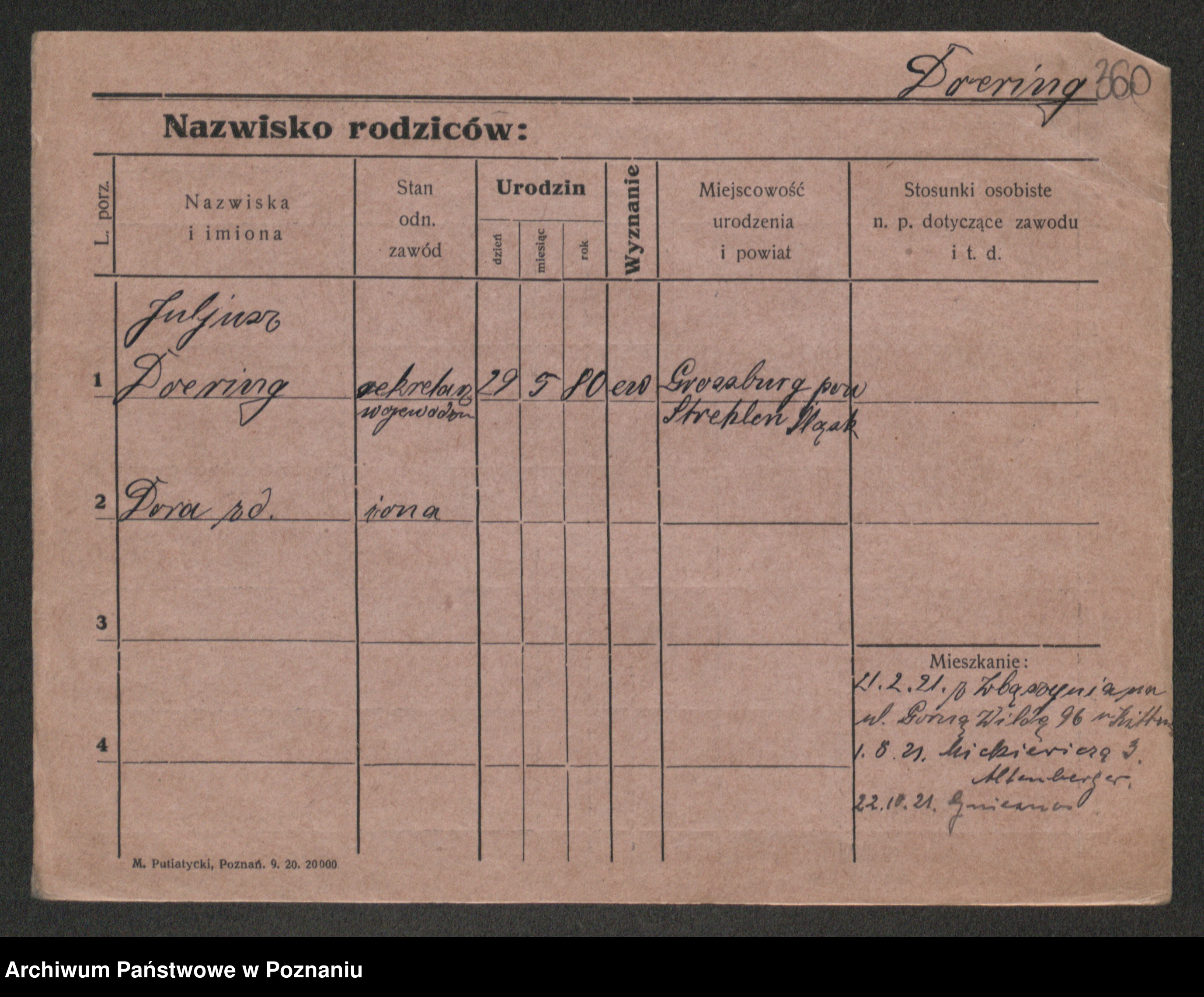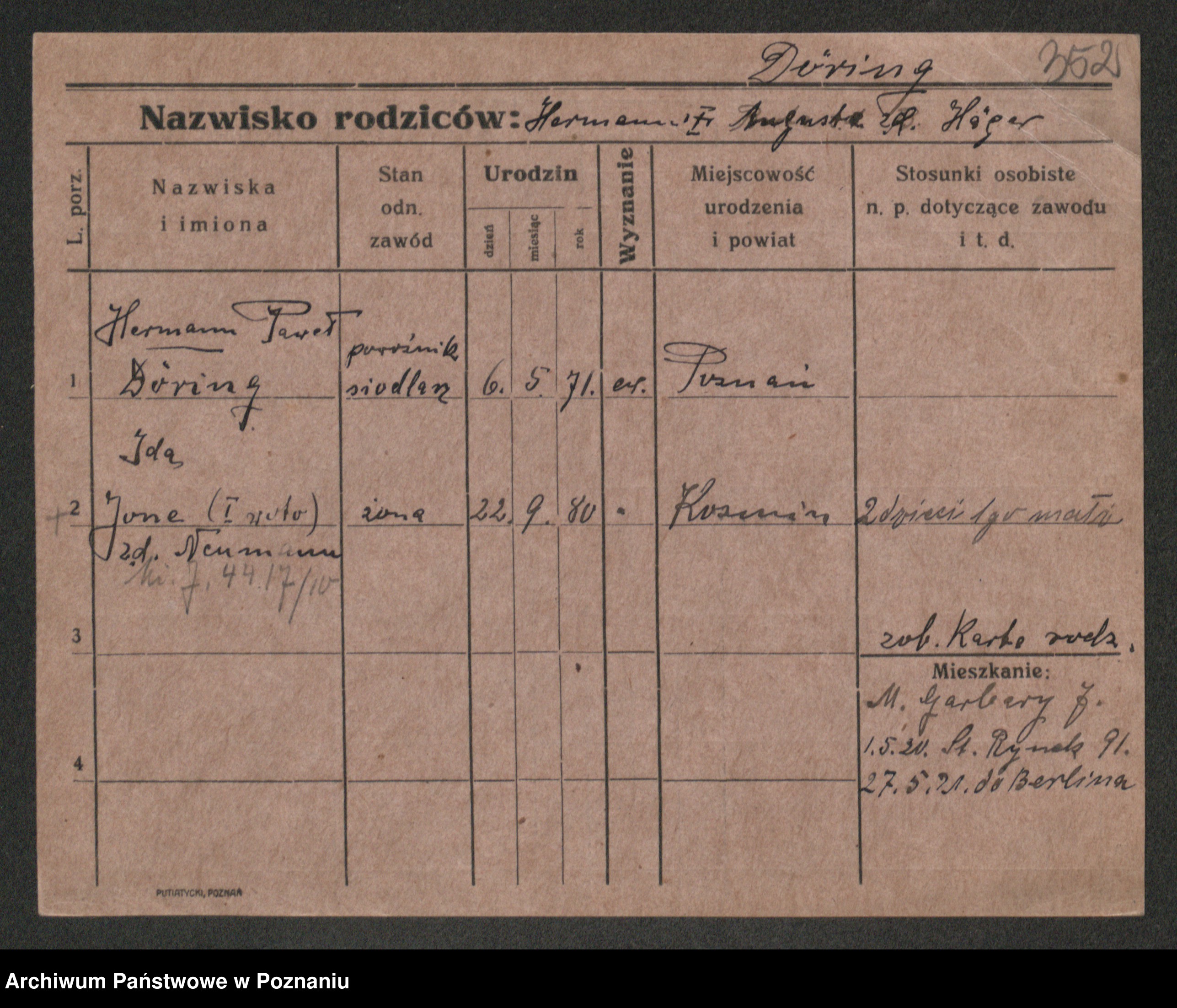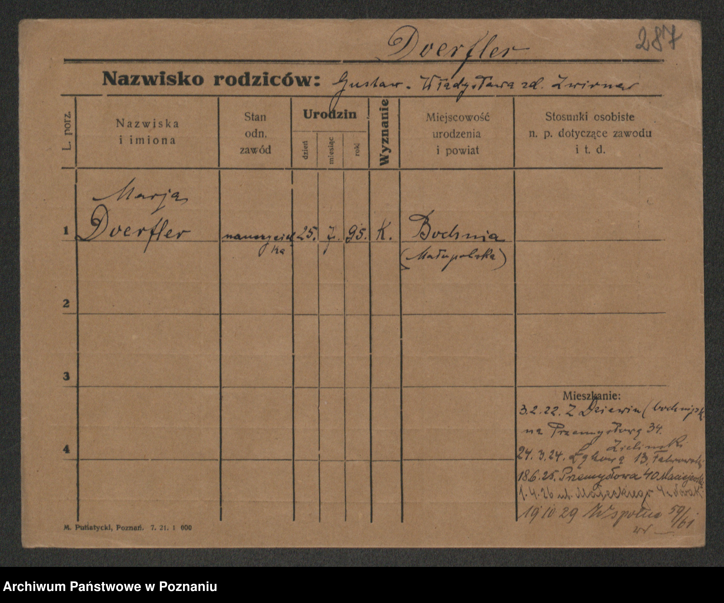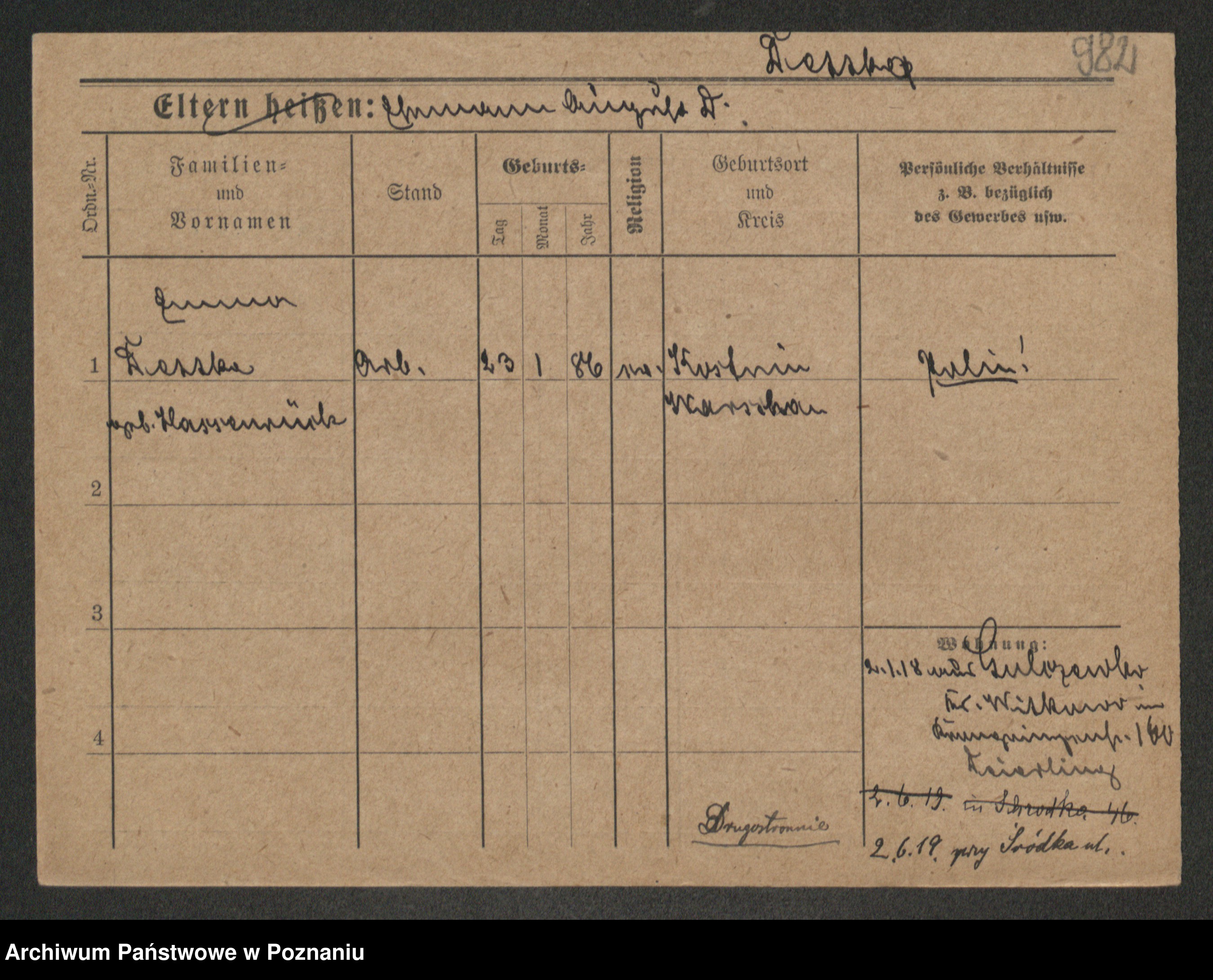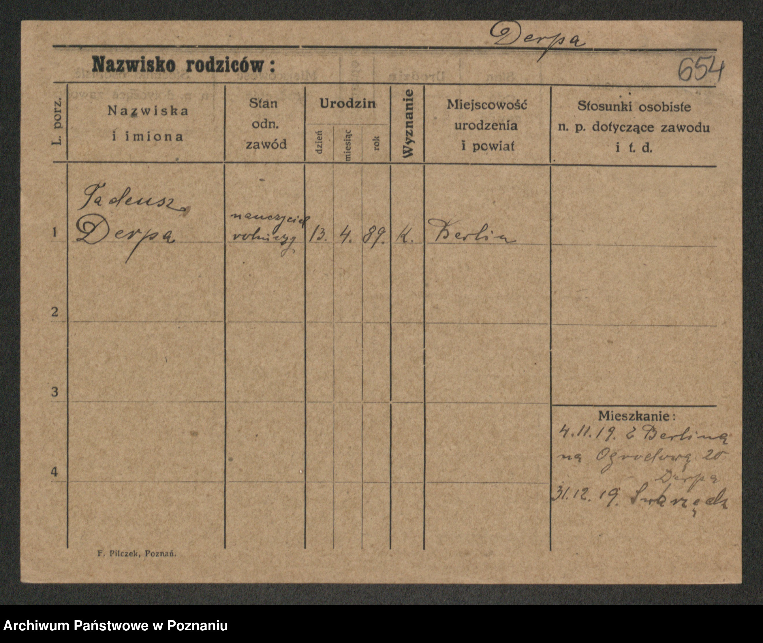 Podgląd karty osobowej dostępny jest po kliknięciu na nazwisko lub ikonkę karty. Można dokonywać powiększenia (ikony na górze) lub przechodzić między kolejnymi skanami (strzałki po bokach).