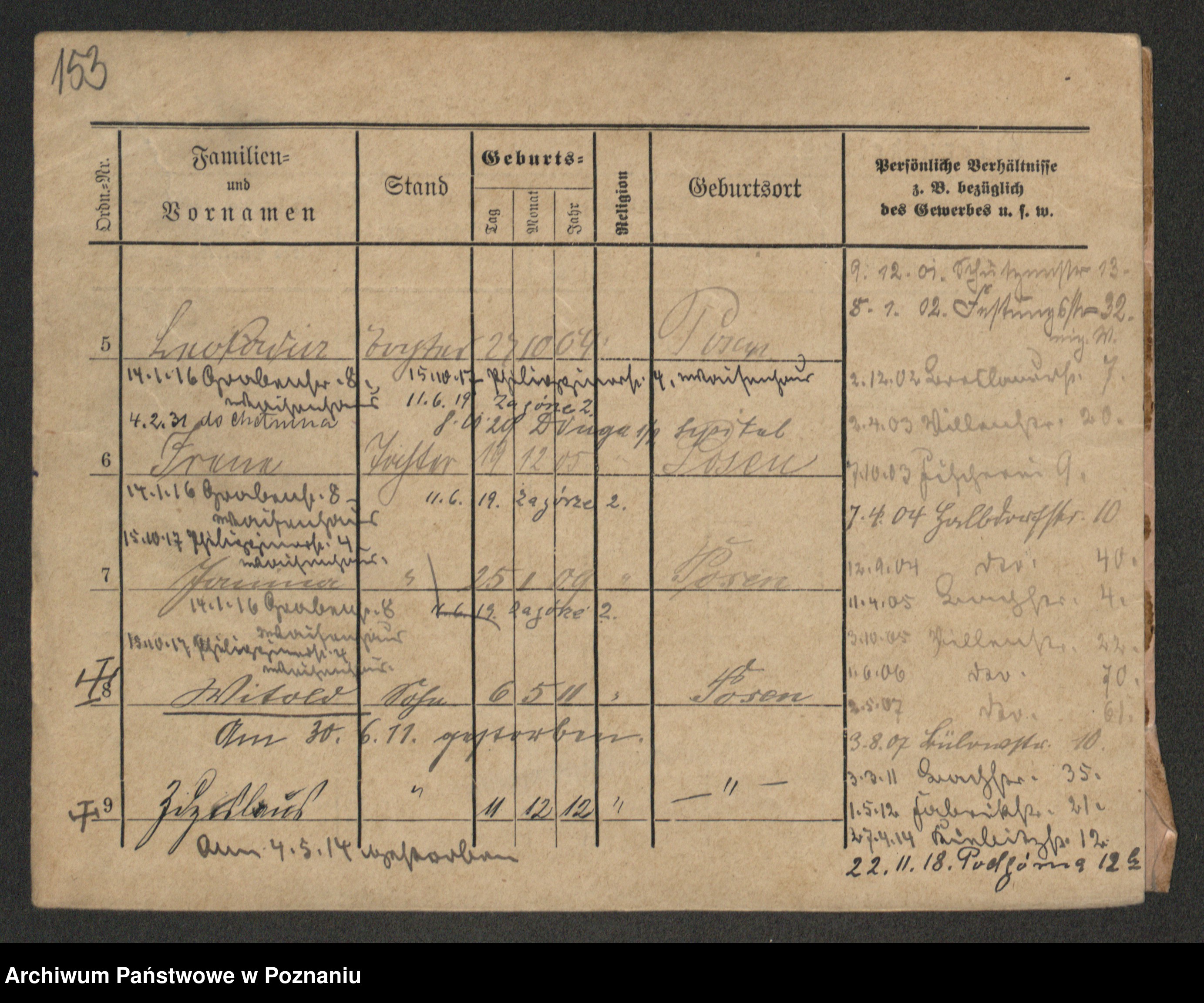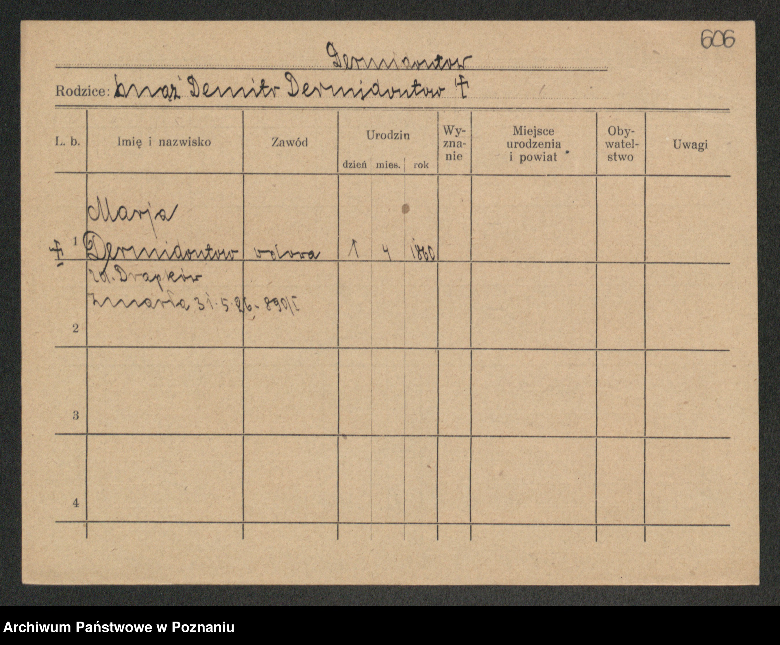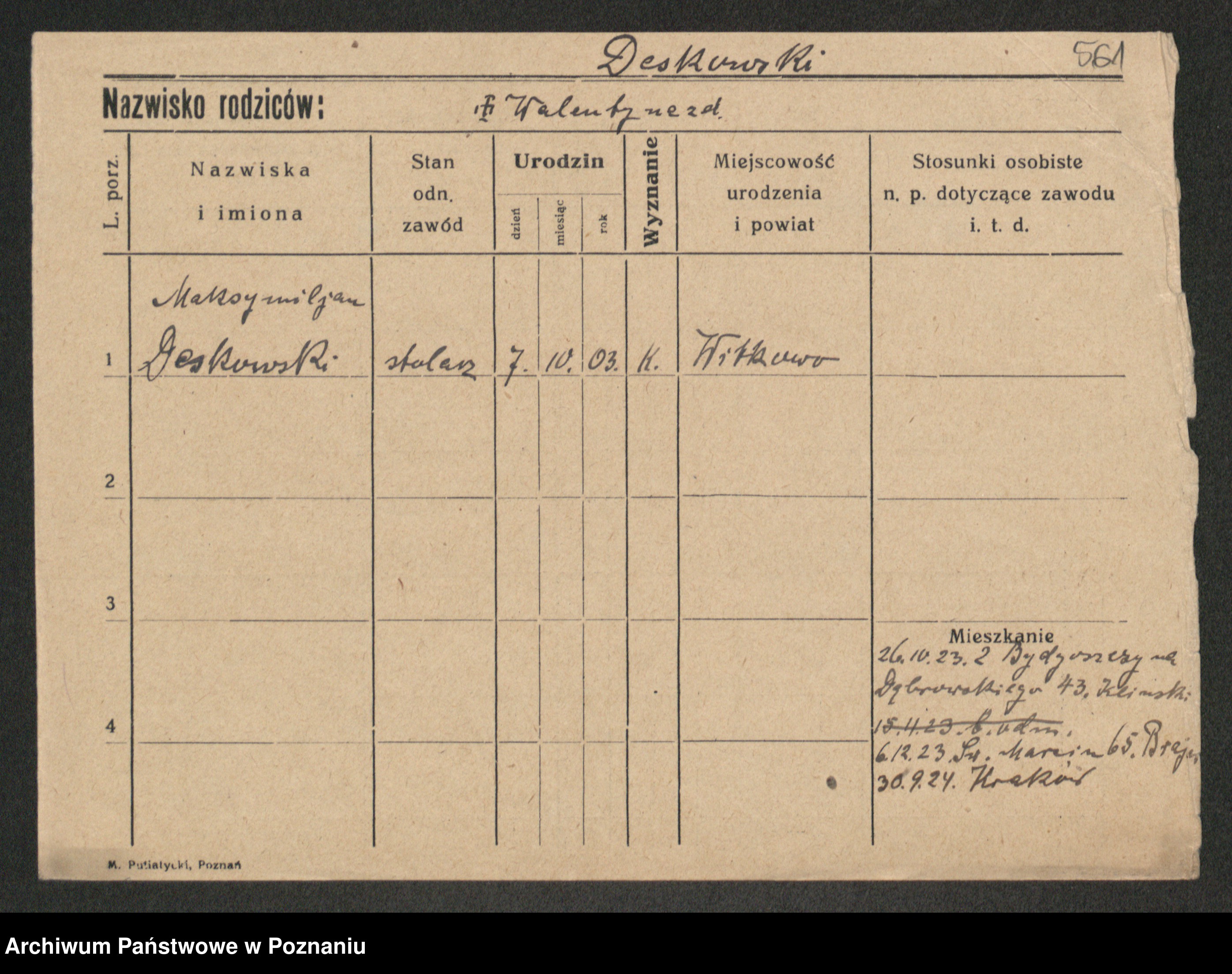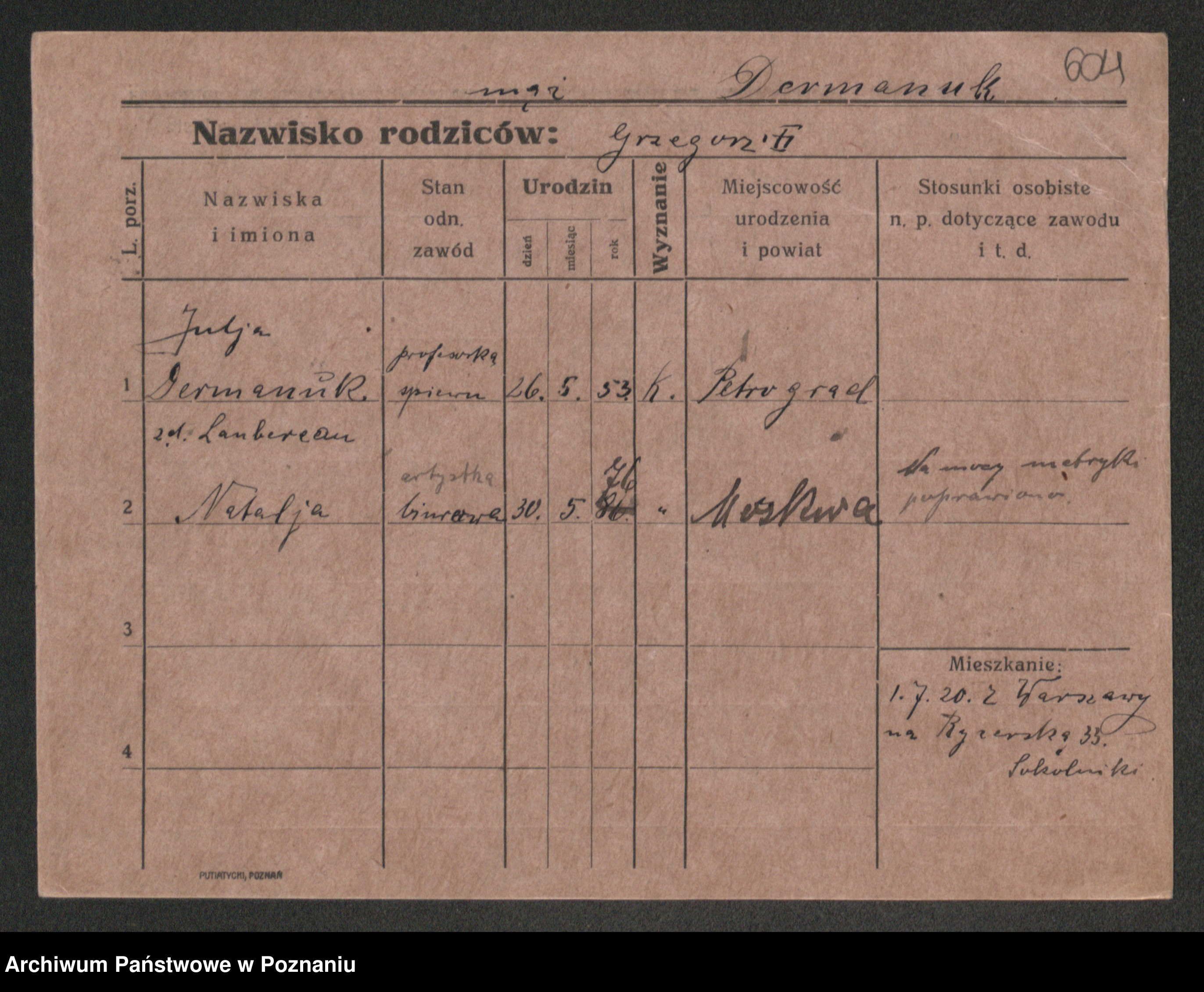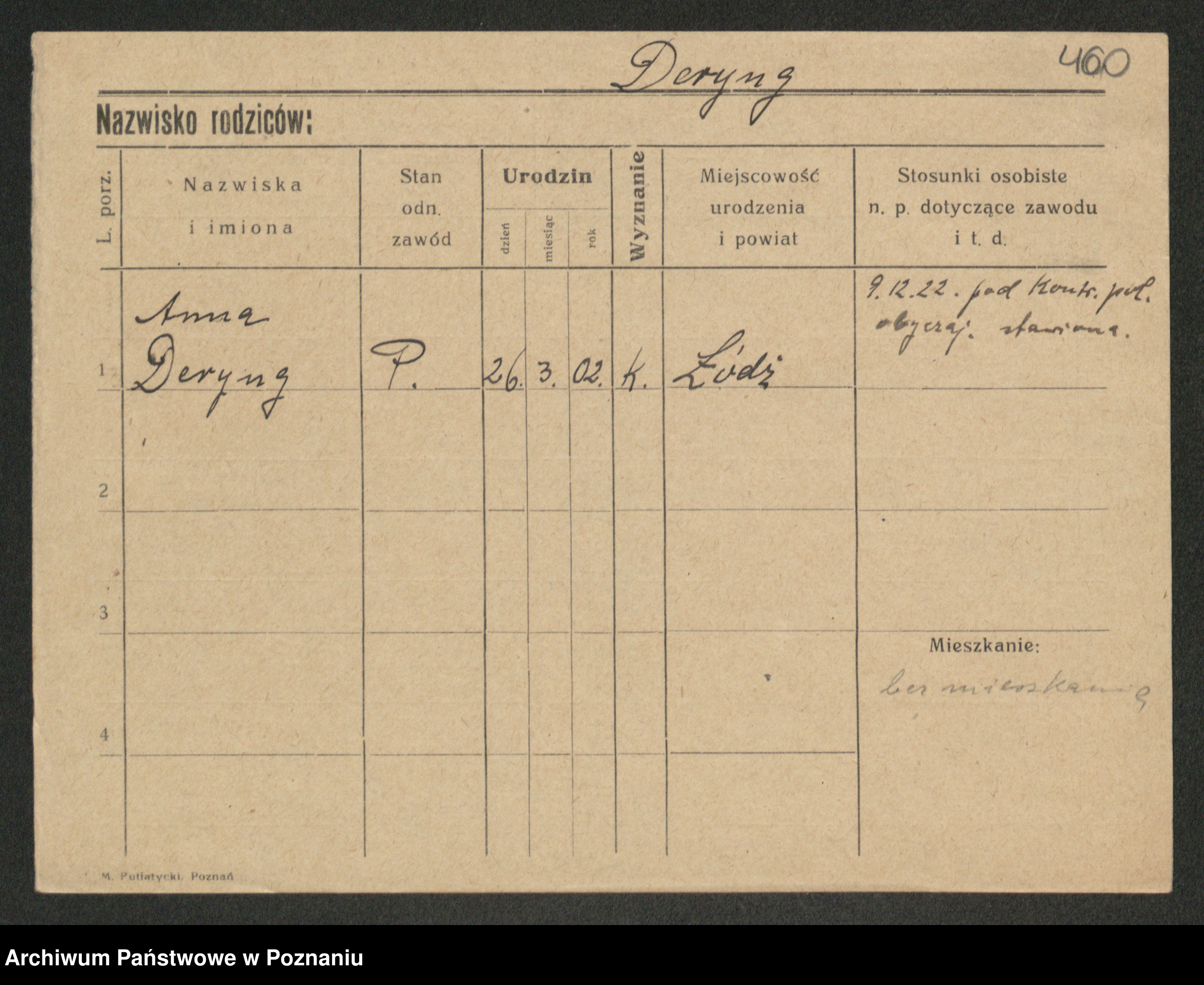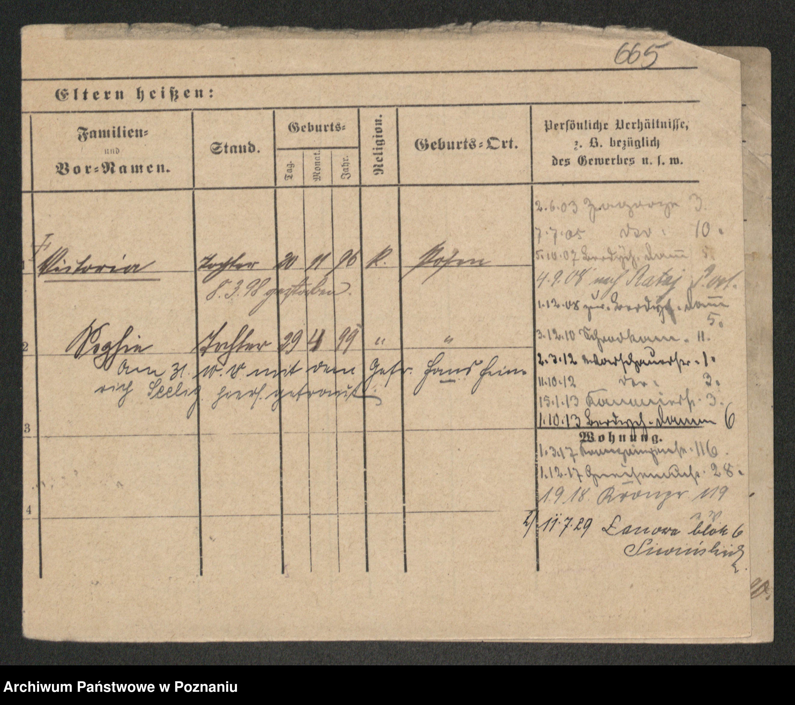 Podgląd karty osobowej dostępny jest po kliknięciu na nazwisko lub ikonkę karty. Można dokonywać powiększenia (ikony na górze) lub przechodzić między kolejnymi skanami (strzałki po bokach).