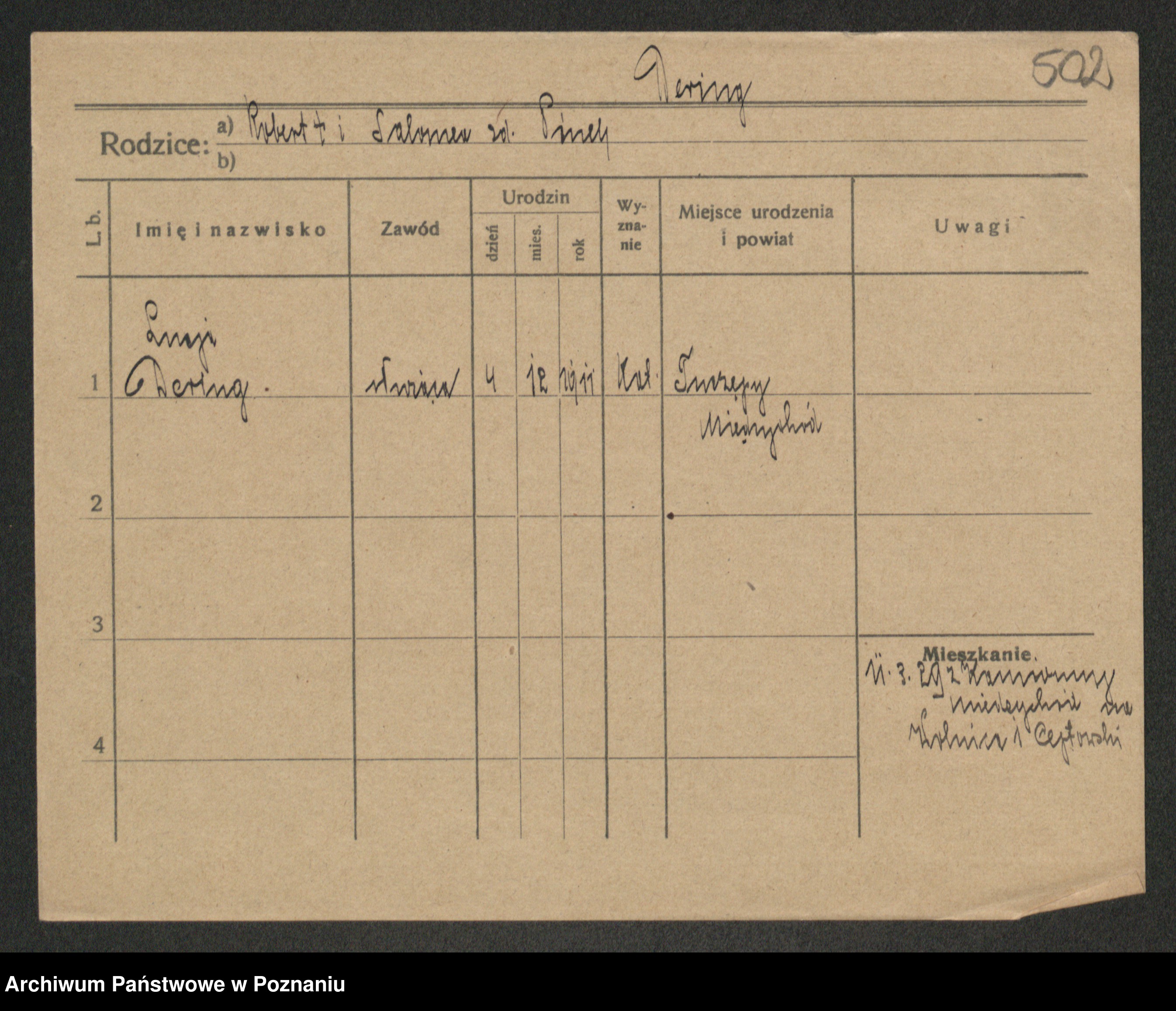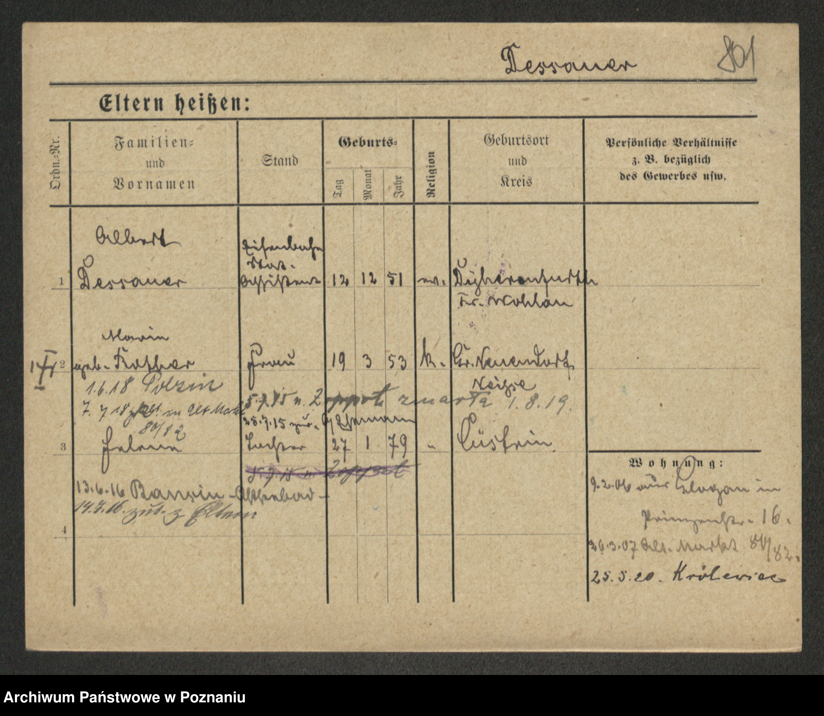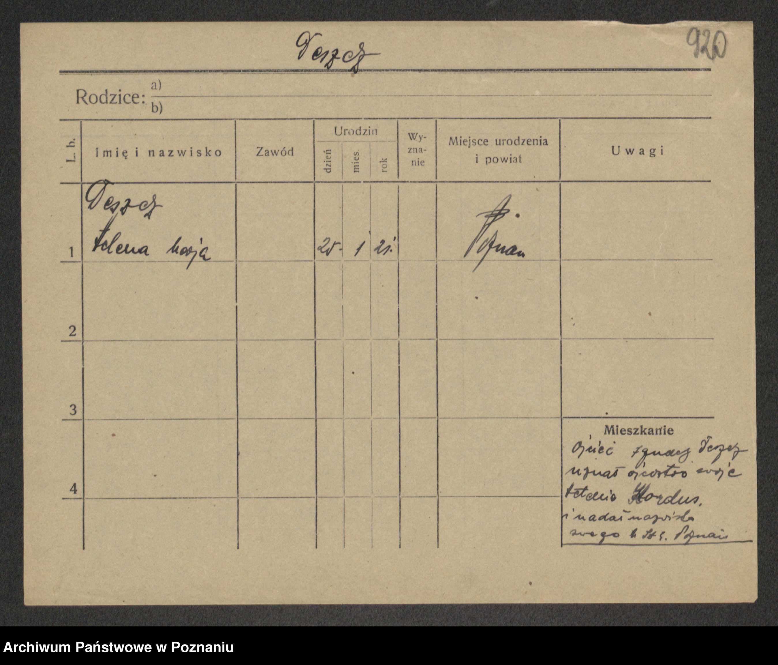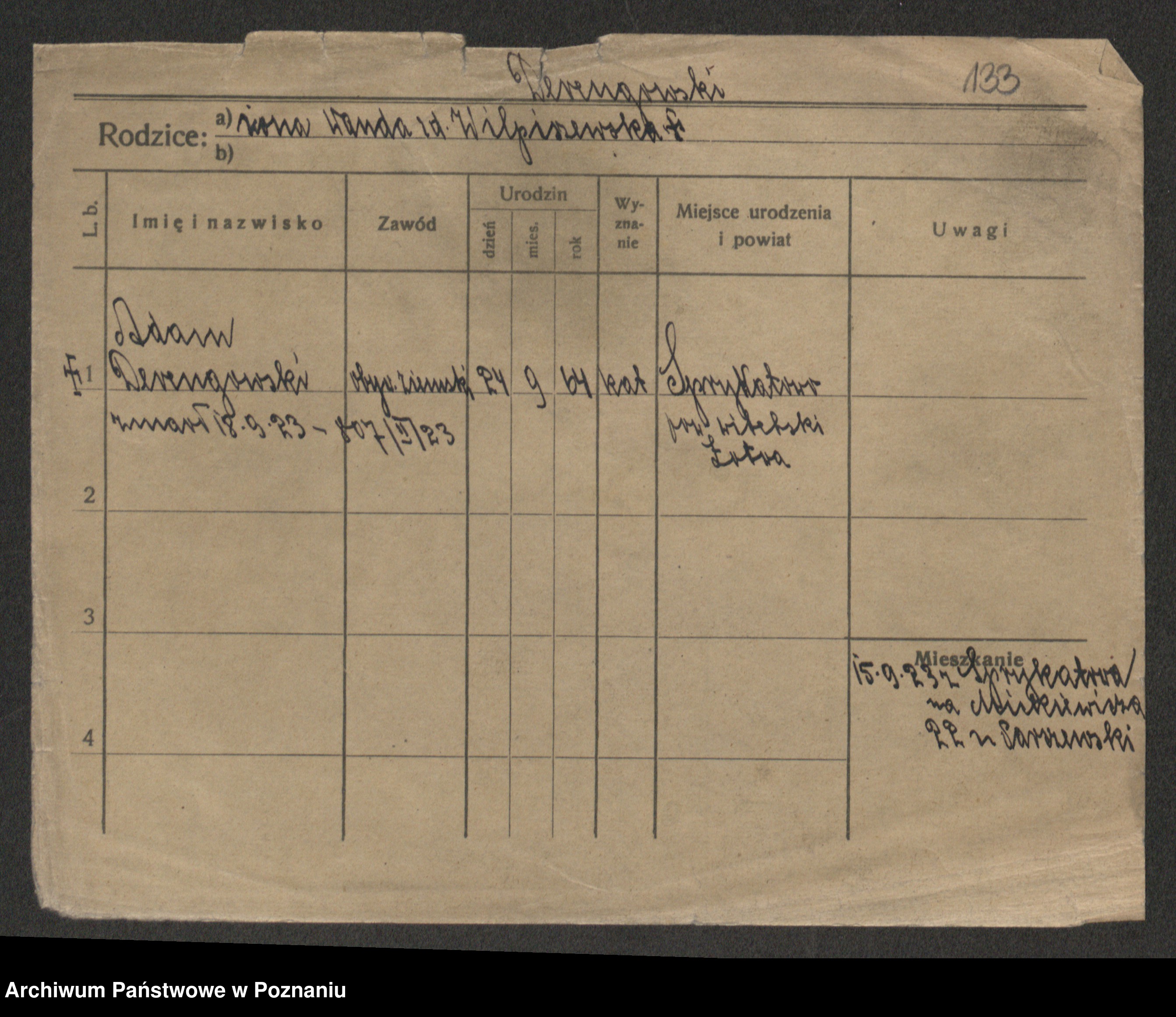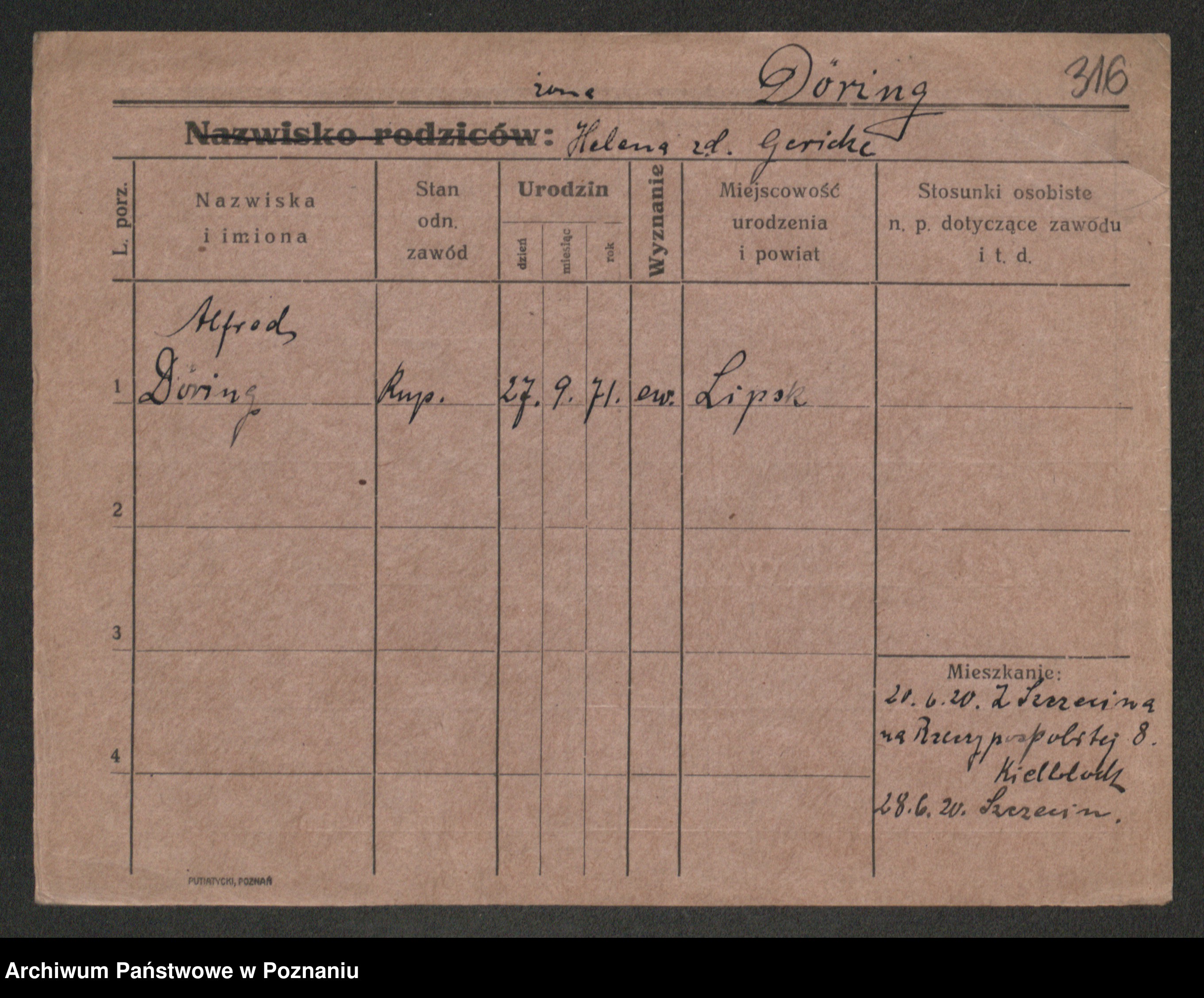 Podgląd karty osobowej dostępny jest po kliknięciu na nazwisko lub ikonkę karty. Można dokonywać powiększenia (ikony na górze) lub przechodzić między kolejnymi skanami (strzałki po bokach).
