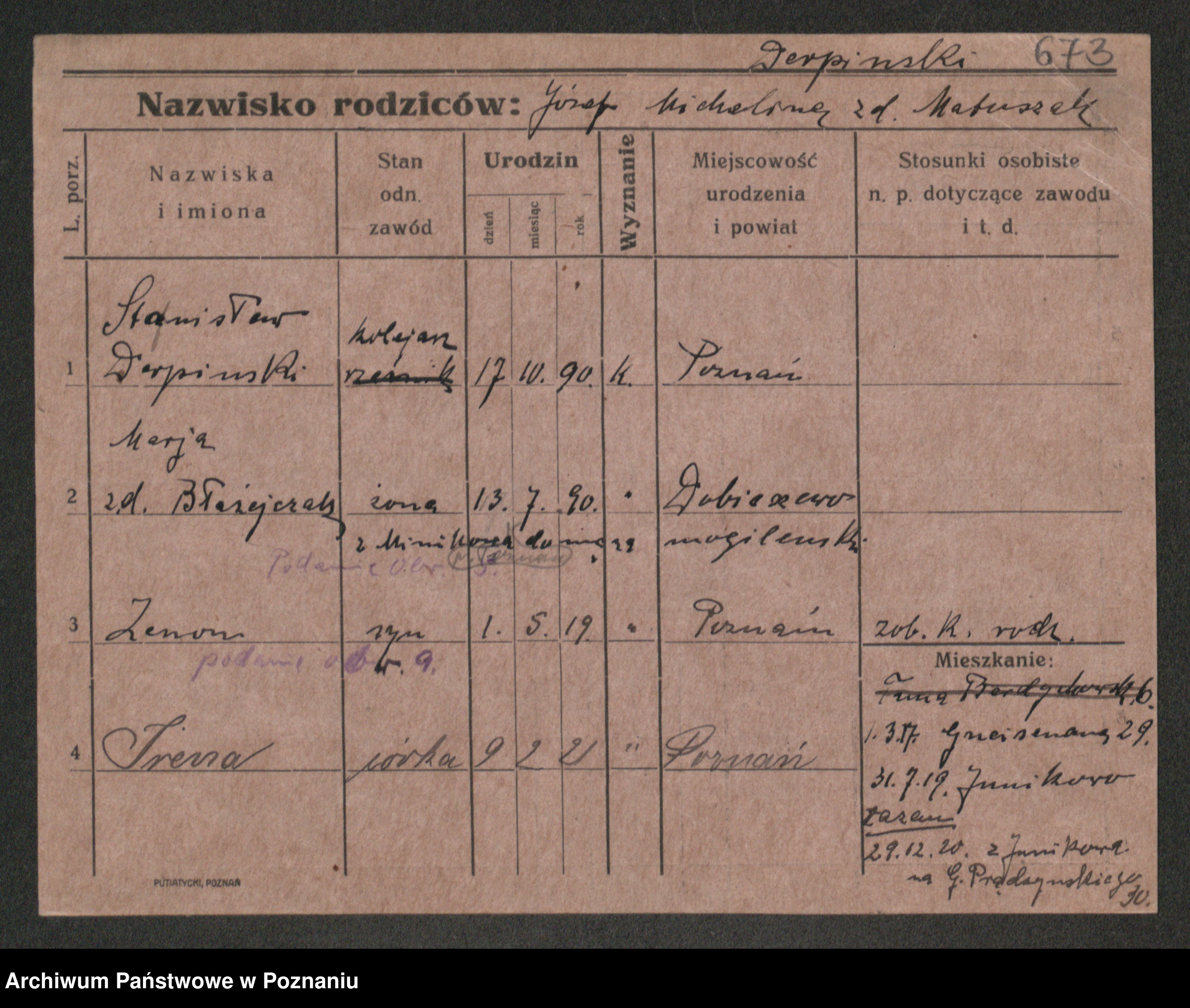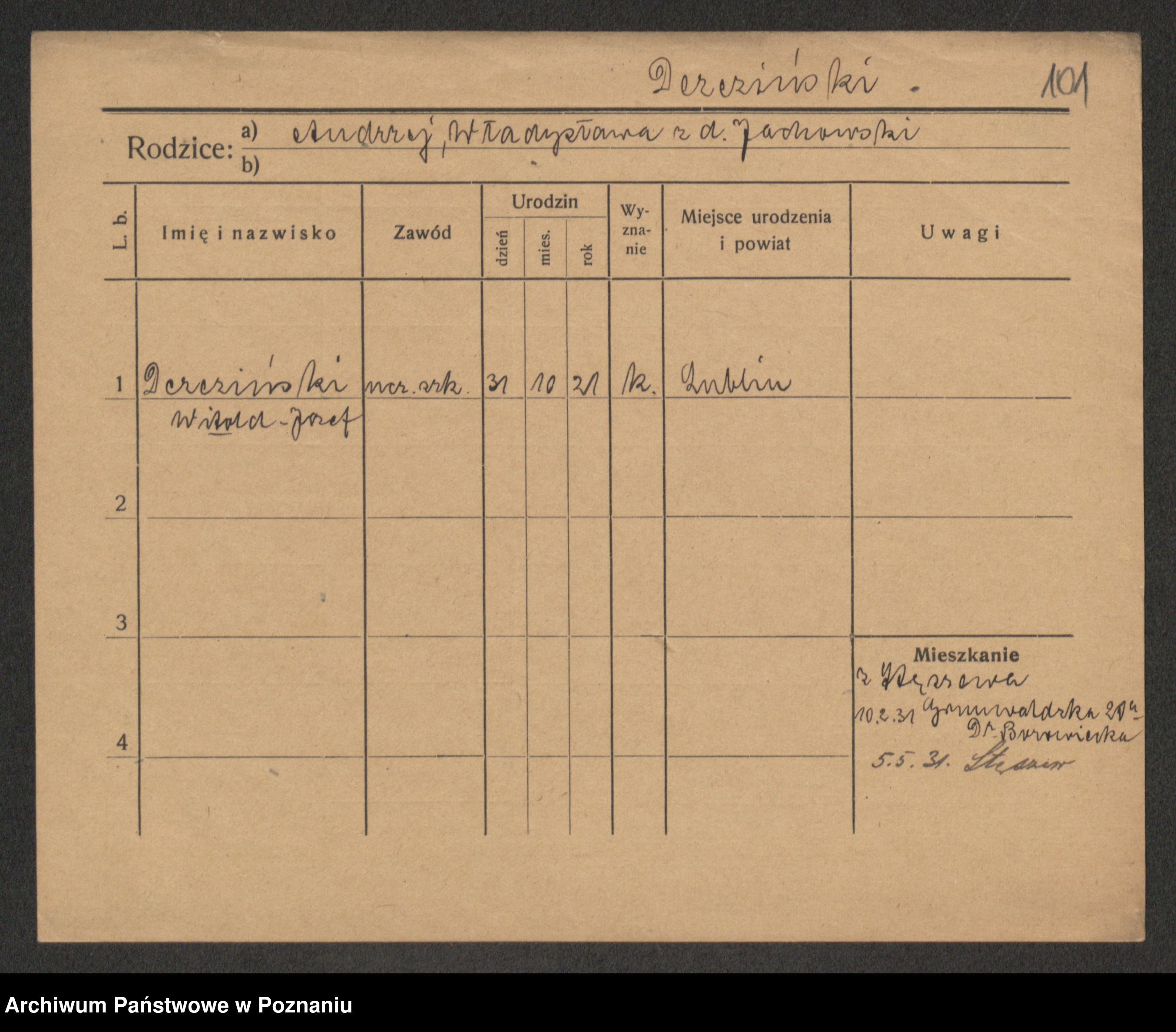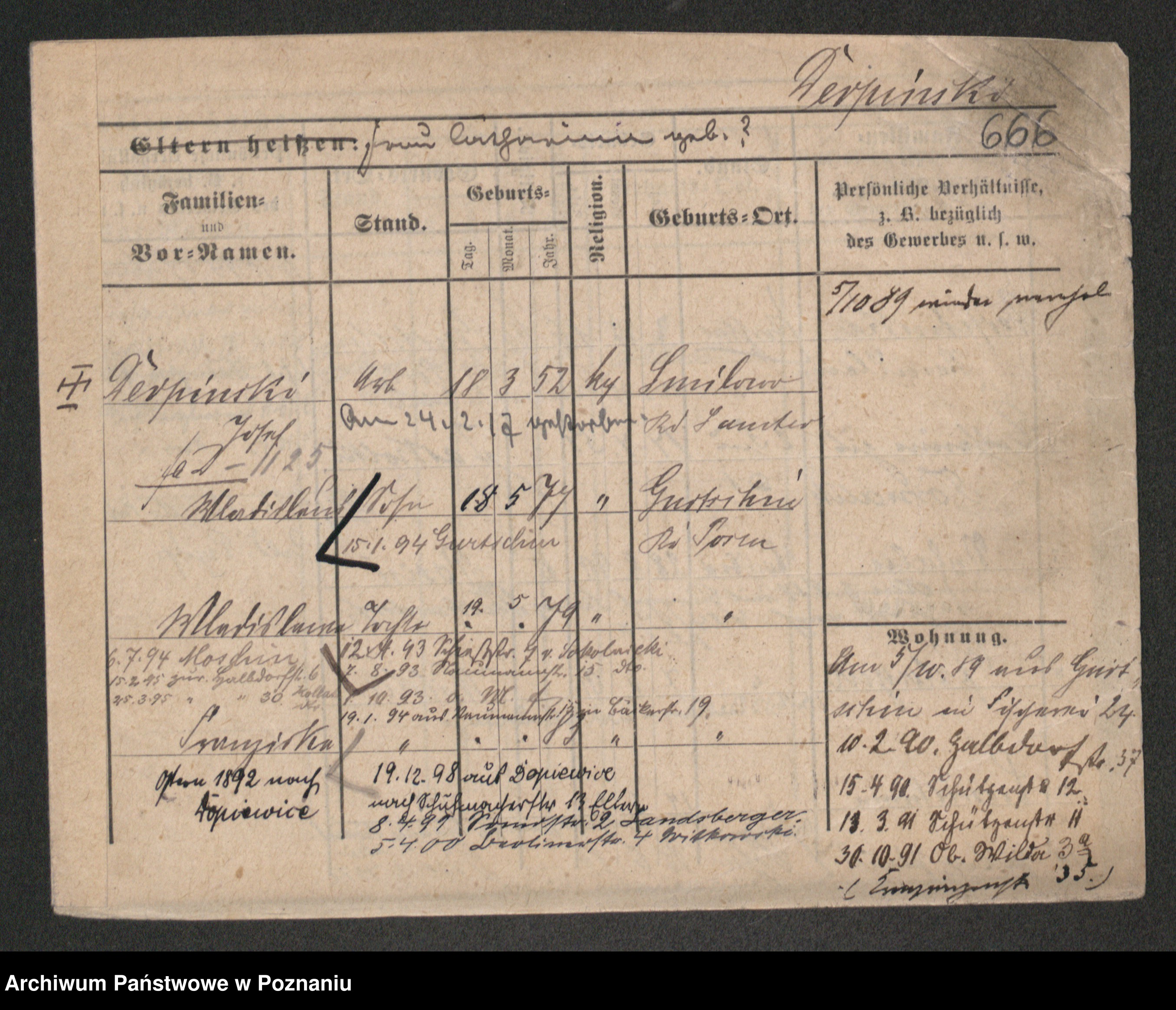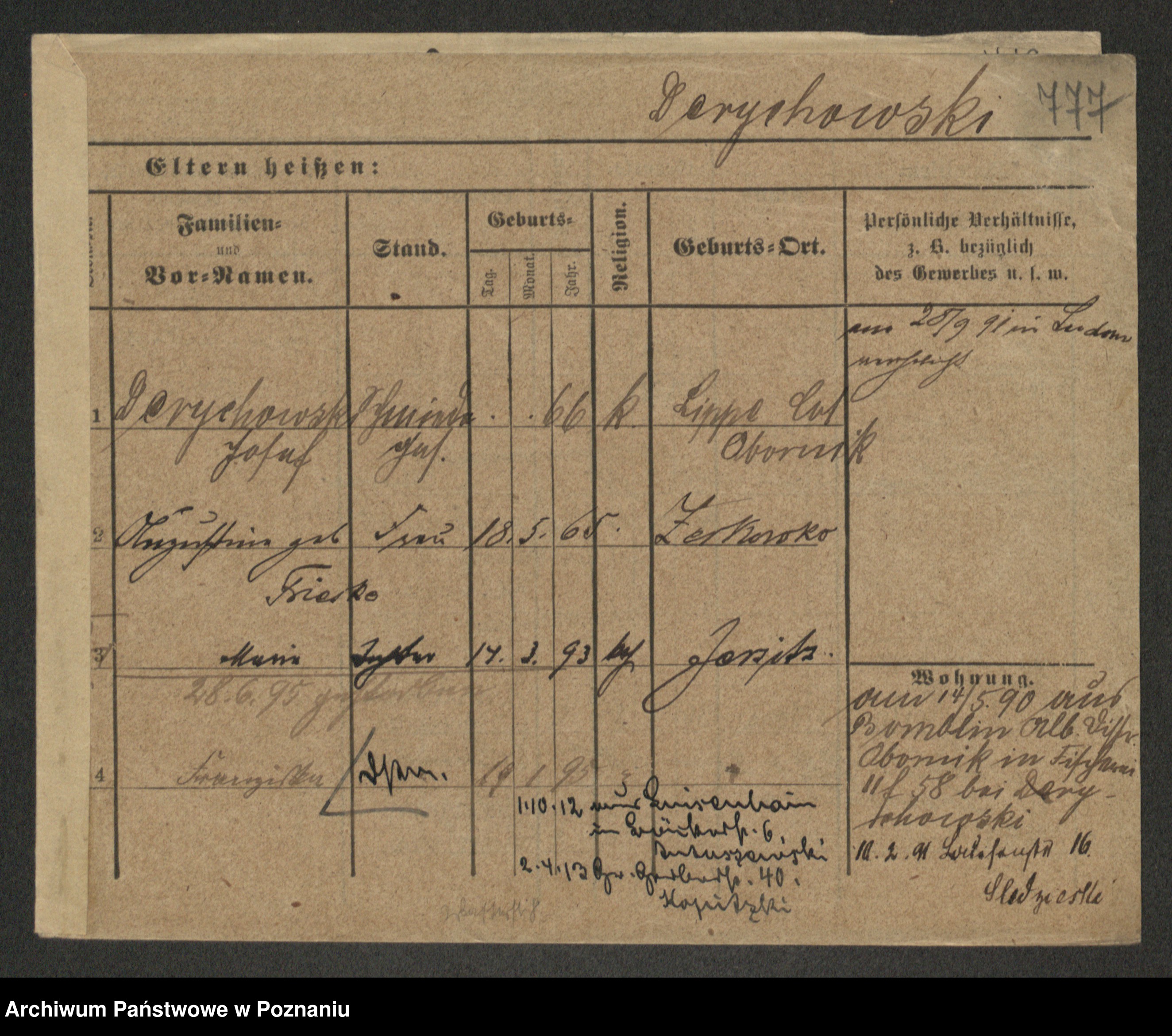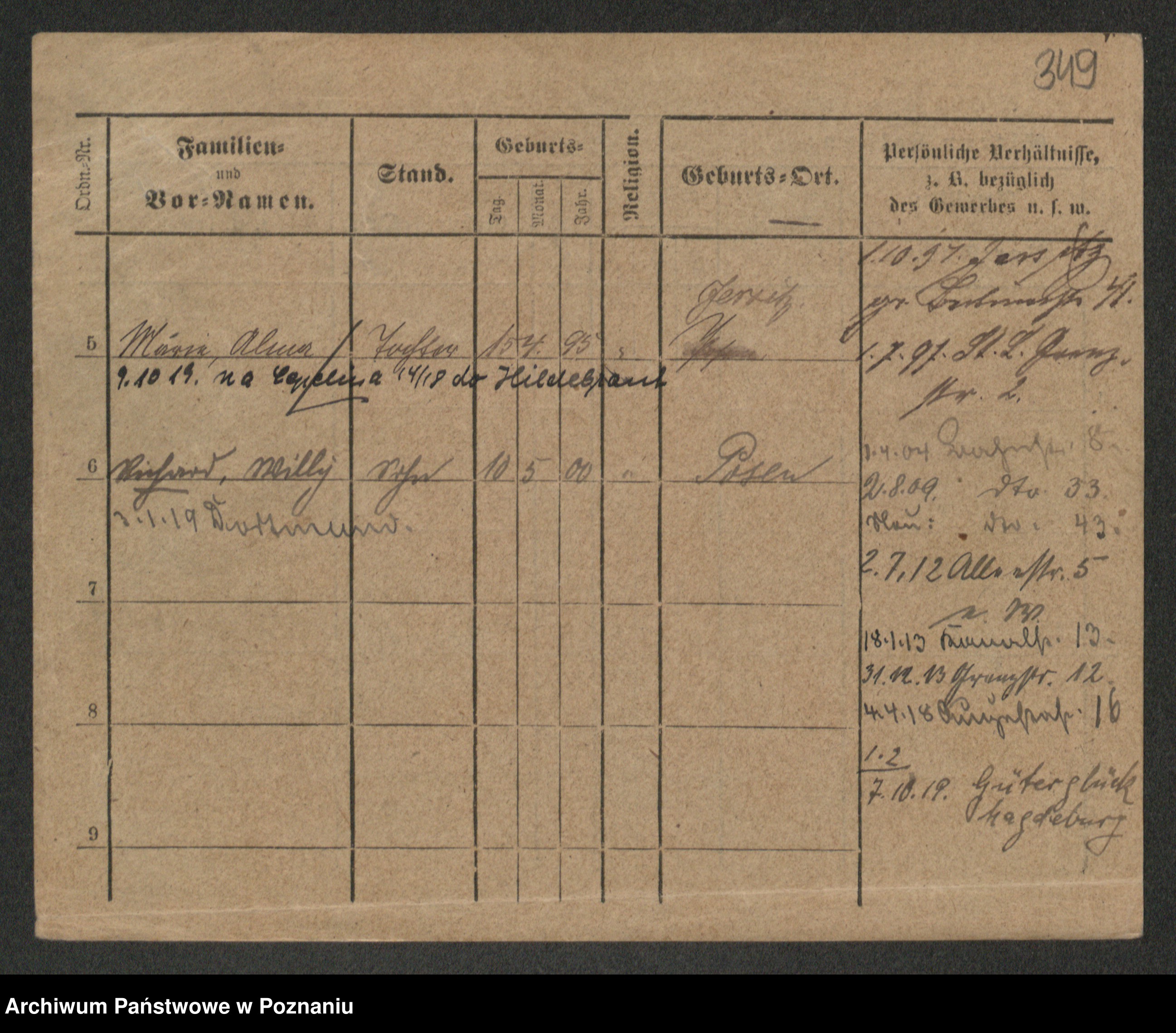 Podgląd karty osobowej dostępny jest po kliknięciu na nazwisko lub ikonkę karty. Można dokonywać powiększenia (ikony na górze) lub przechodzić między kolejnymi skanami (strzałki po bokach).