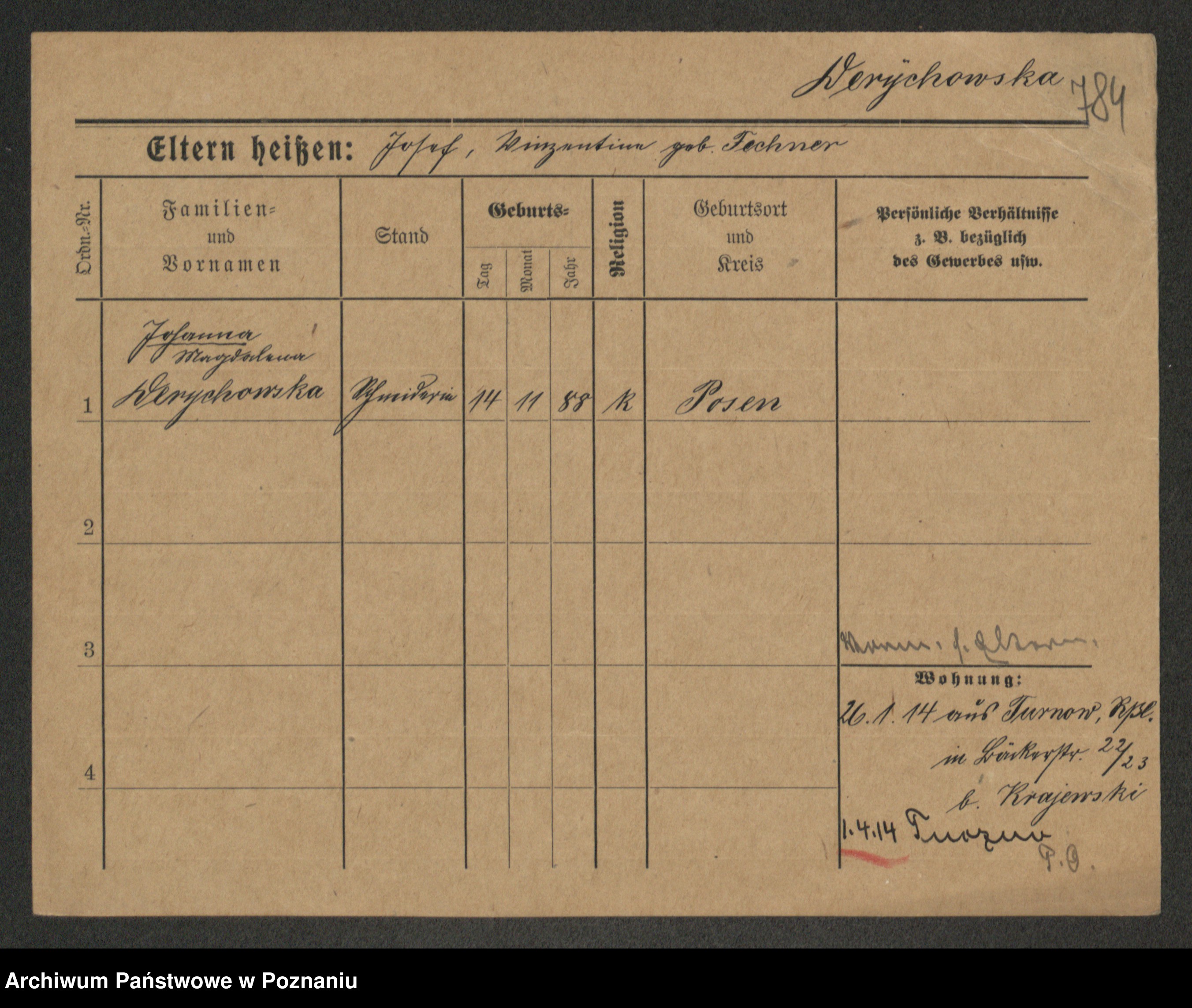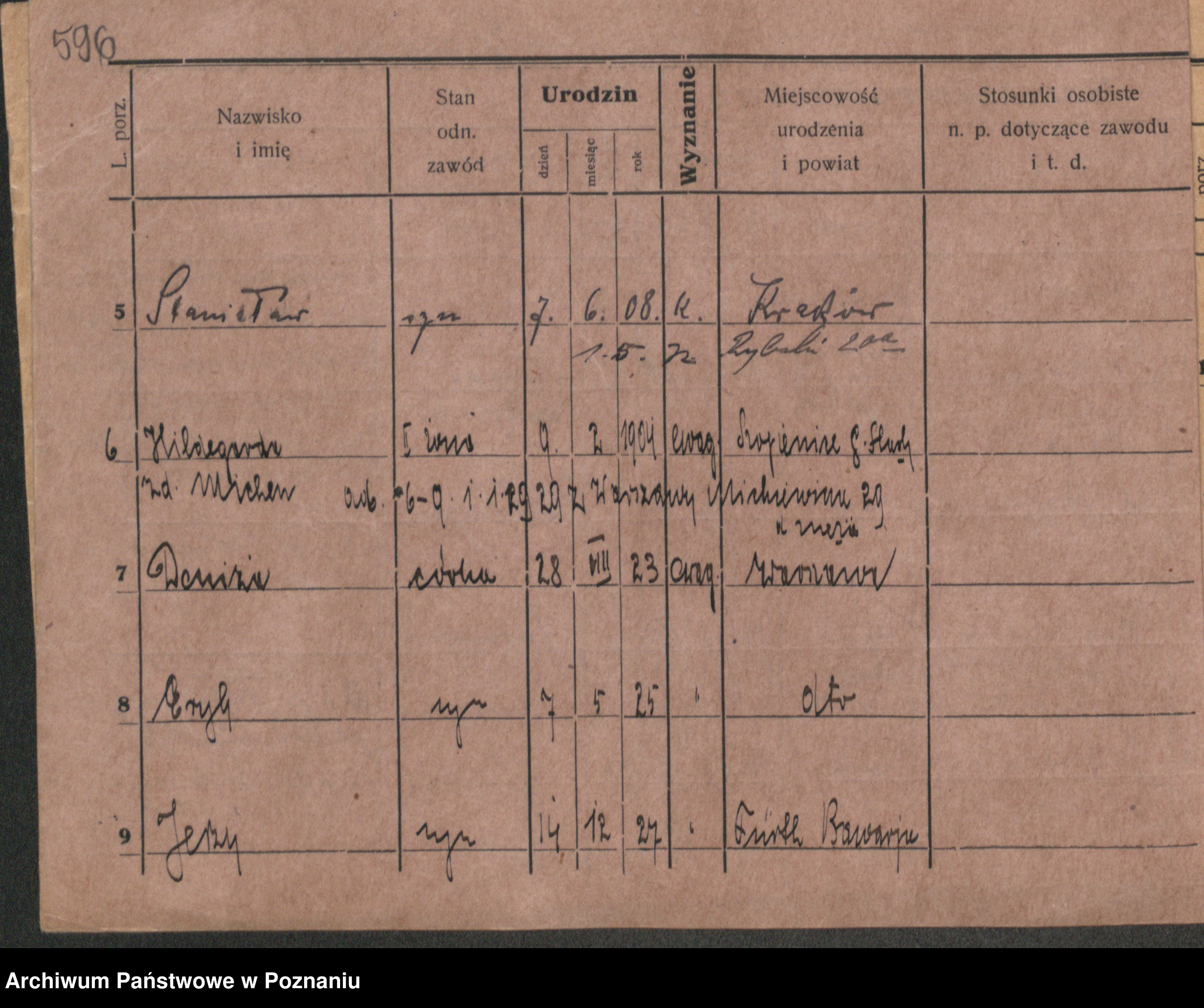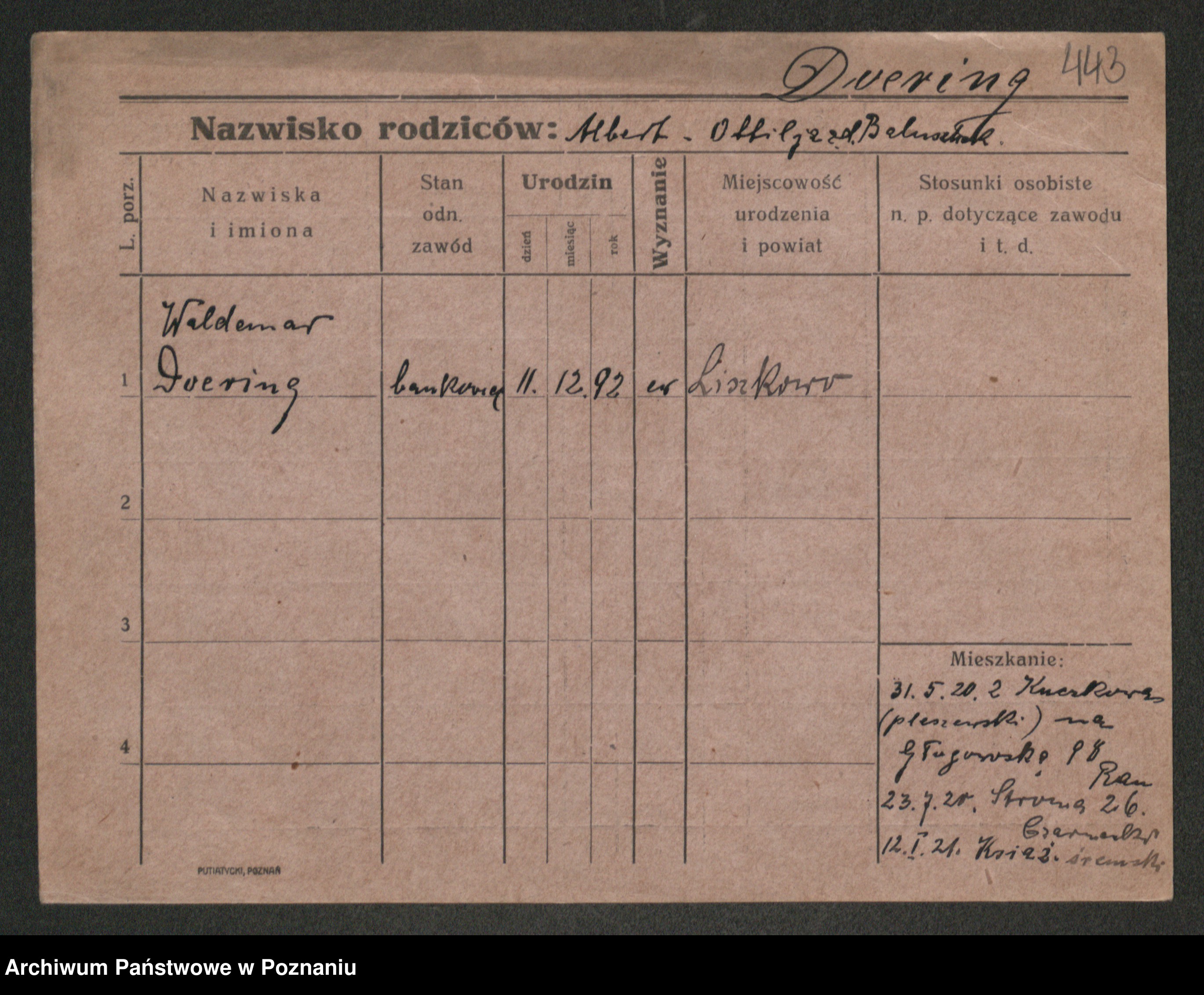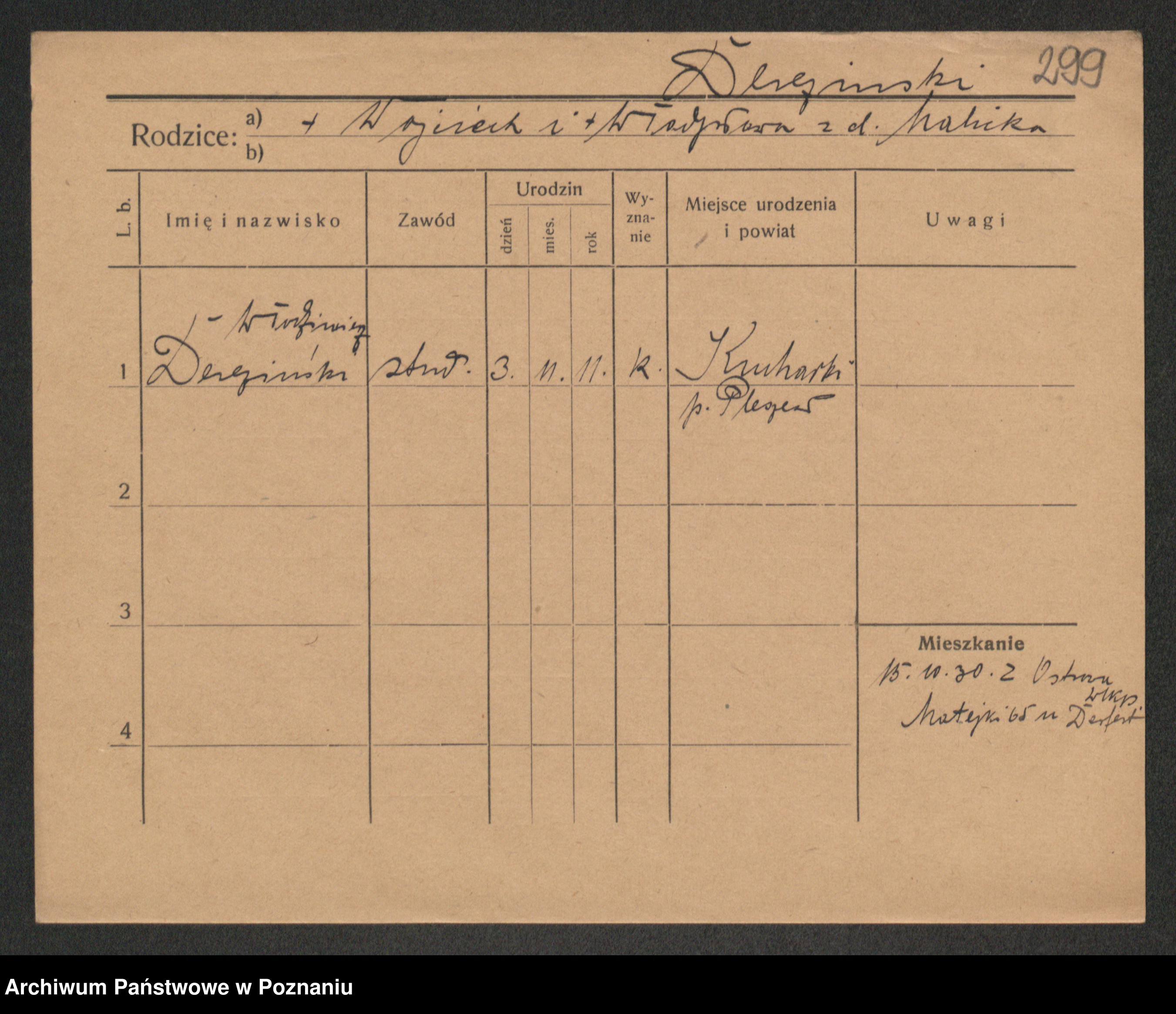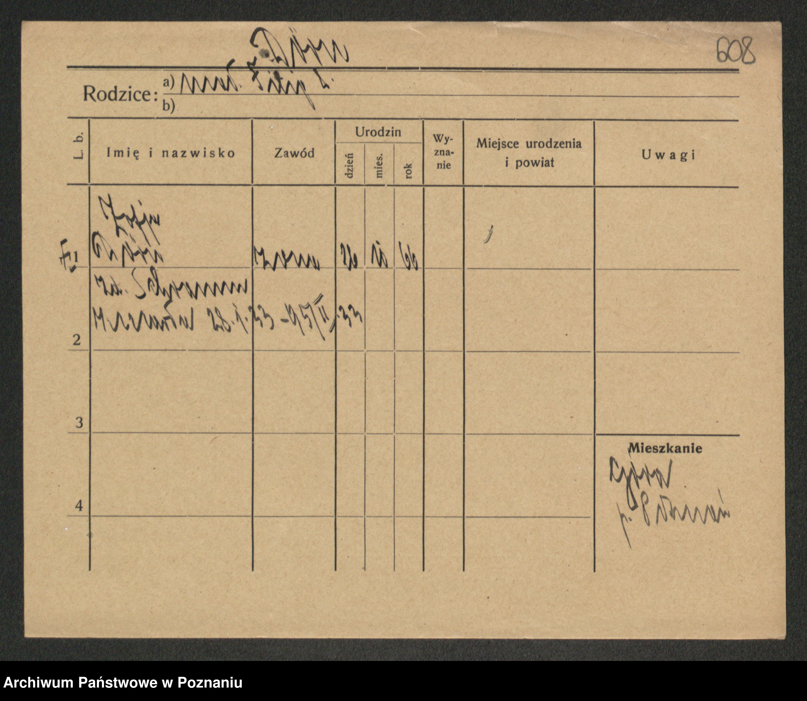 Podgląd karty osobowej dostępny jest po kliknięciu na nazwisko lub ikonkę karty. Można dokonywać powiększenia (ikony na górze) lub przechodzić między kolejnymi skanami (strzałki po bokach).