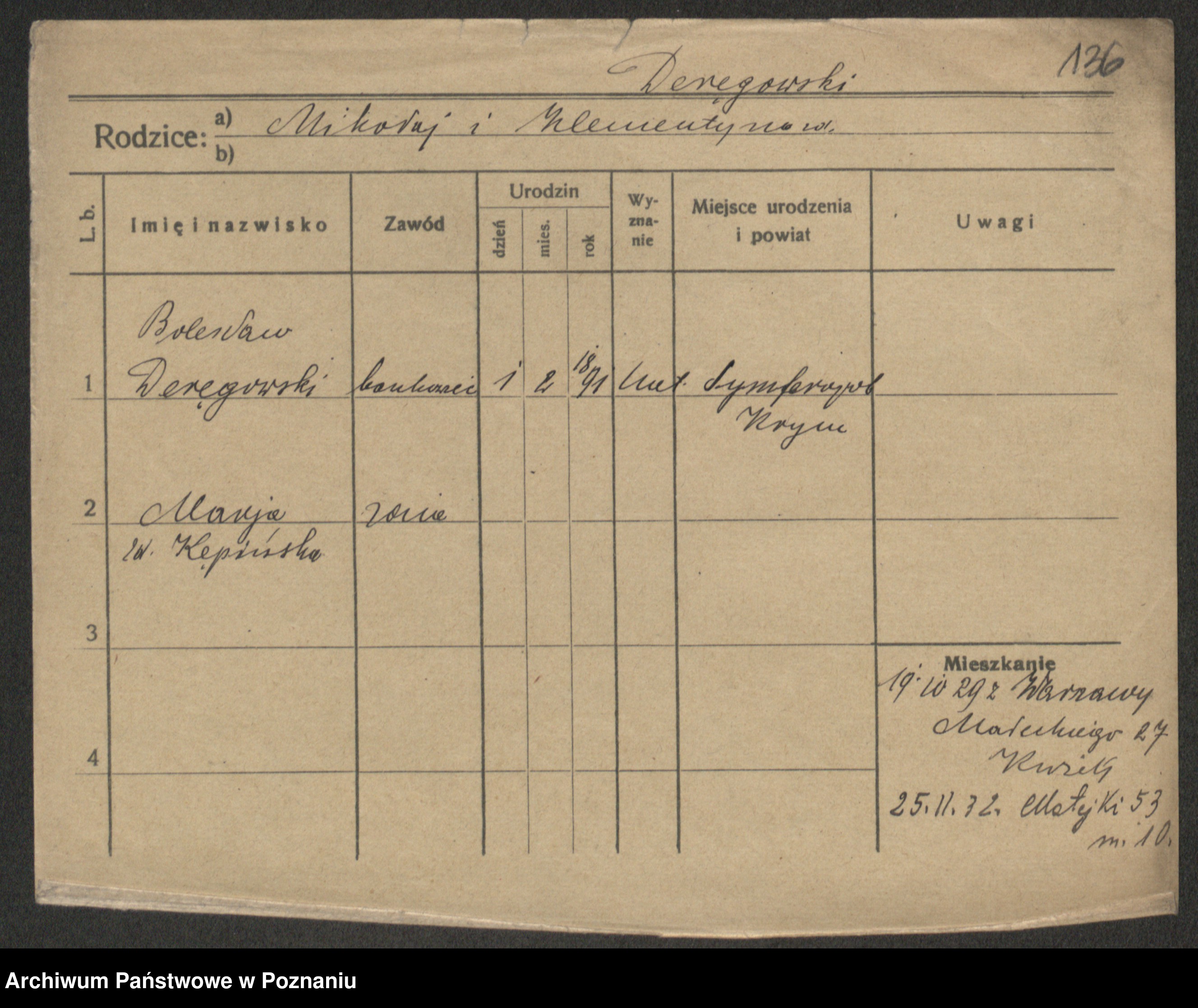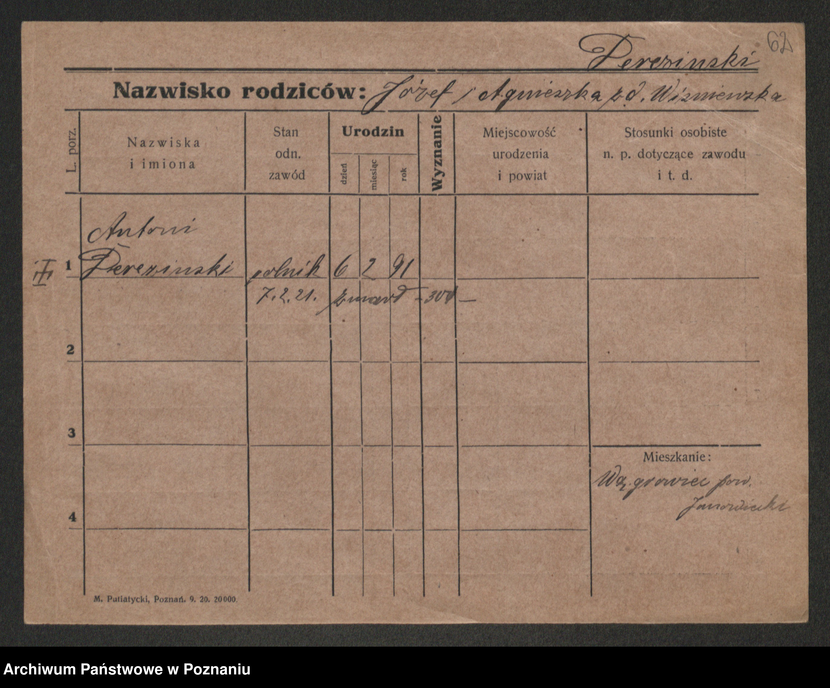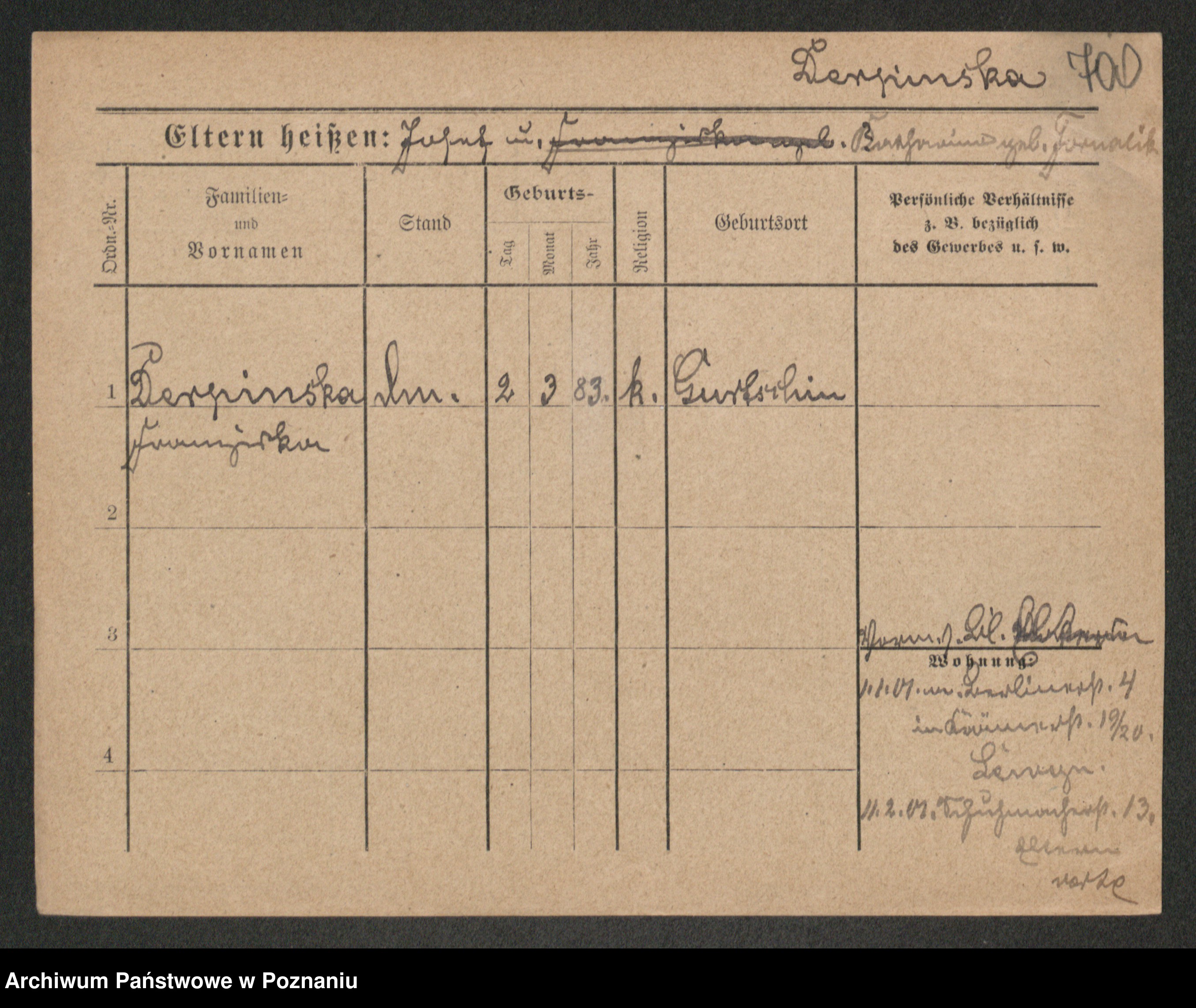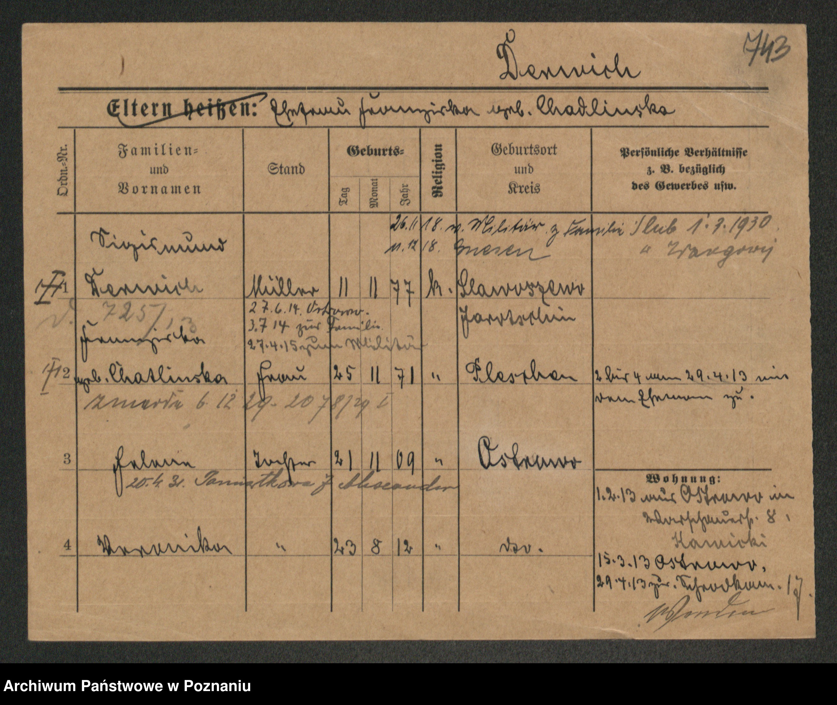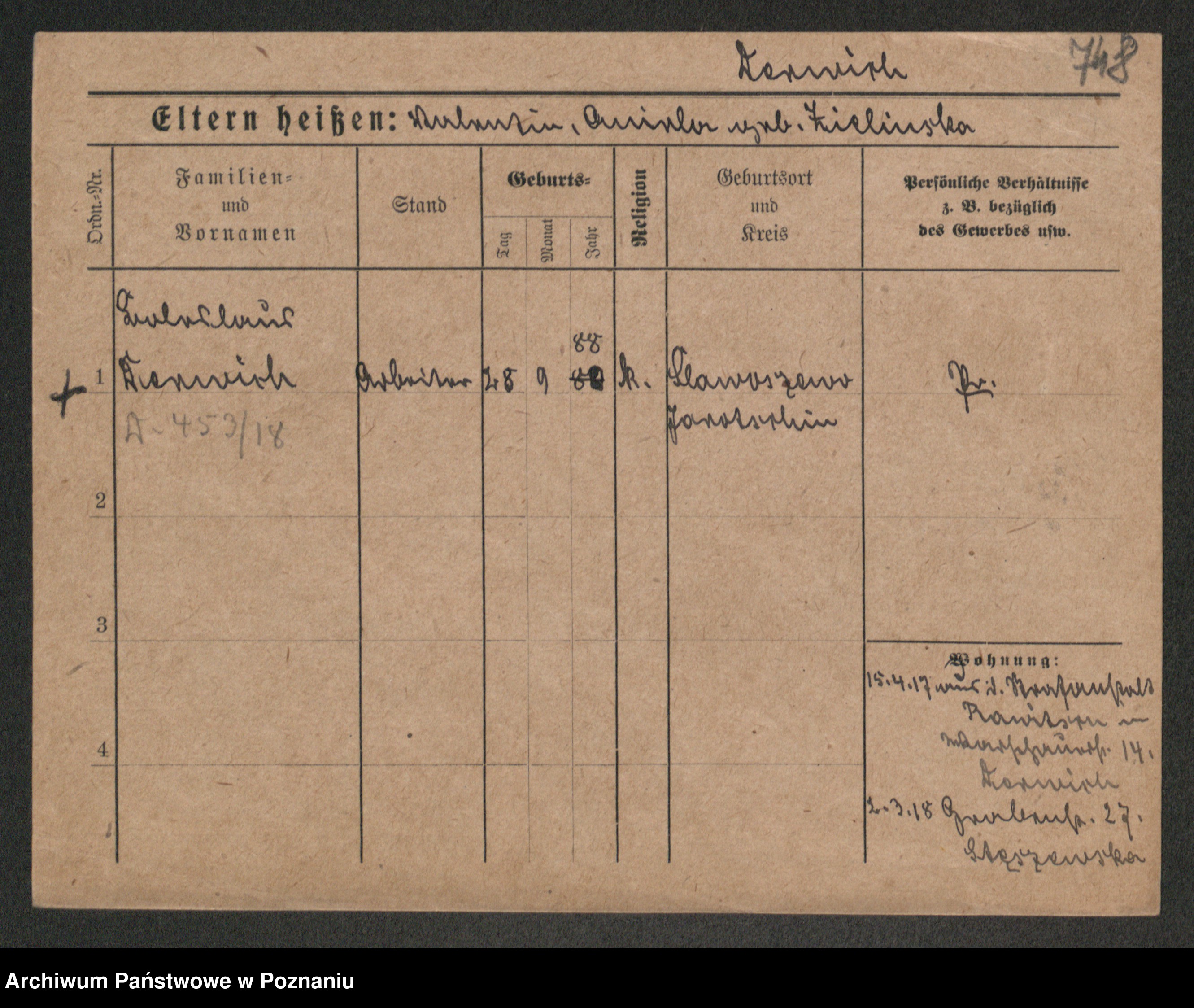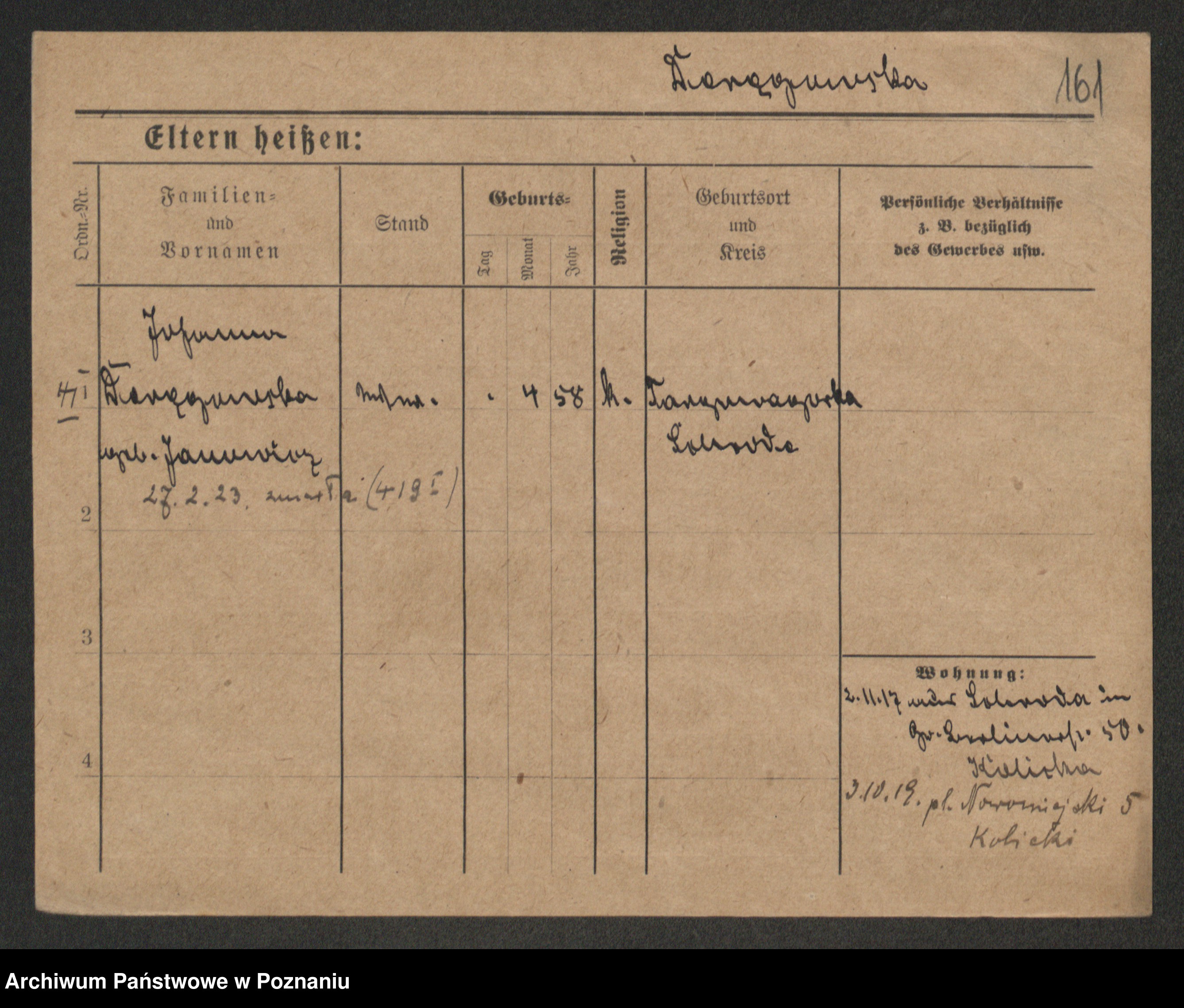 Podgląd karty osobowej dostępny jest po kliknięciu na nazwisko lub ikonkę karty. Można dokonywać powiększenia (ikony na górze) lub przechodzić między kolejnymi skanami (strzałki po bokach).