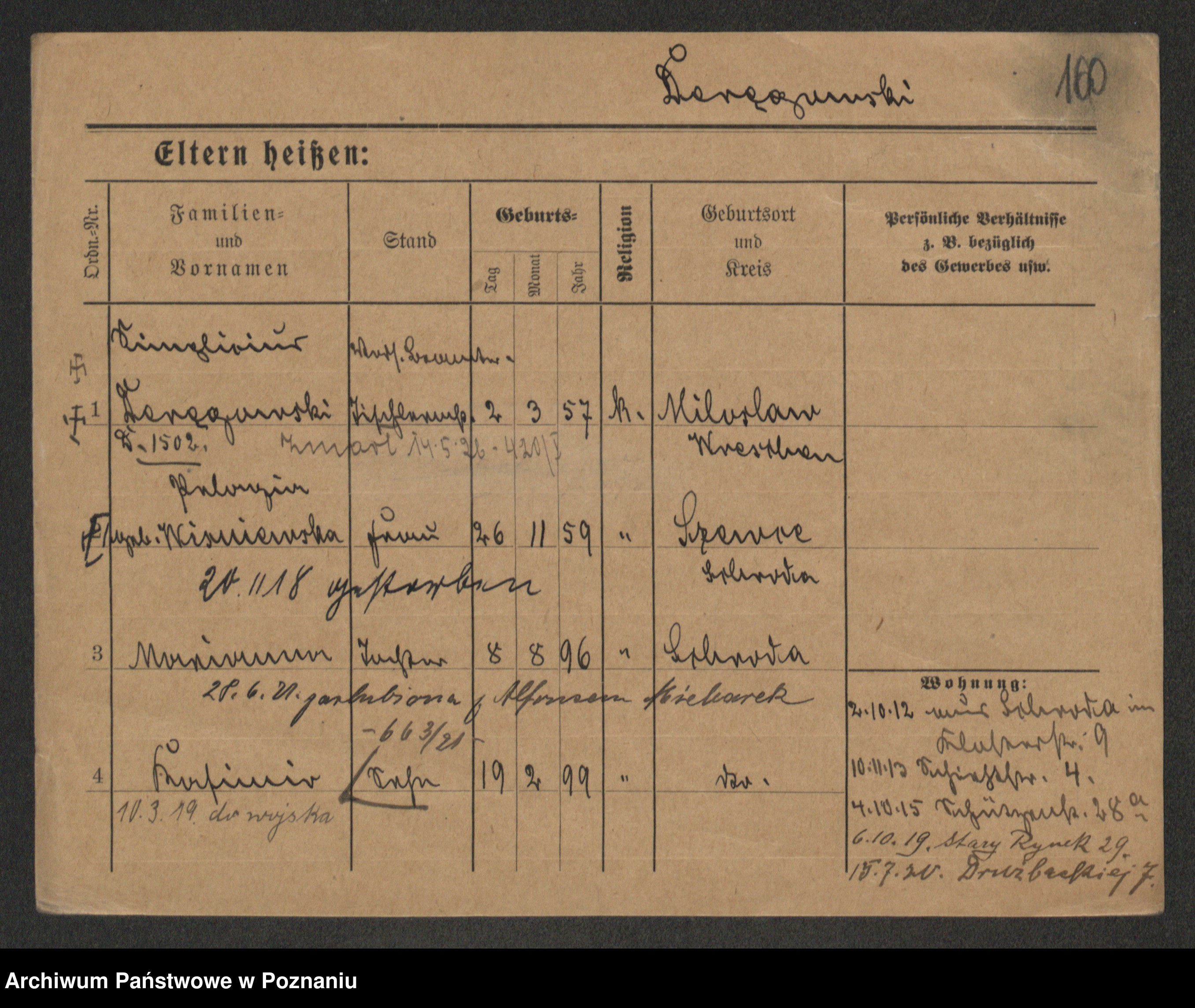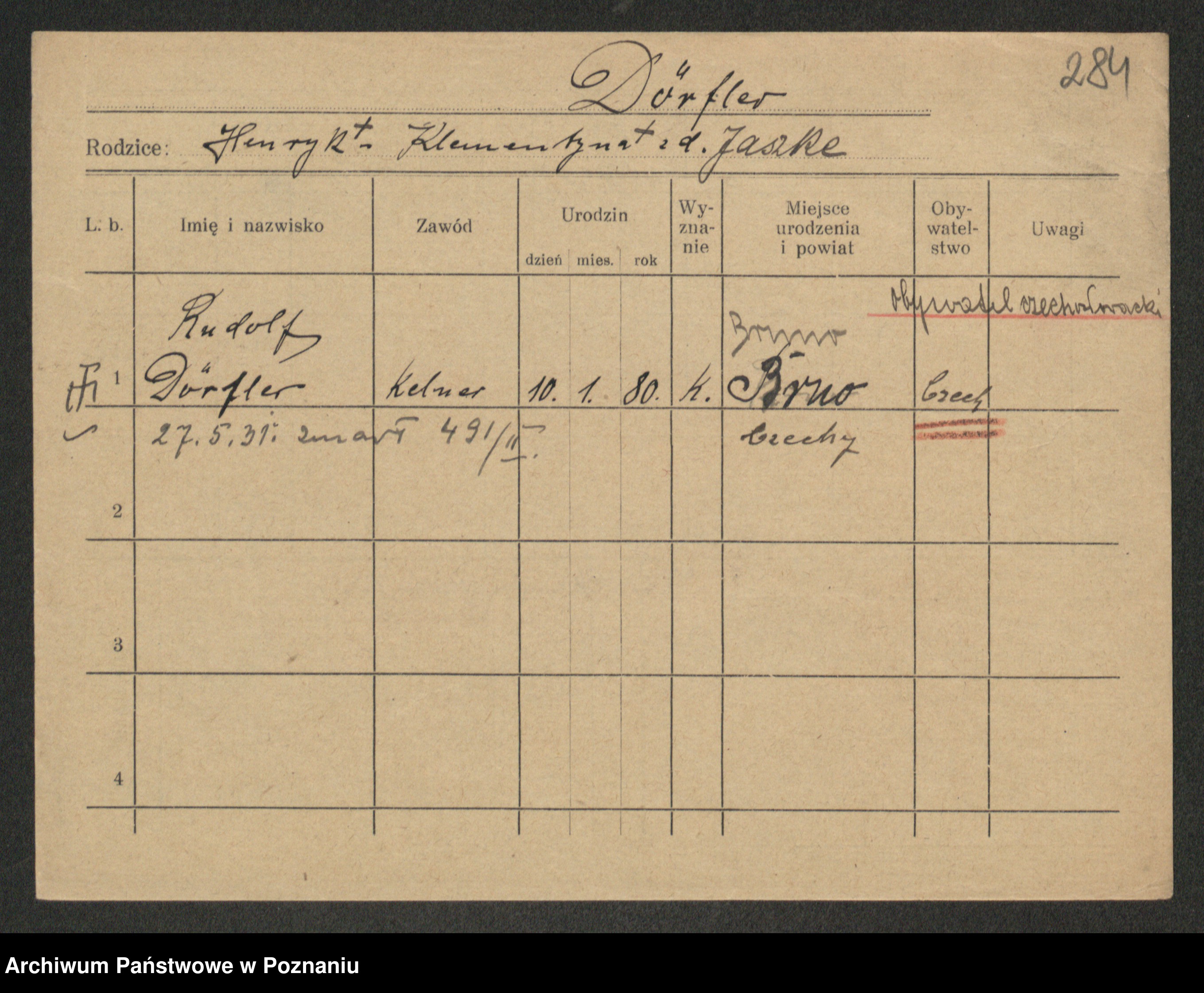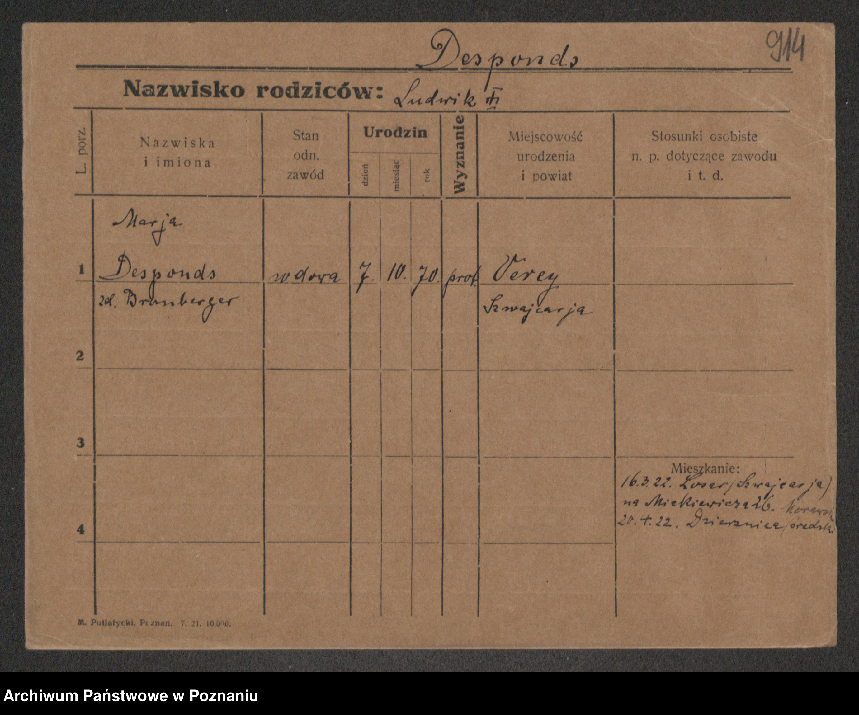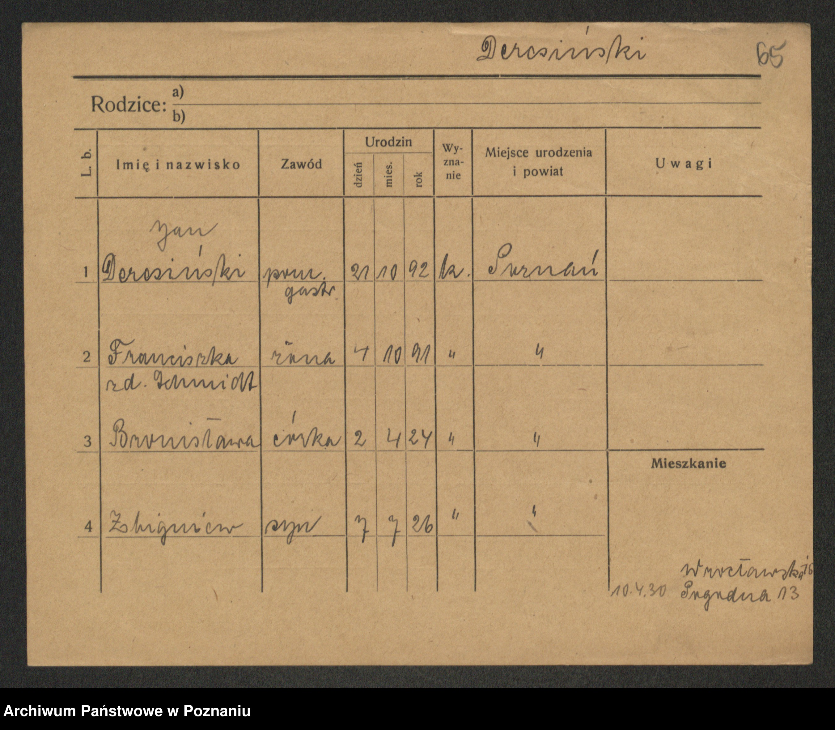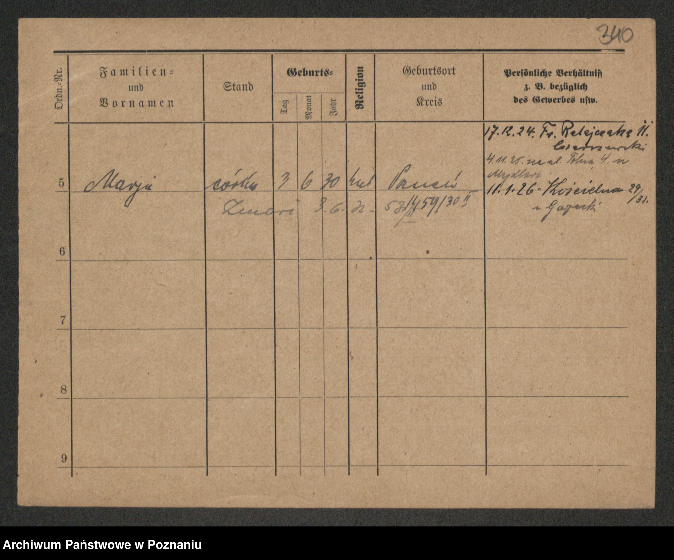 Podgląd karty osobowej dostępny jest po kliknięciu na nazwisko lub ikonkę karty. Można dokonywać powiększenia (ikony na górze) lub przechodzić między kolejnymi skanami (strzałki po bokach).