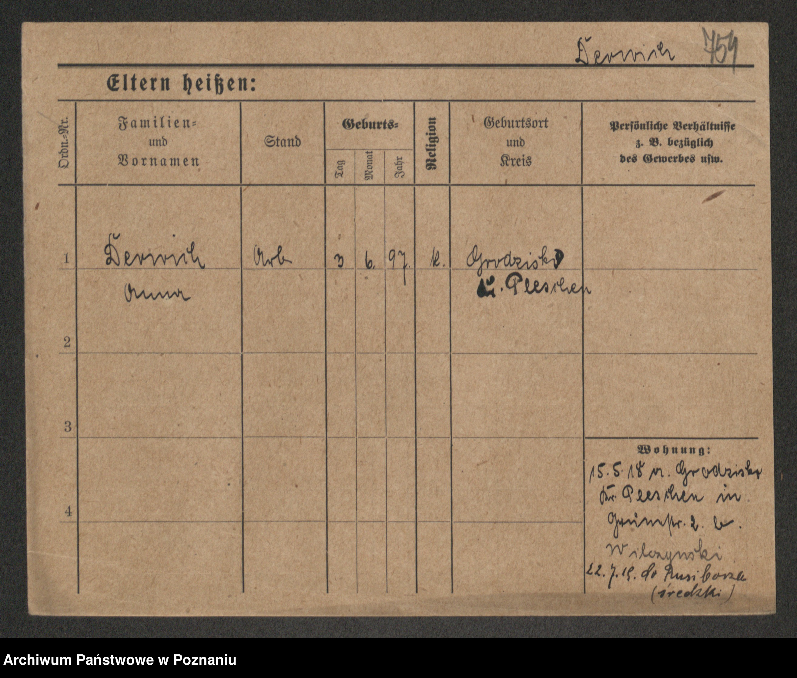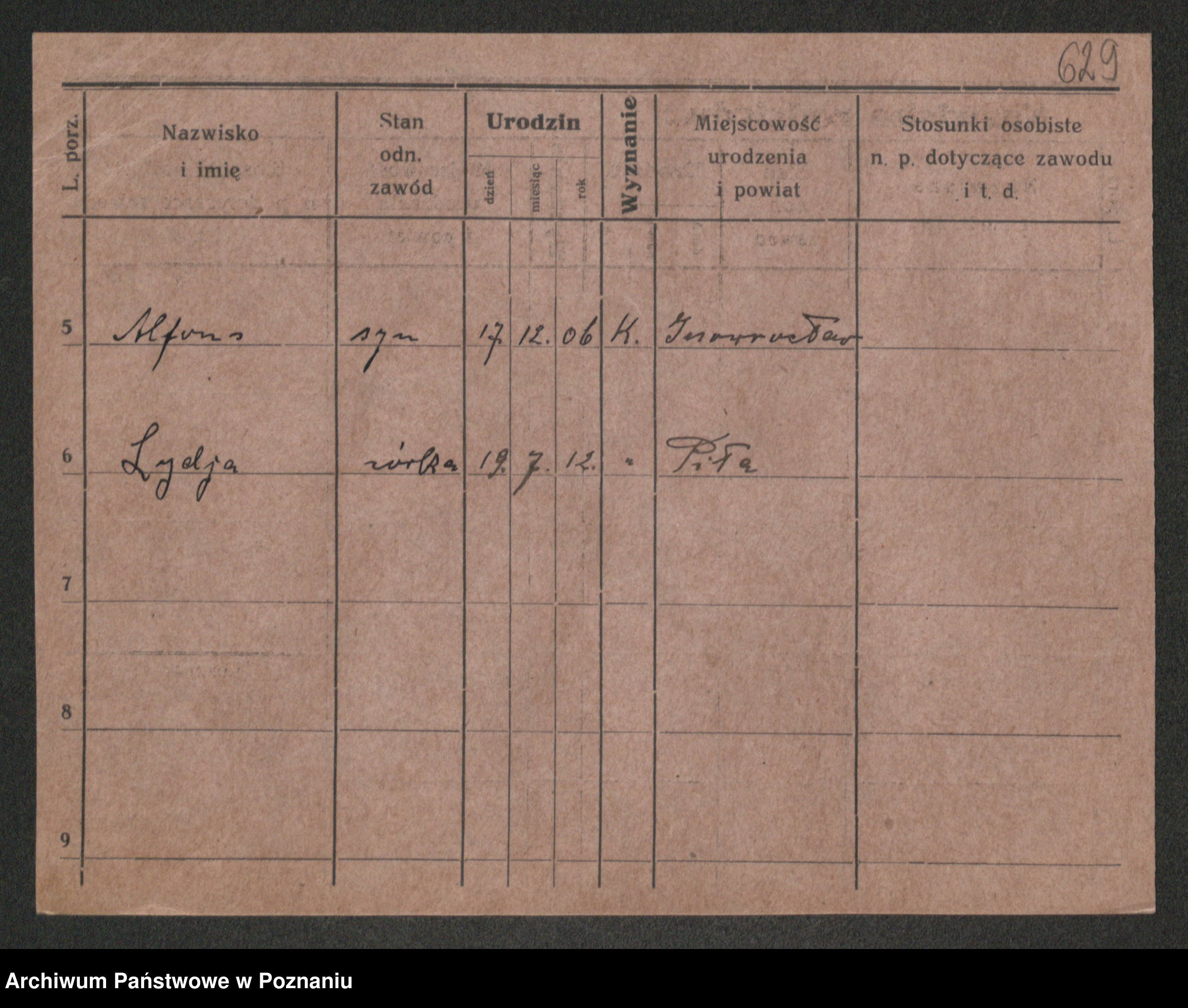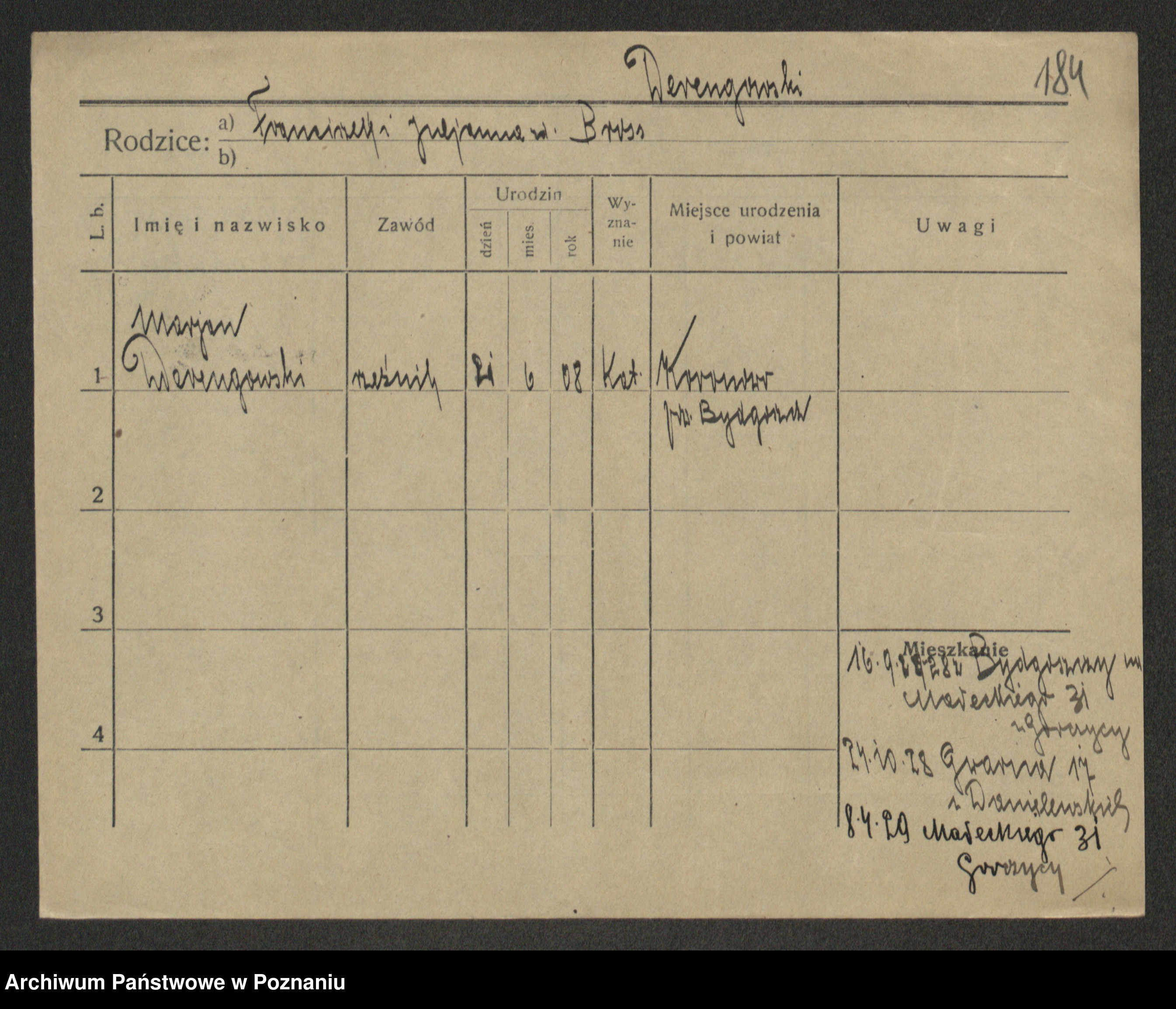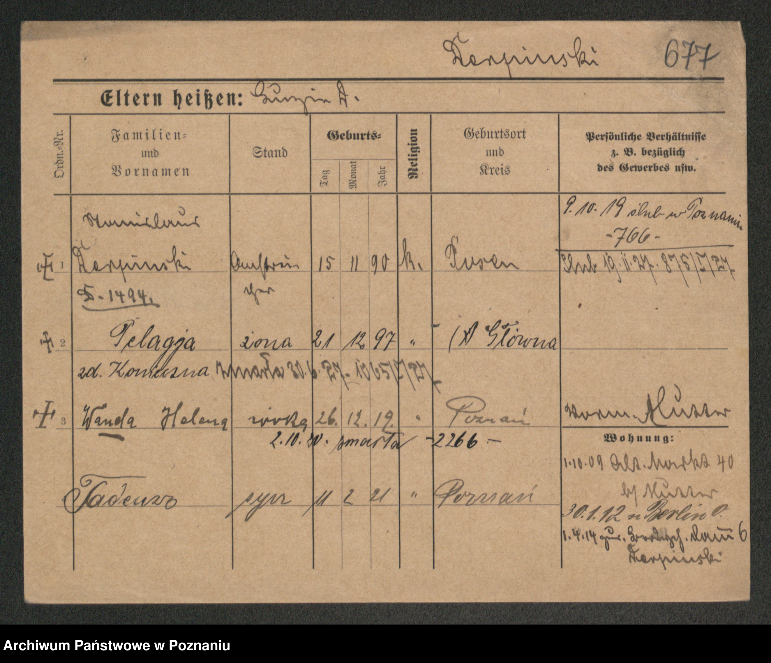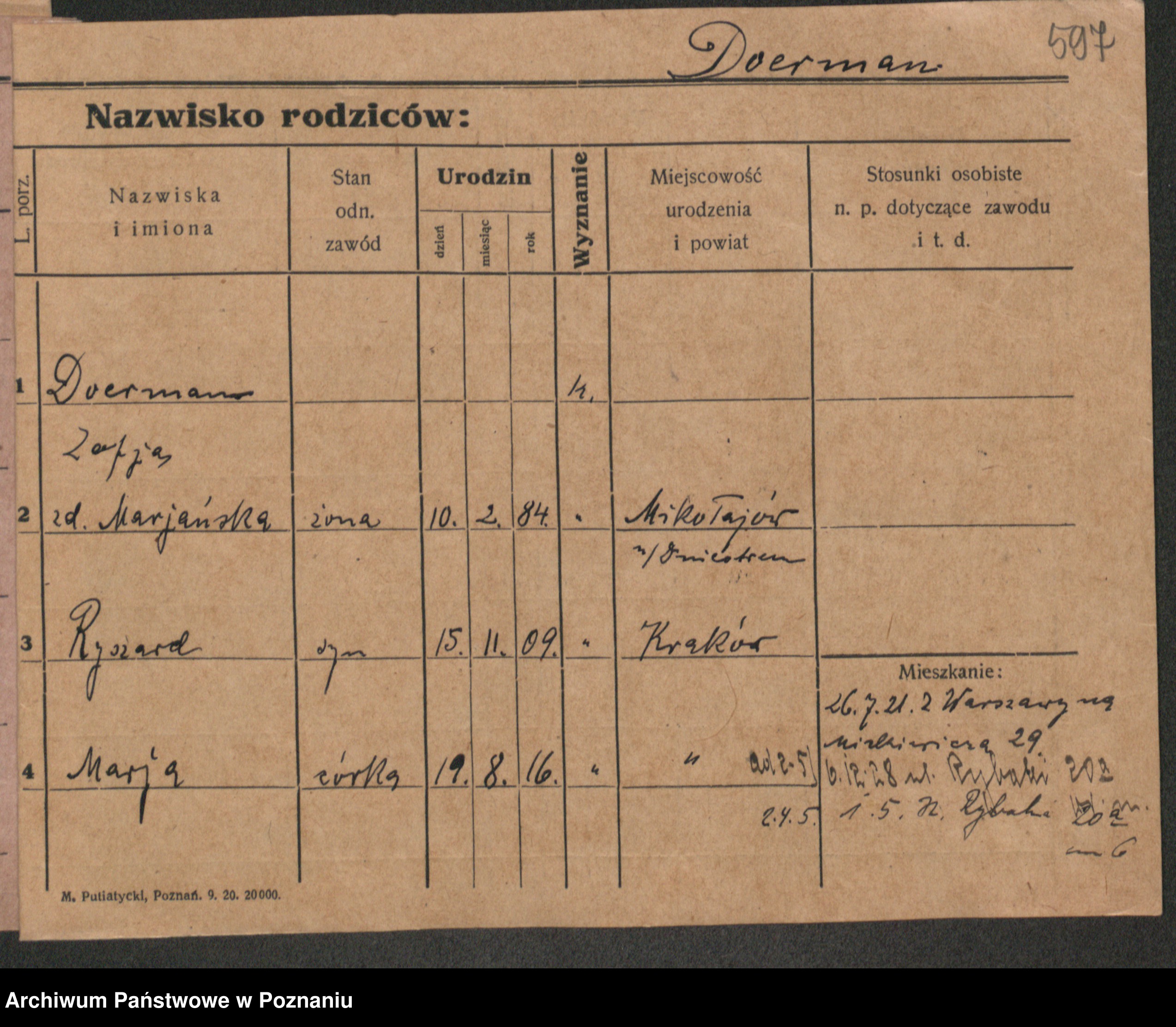 Podgląd karty osobowej dostępny jest po kliknięciu na nazwisko lub ikonkę karty. Można dokonywać powiększenia (ikony na górze) lub przechodzić między kolejnymi skanami (strzałki po bokach).