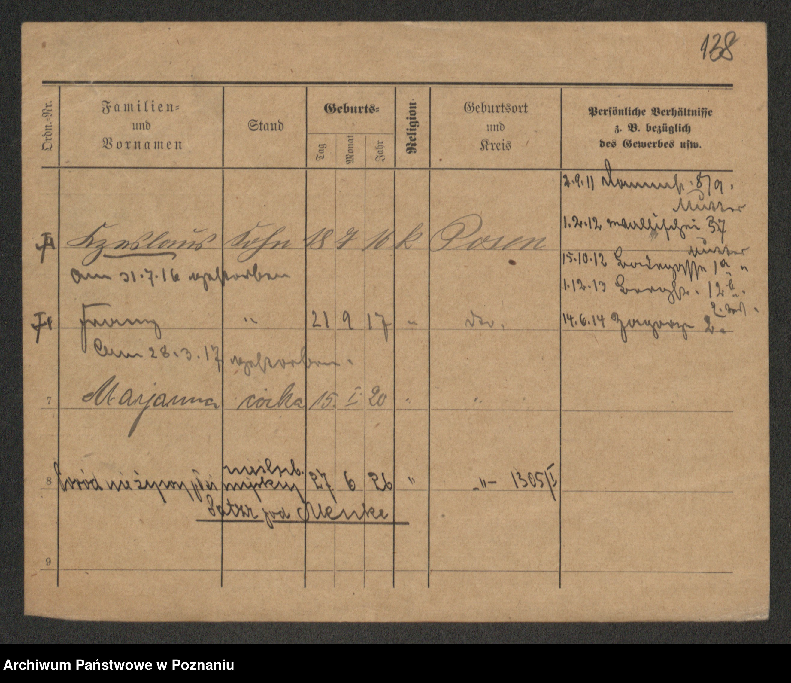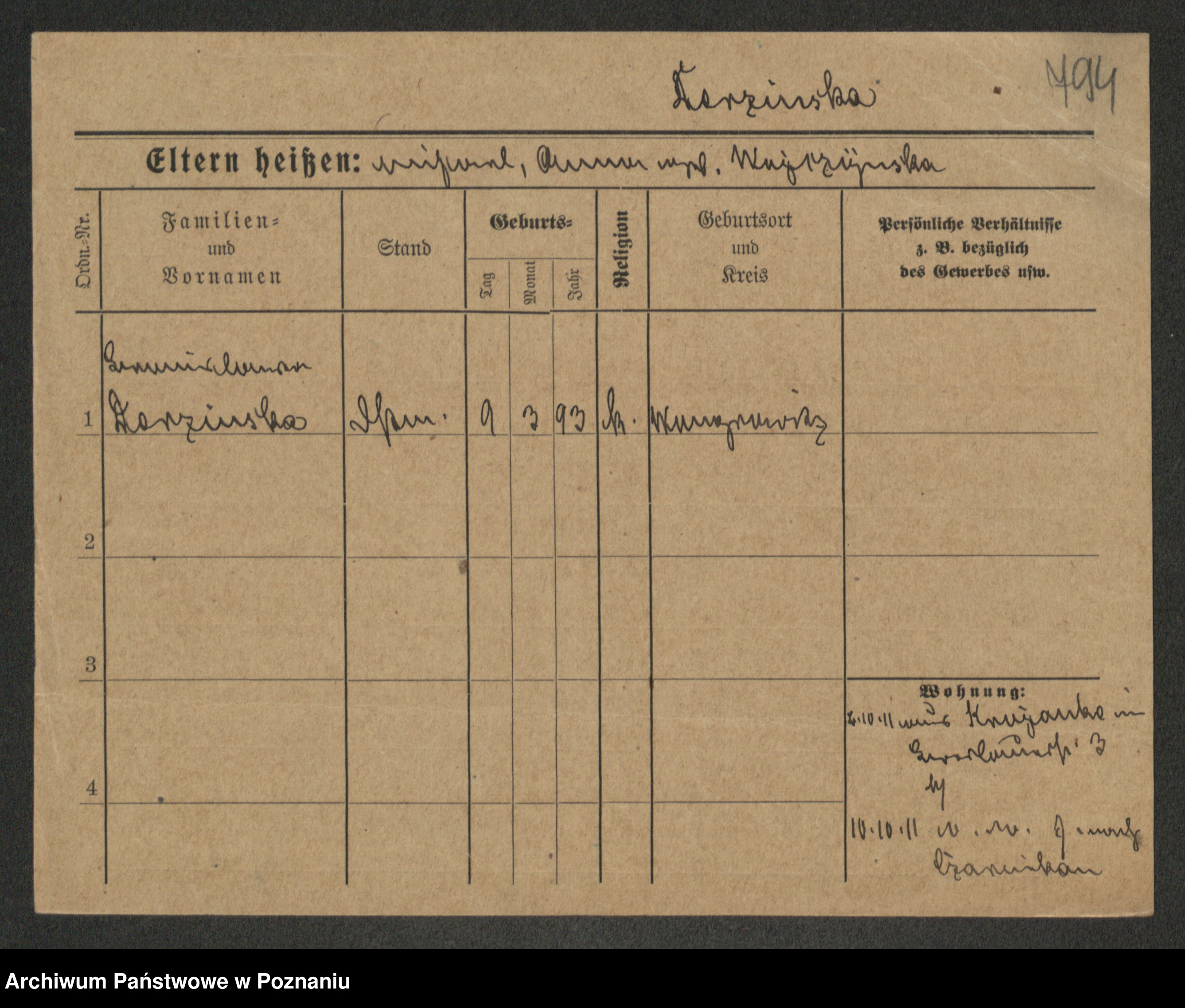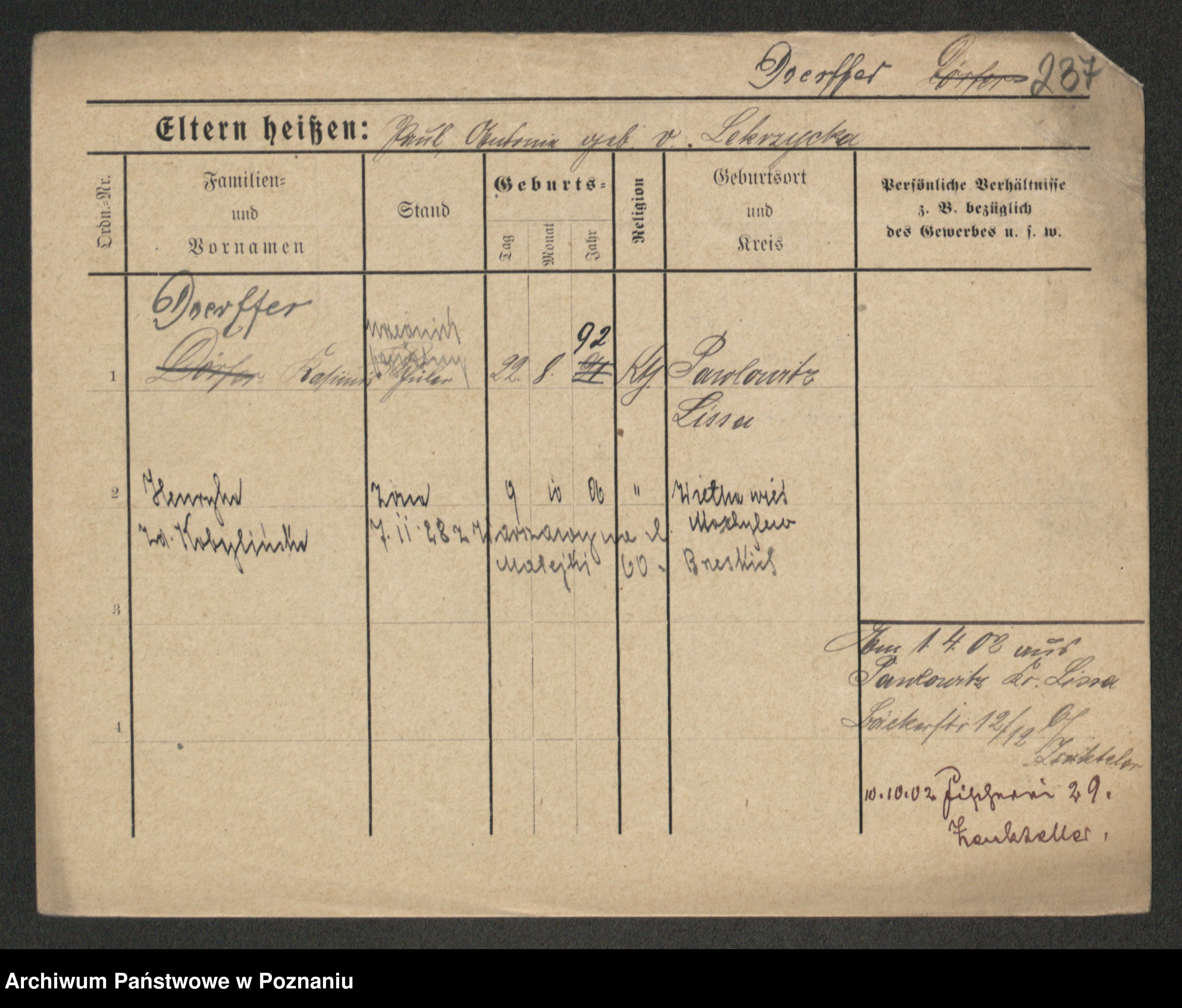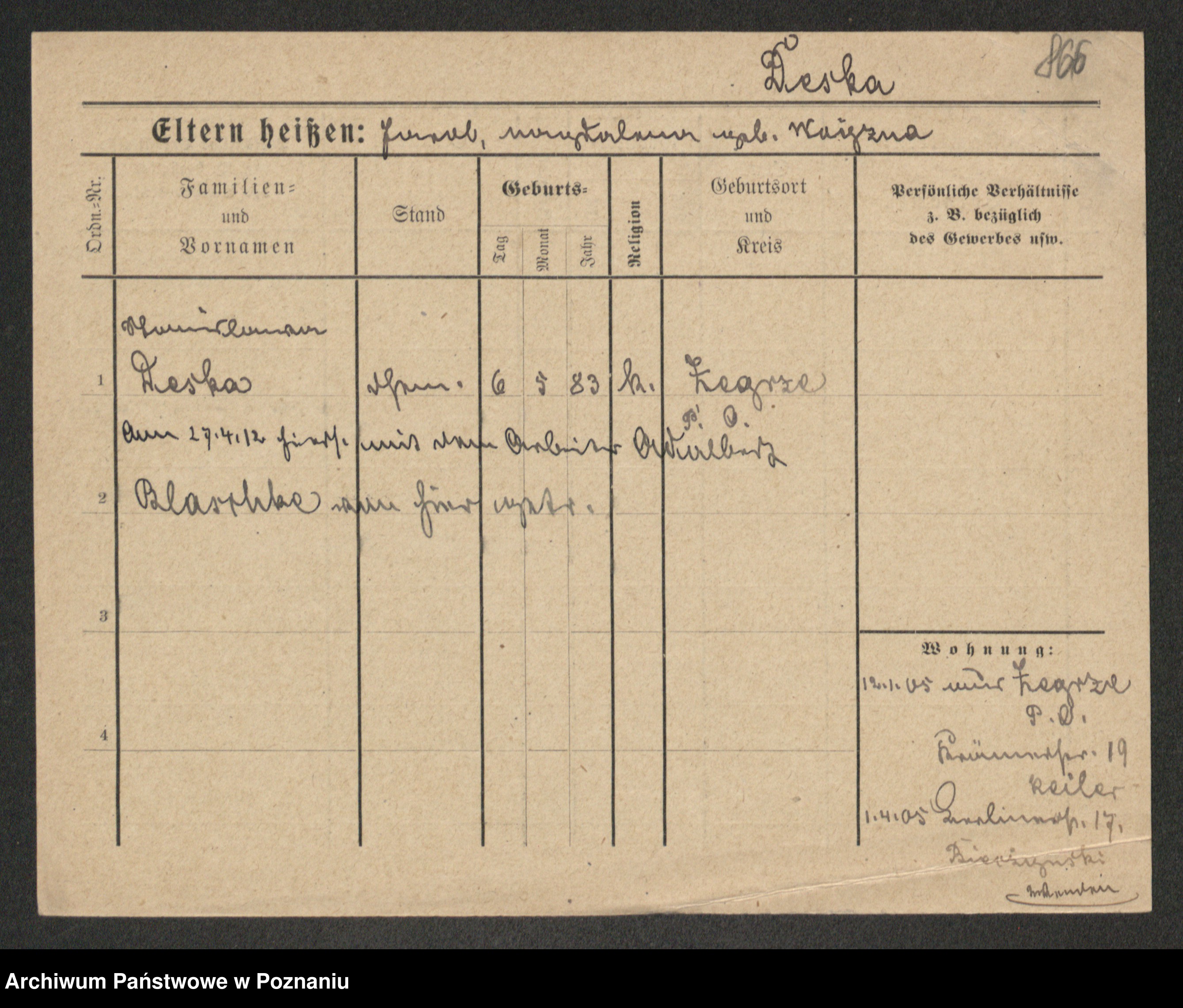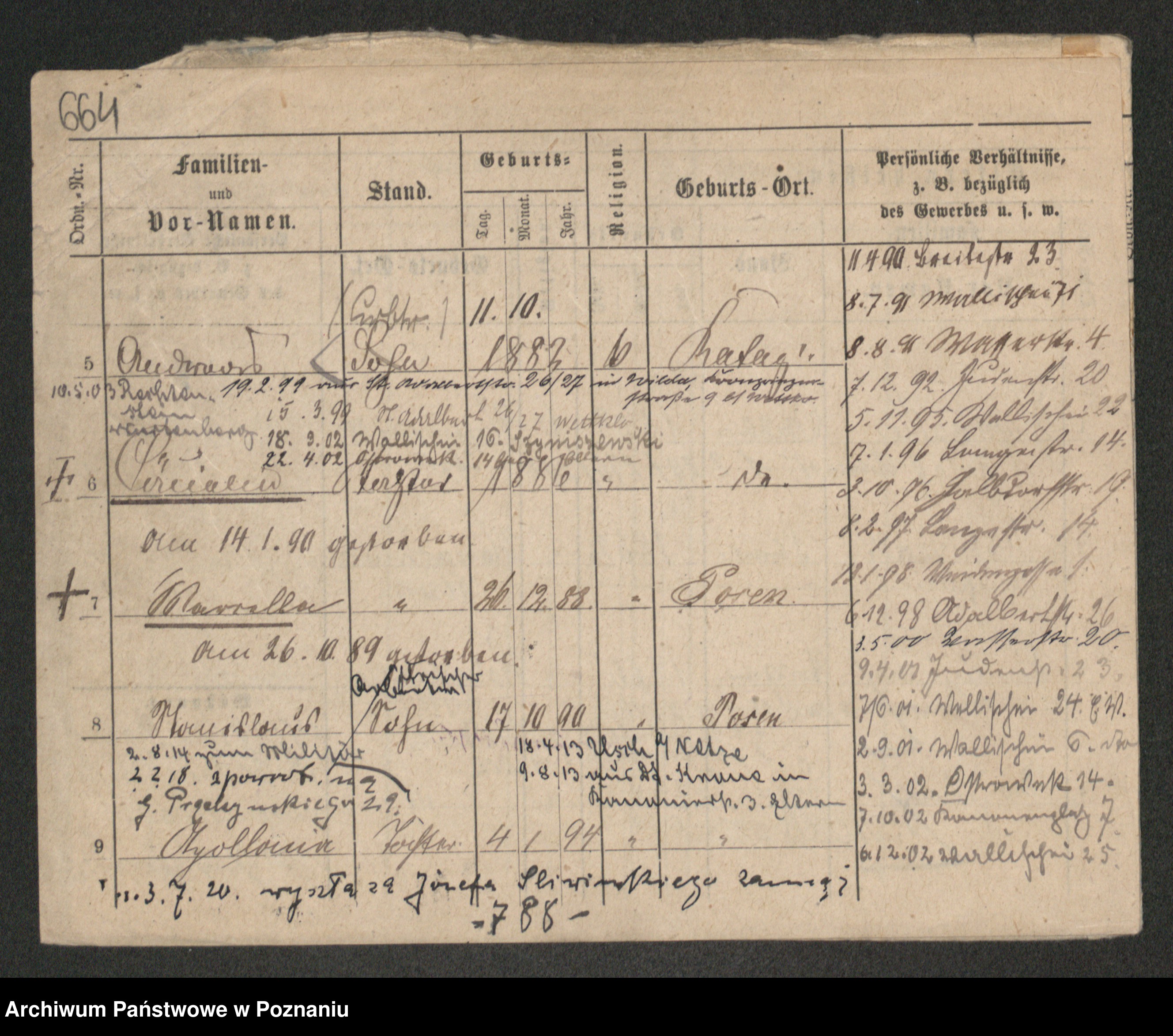 Podgląd karty osobowej dostępny jest po kliknięciu na nazwisko lub ikonkę karty. Można dokonywać powiększenia (ikony na górze) lub przechodzić między kolejnymi skanami (strzałki po bokach).