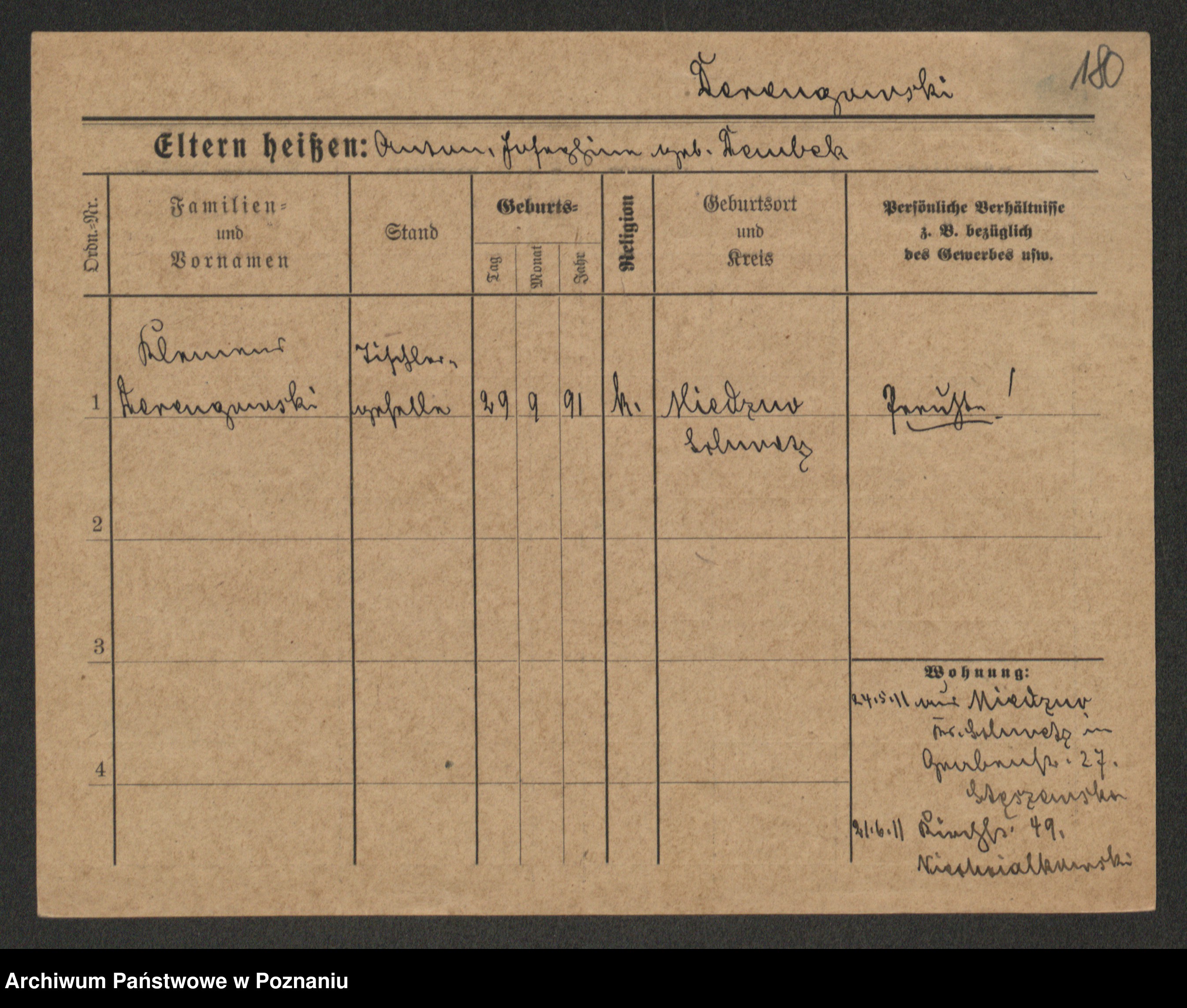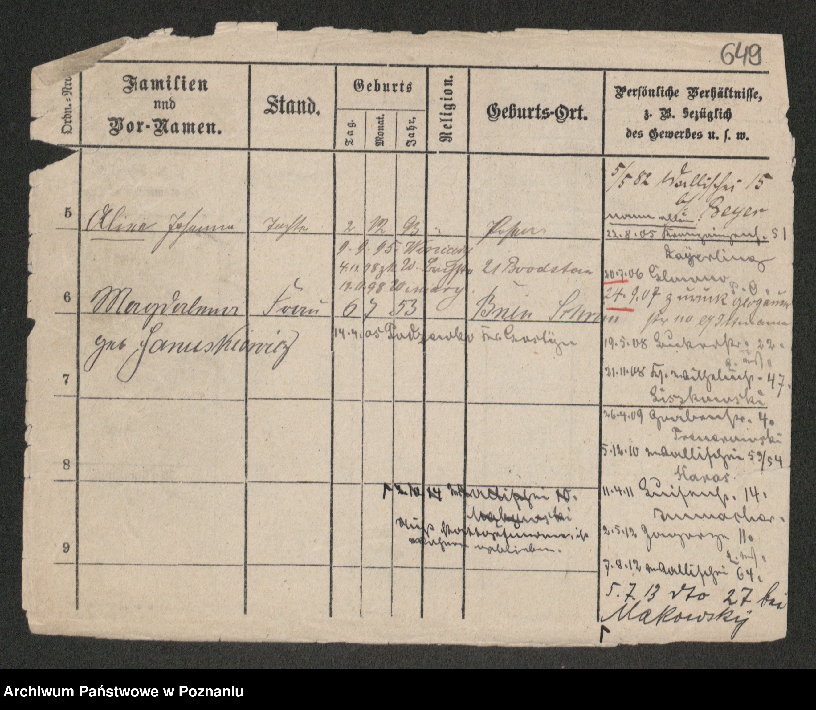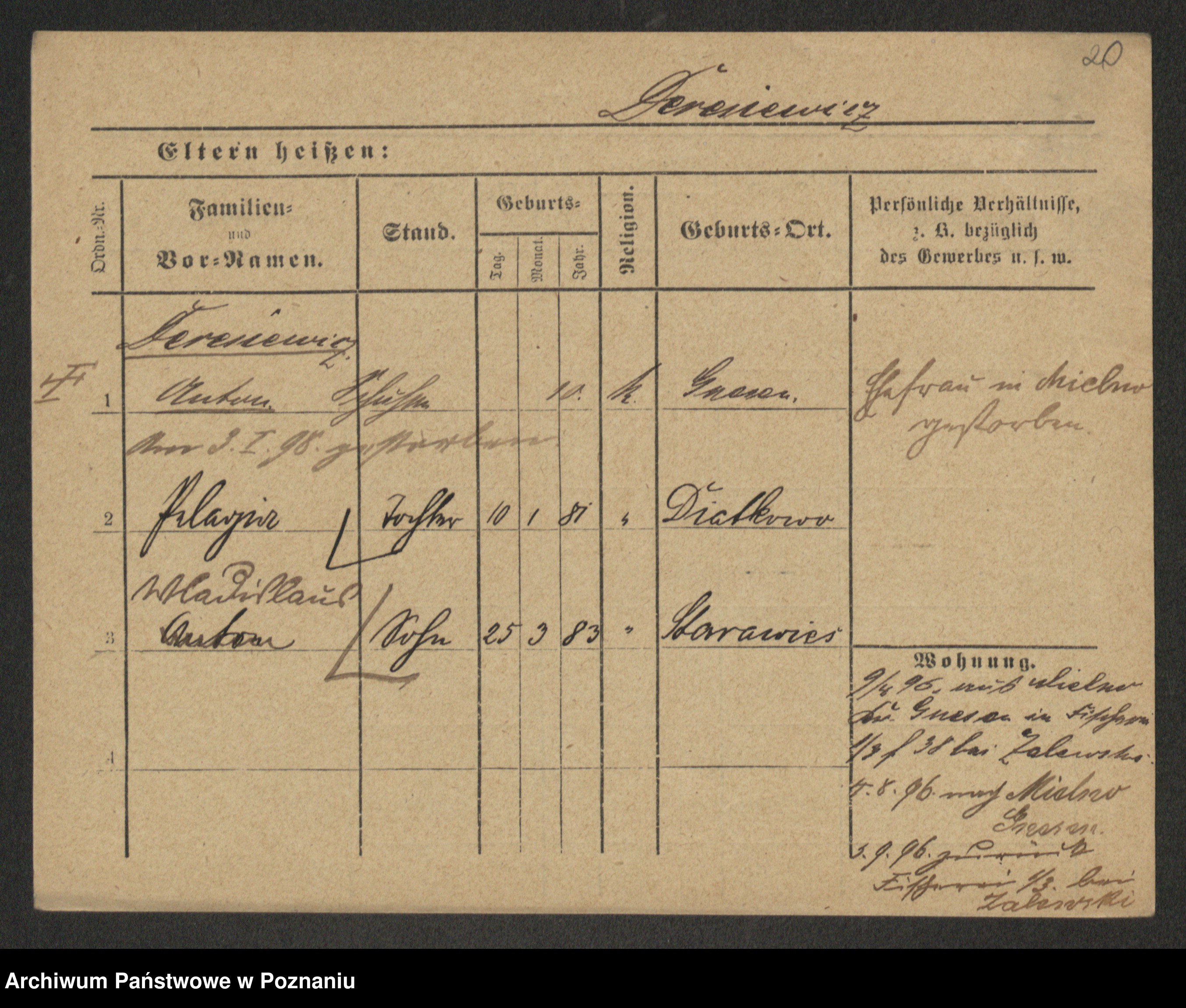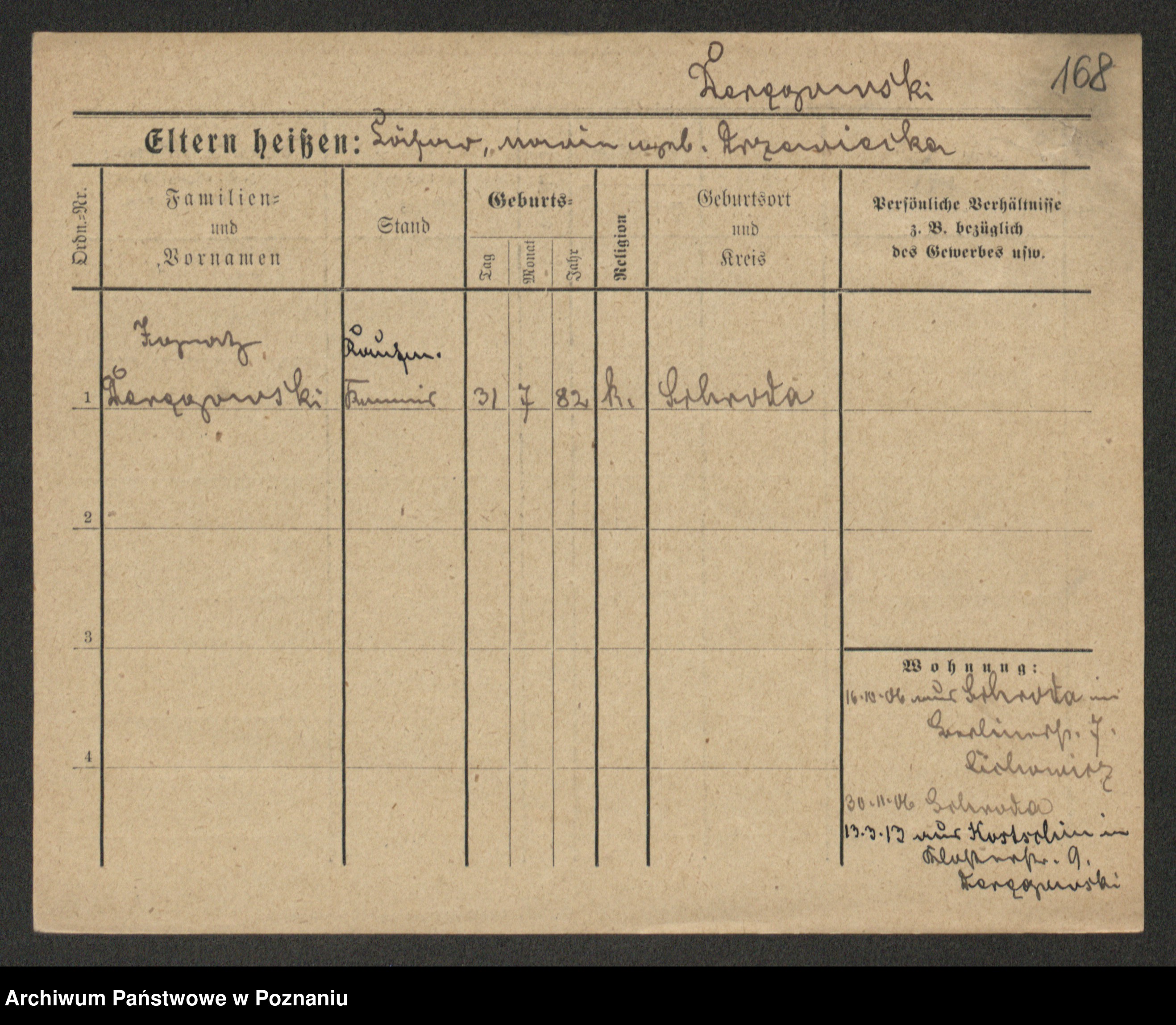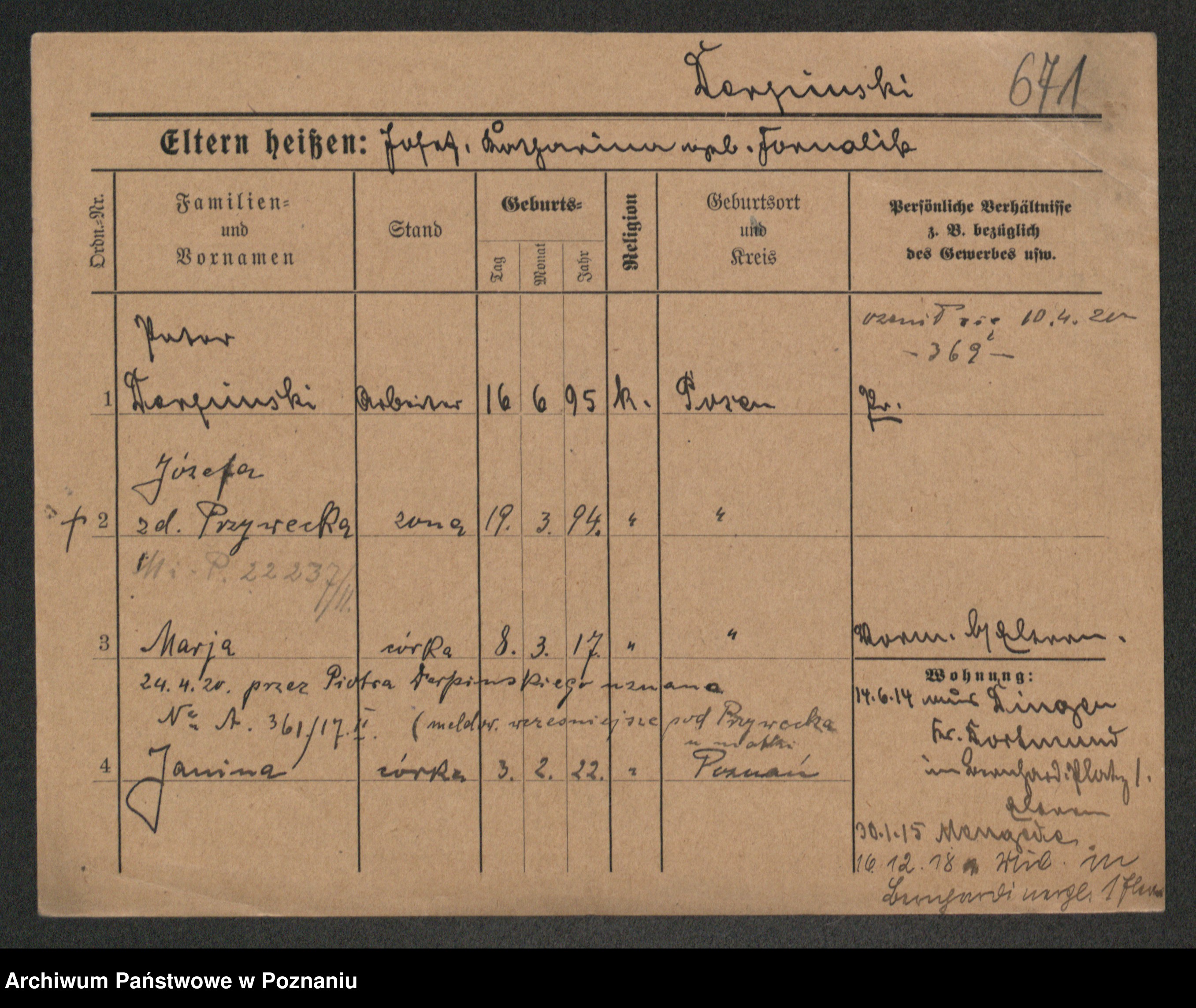 Podgląd karty osobowej dostępny jest po kliknięciu na nazwisko lub ikonkę karty. Można dokonywać powiększenia (ikony na górze) lub przechodzić między kolejnymi skanami (strzałki po bokach).