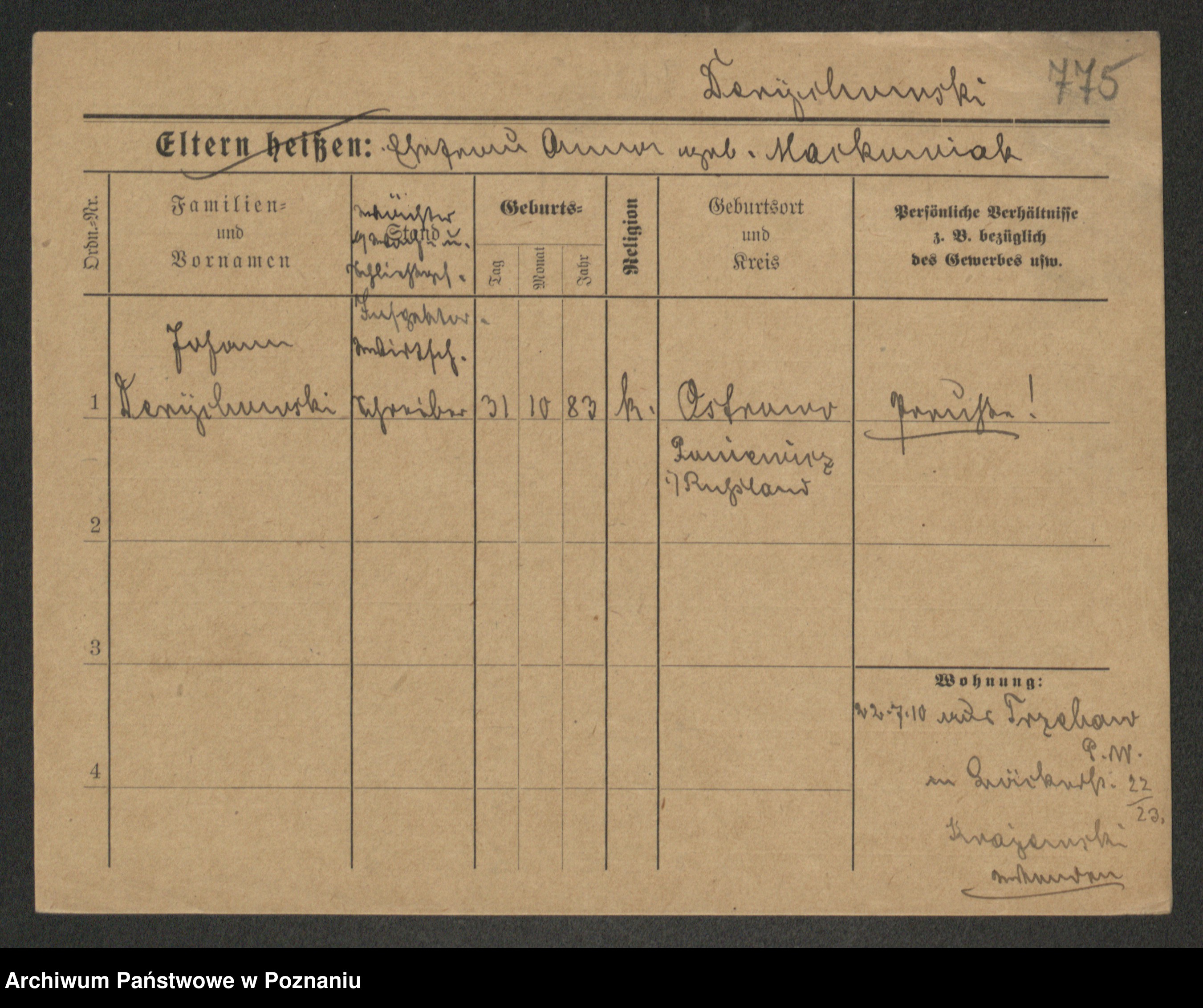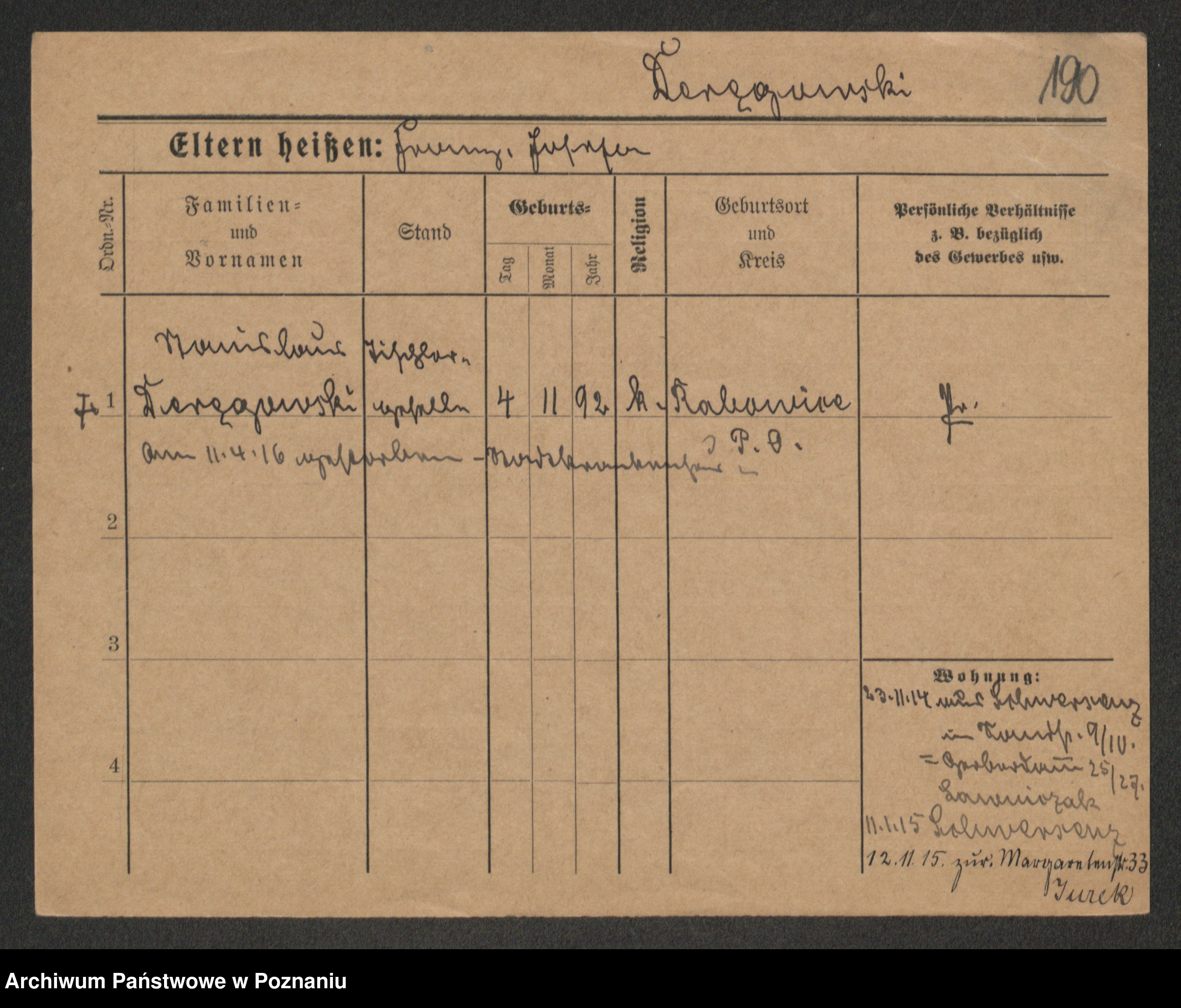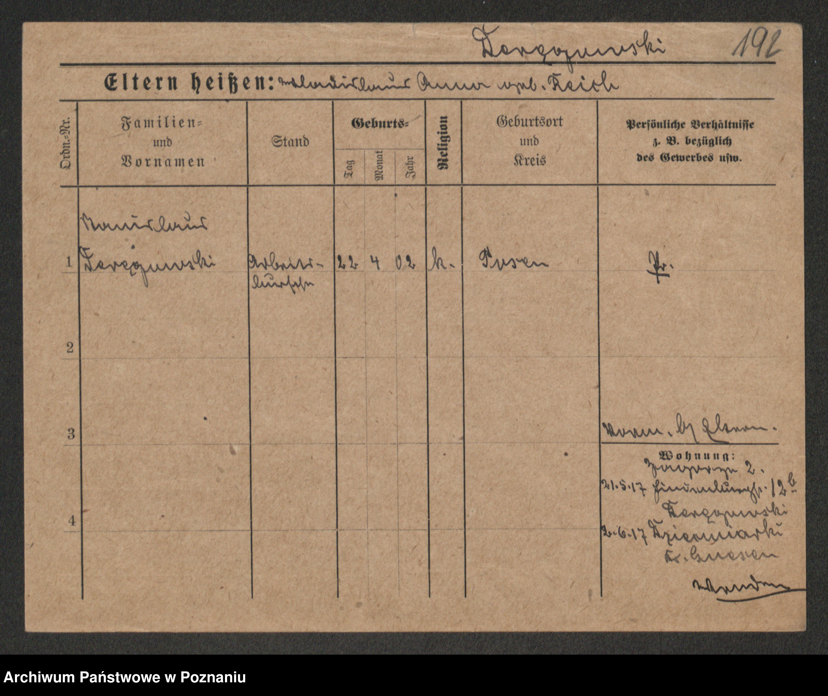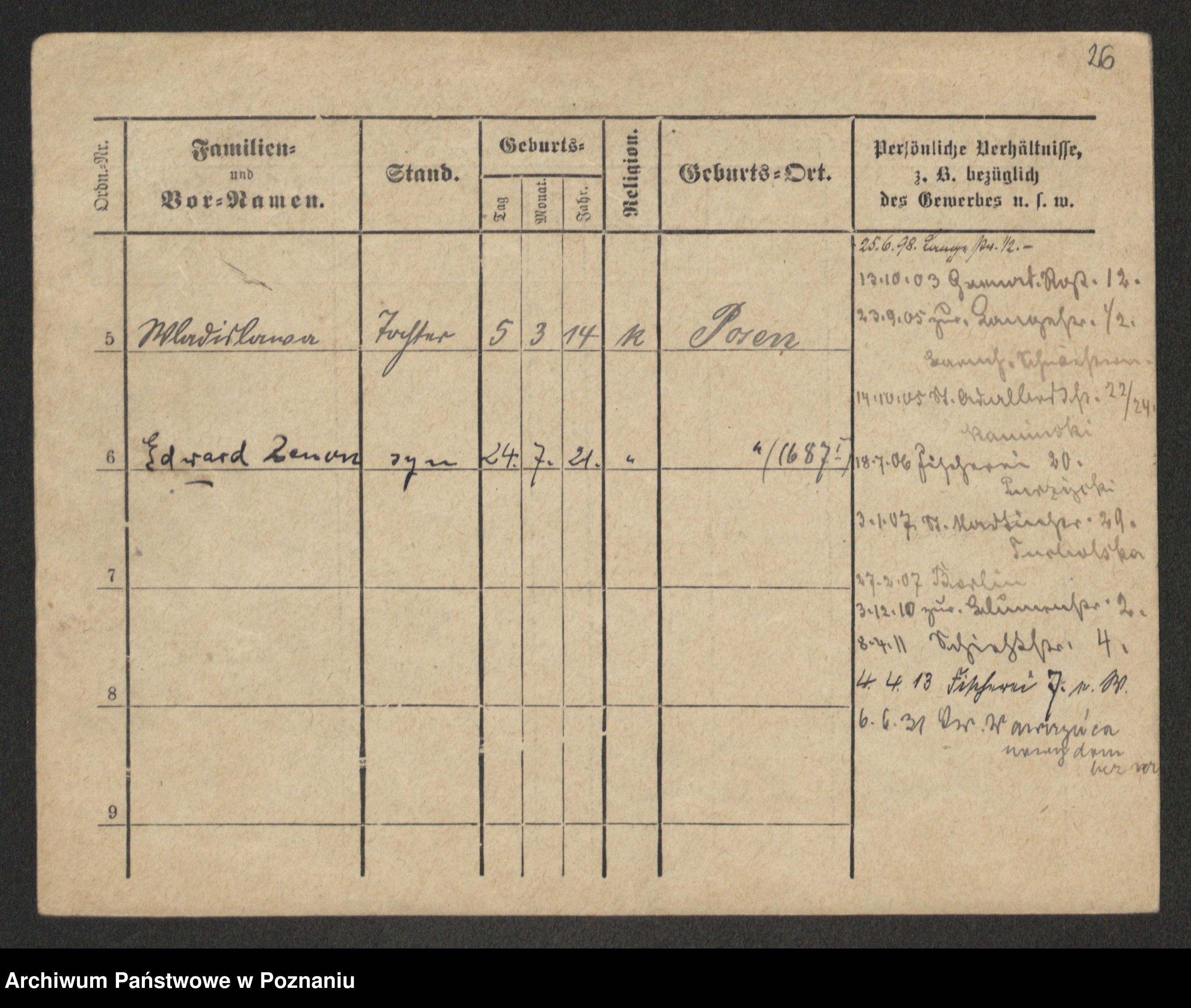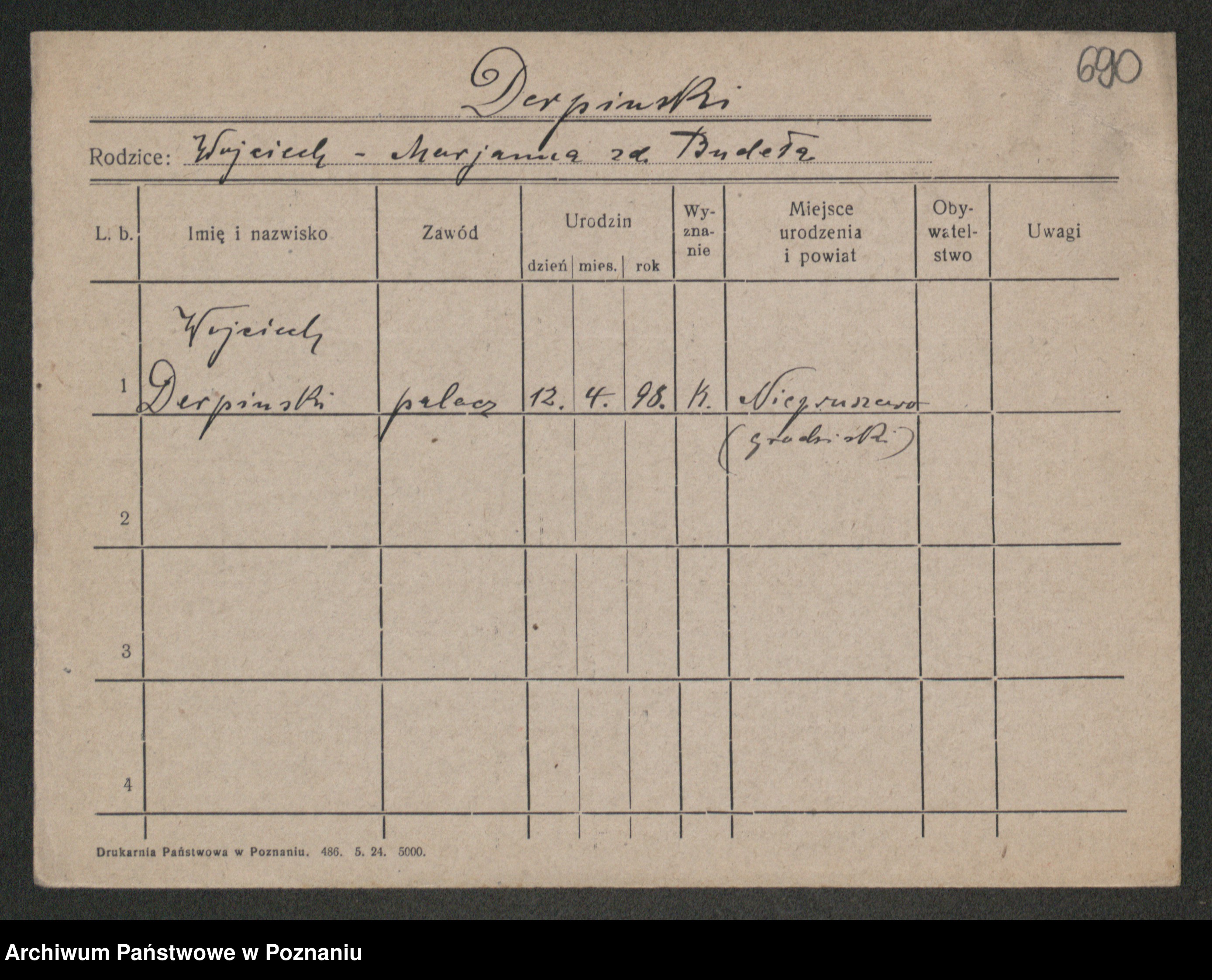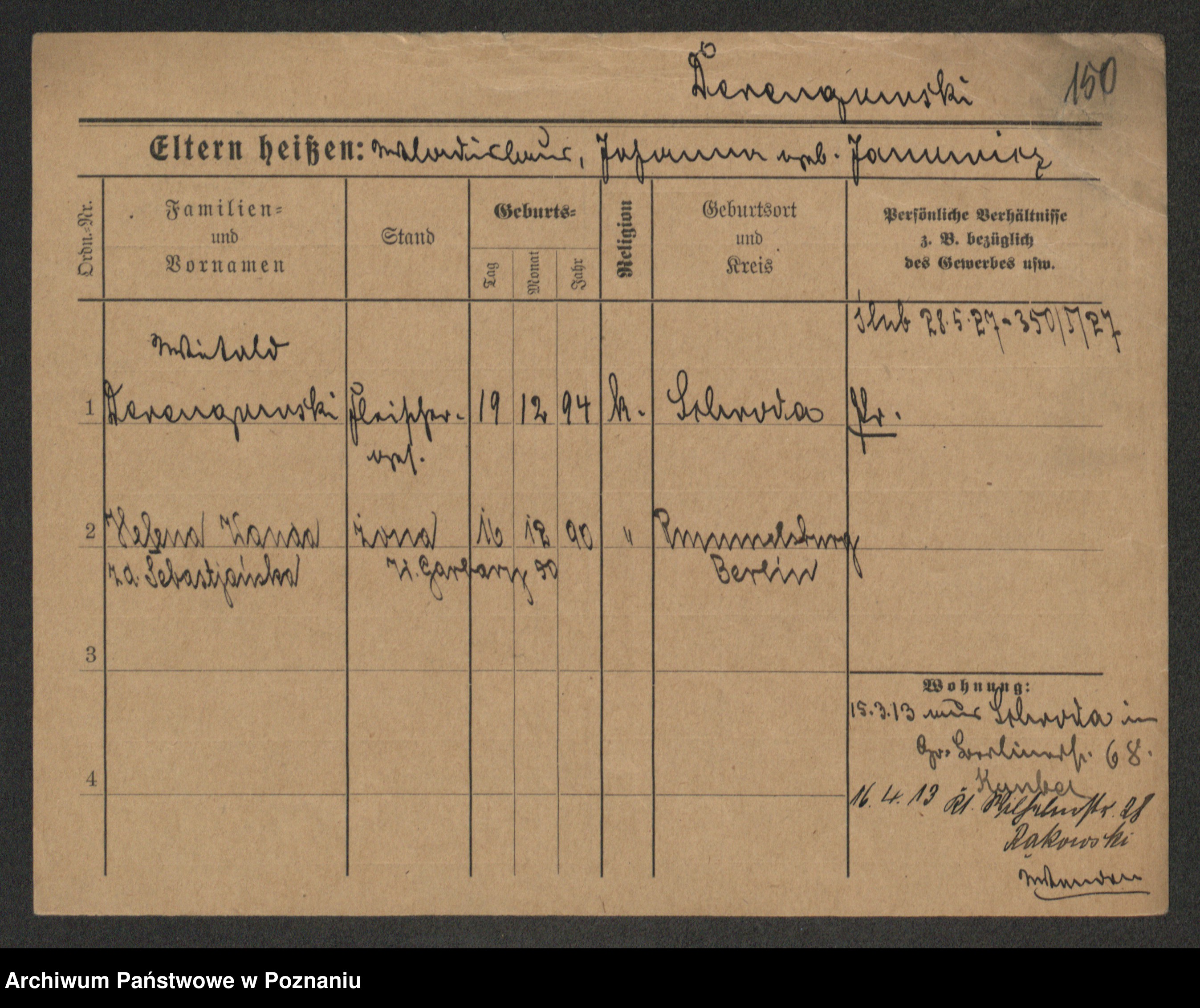 Podgląd karty osobowej dostępny jest po kliknięciu na nazwisko lub ikonkę karty. Można dokonywać powiększenia (ikony na górze) lub przechodzić między kolejnymi skanami (strzałki po bokach).