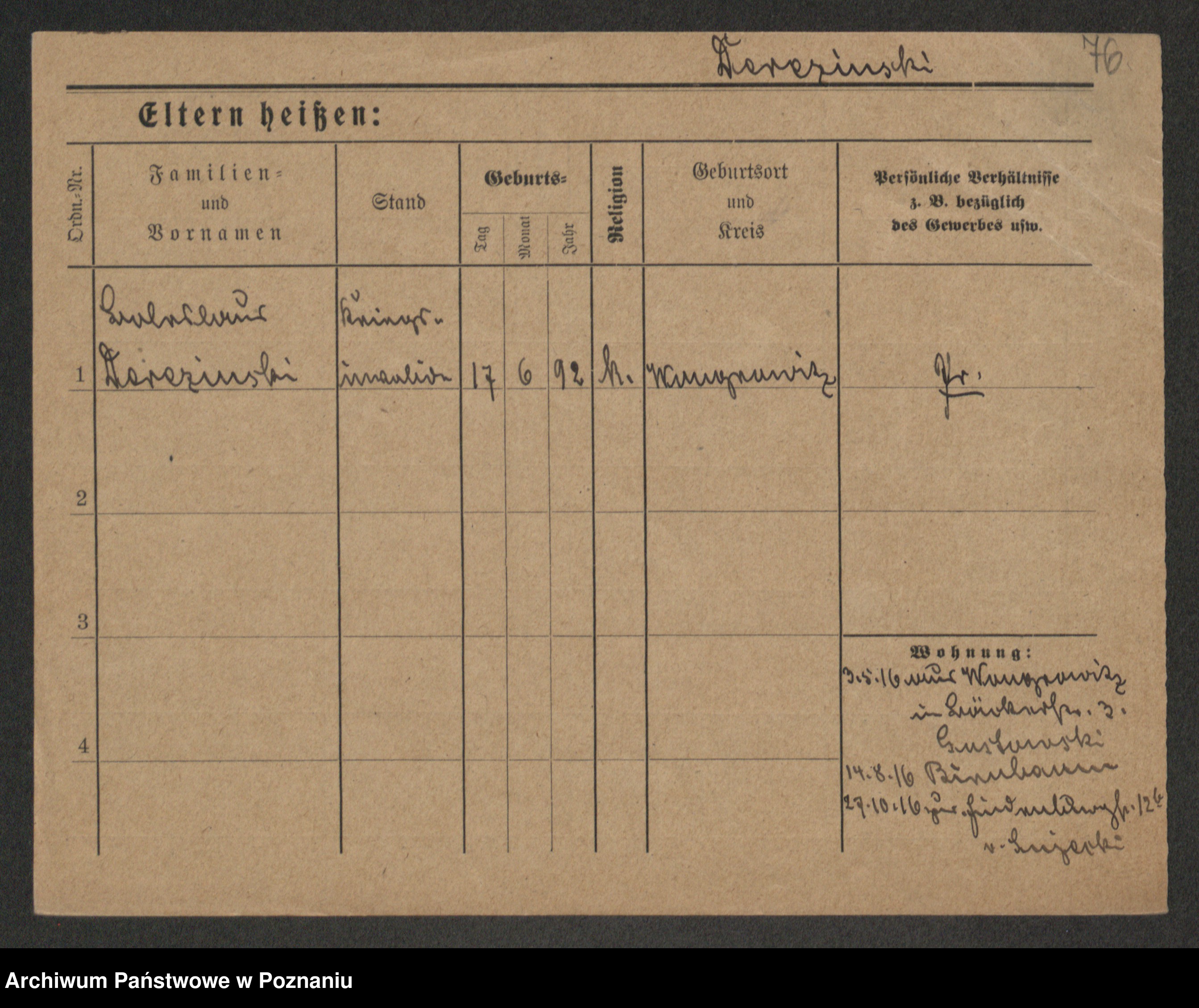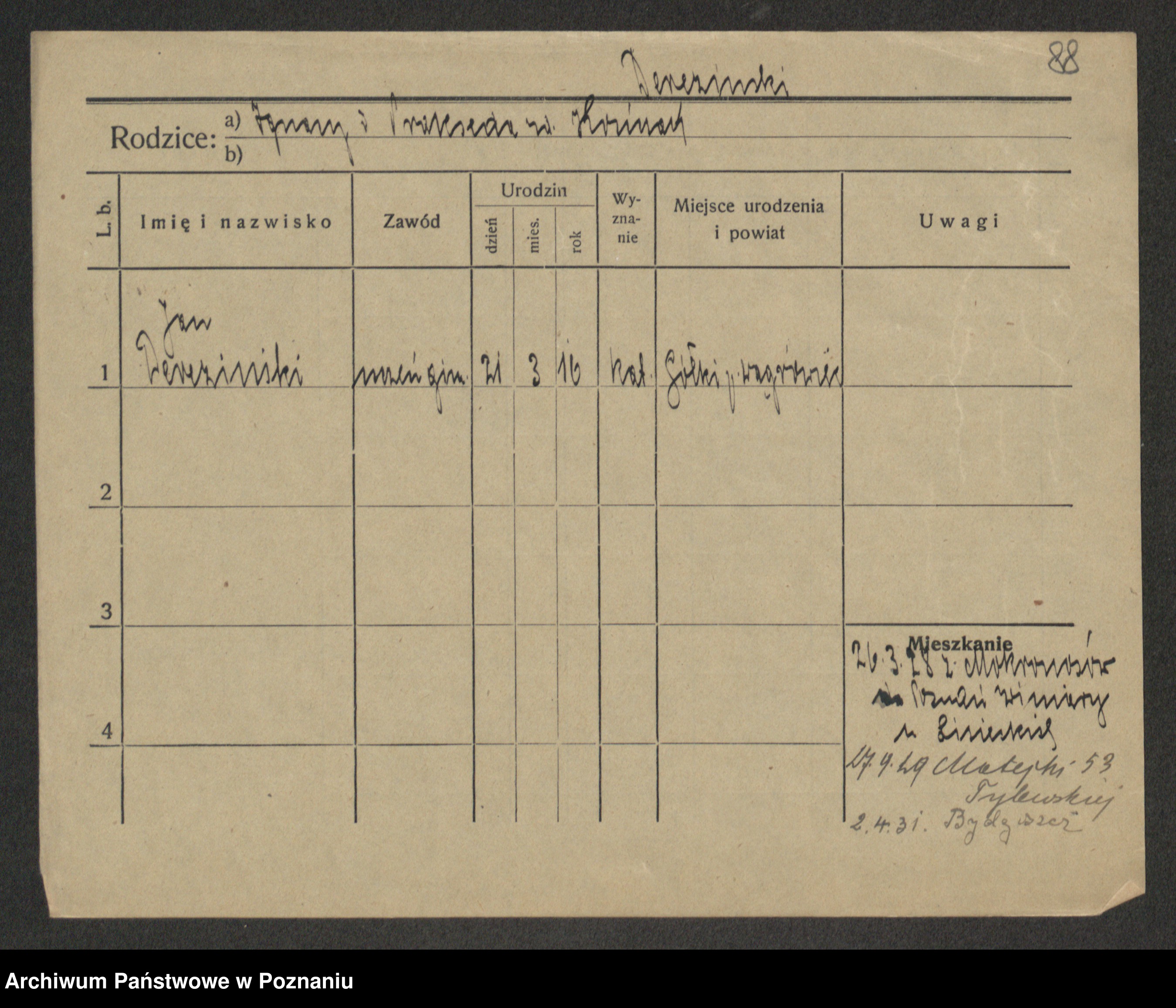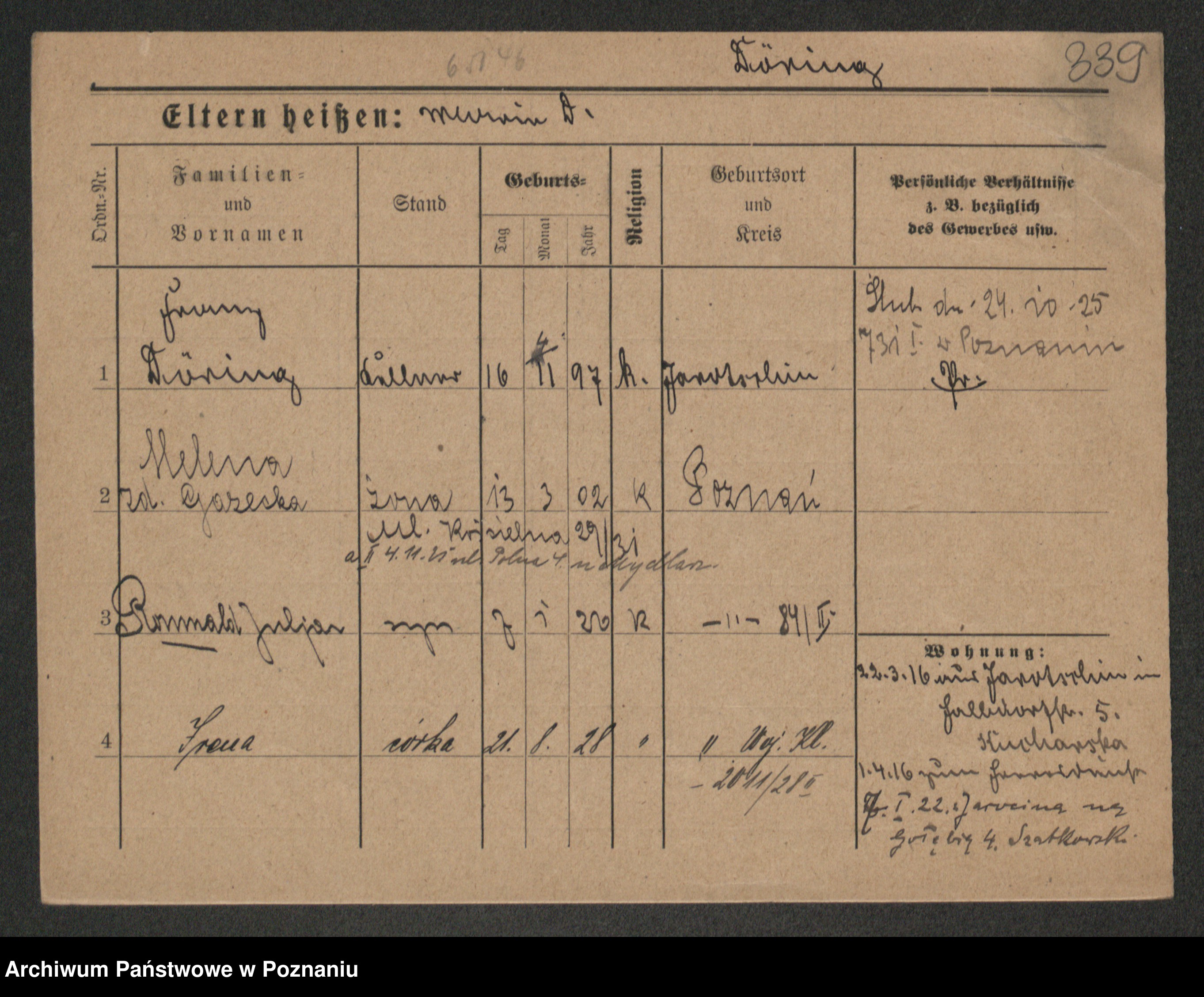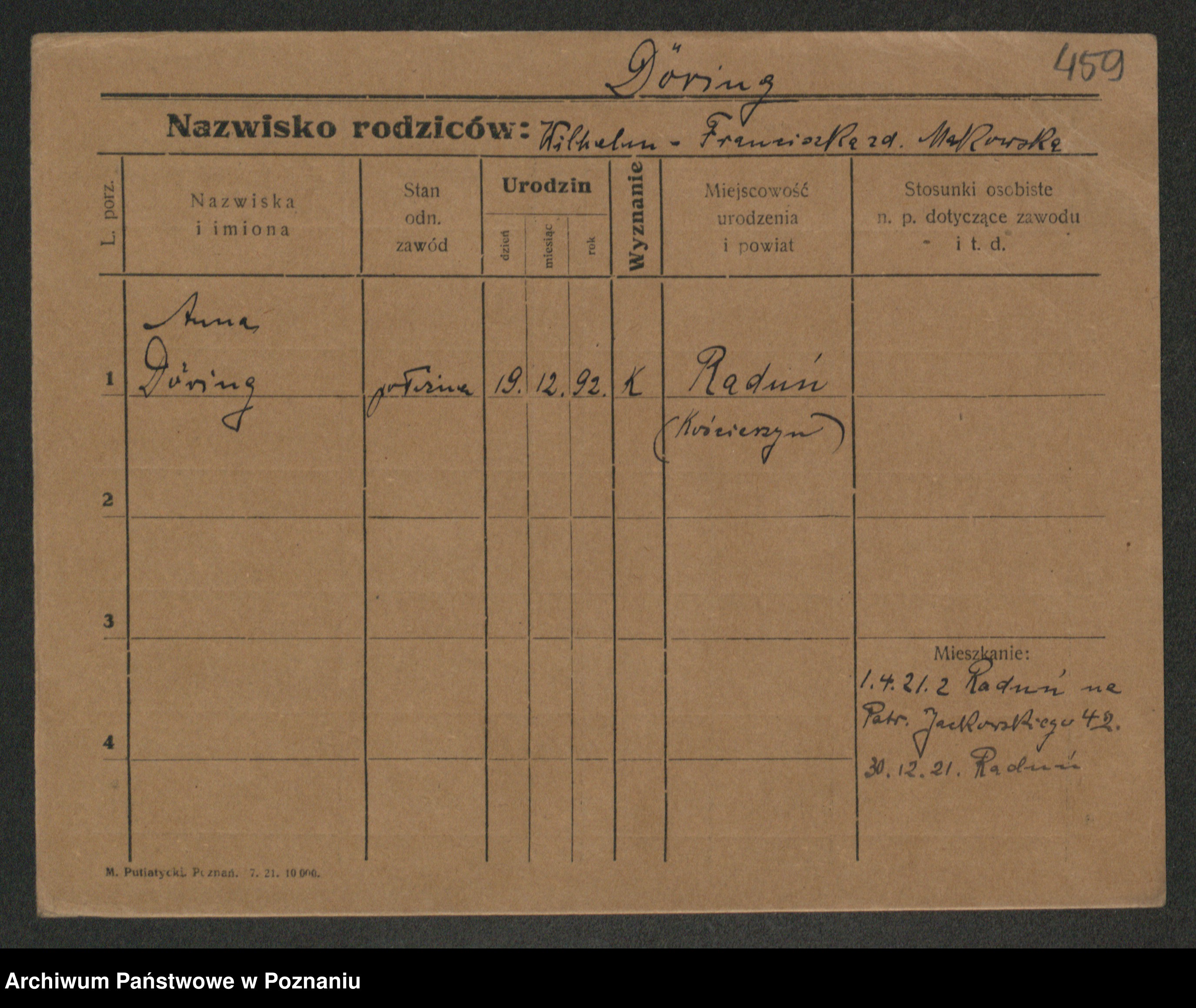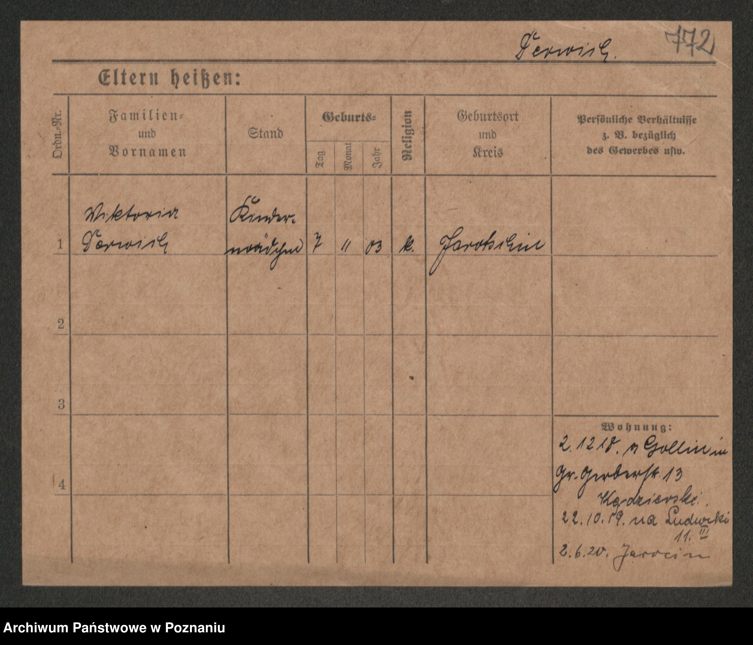 Podgląd karty osobowej dostępny jest po kliknięciu na nazwisko lub ikonkę karty. Można dokonywać powiększenia (ikony na górze) lub przechodzić między kolejnymi skanami (strzałki po bokach).