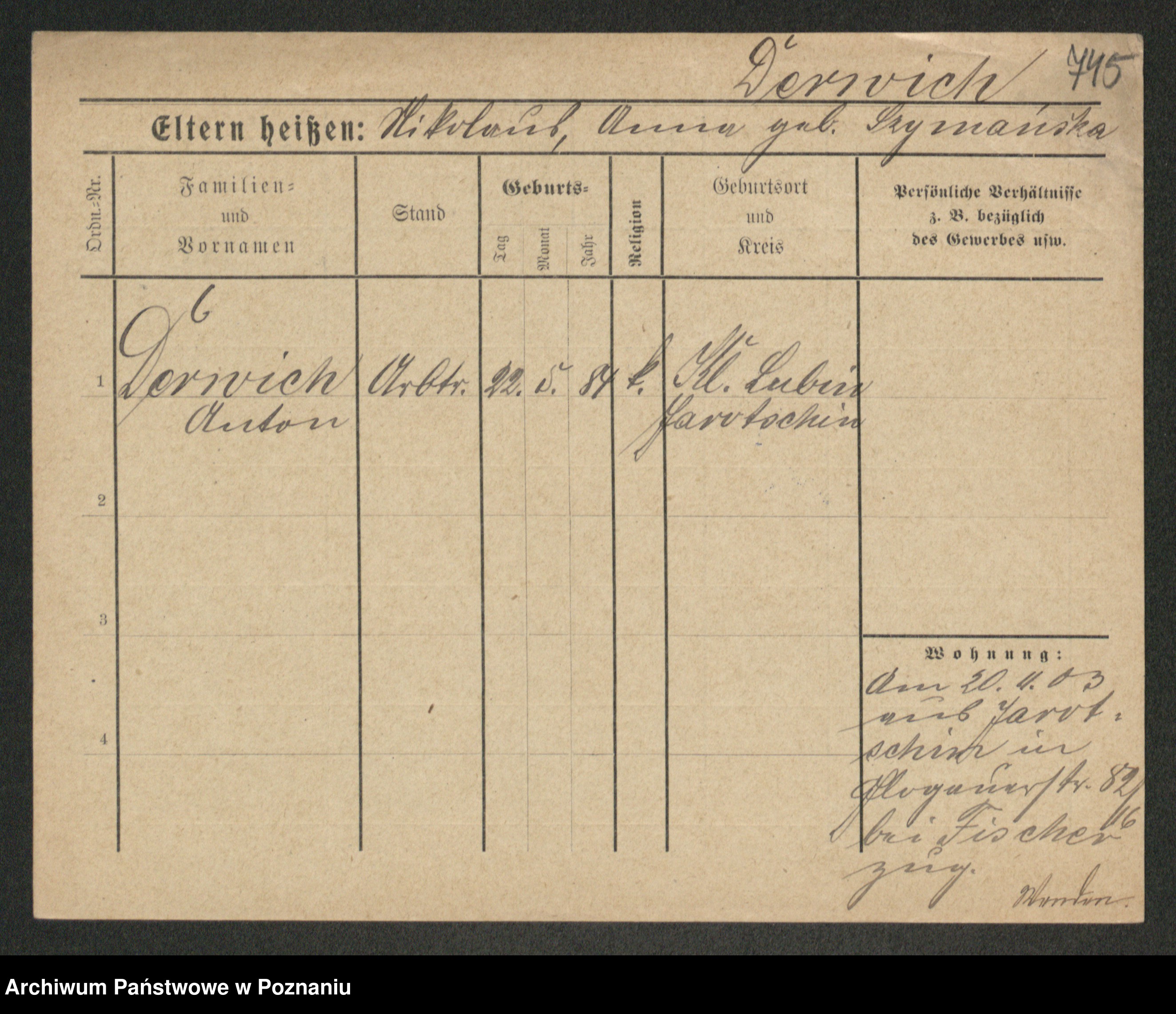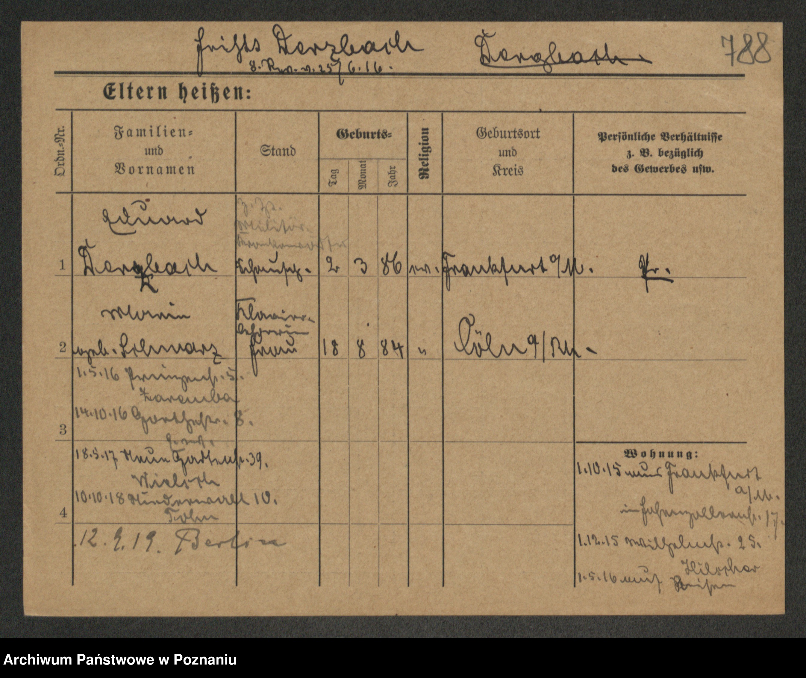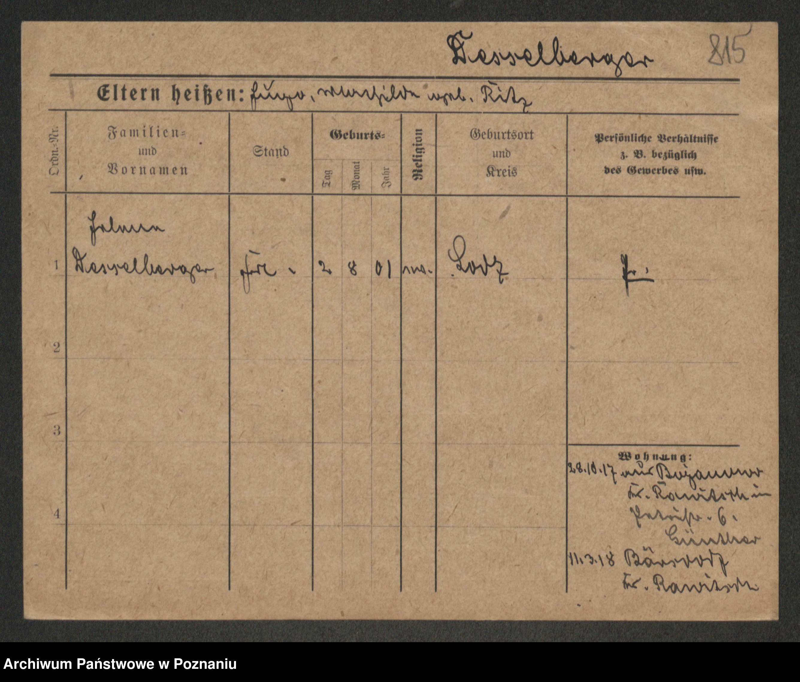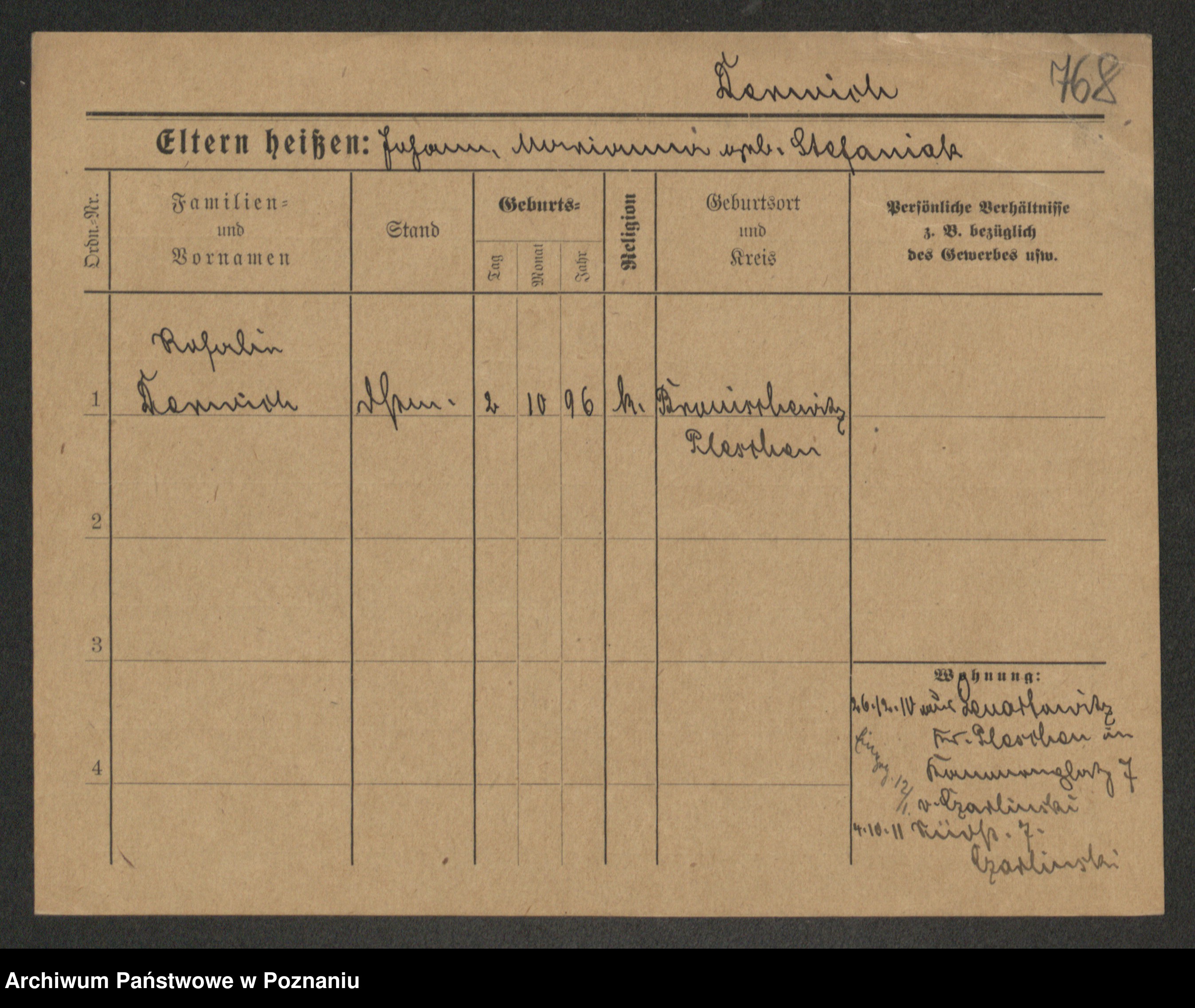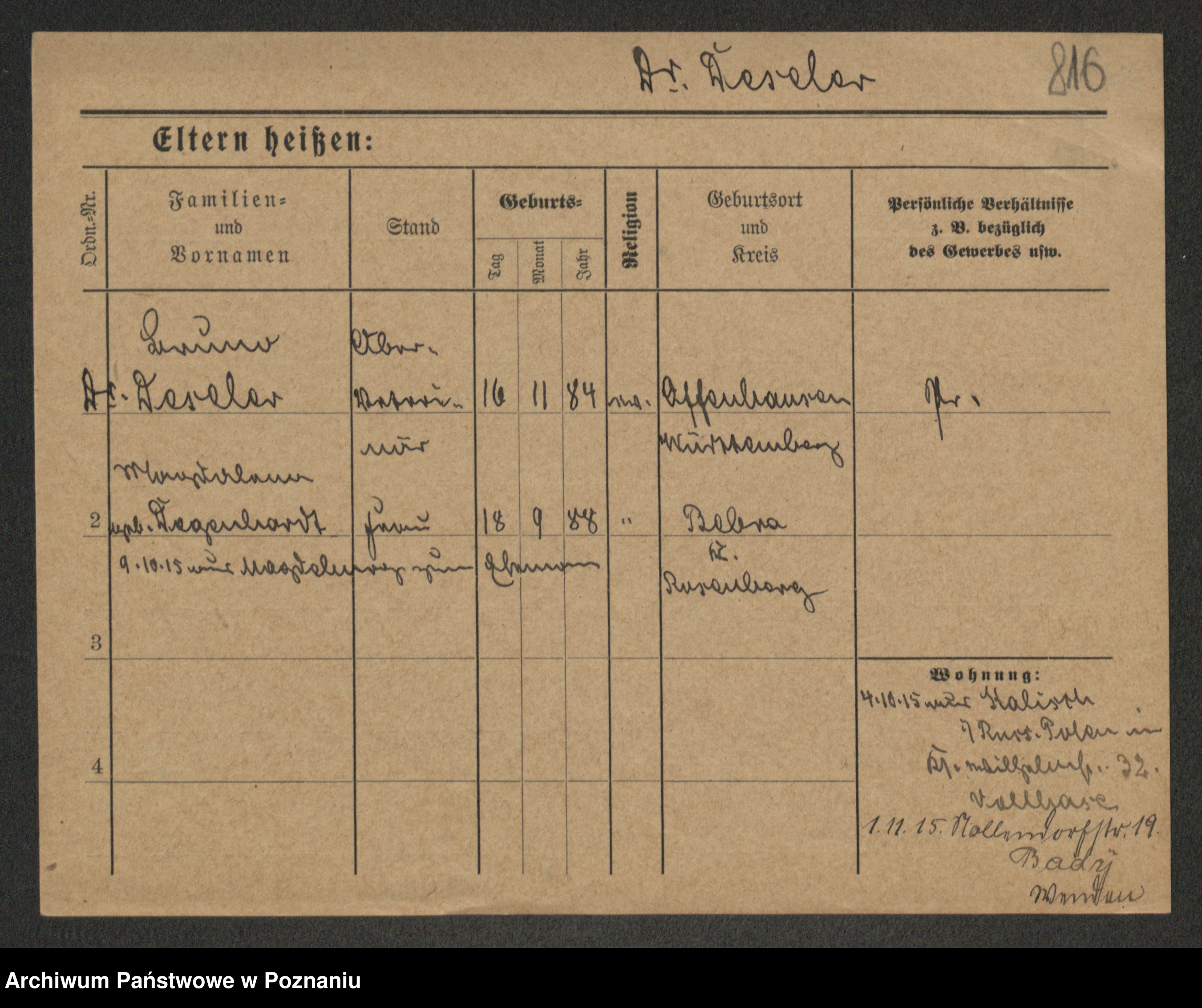 Podgląd karty osobowej dostępny jest po kliknięciu na nazwisko lub ikonkę karty. Można dokonywać powiększenia (ikony na górze) lub przechodzić między kolejnymi skanami (strzałki po bokach).