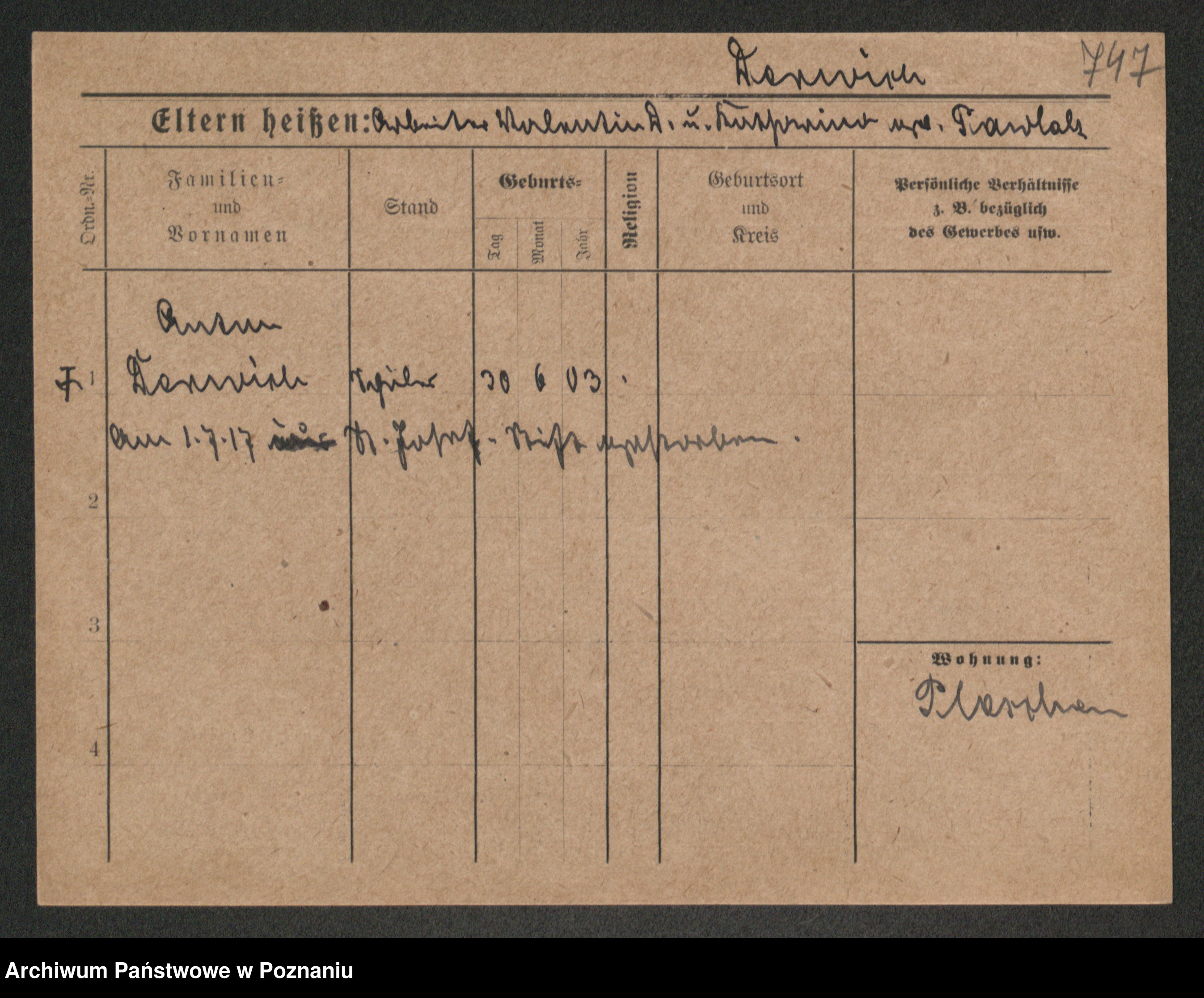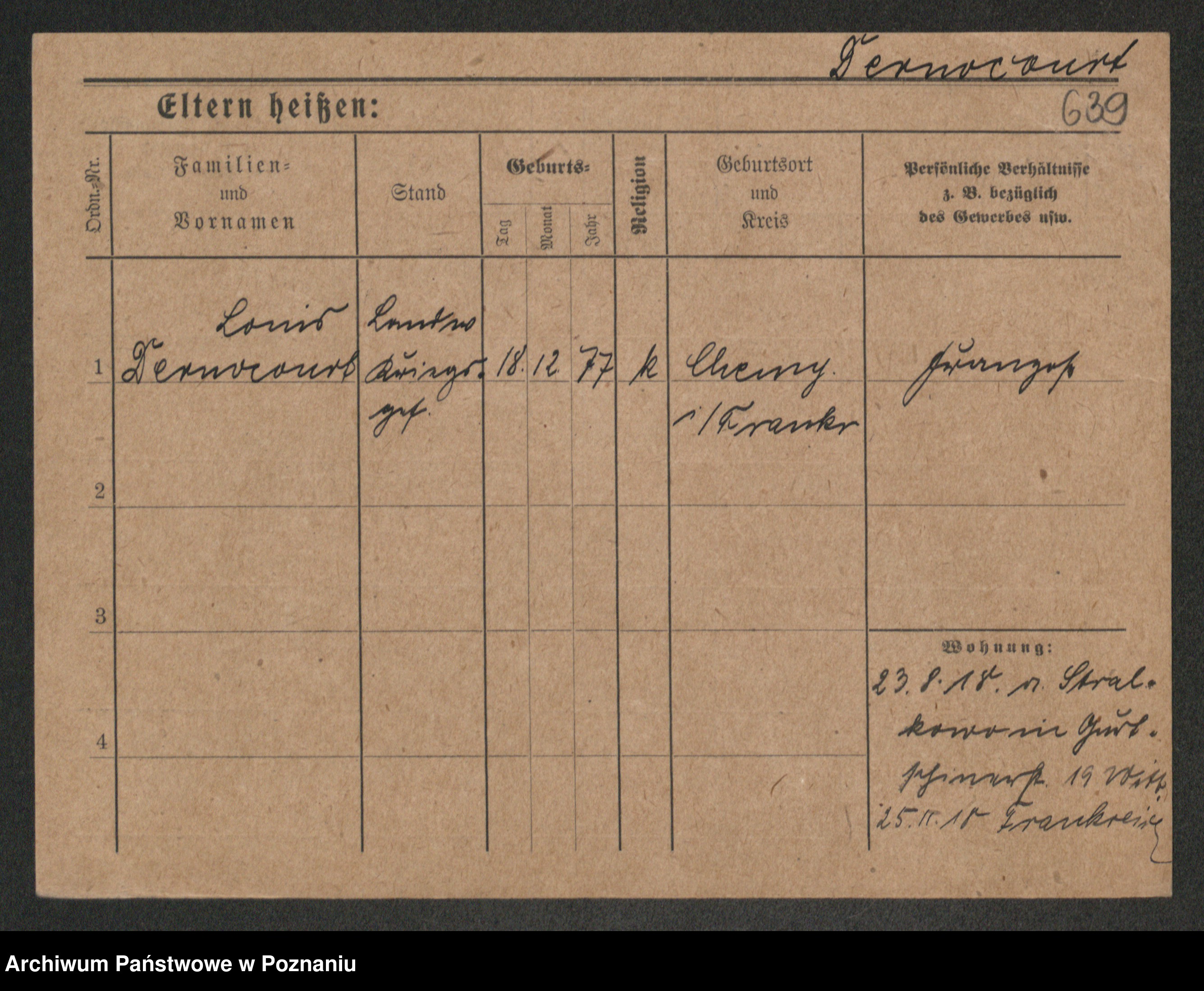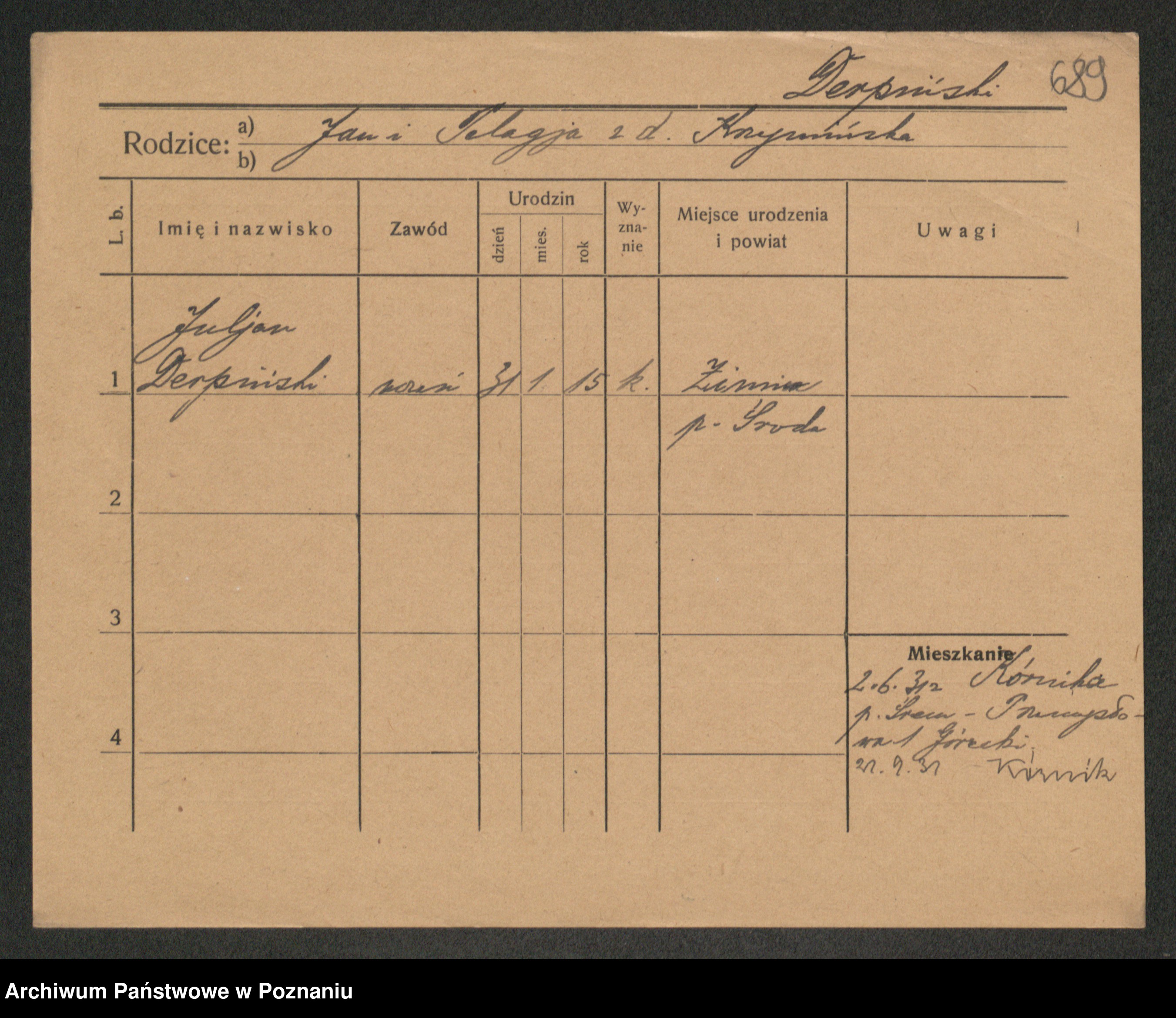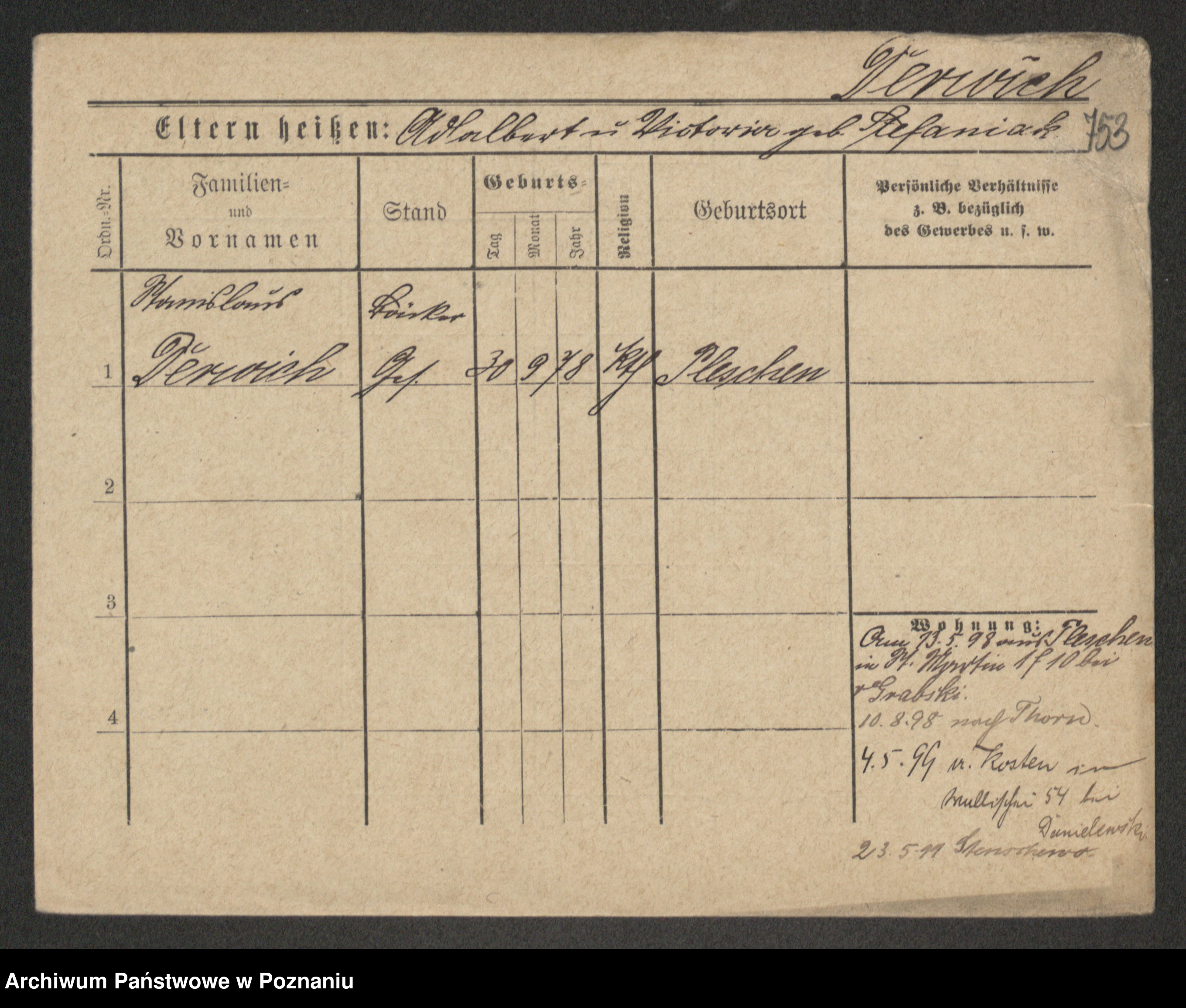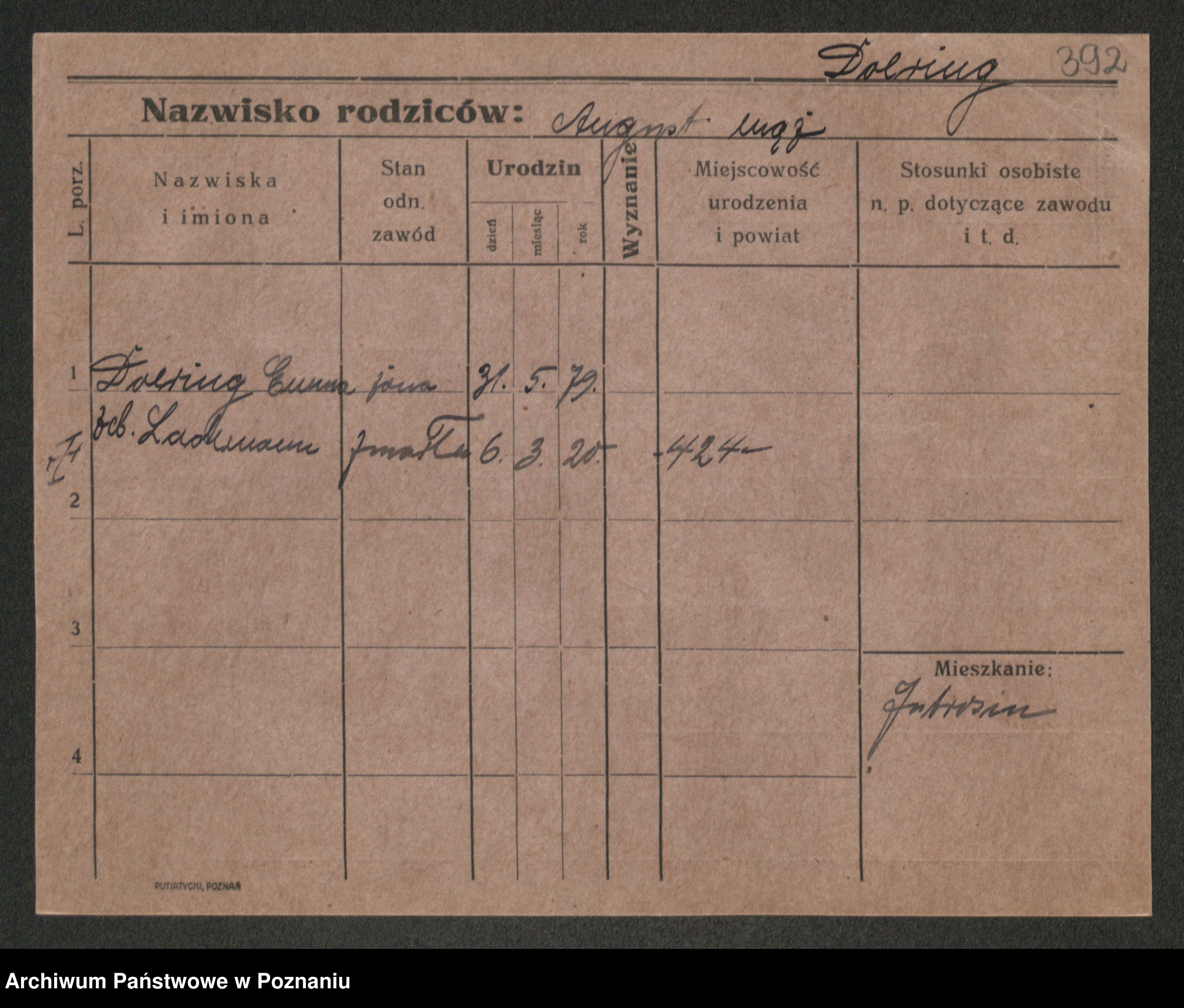 Podgląd karty osobowej dostępny jest po kliknięciu na nazwisko lub ikonkę karty. Można dokonywać powiększenia (ikony na górze) lub przechodzić między kolejnymi skanami (strzałki po bokach).