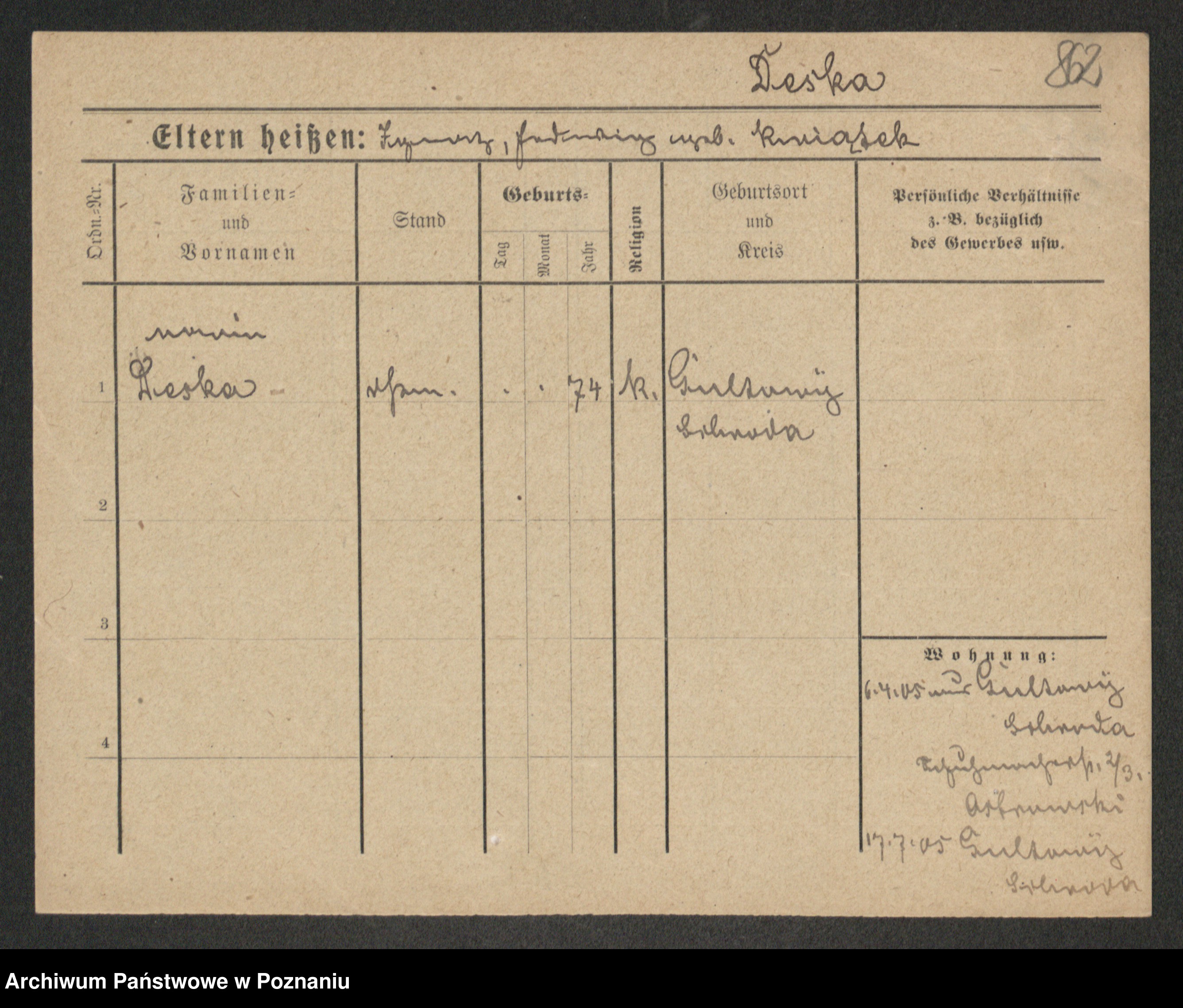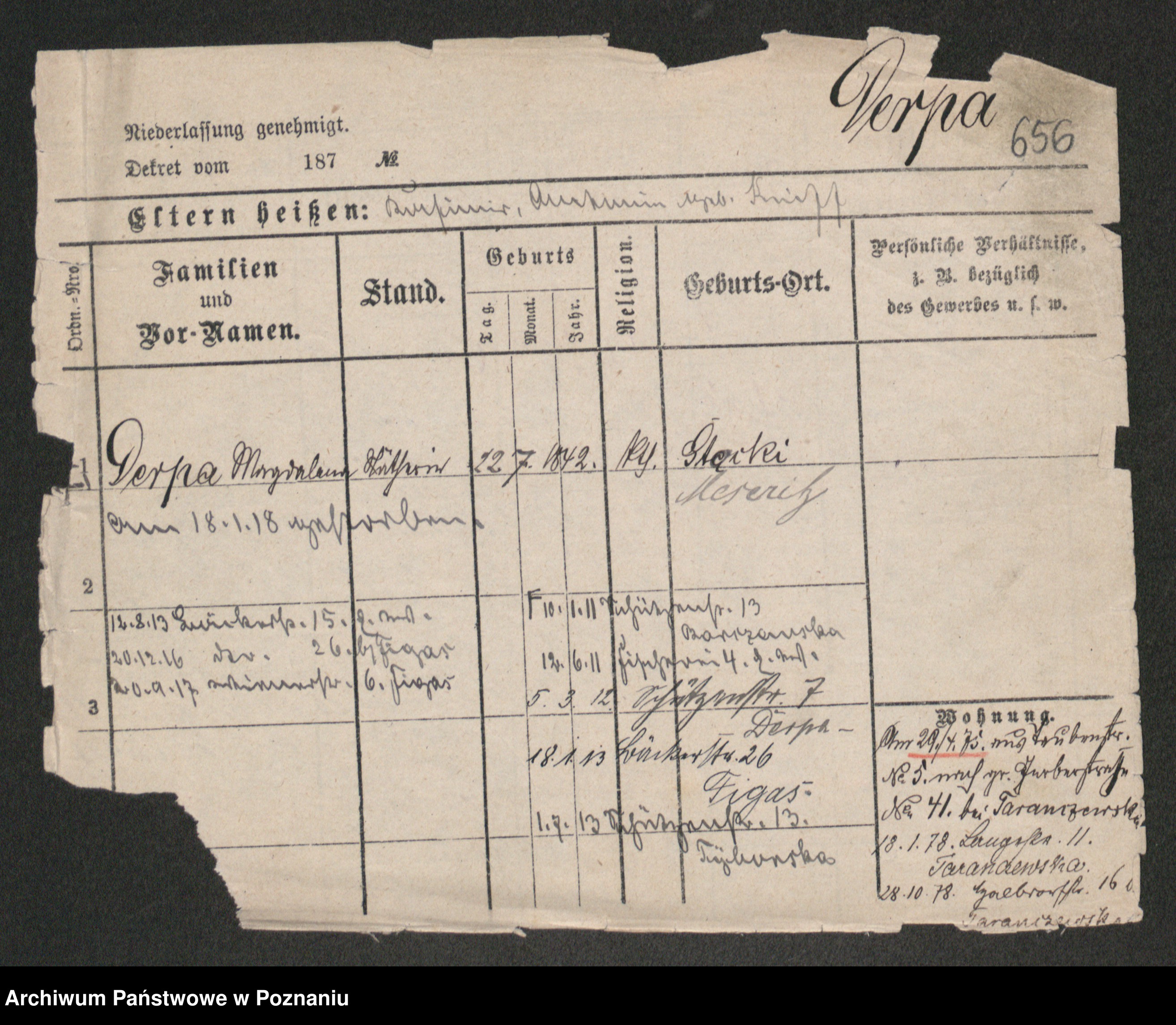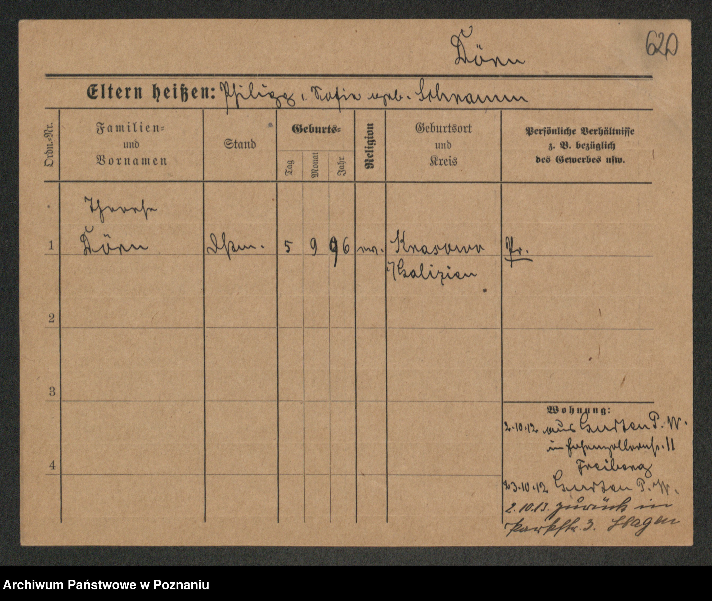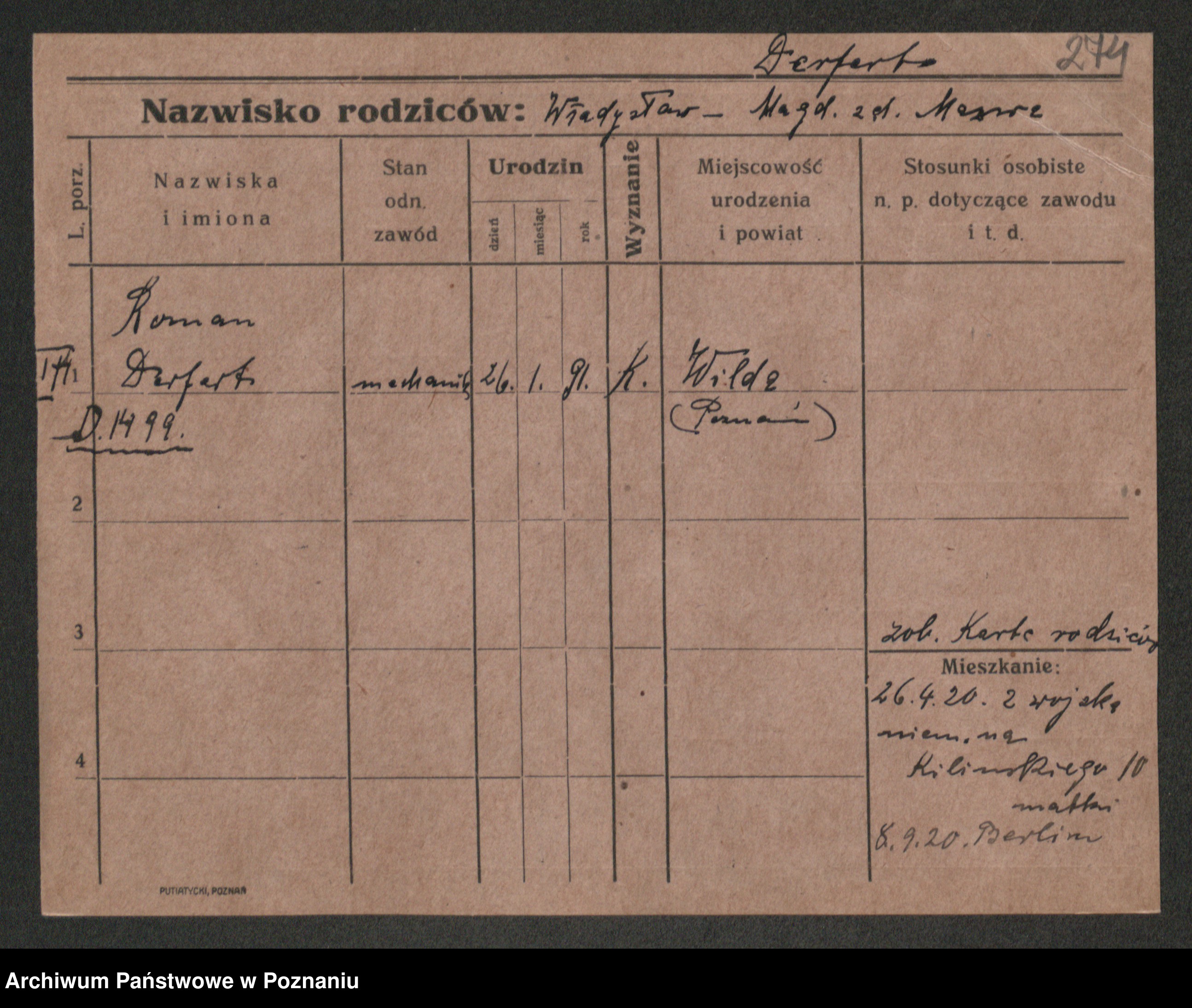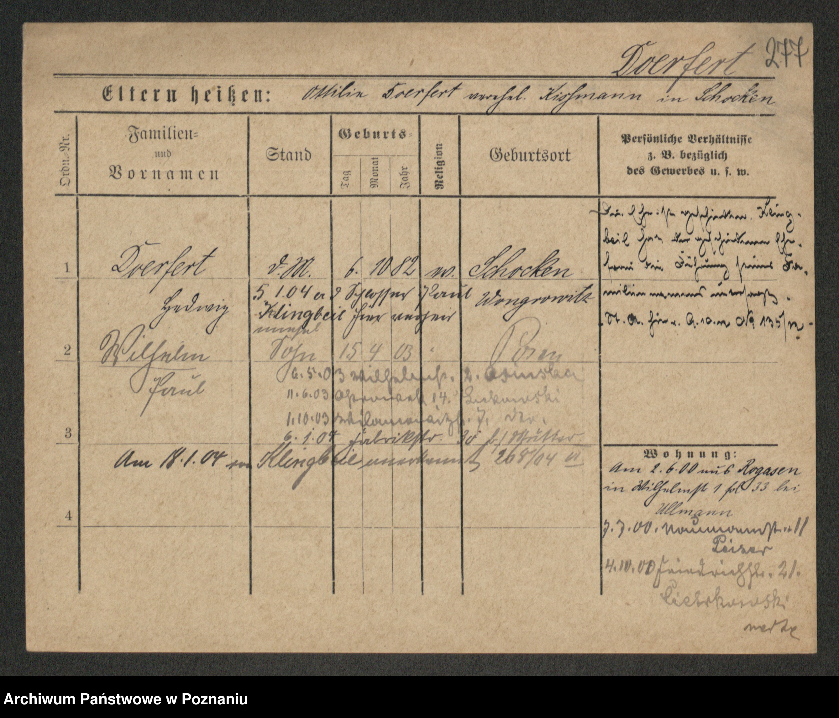 Podgląd karty osobowej dostępny jest po kliknięciu na nazwisko lub ikonkę karty. Można dokonywać powiększenia (ikony na górze) lub przechodzić między kolejnymi skanami (strzałki po bokach).