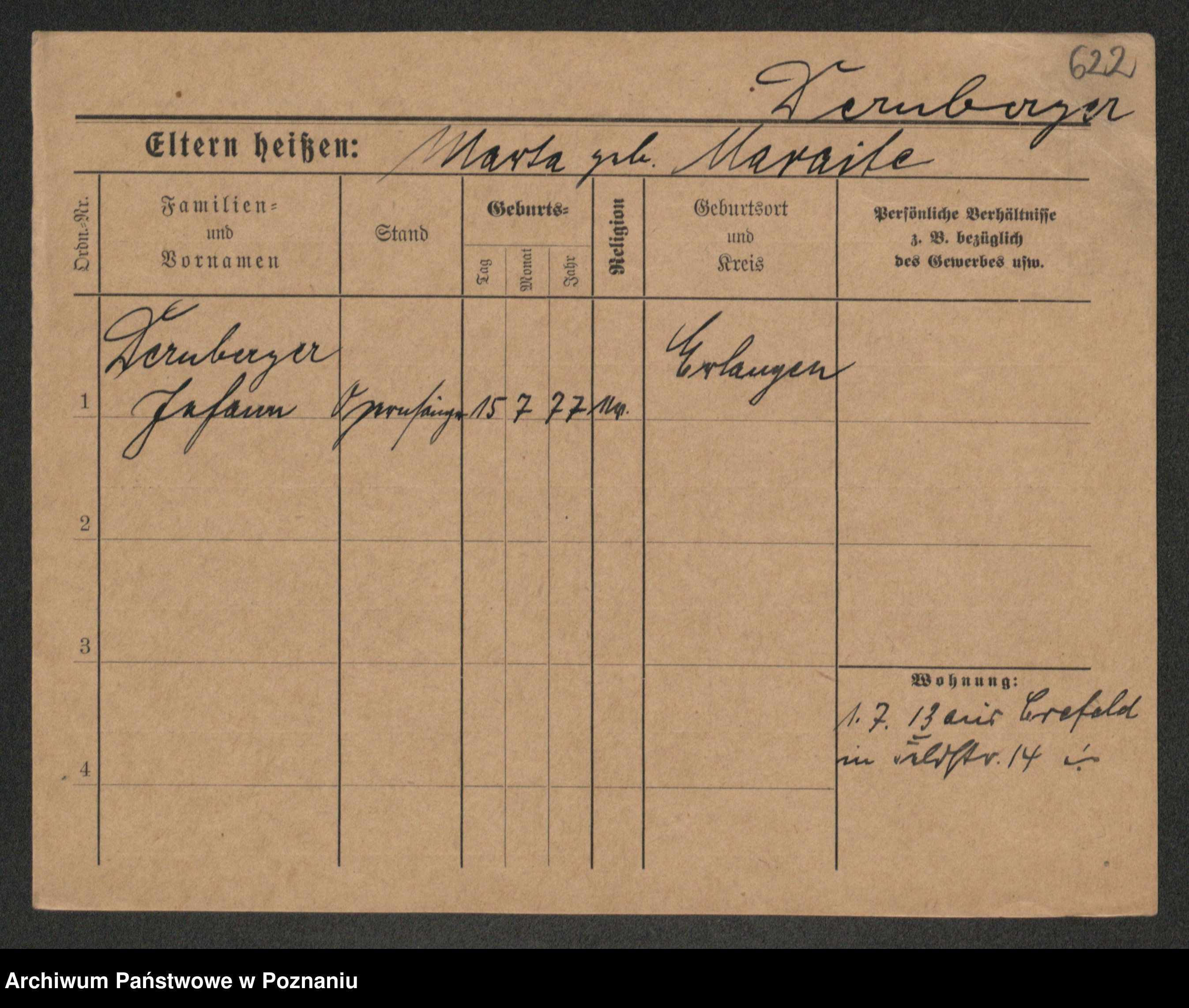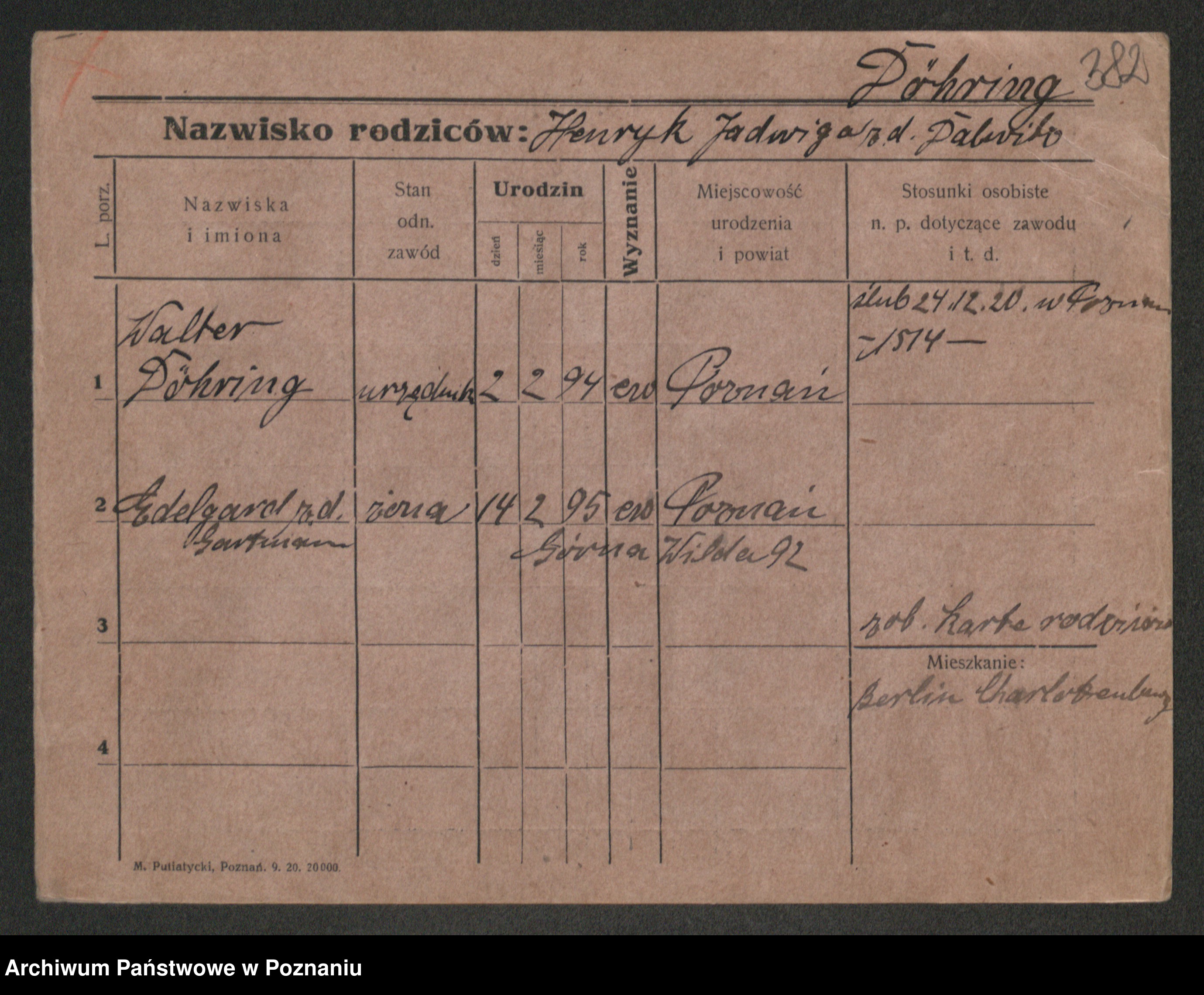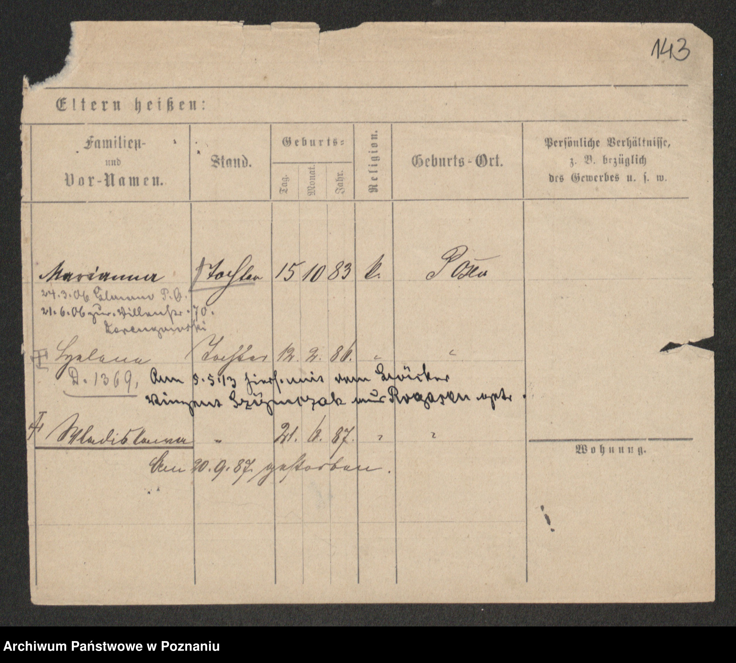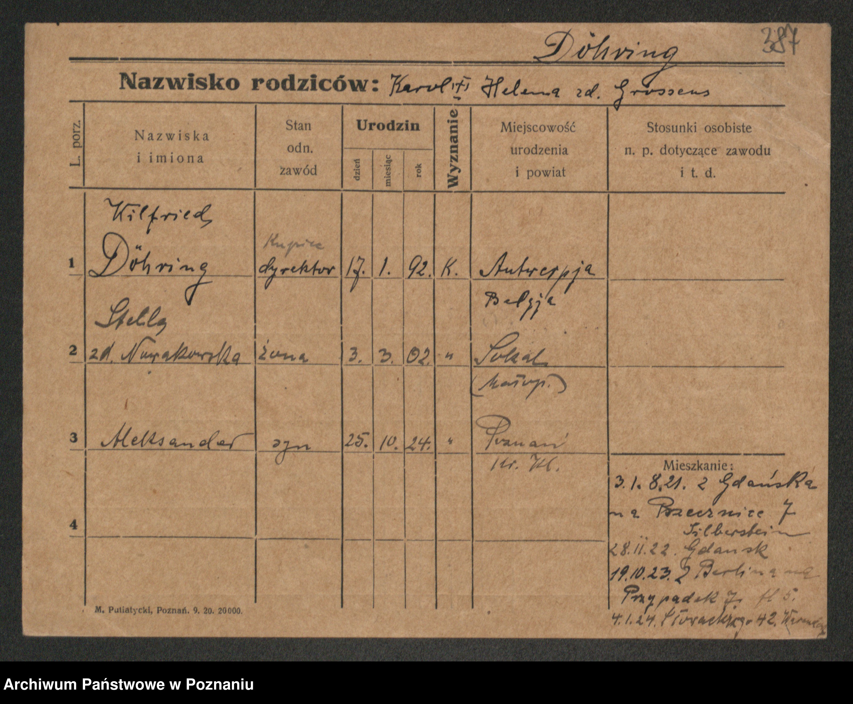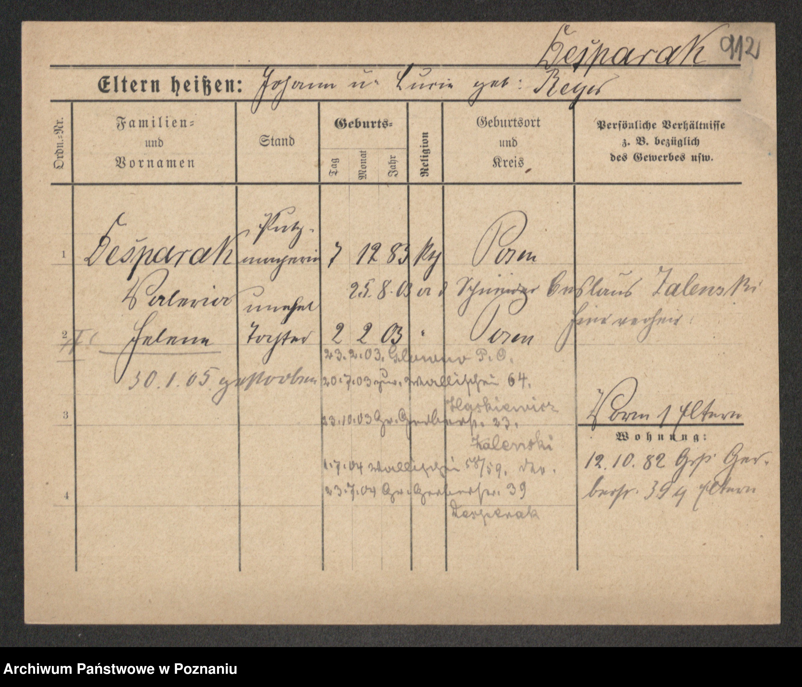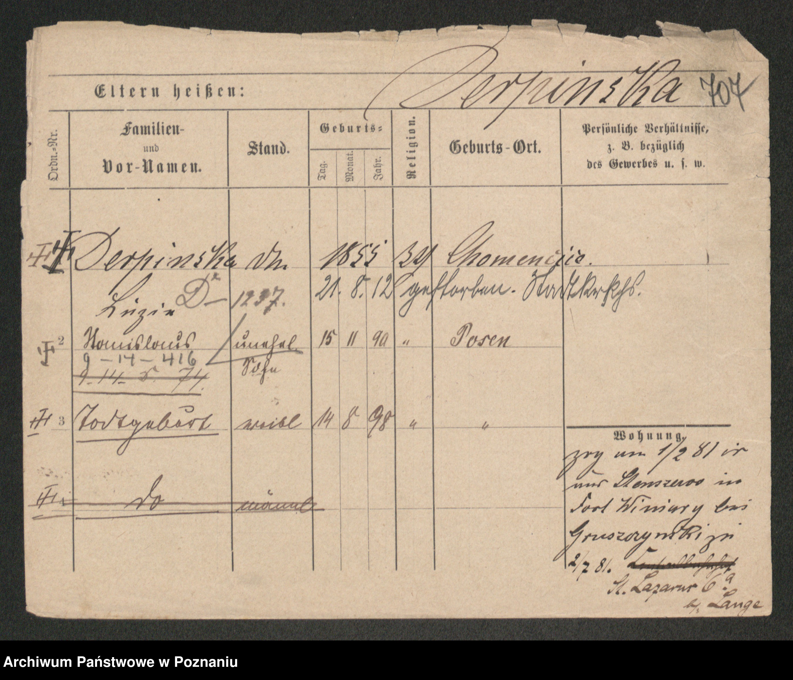Podgląd karty osobowej dostępny jest po kliknięciu na nazwisko lub ikonkę karty. Można dokonywać powiększenia (ikony na górze) lub przechodzić między kolejnymi skanami (strzałki po bokach).