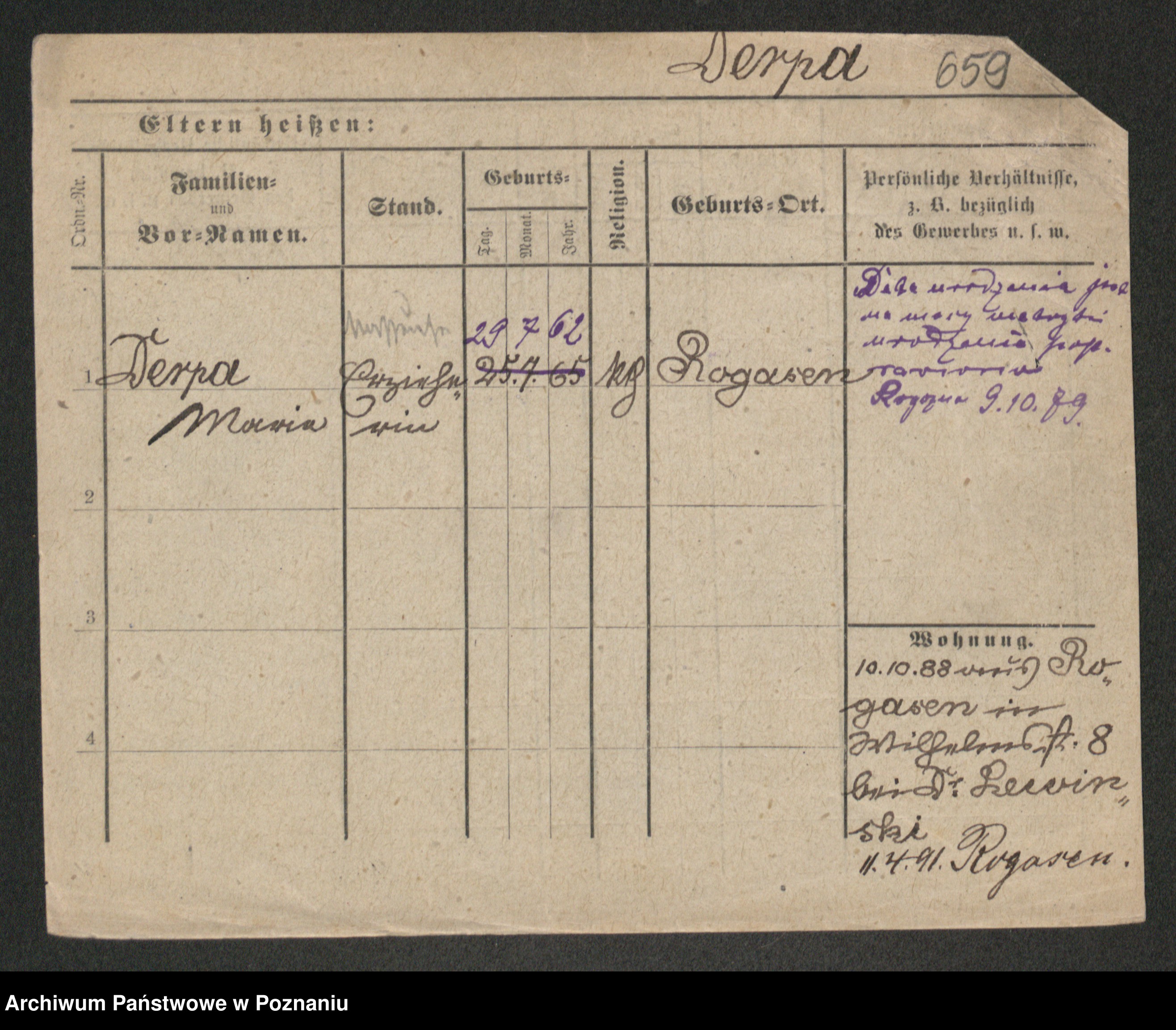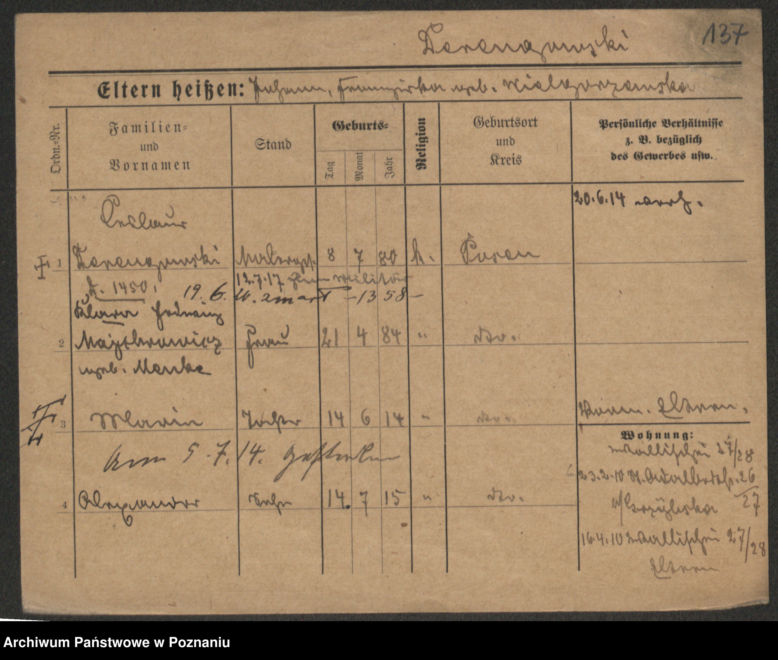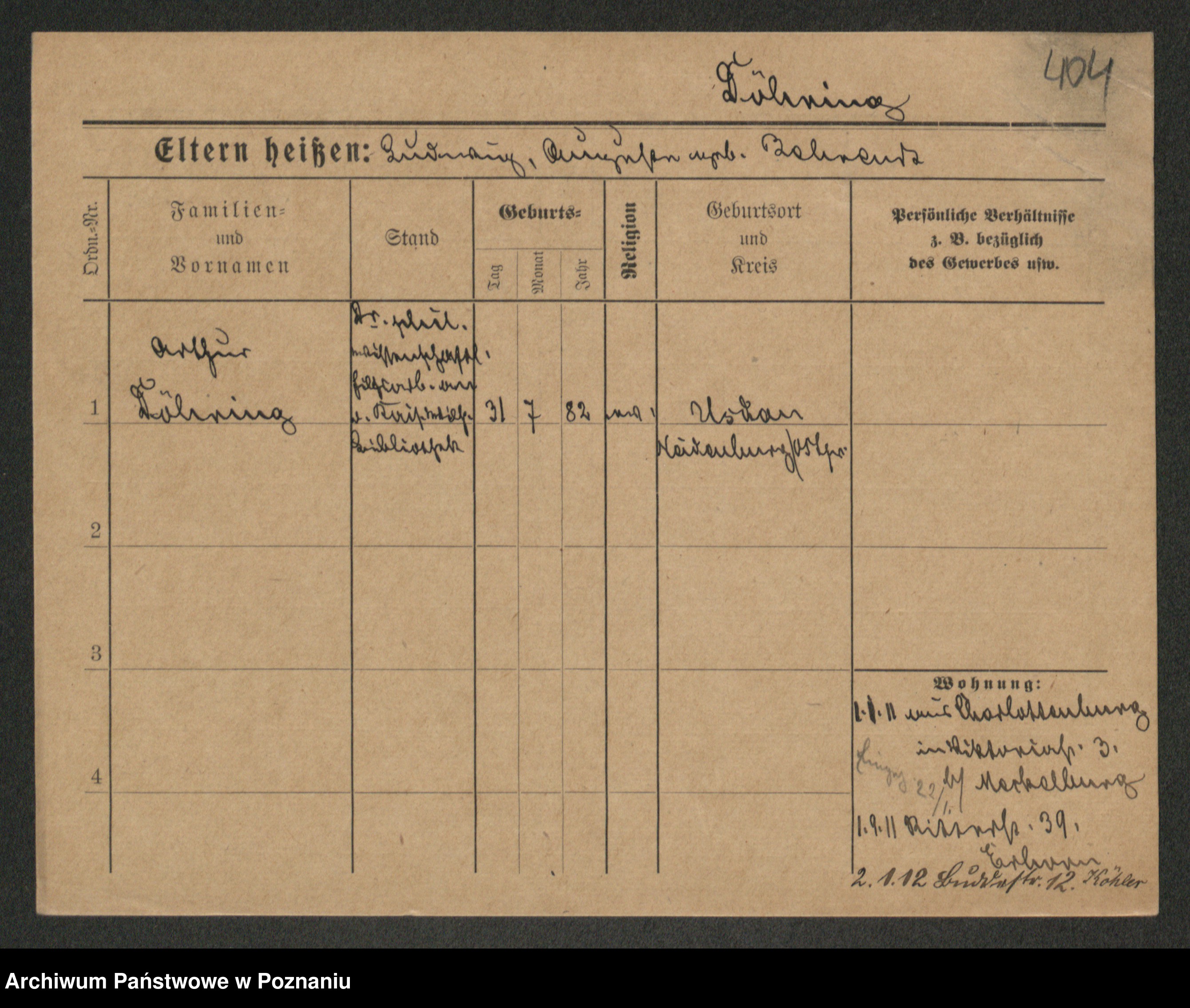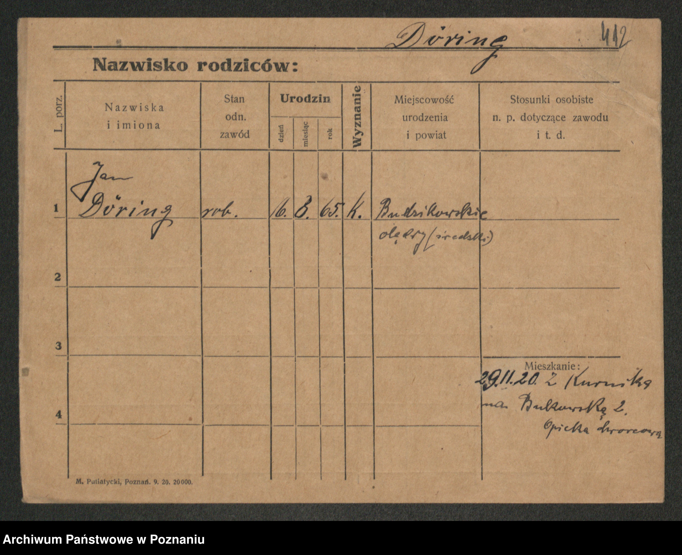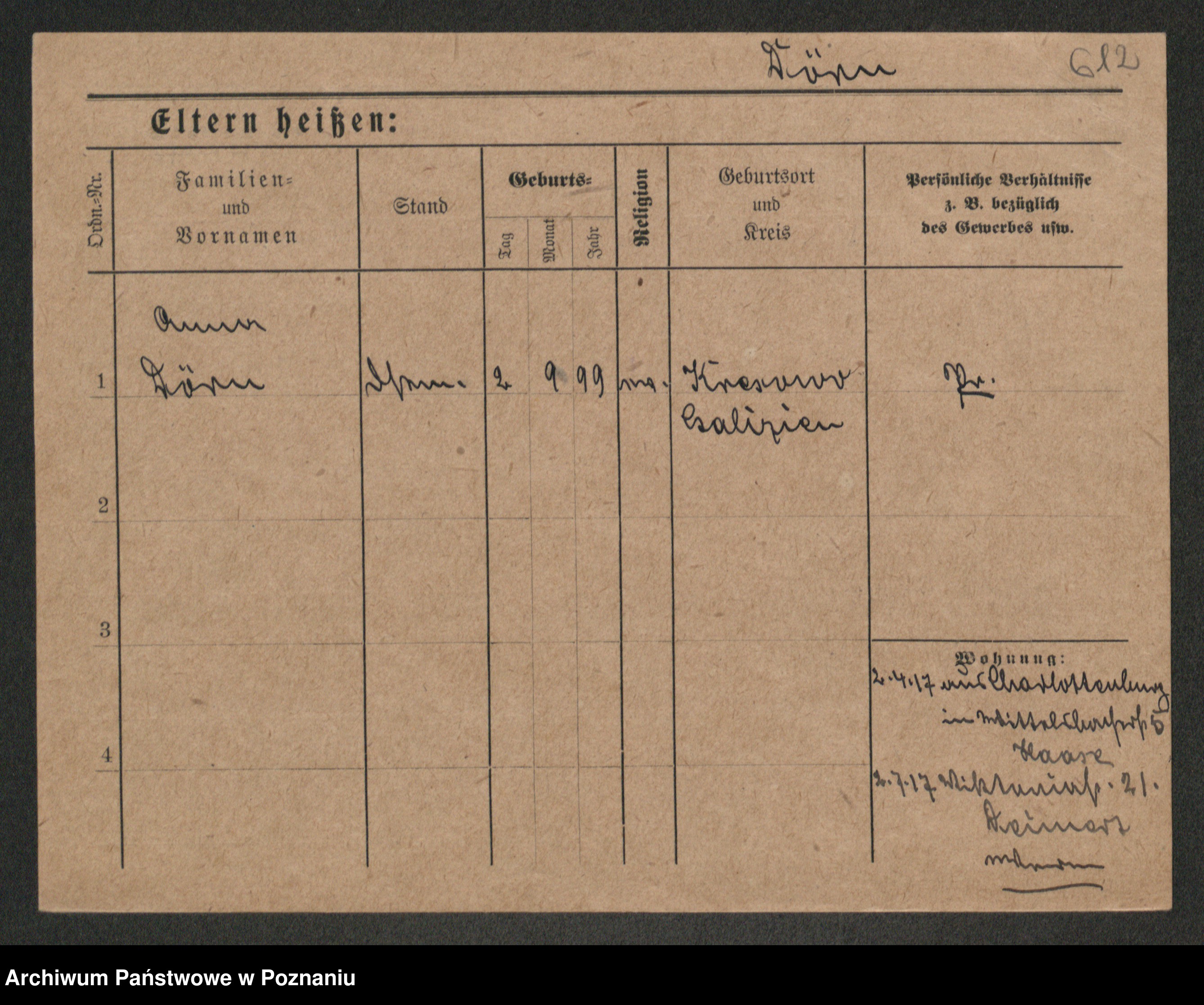 Podgląd karty osobowej dostępny jest po kliknięciu na nazwisko lub ikonkę karty. Można dokonywać powiększenia (ikony na górze) lub przechodzić między kolejnymi skanami (strzałki po bokach).