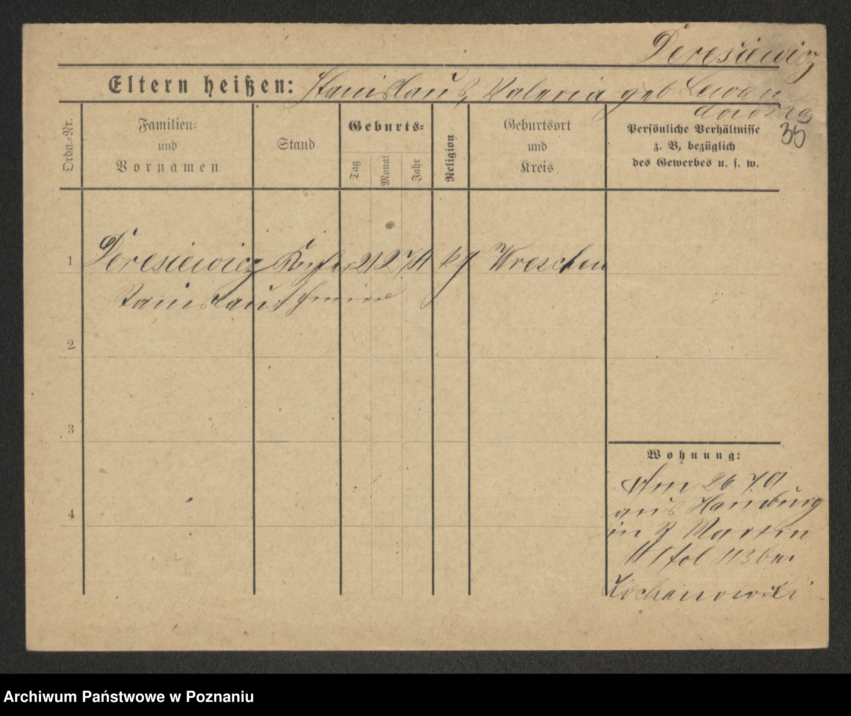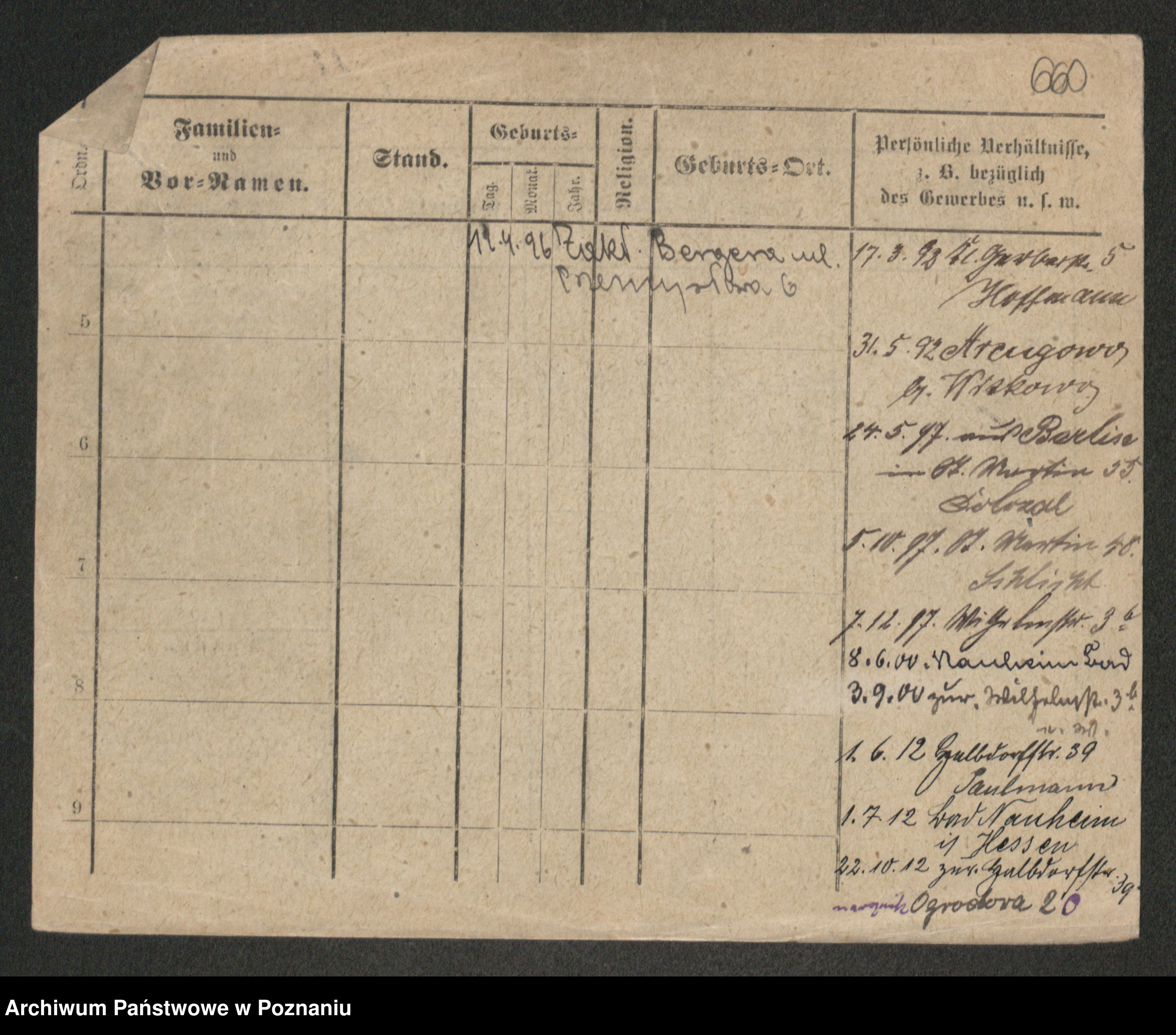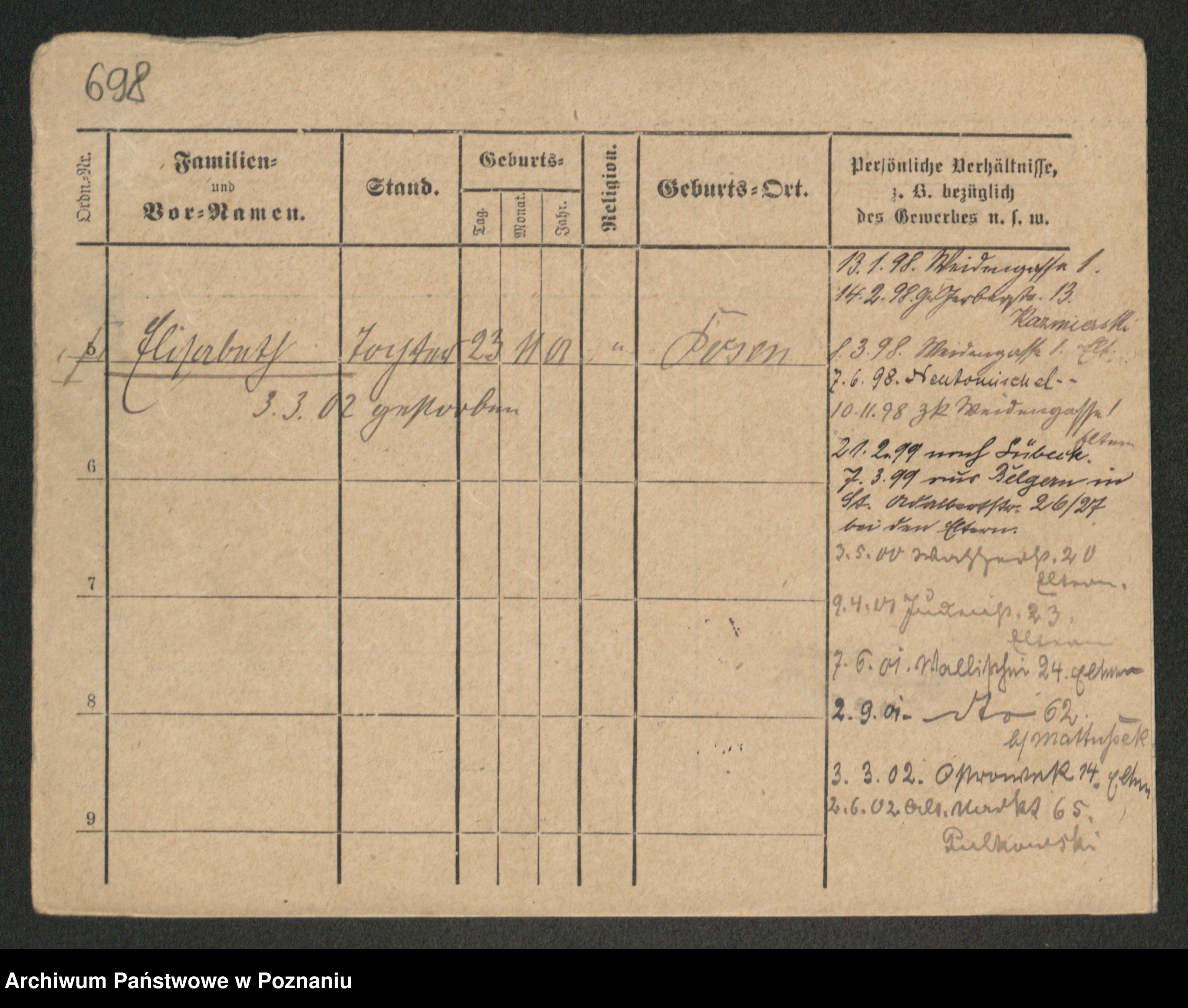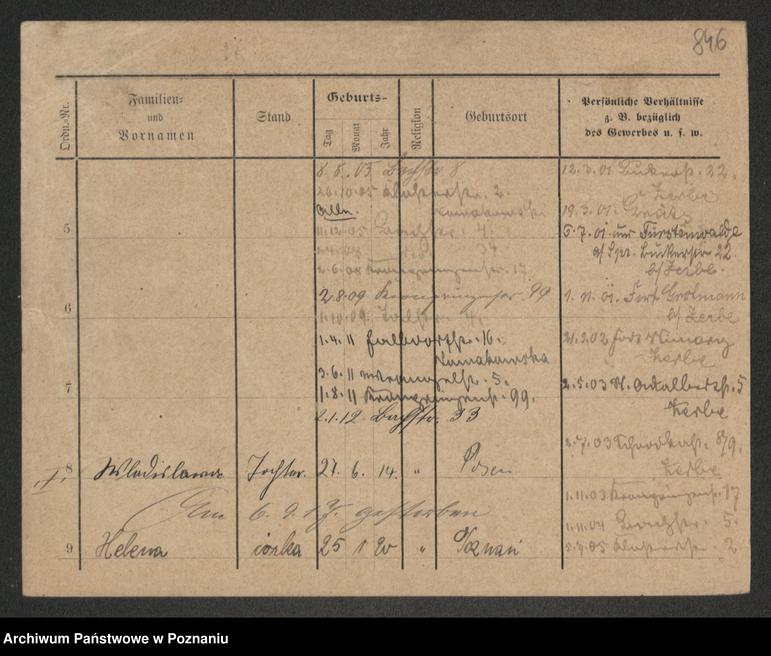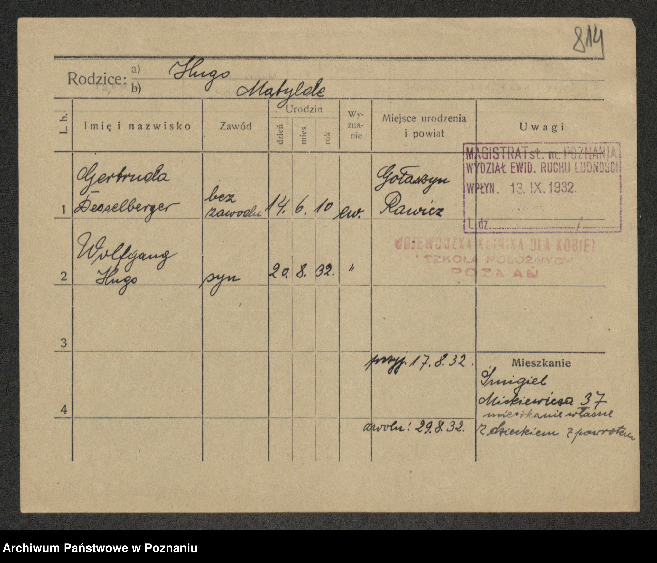 Podgląd karty osobowej dostępny jest po kliknięciu na nazwisko lub ikonkę karty. Można dokonywać powiększenia (ikony na górze) lub przechodzić między kolejnymi skanami (strzałki po bokach).
