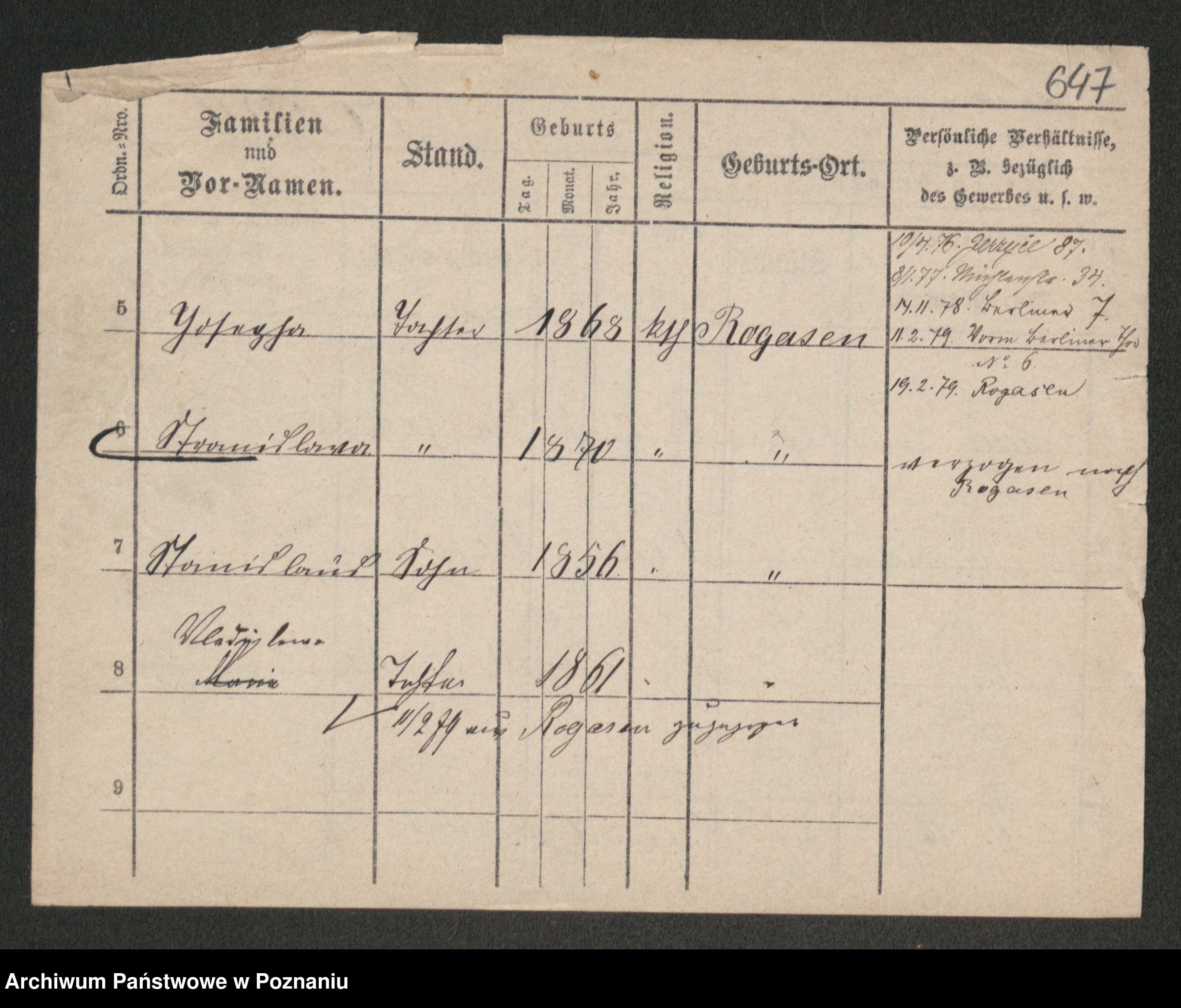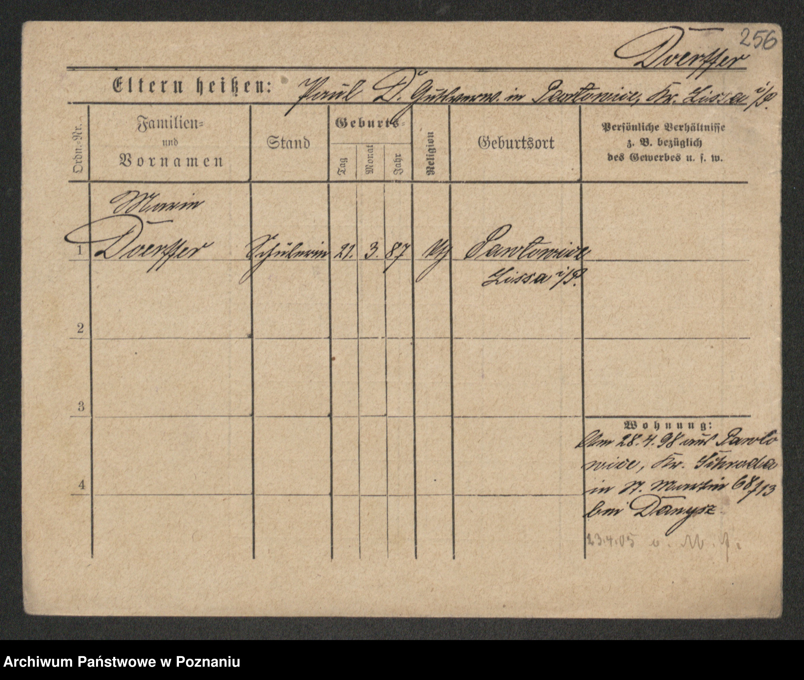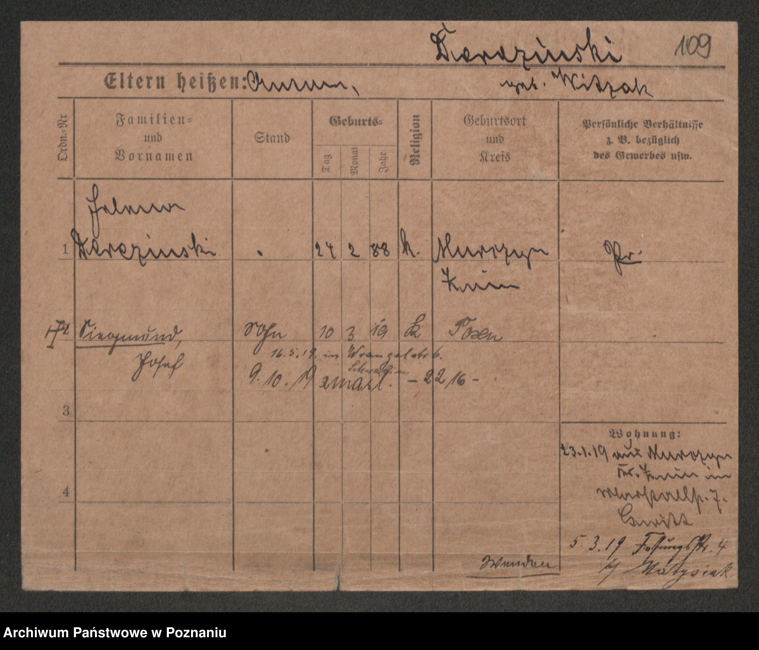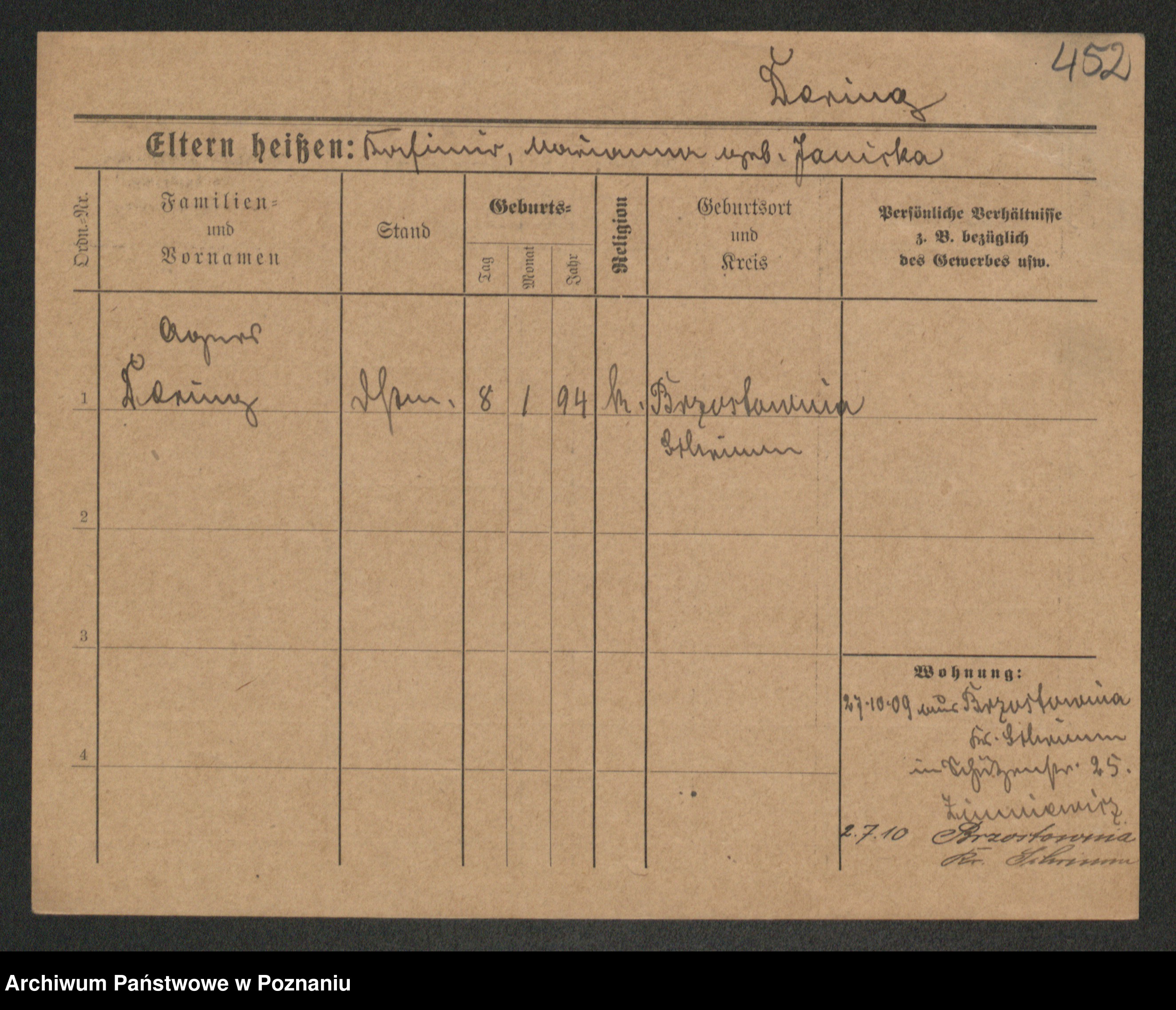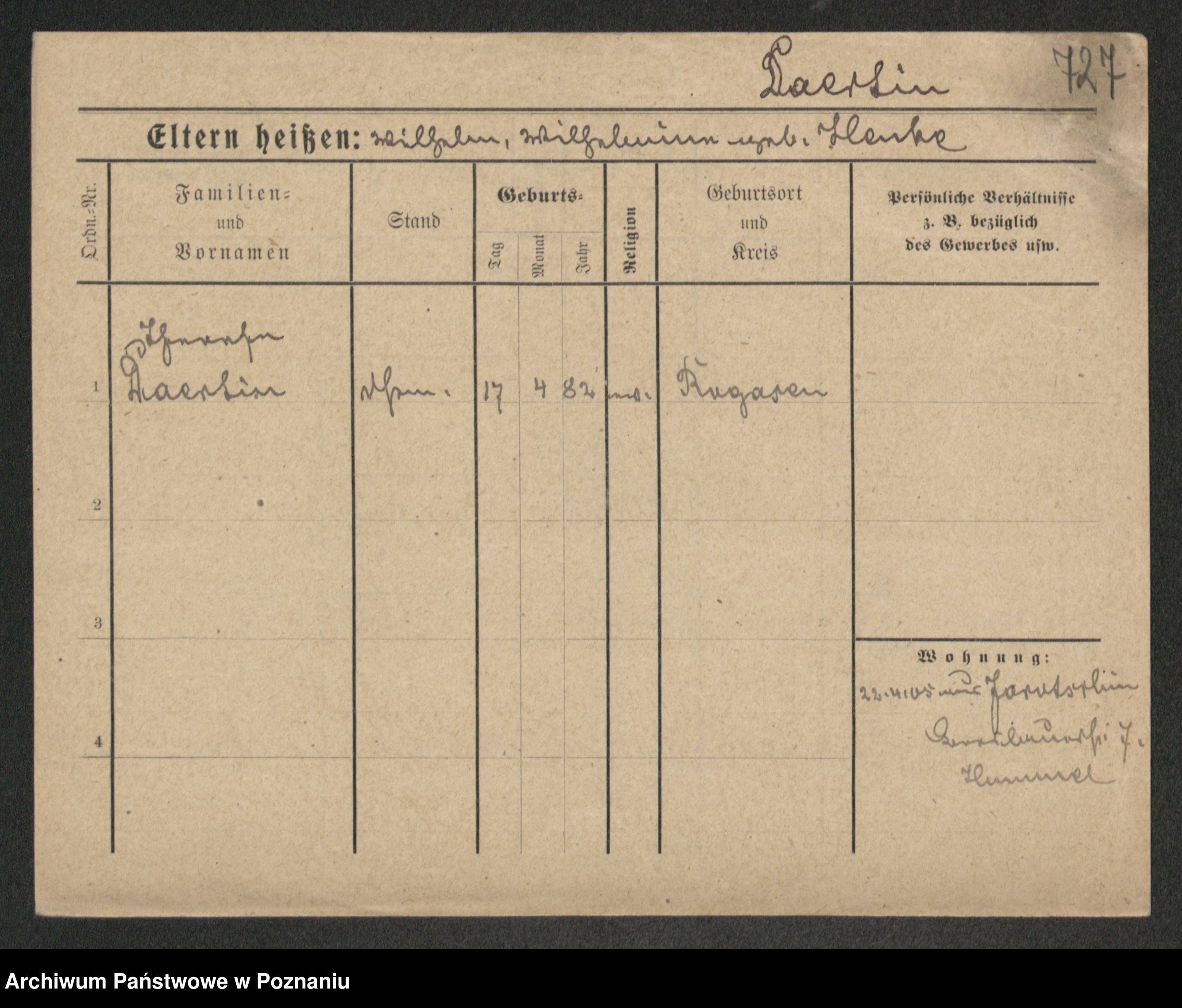 Podgląd karty osobowej dostępny jest po kliknięciu na nazwisko lub ikonkę karty. Można dokonywać powiększenia (ikony na górze) lub przechodzić między kolejnymi skanami (strzałki po bokach).