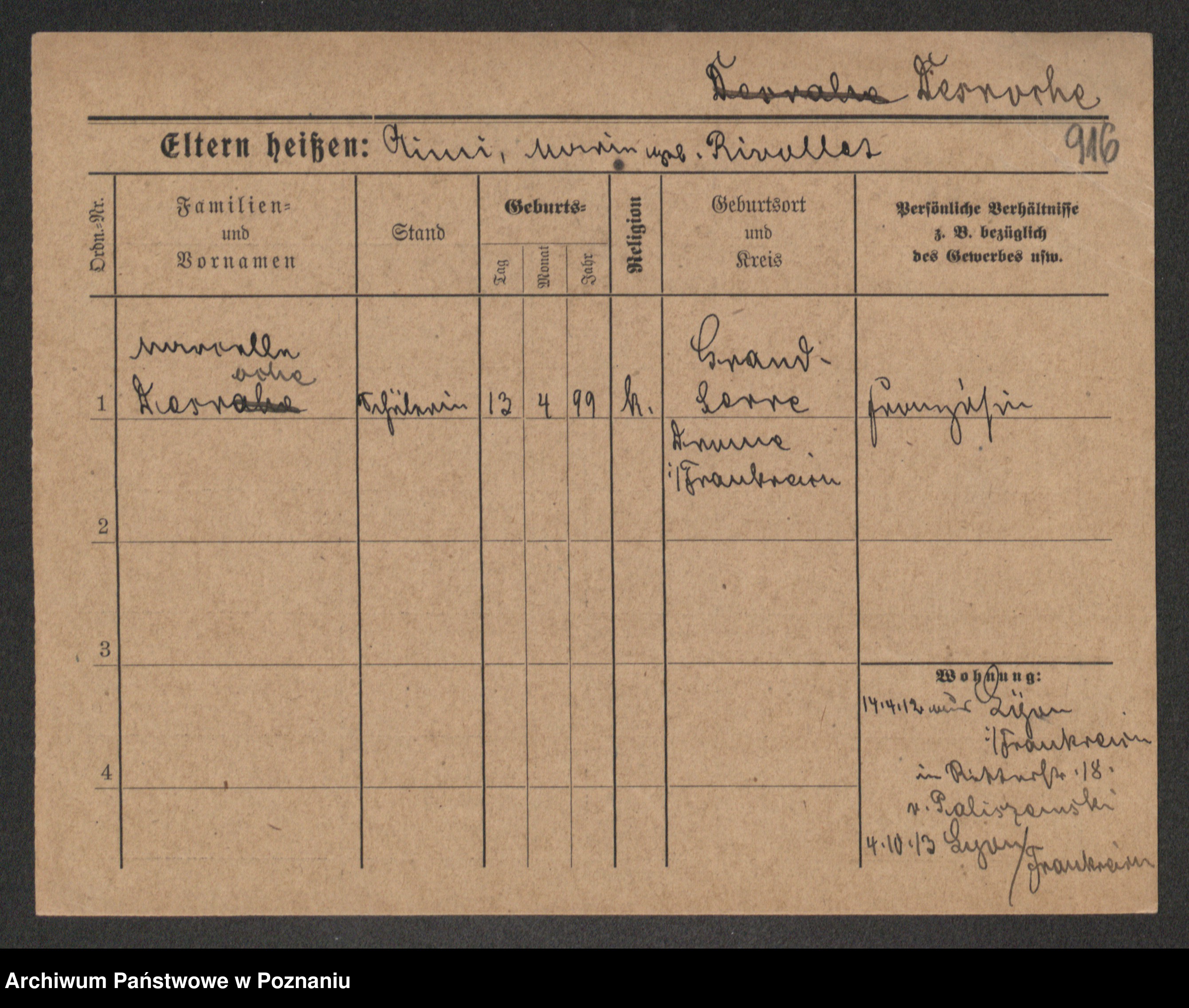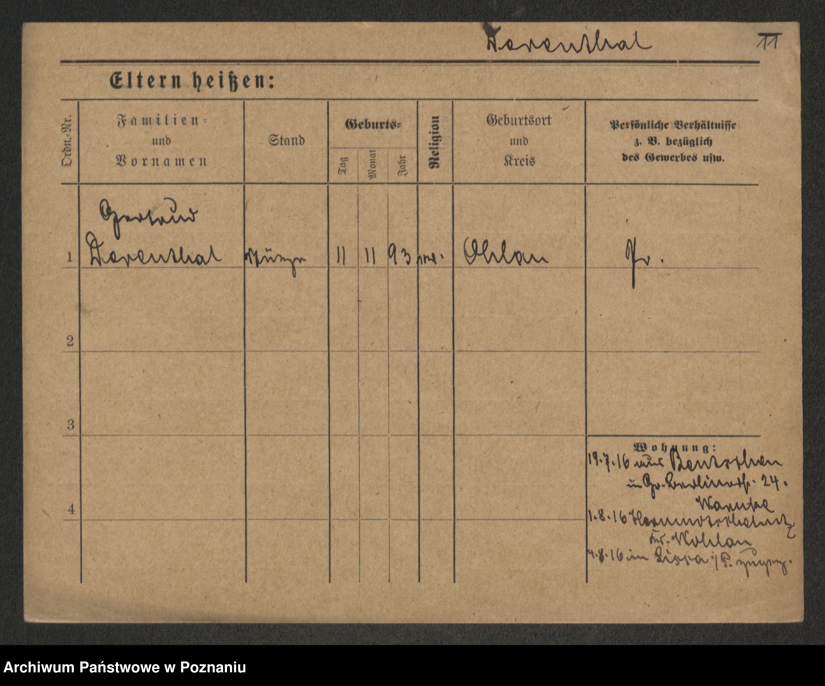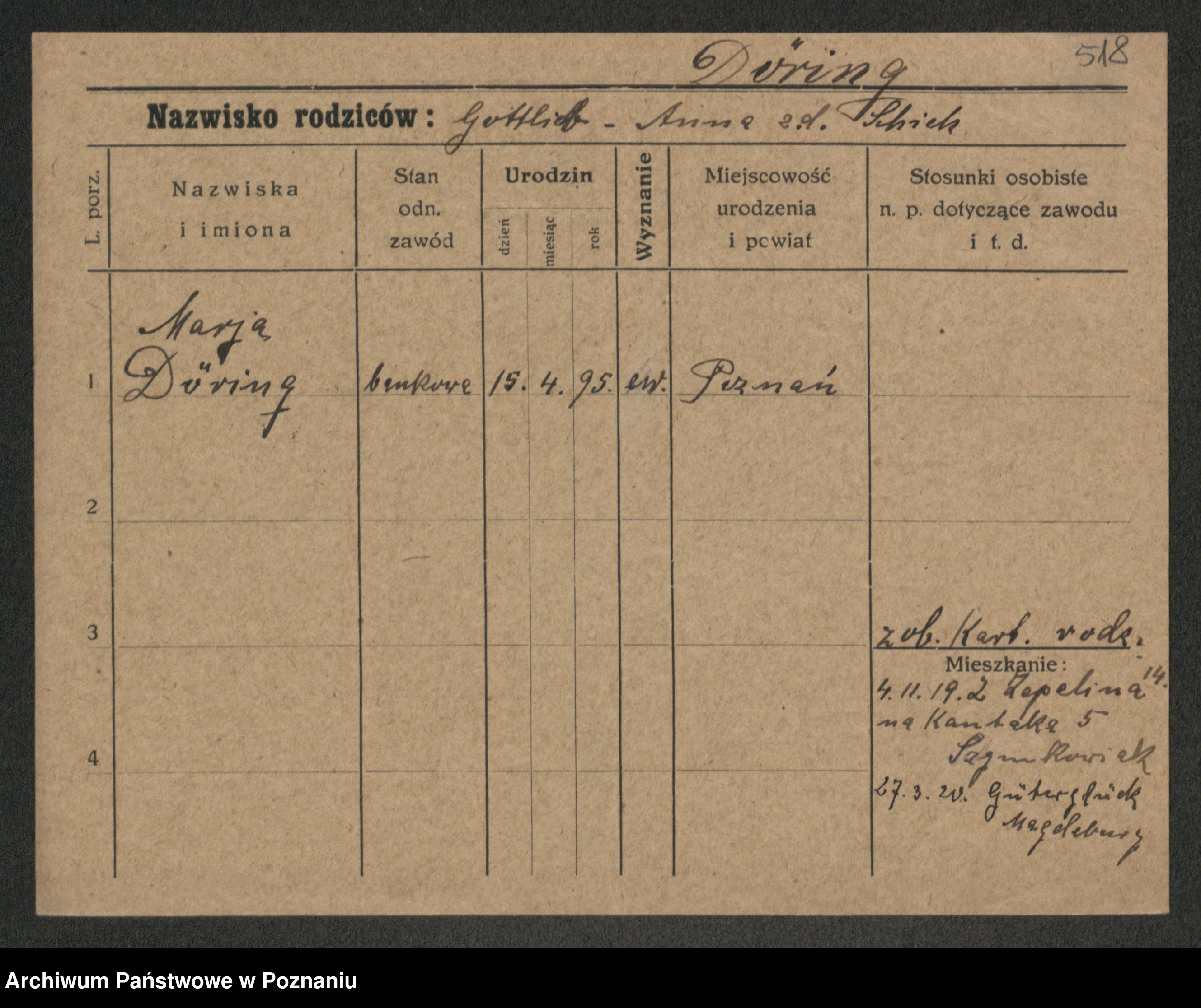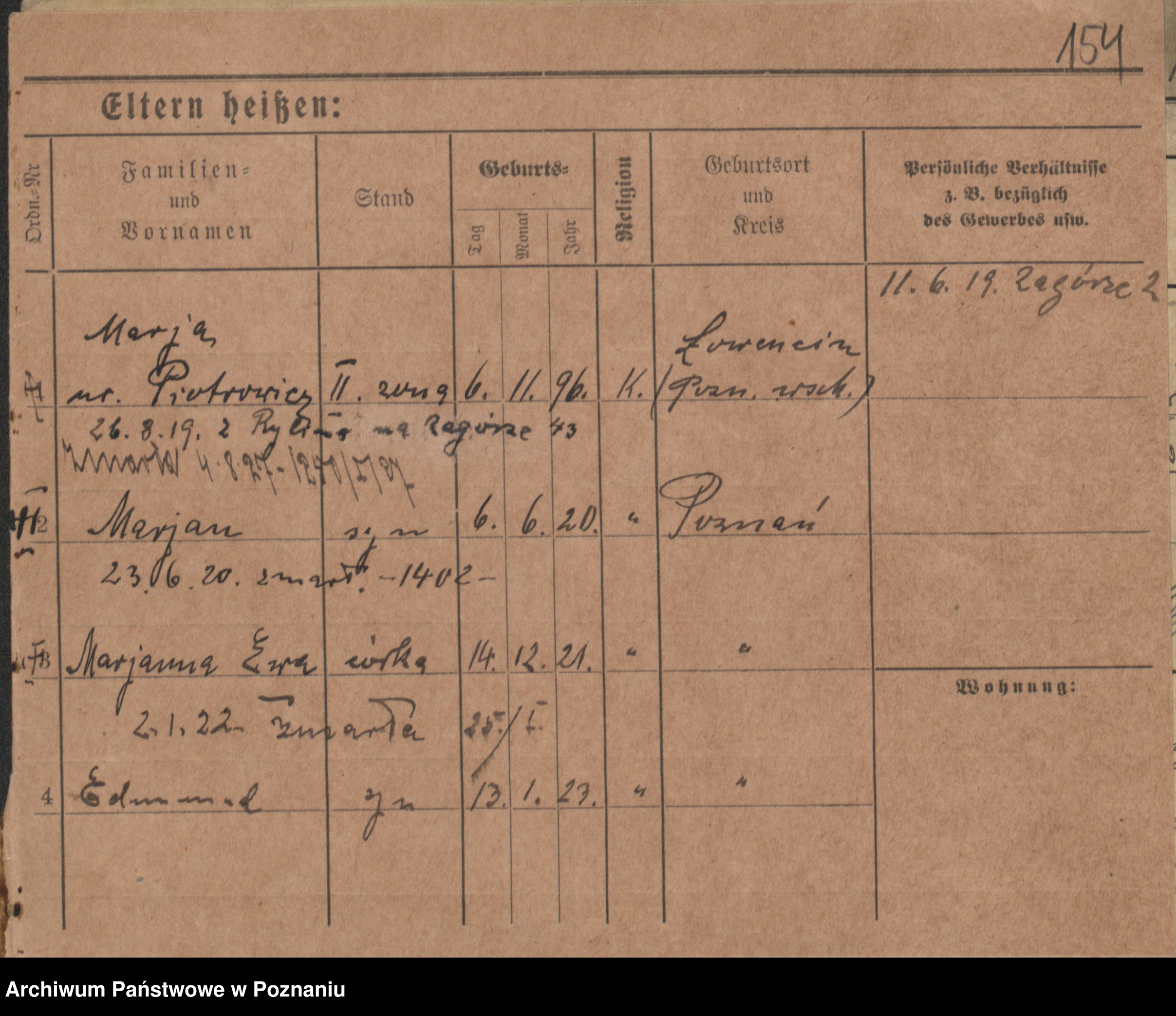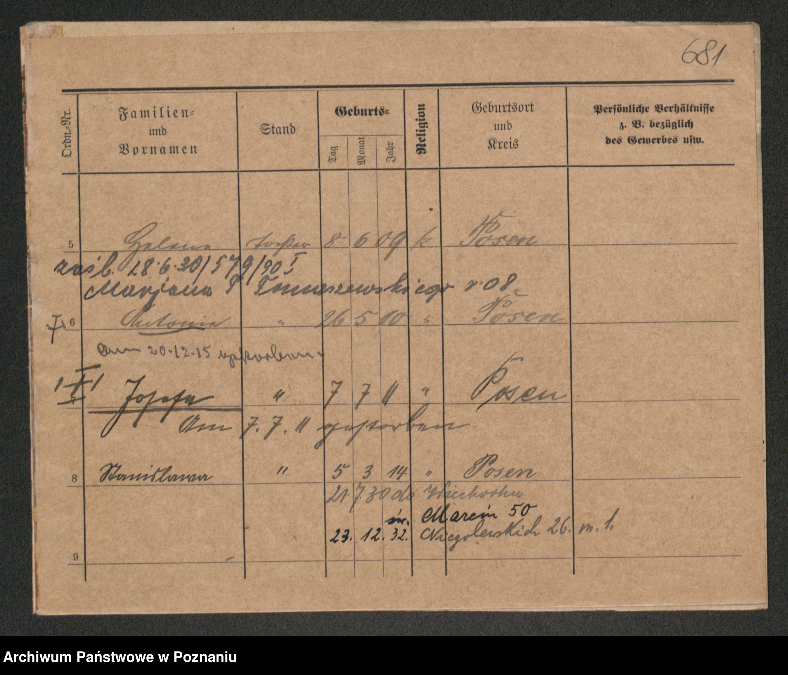Podgląd karty osobowej dostępny jest po kliknięciu na nazwisko lub ikonkę karty. Można dokonywać powiększenia (ikony na górze) lub przechodzić między kolejnymi skanami (strzałki po bokach).