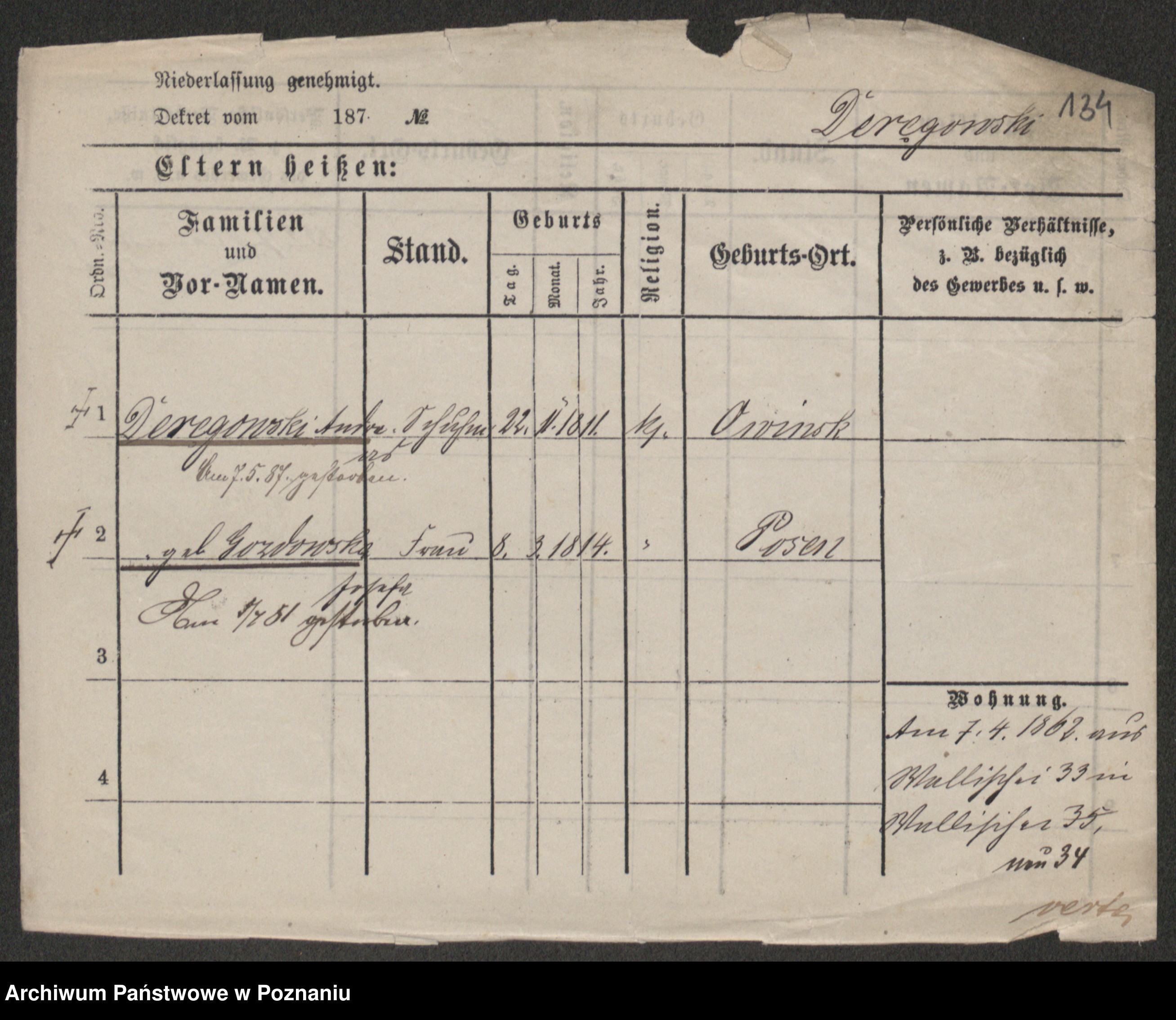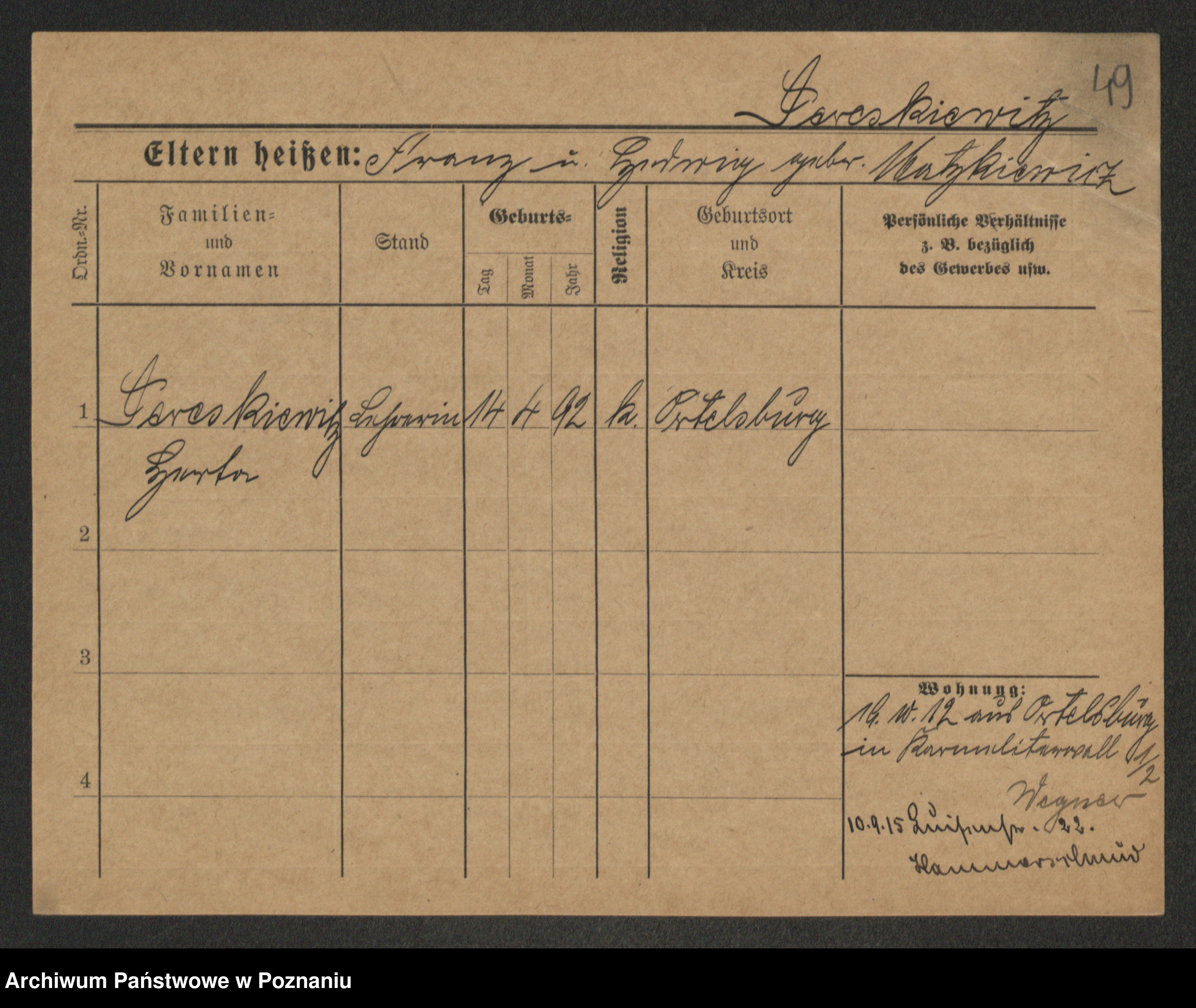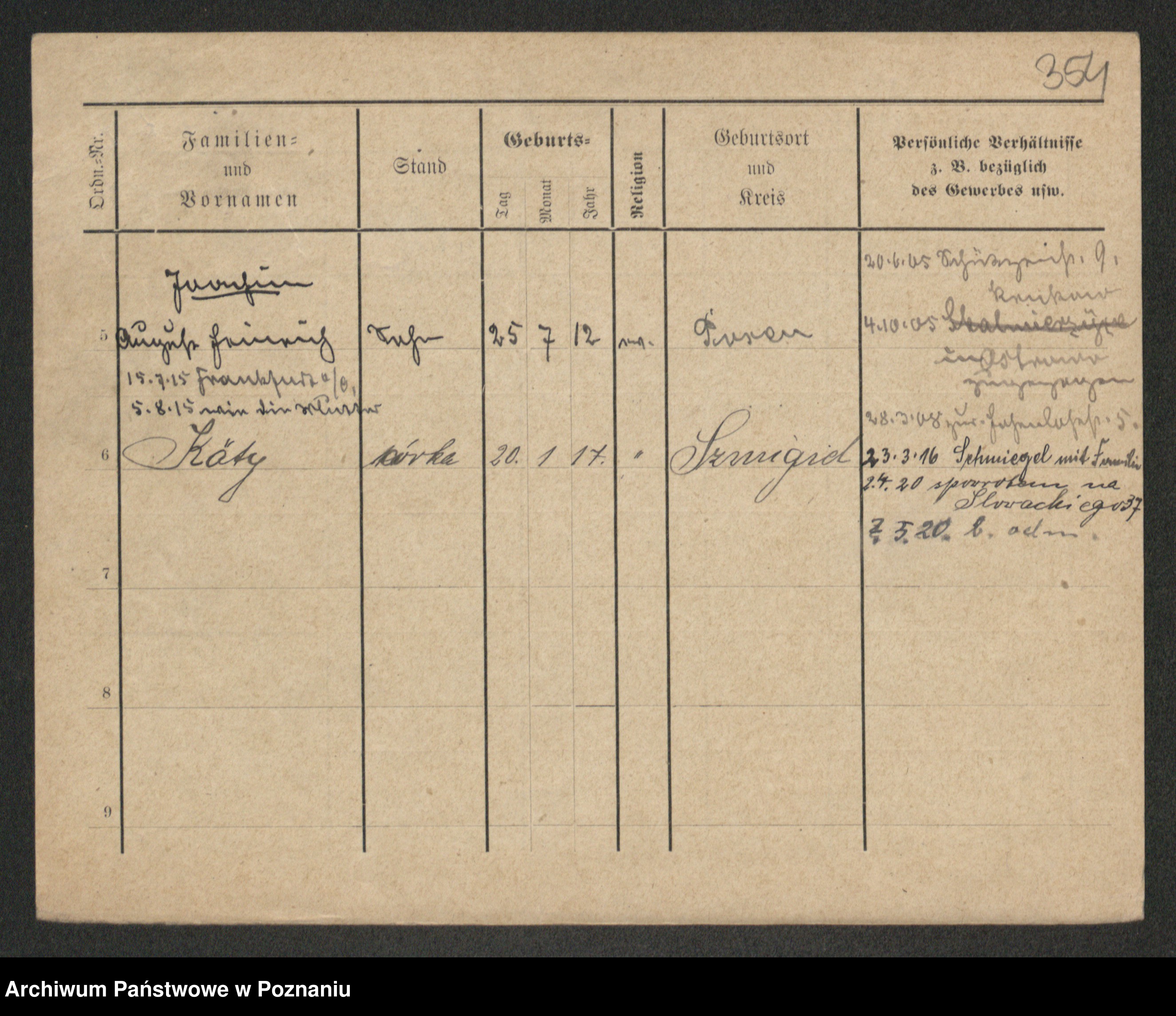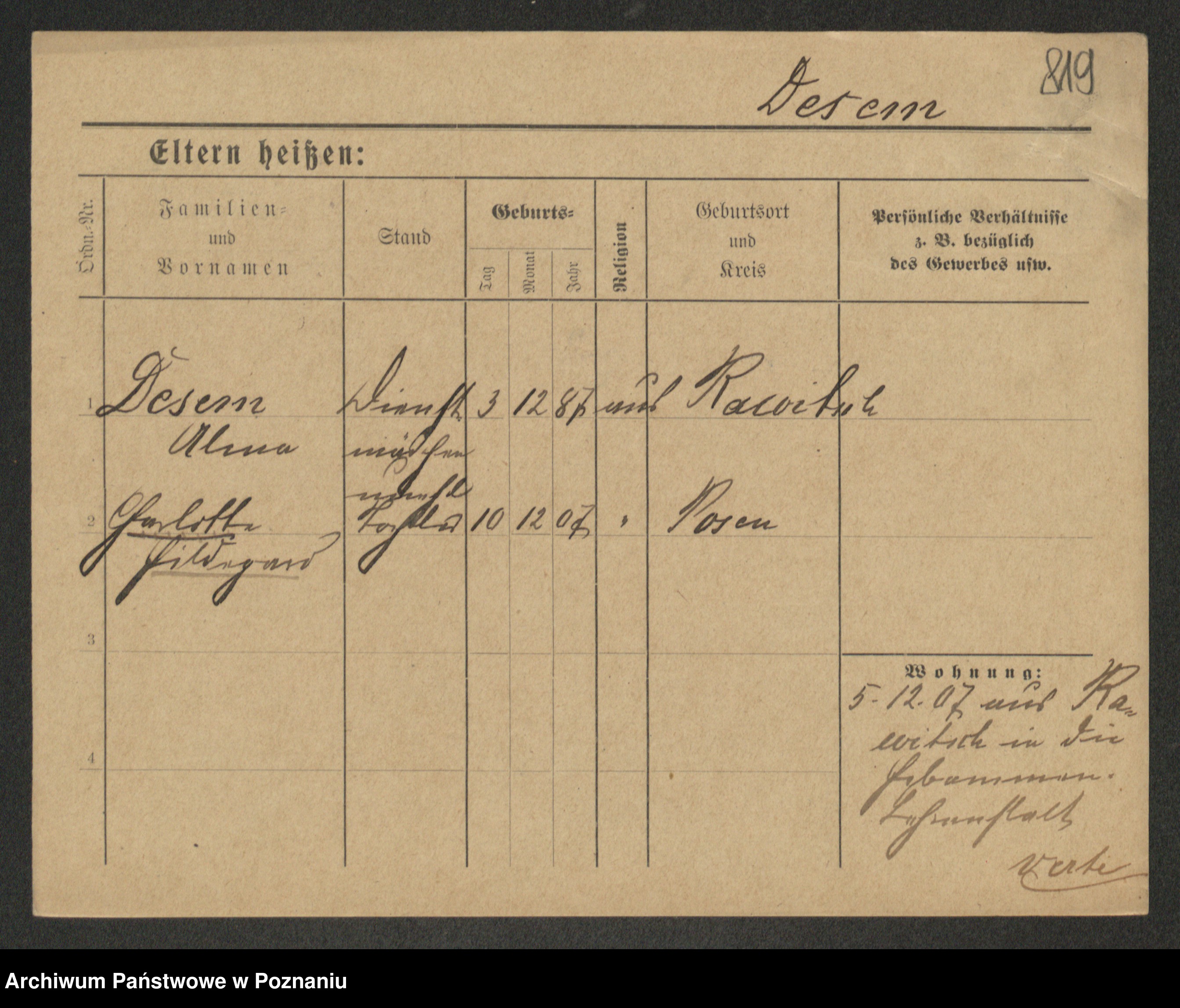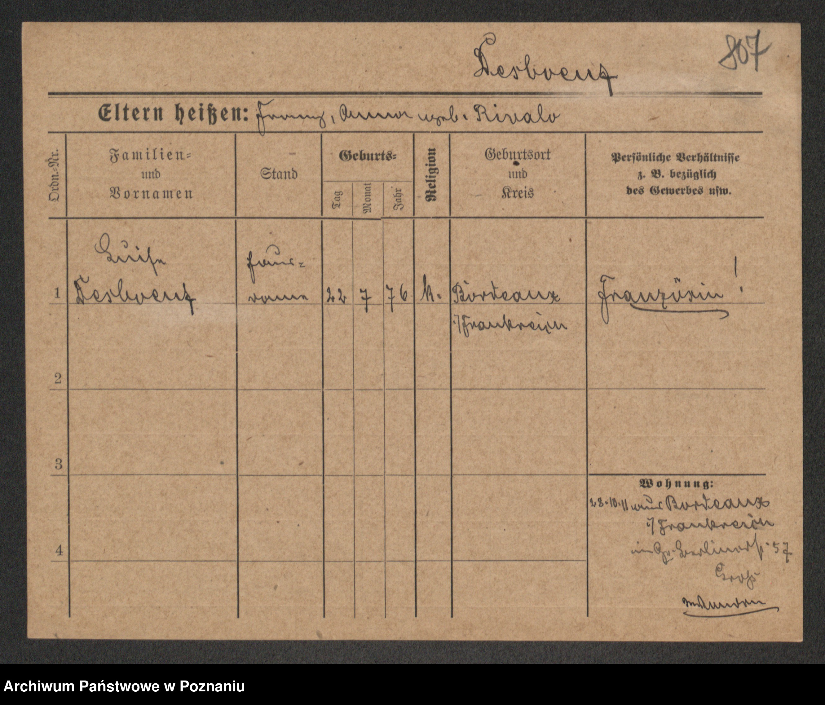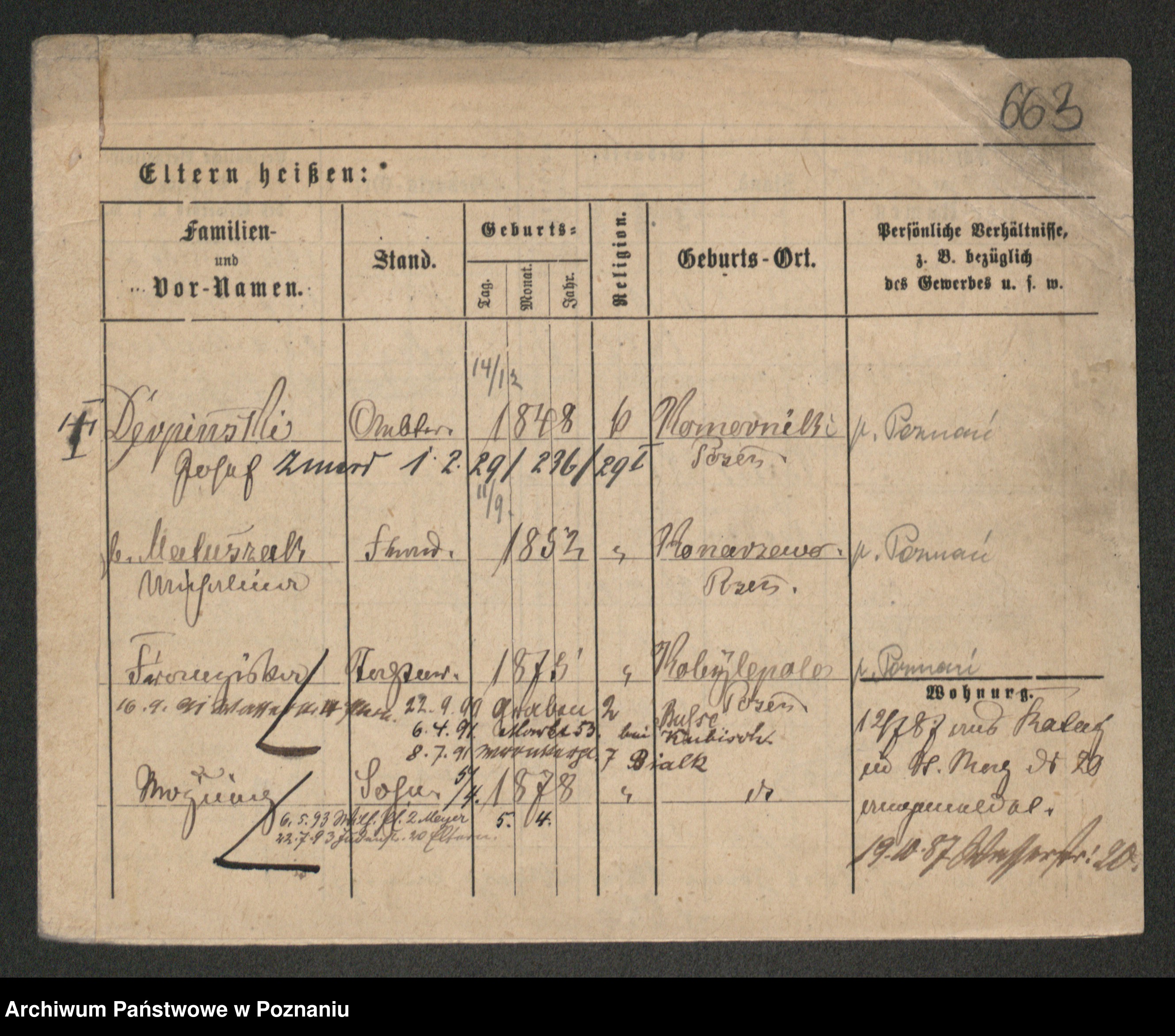 Podgląd karty osobowej dostępny jest po kliknięciu na nazwisko lub ikonkę karty. Można dokonywać powiększenia (ikony na górze) lub przechodzić między kolejnymi skanami (strzałki po bokach).