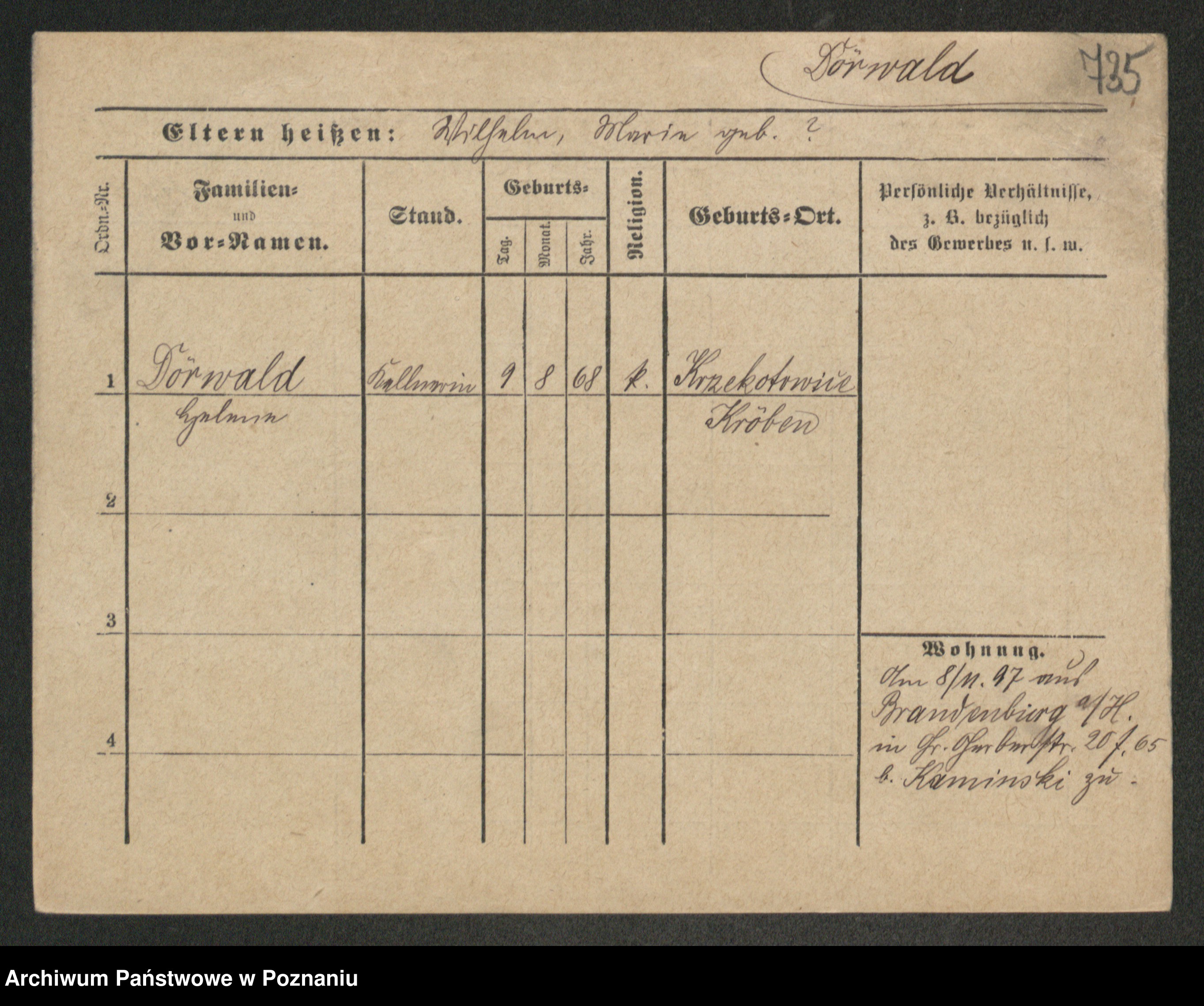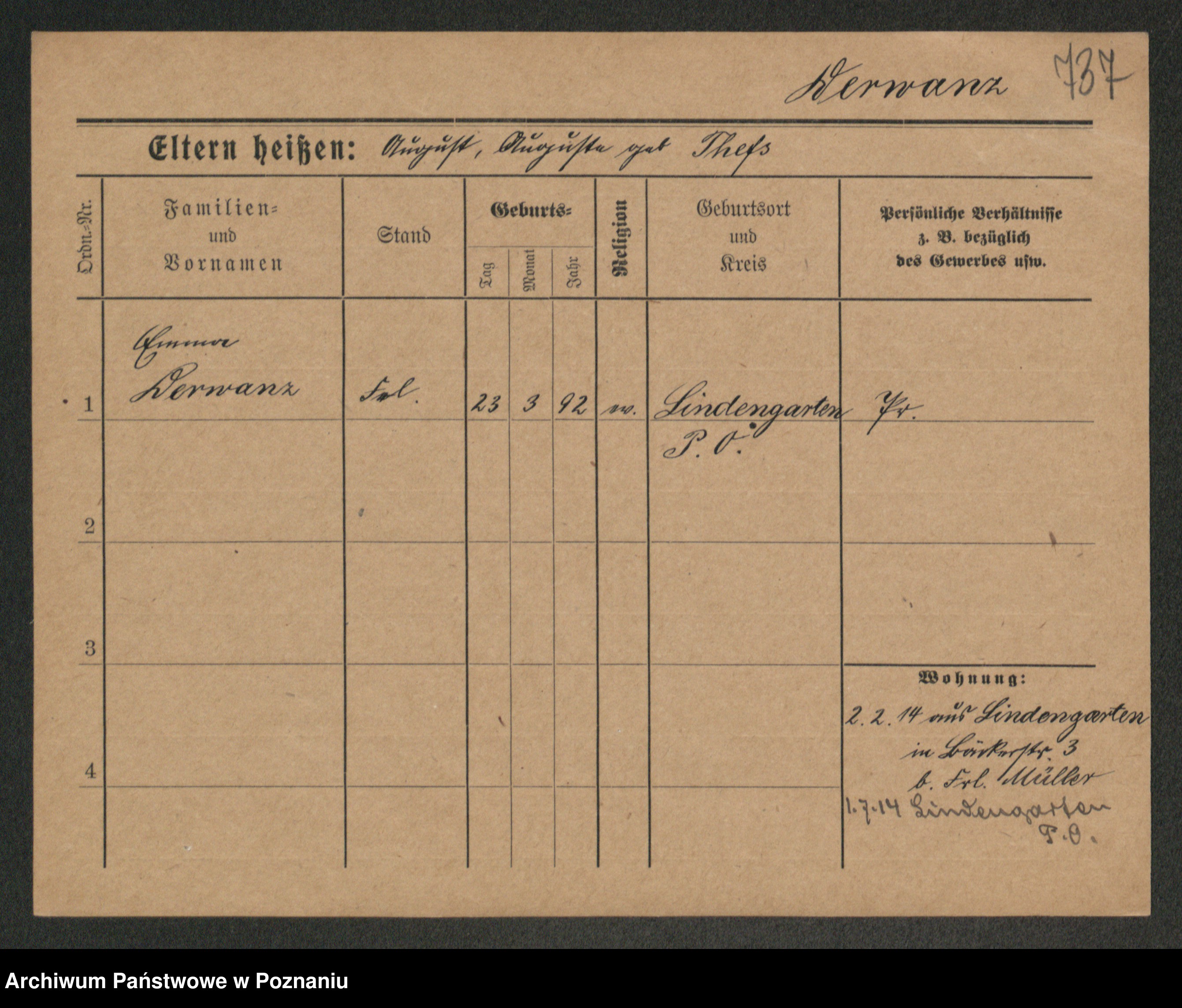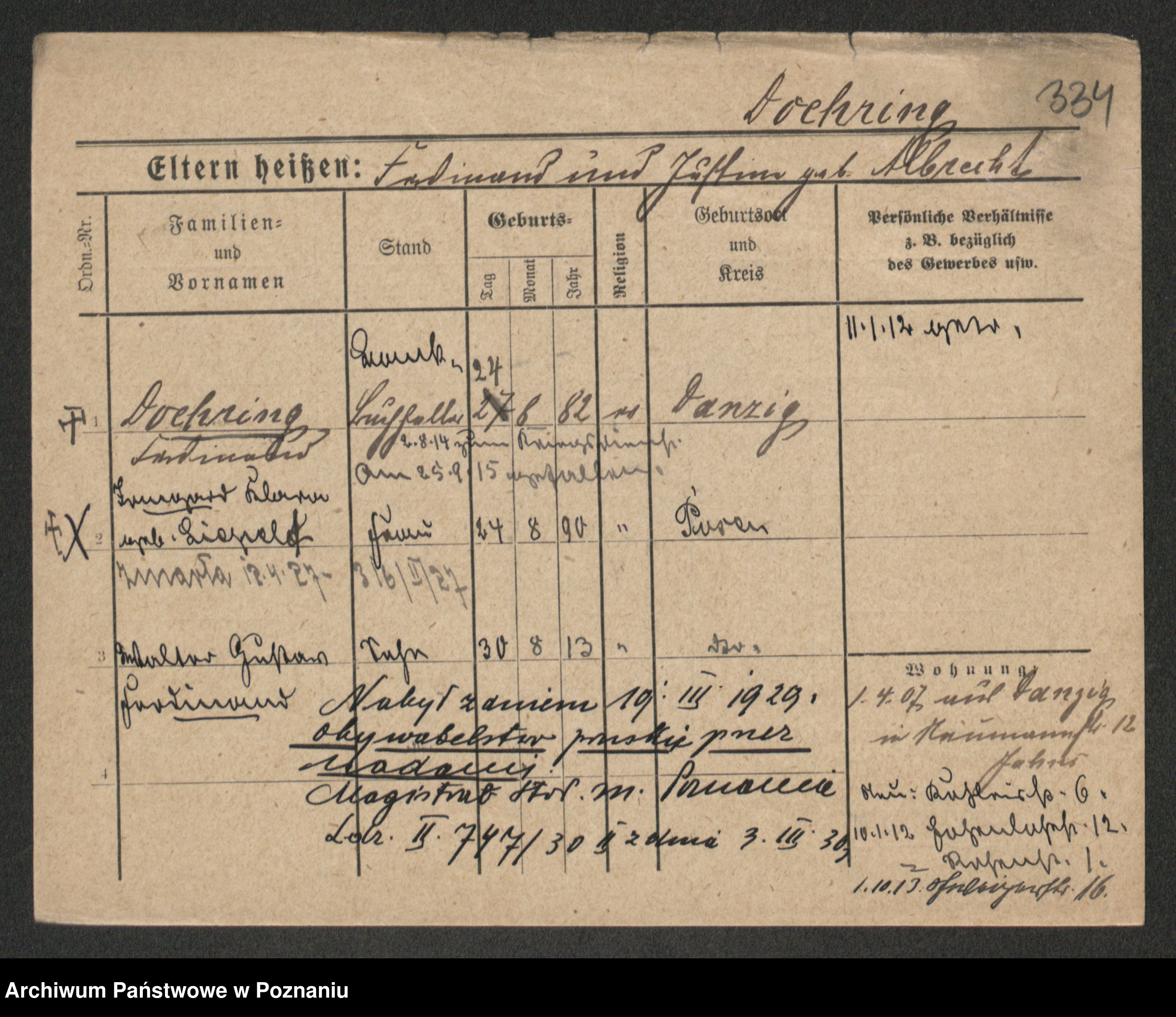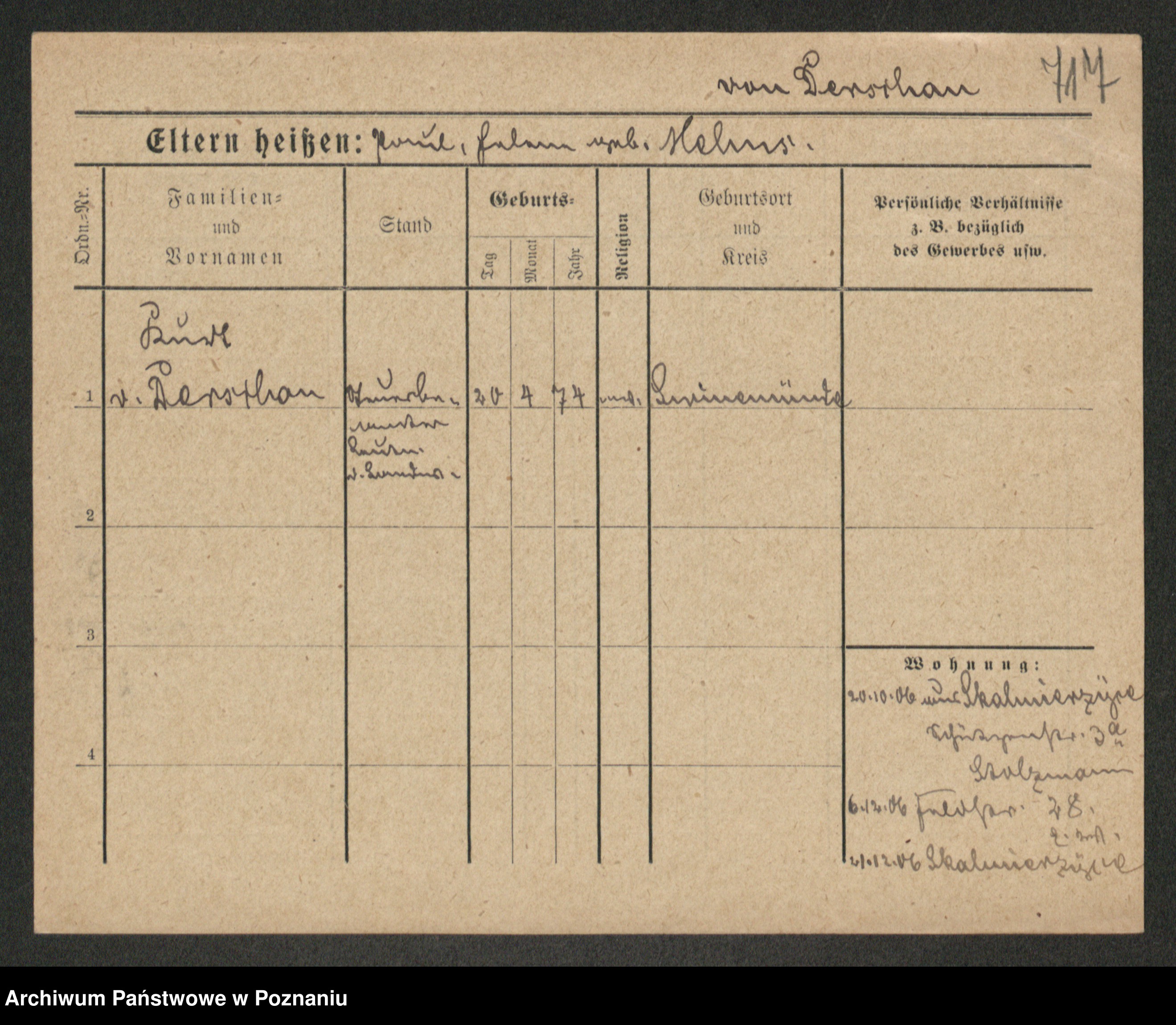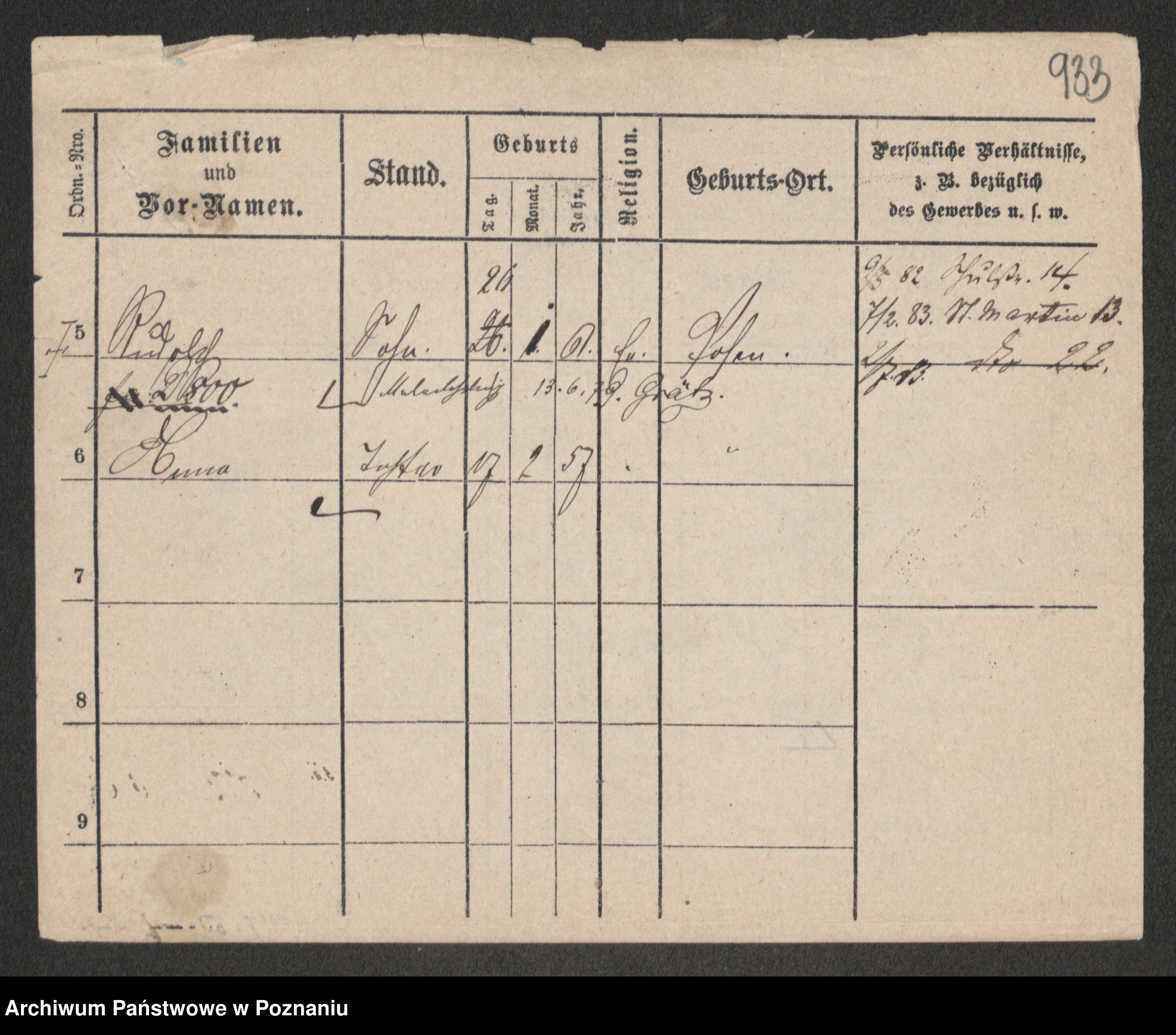 Podgląd karty osobowej dostępny jest po kliknięciu na nazwisko lub ikonkę karty. Można dokonywać powiększenia (ikony na górze) lub przechodzić między kolejnymi skanami (strzałki po bokach).