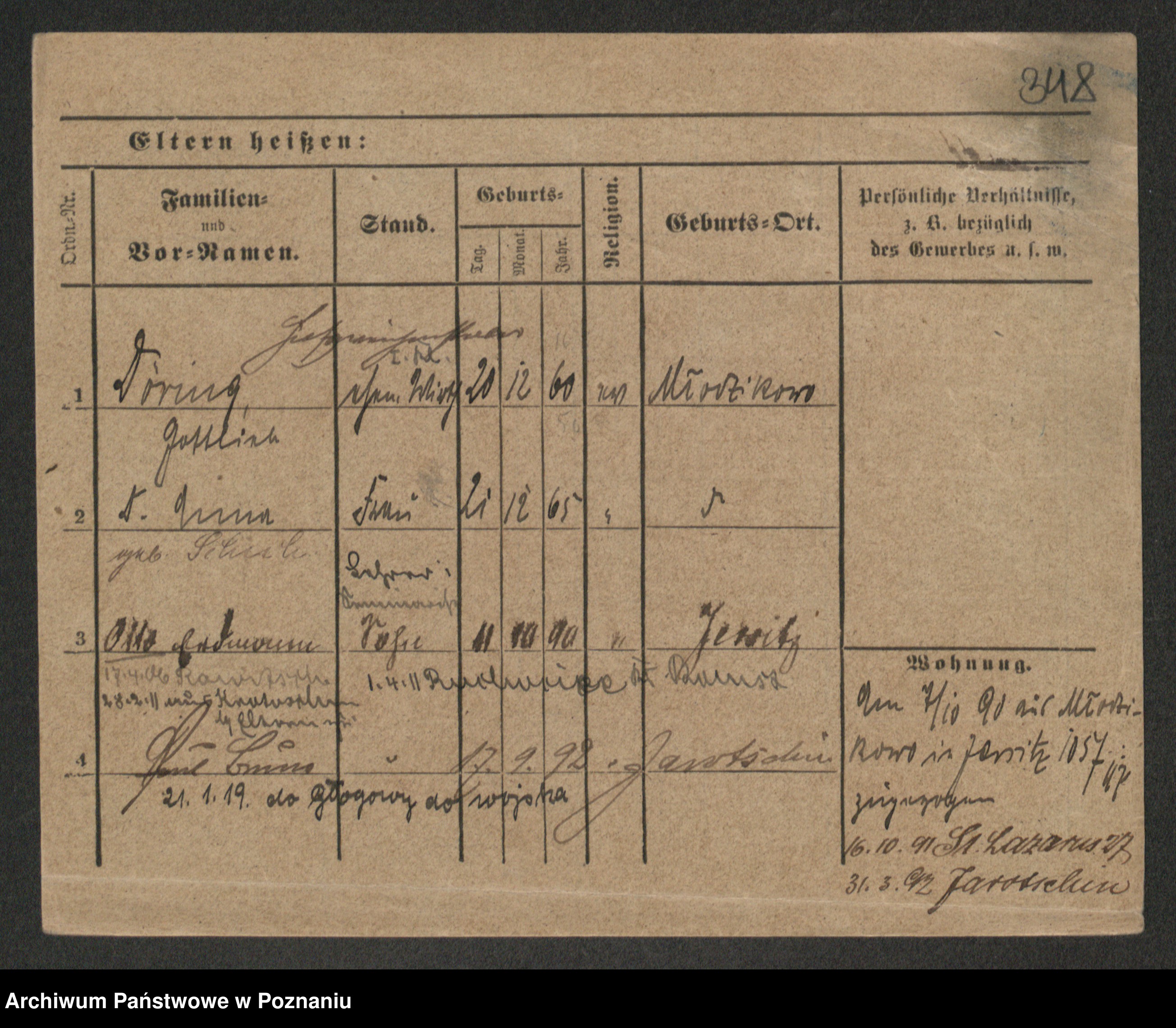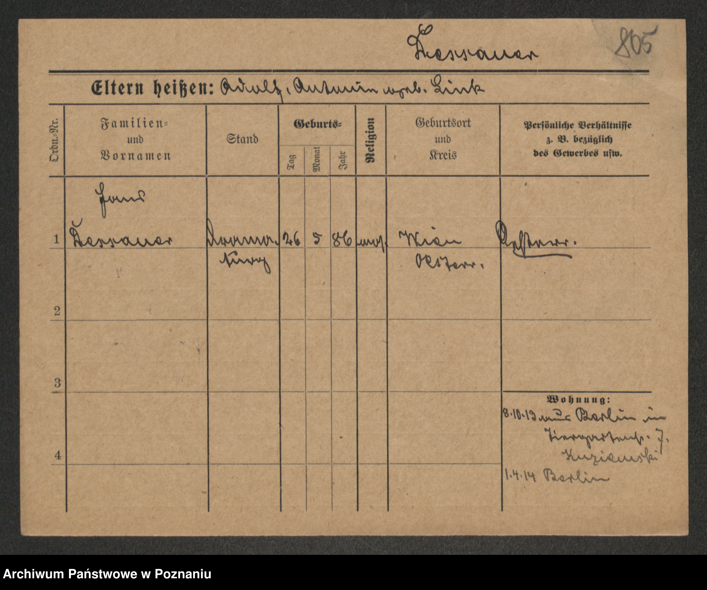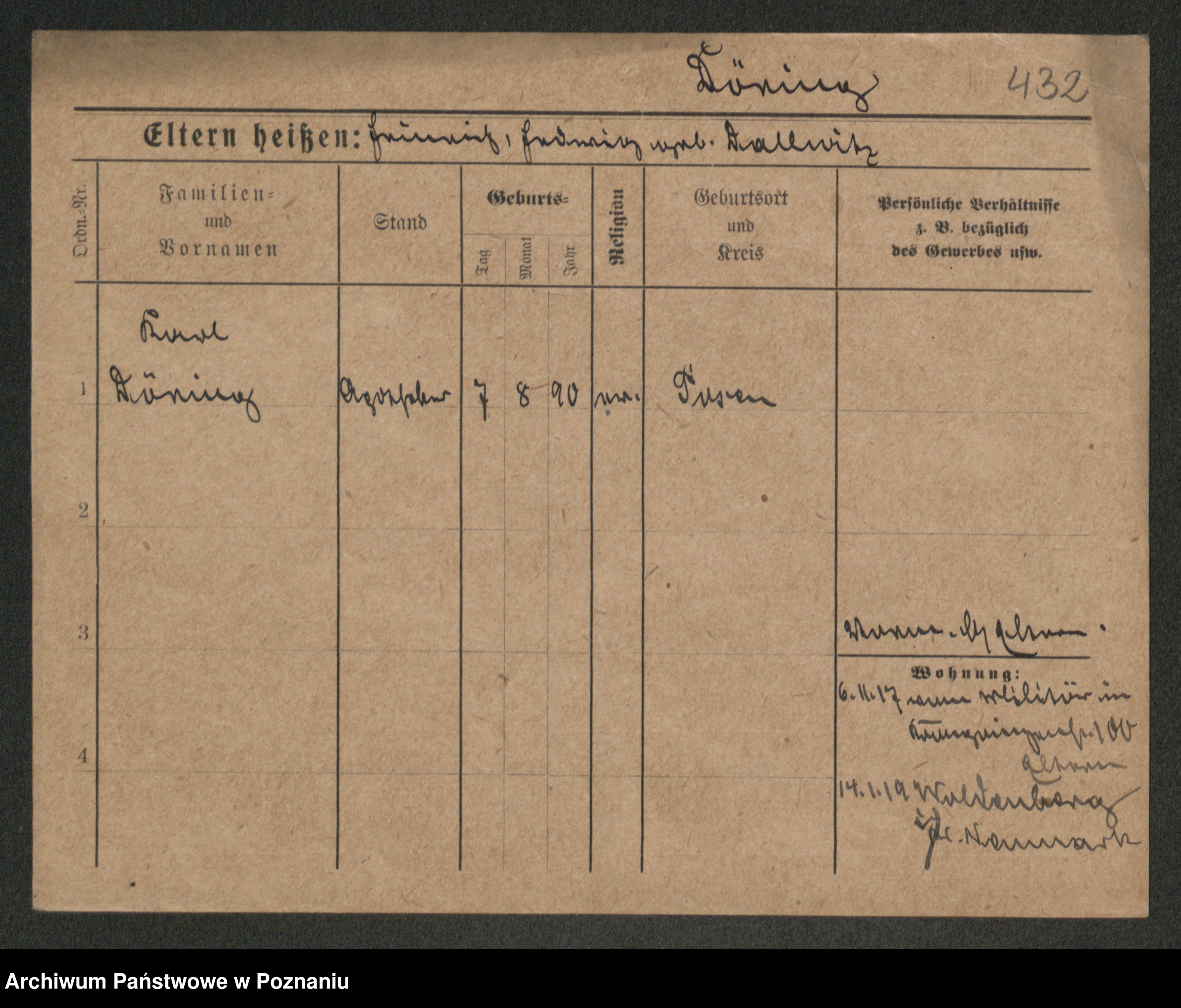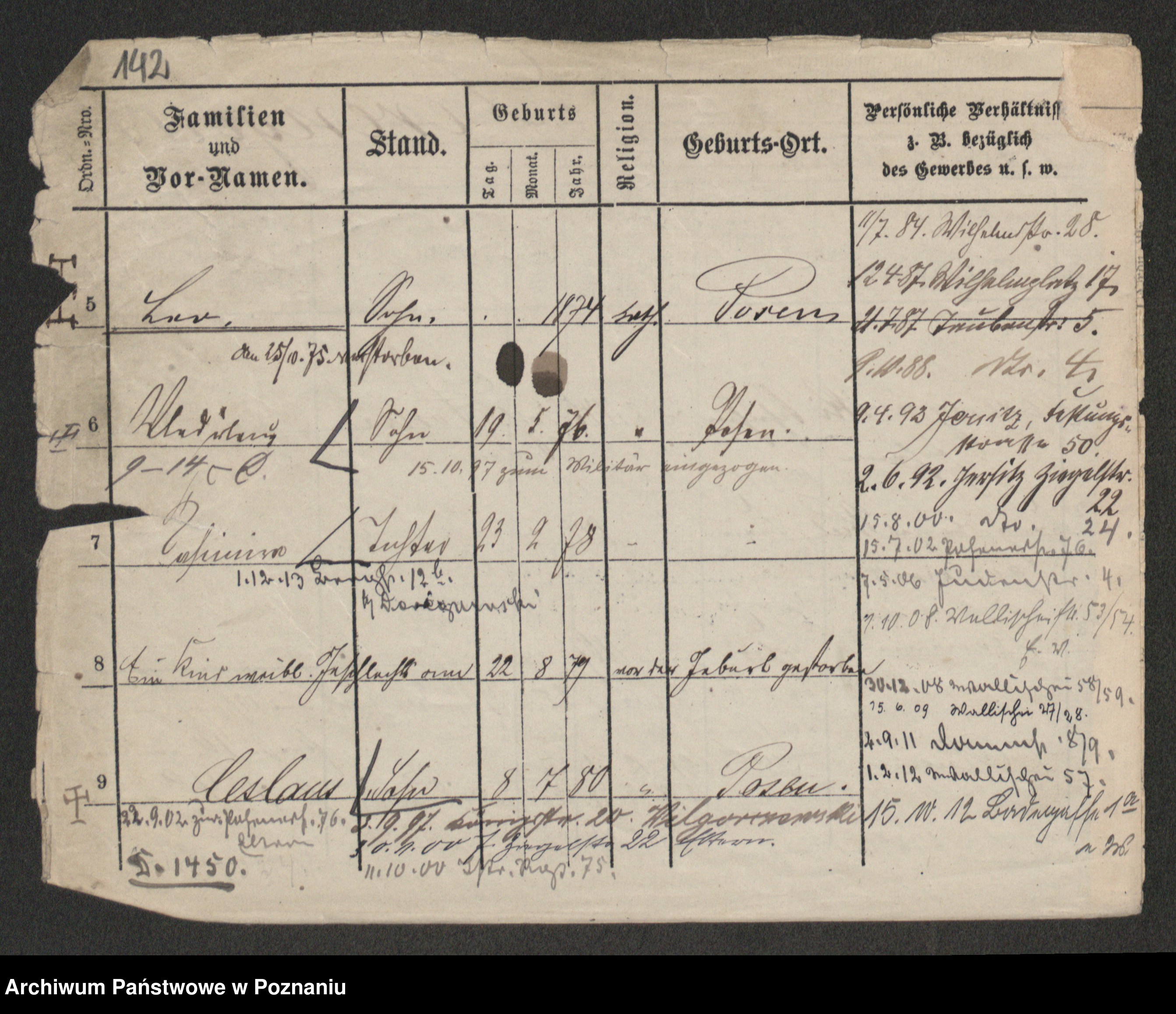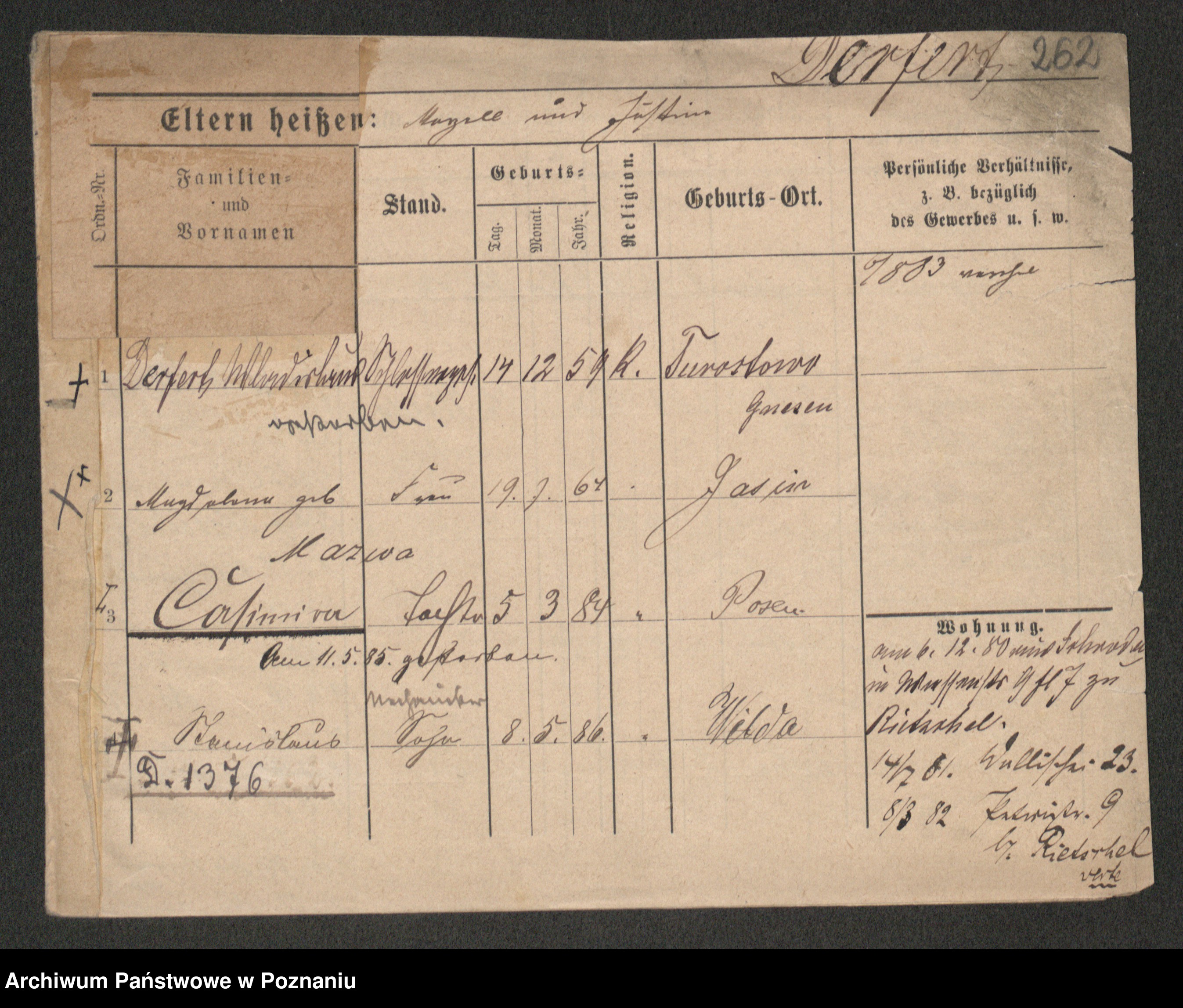 Podgląd karty osobowej dostępny jest po kliknięciu na nazwisko lub ikonkę karty. Można dokonywać powiększenia (ikony na górze) lub przechodzić między kolejnymi skanami (strzałki po bokach).