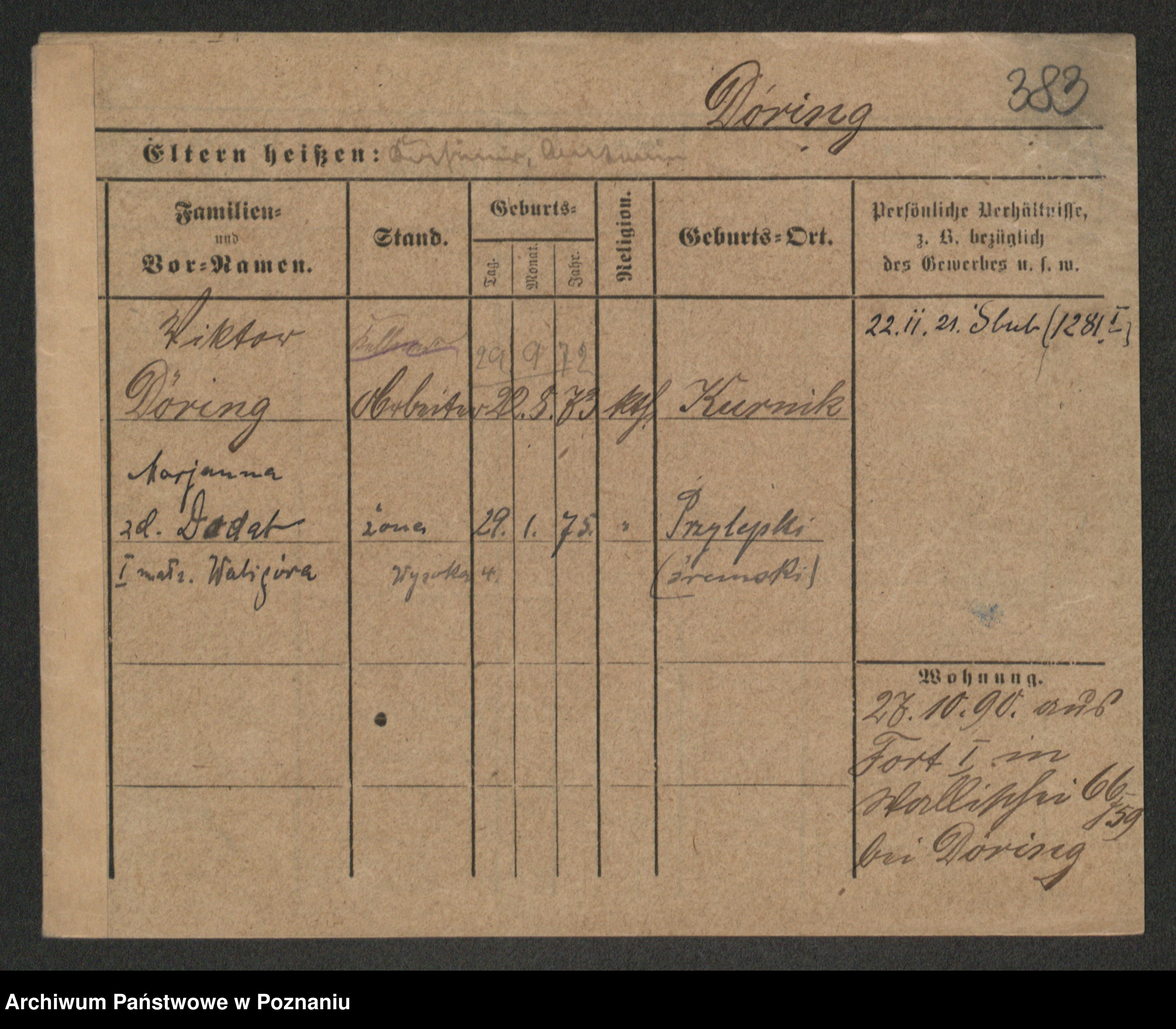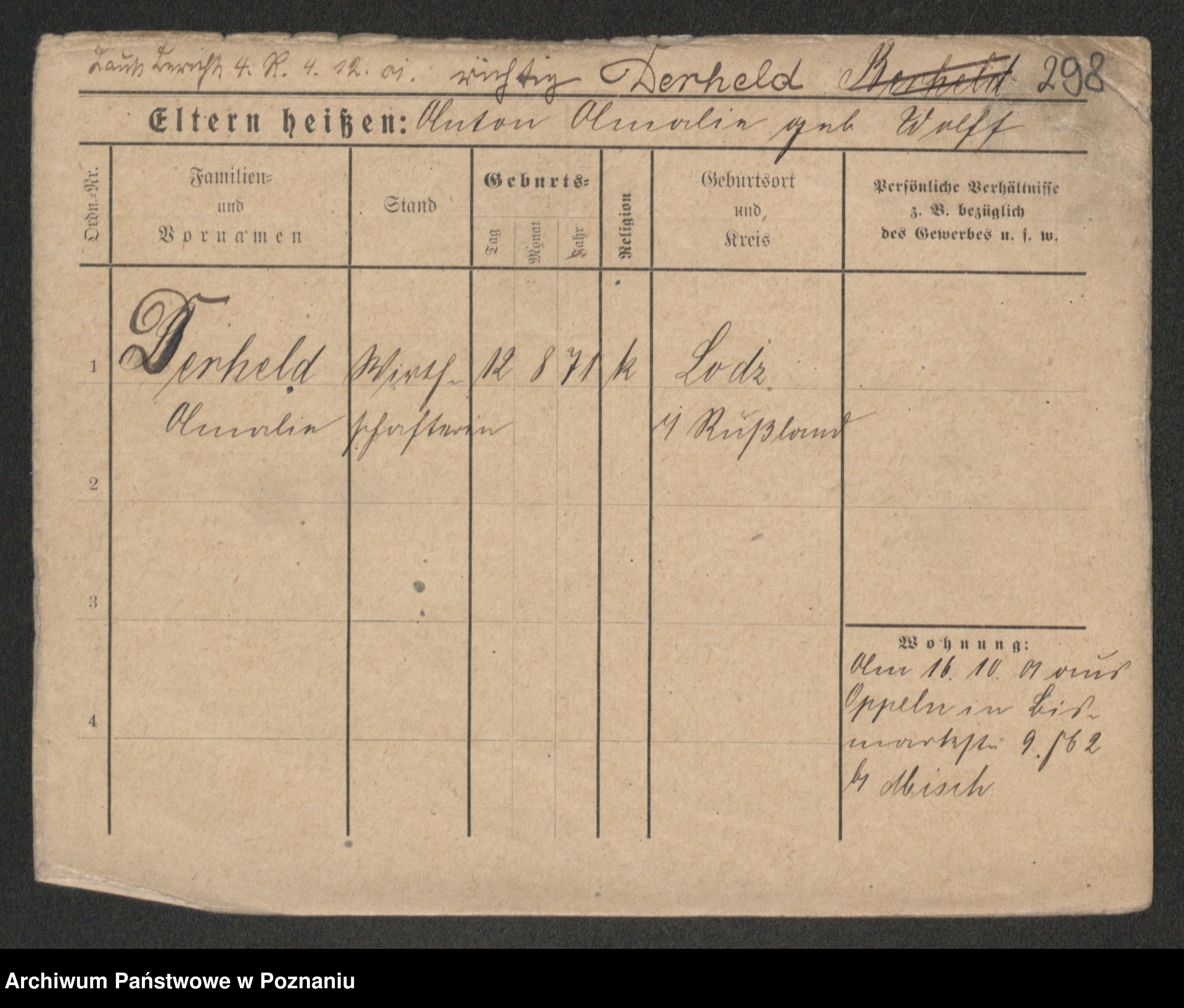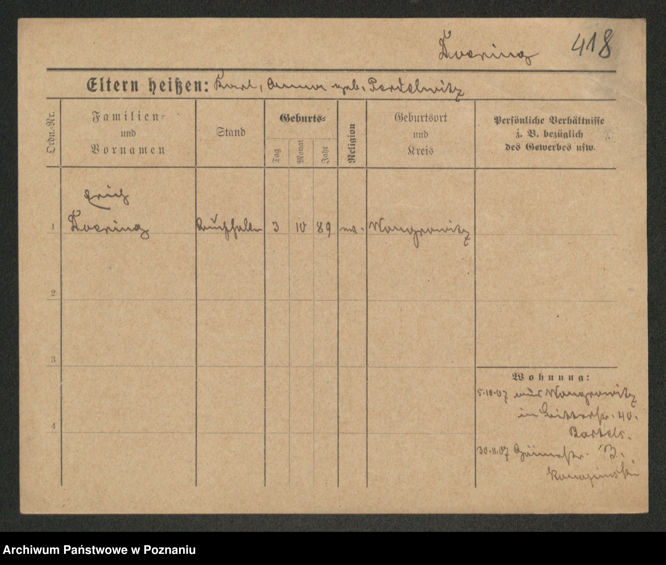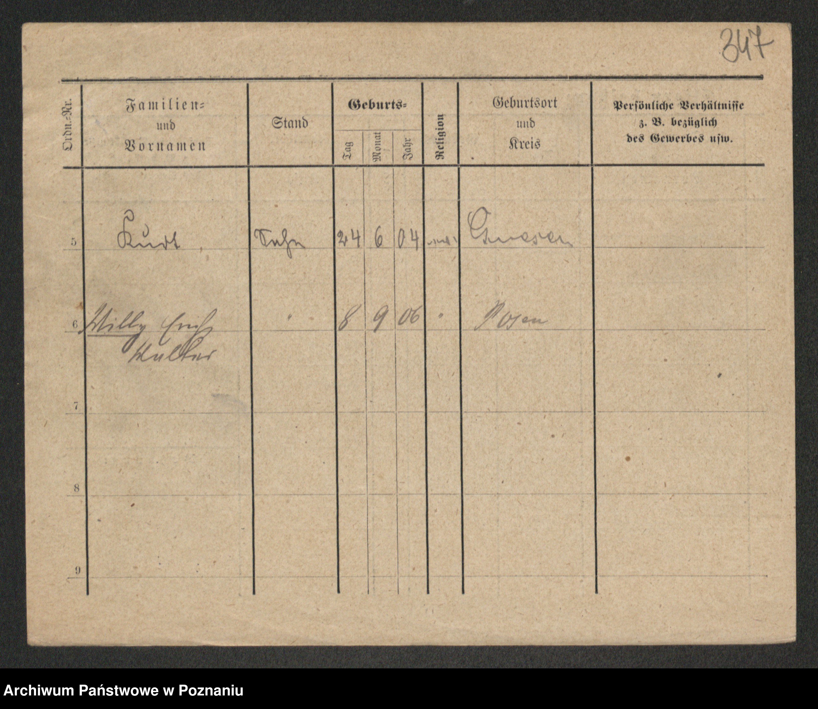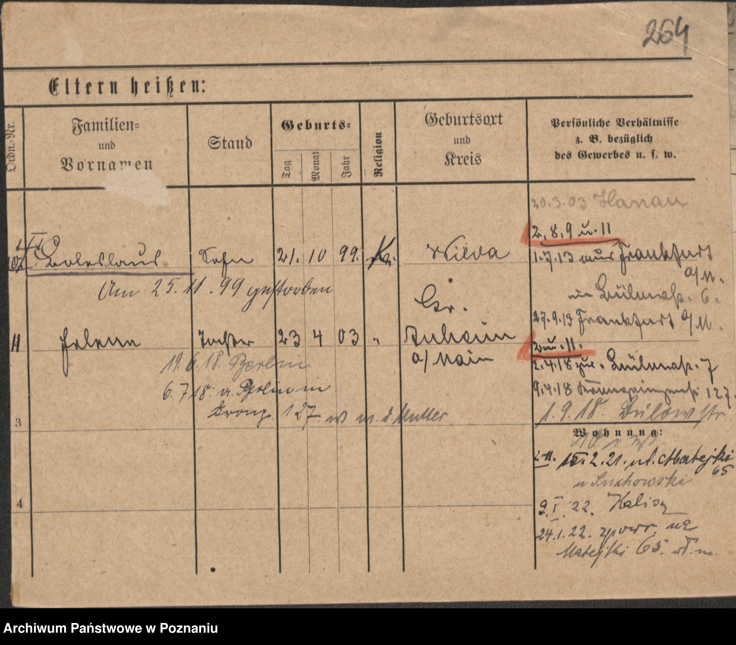 Podgląd karty osobowej dostępny jest po kliknięciu na nazwisko lub ikonkę karty. Można dokonywać powiększenia (ikony na górze) lub przechodzić między kolejnymi skanami (strzałki po bokach).
